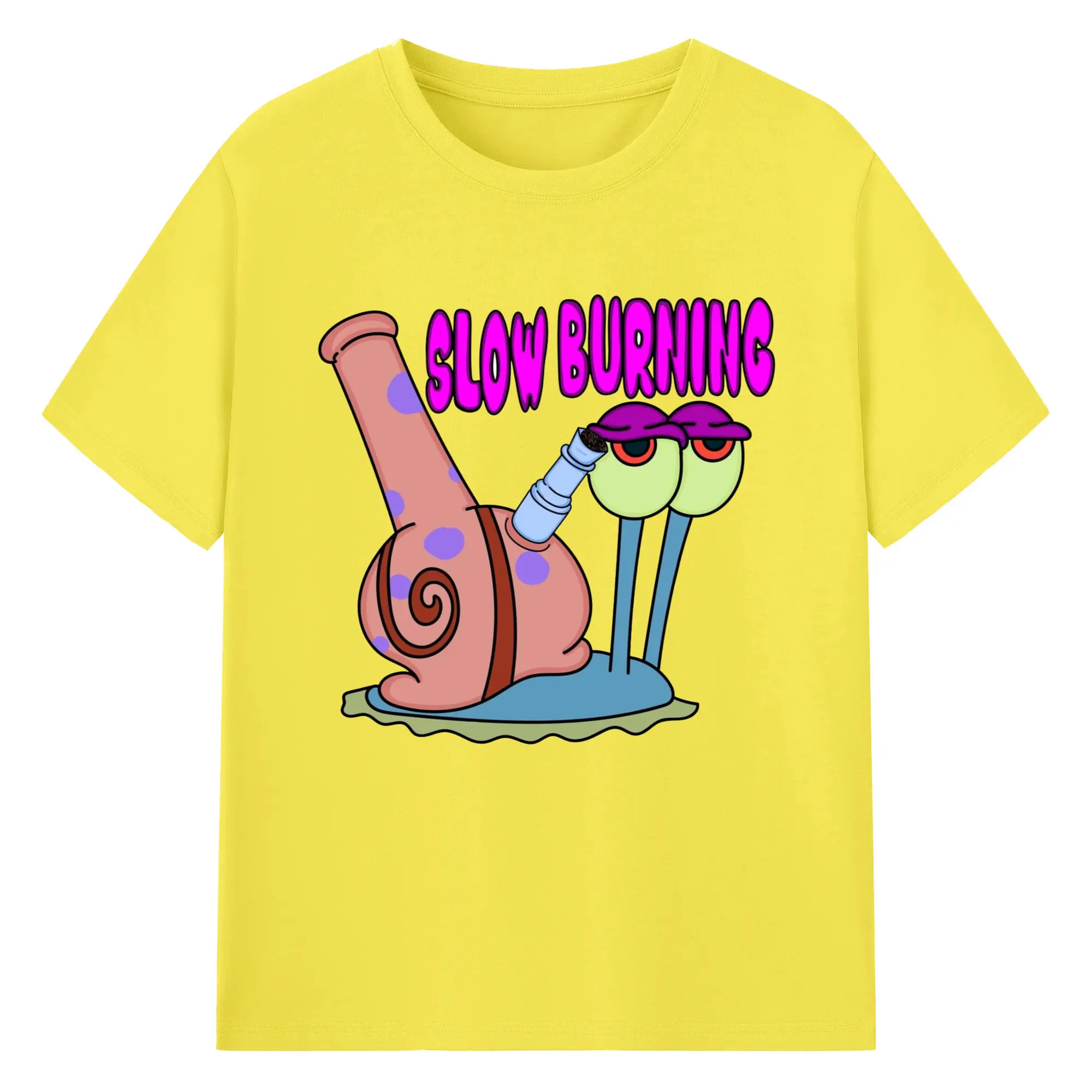 SpongeBob SquarePants Gary the Snail slow burning T-Shirt - 180g Cotton T-Shirt With Front Heat Transfer Print – Soft, Lightweight, Fitted Design – Comfortable Casual Wear For Sports & Everyday Use