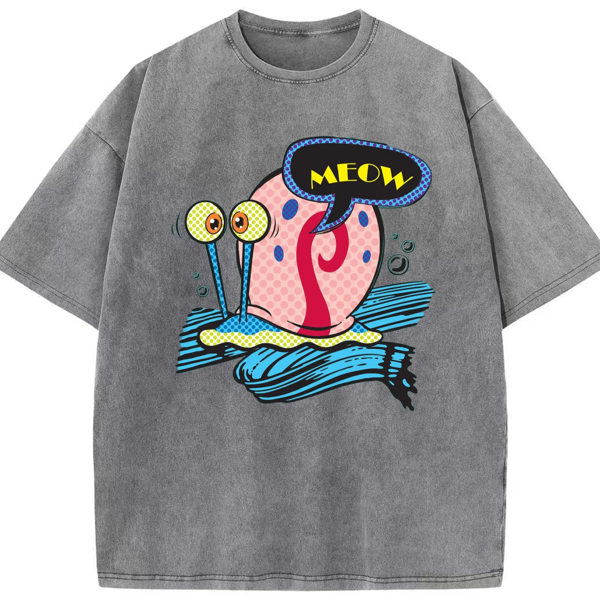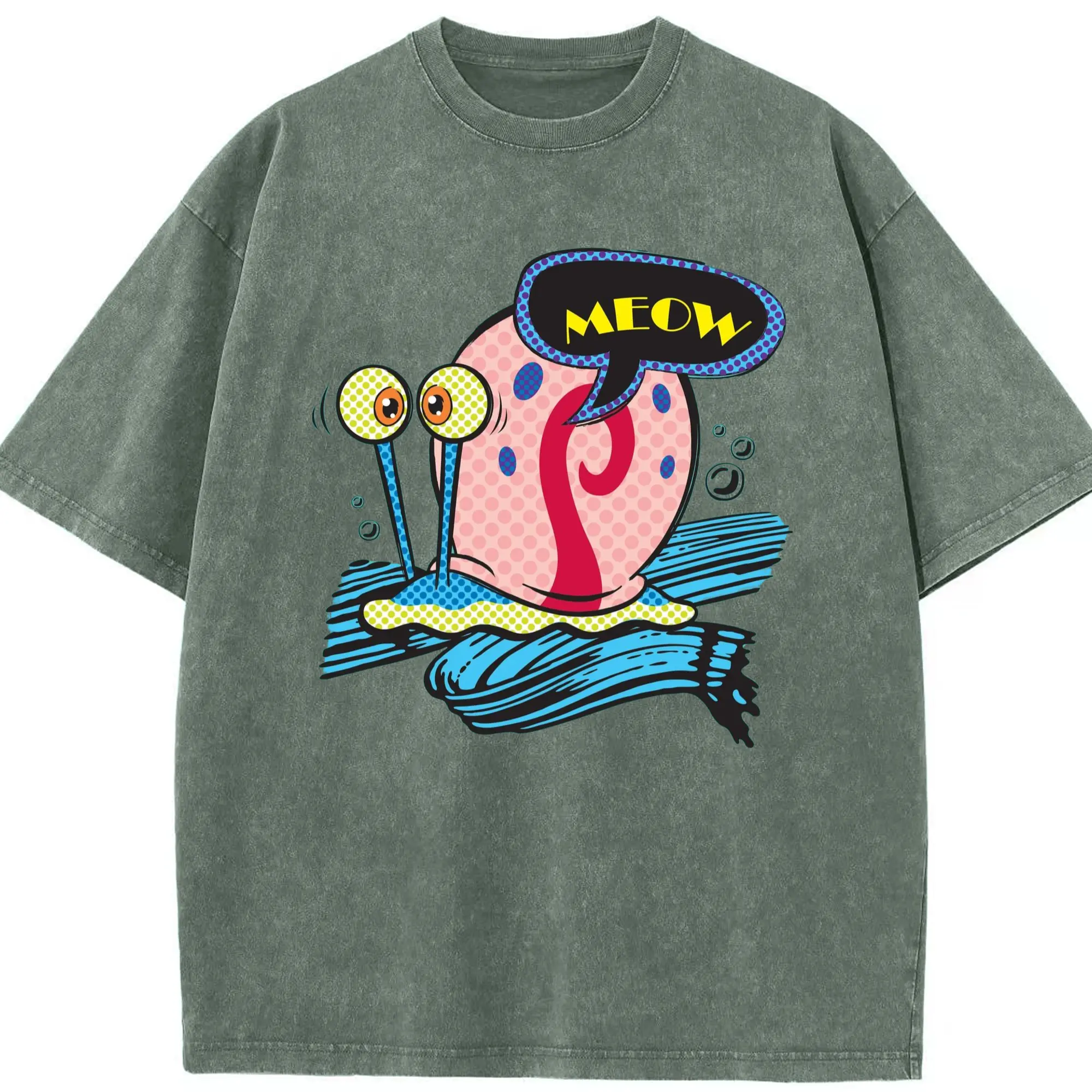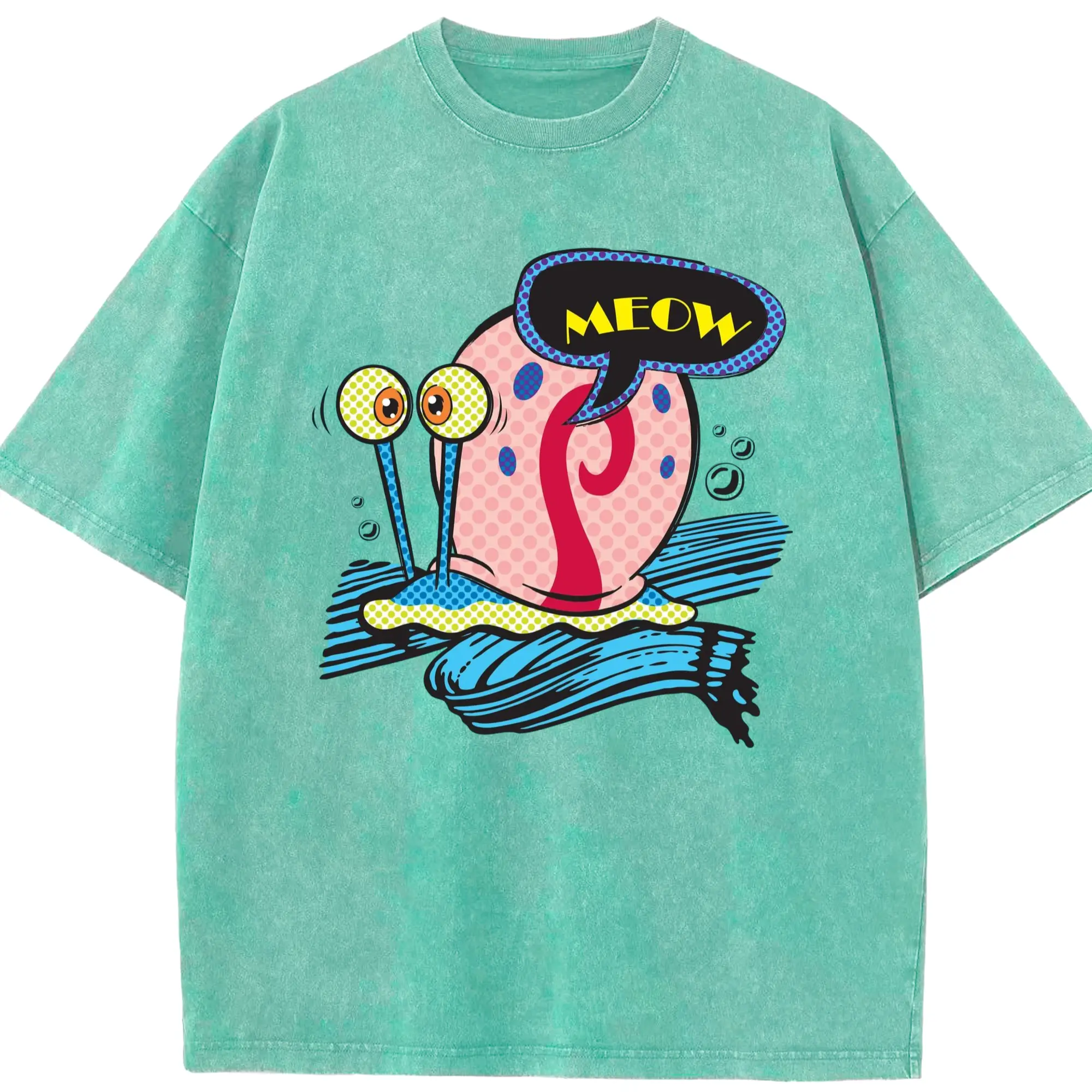 SpongeBob SquarePants Gary the Snail T-Shirt - Washed Vintage Look 230g Cotton Oversized T-Shirt With Front Heat Transfer Print – Soft, Lightweight, Stylish Fit – Comfortable Casual Wear For Sports & Everyday Use