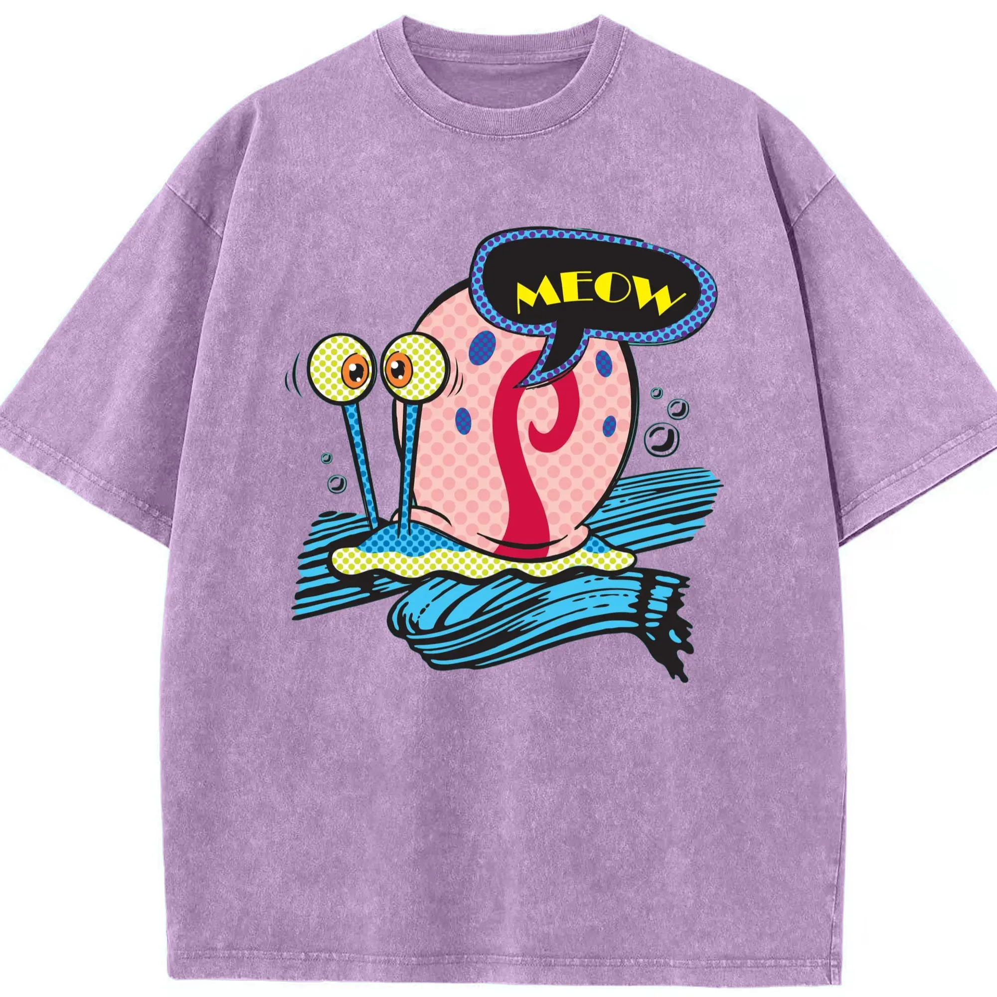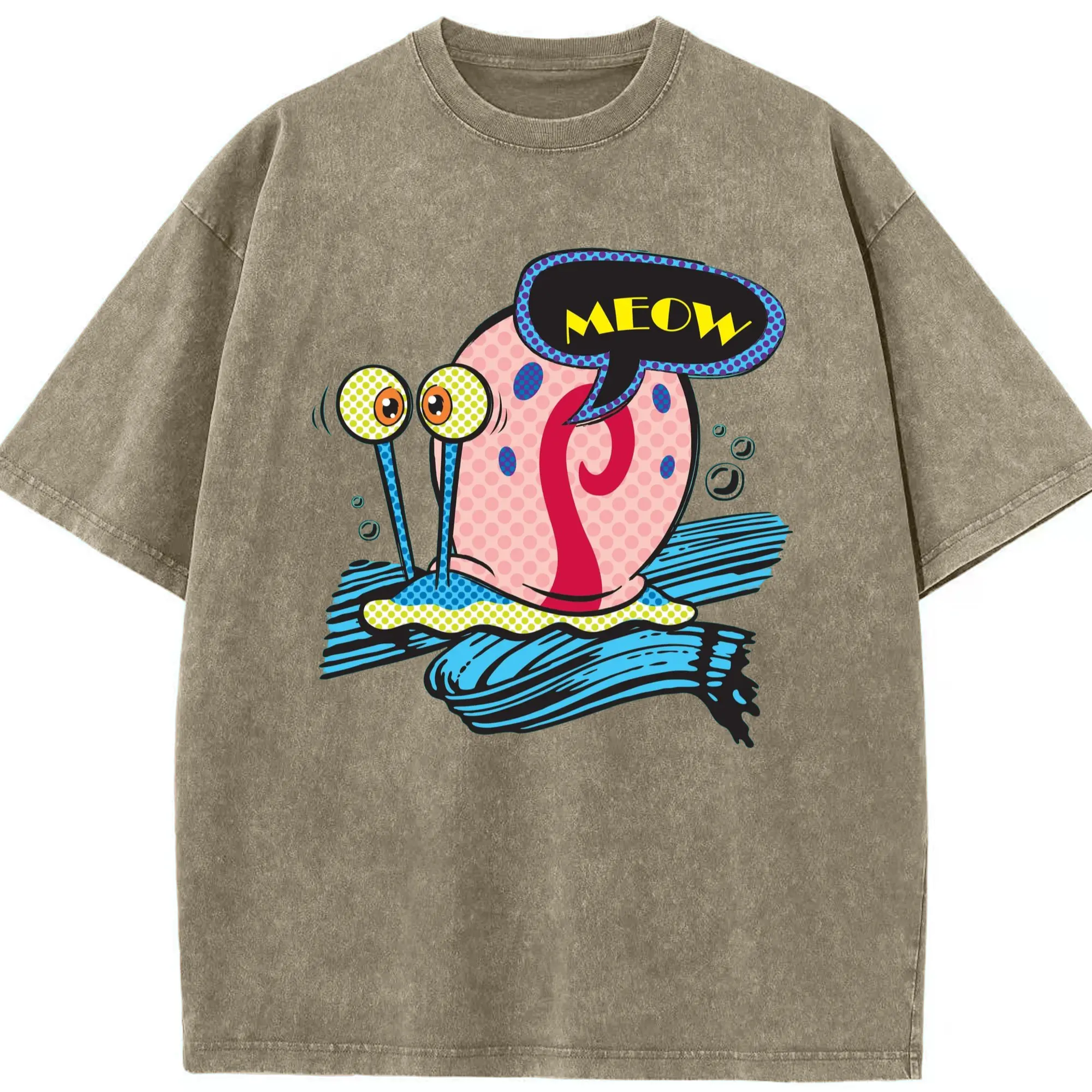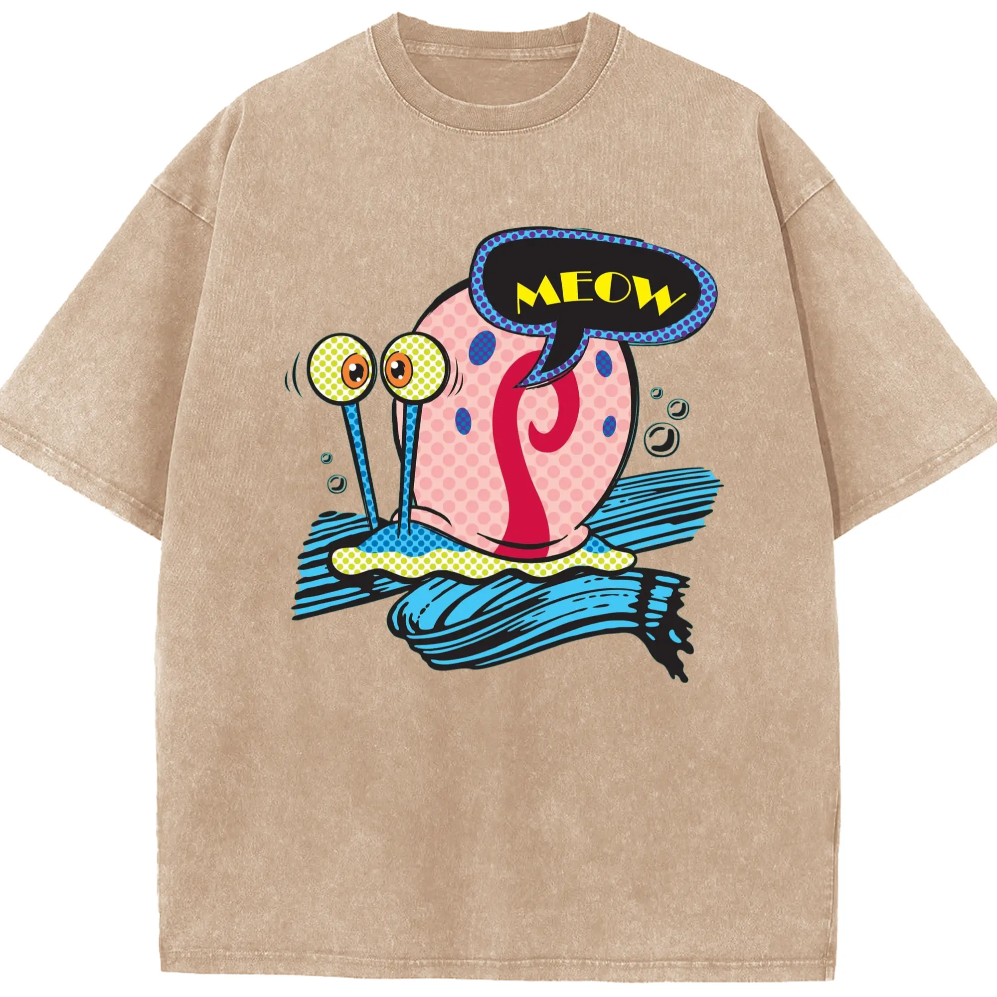 SpongeBob SquarePants Gary the Snail T-Shirt - Washed Vintage Look 230g Cotton Oversized T-Shirt With Front Heat Transfer Print – Soft, Lightweight, Stylish Fit – Comfortable Casual Wear For Sports & Everyday Use