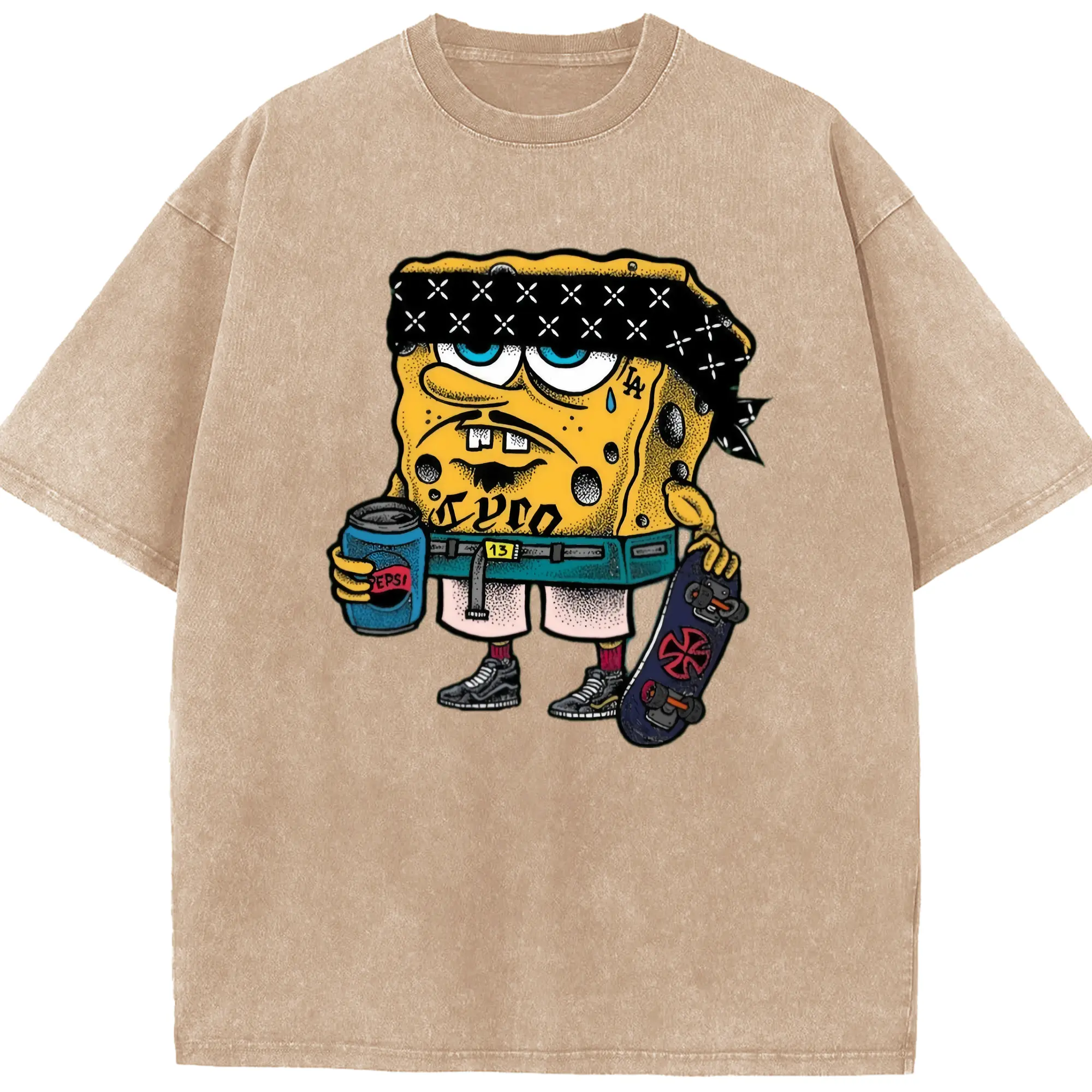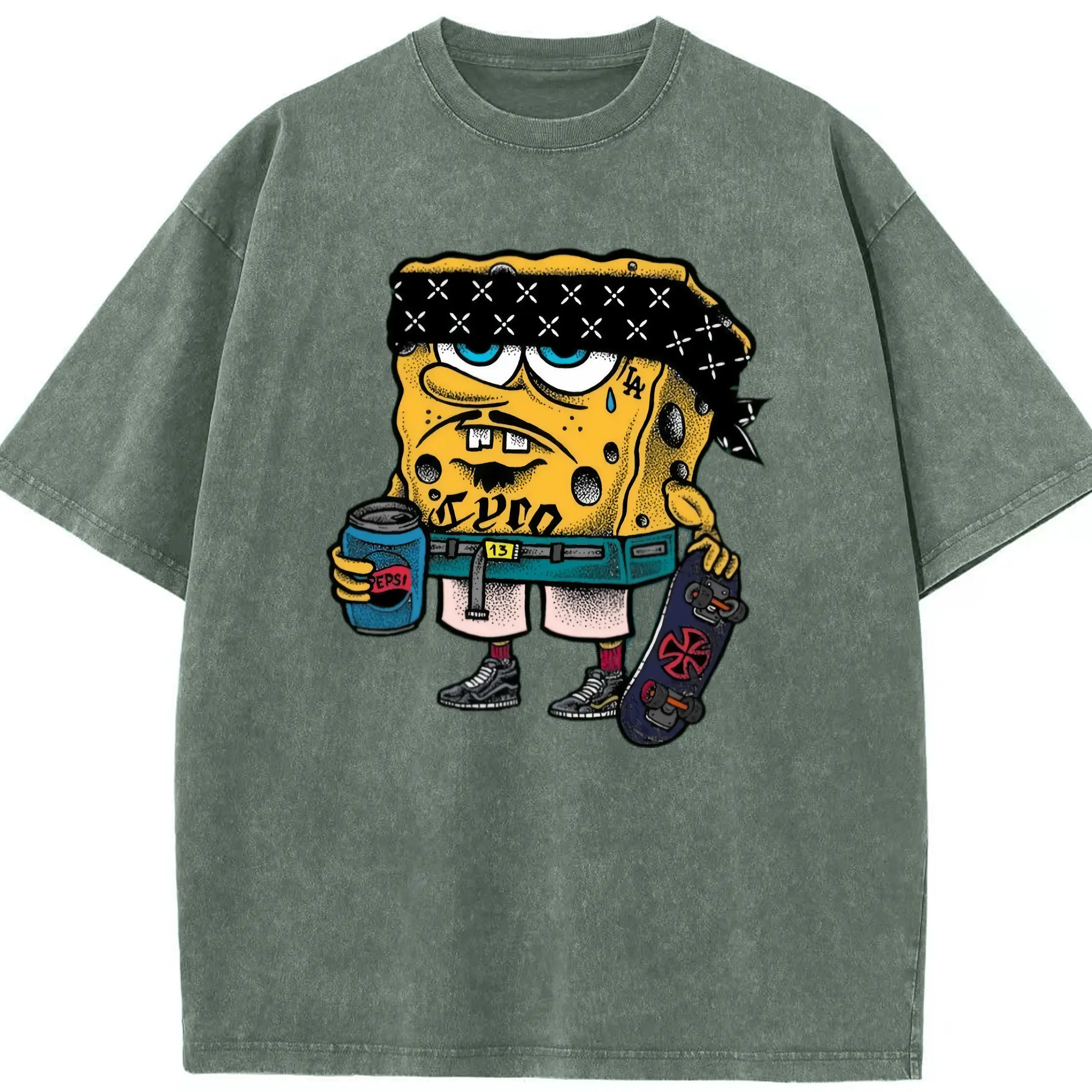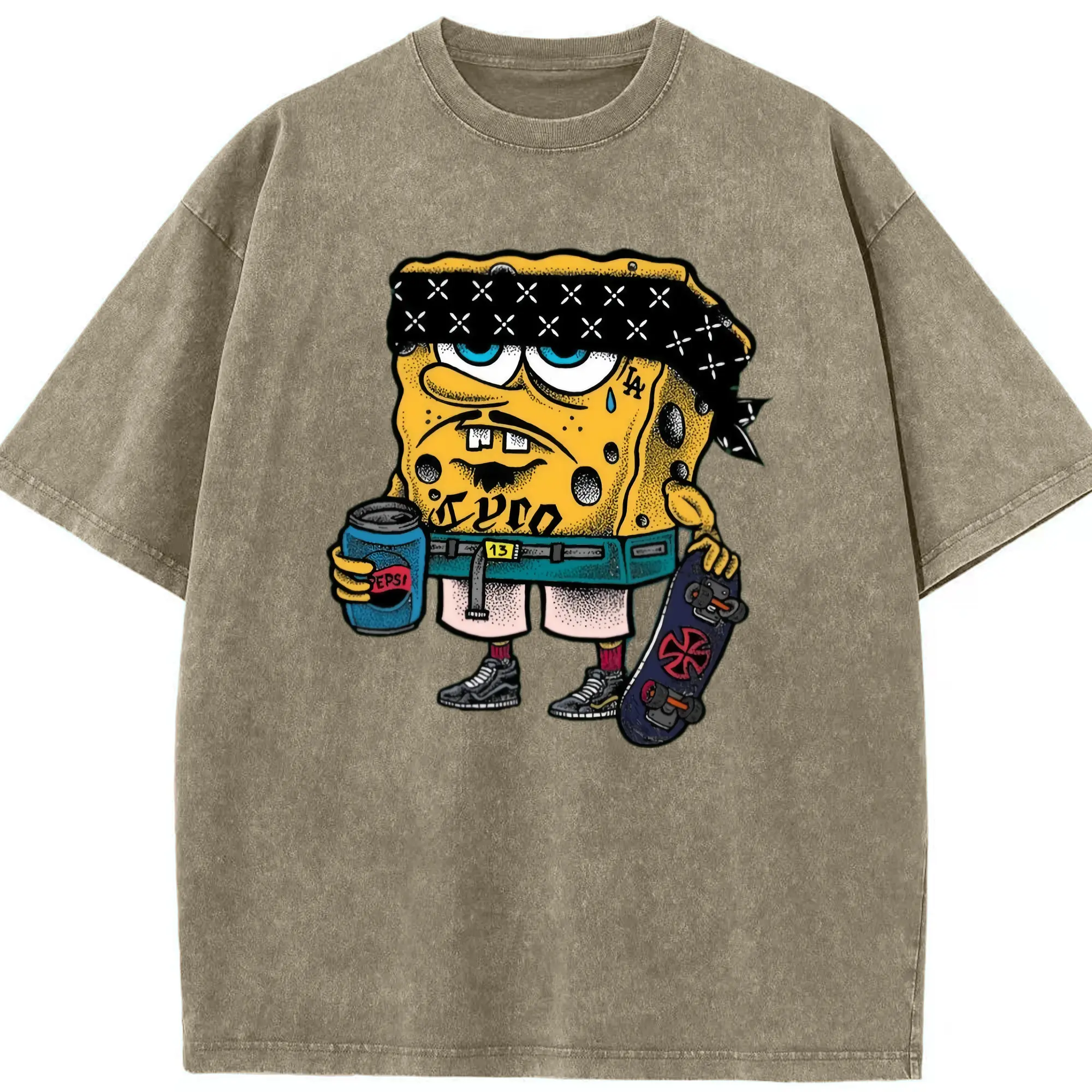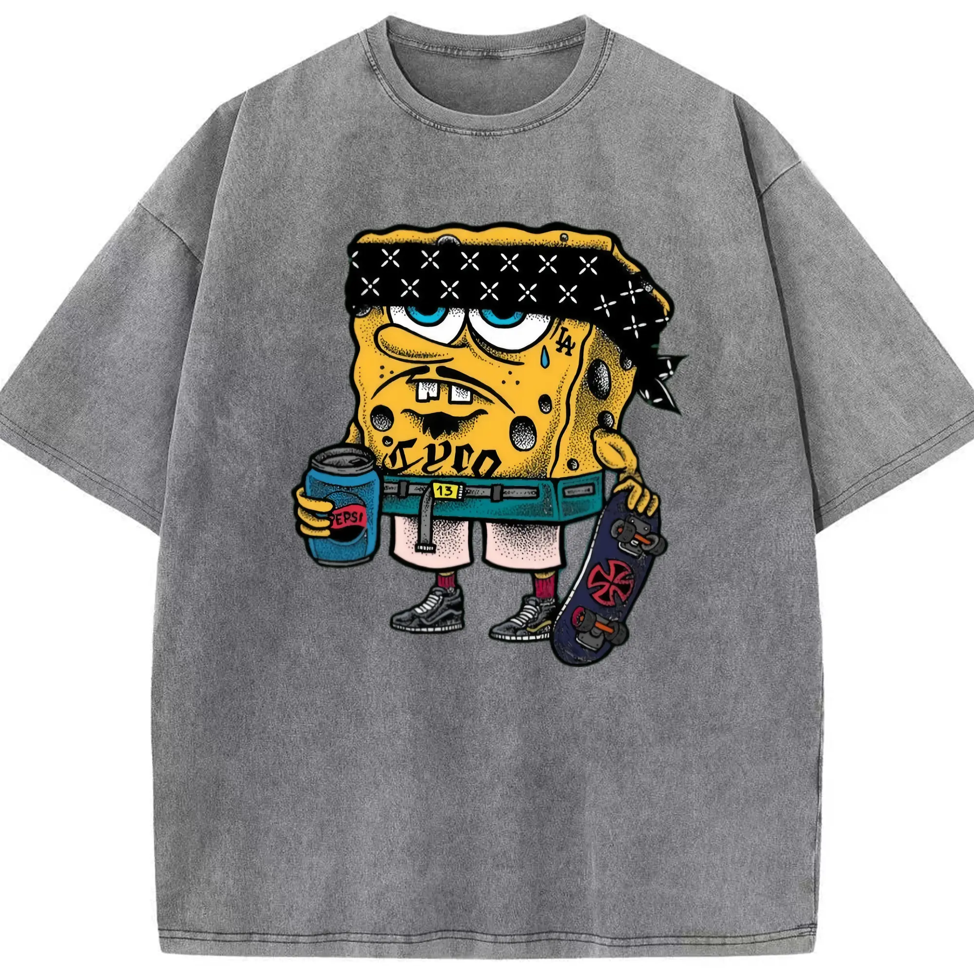 Spongebob squarepants mafia graphic t-shirt - Washed Vintage Look 230g Cotton Oversized T-Shirt With Front Heat Transfer Print – Soft, Lightweight, Stylish Fit – Comfortable Casual Wear For Sports & Everyday Use