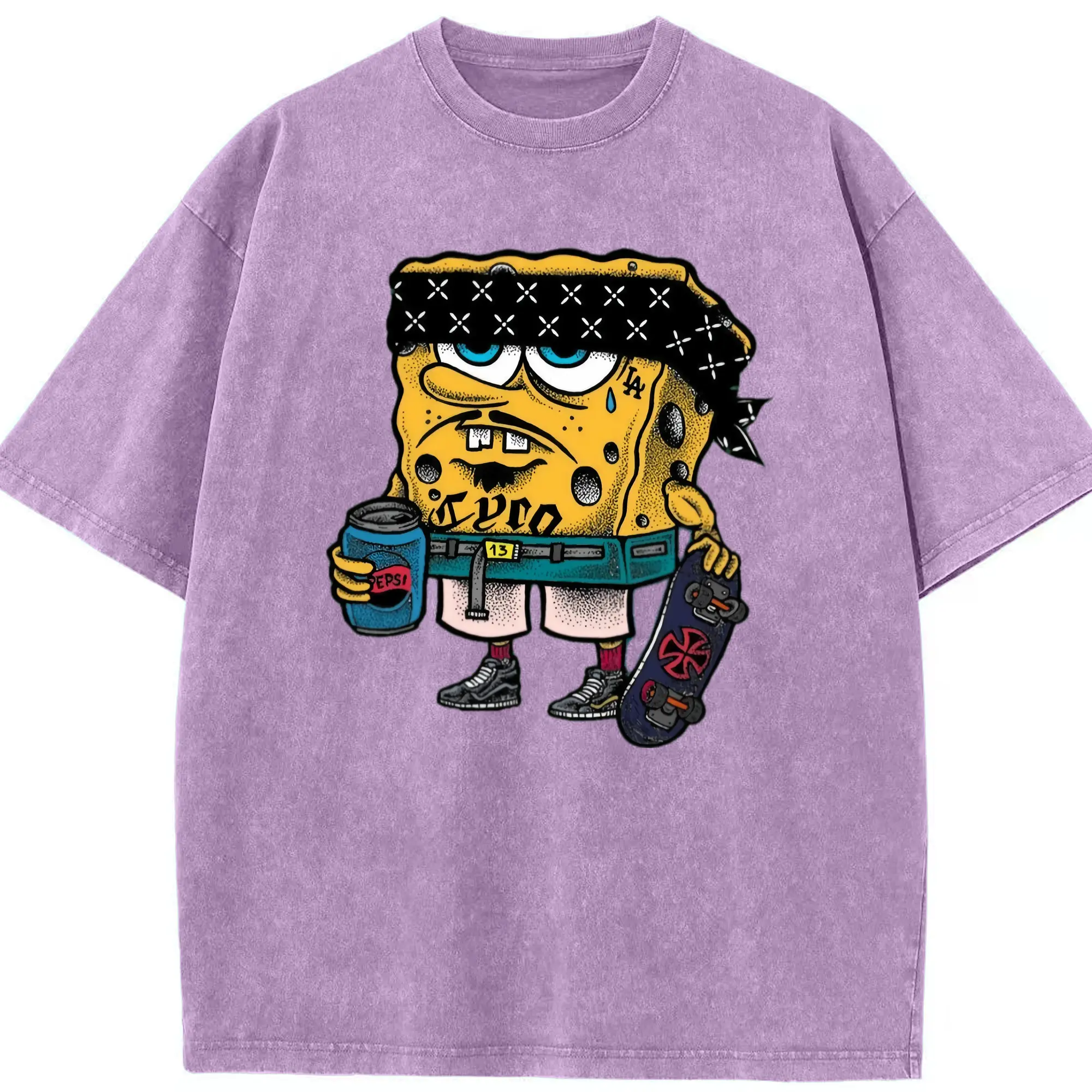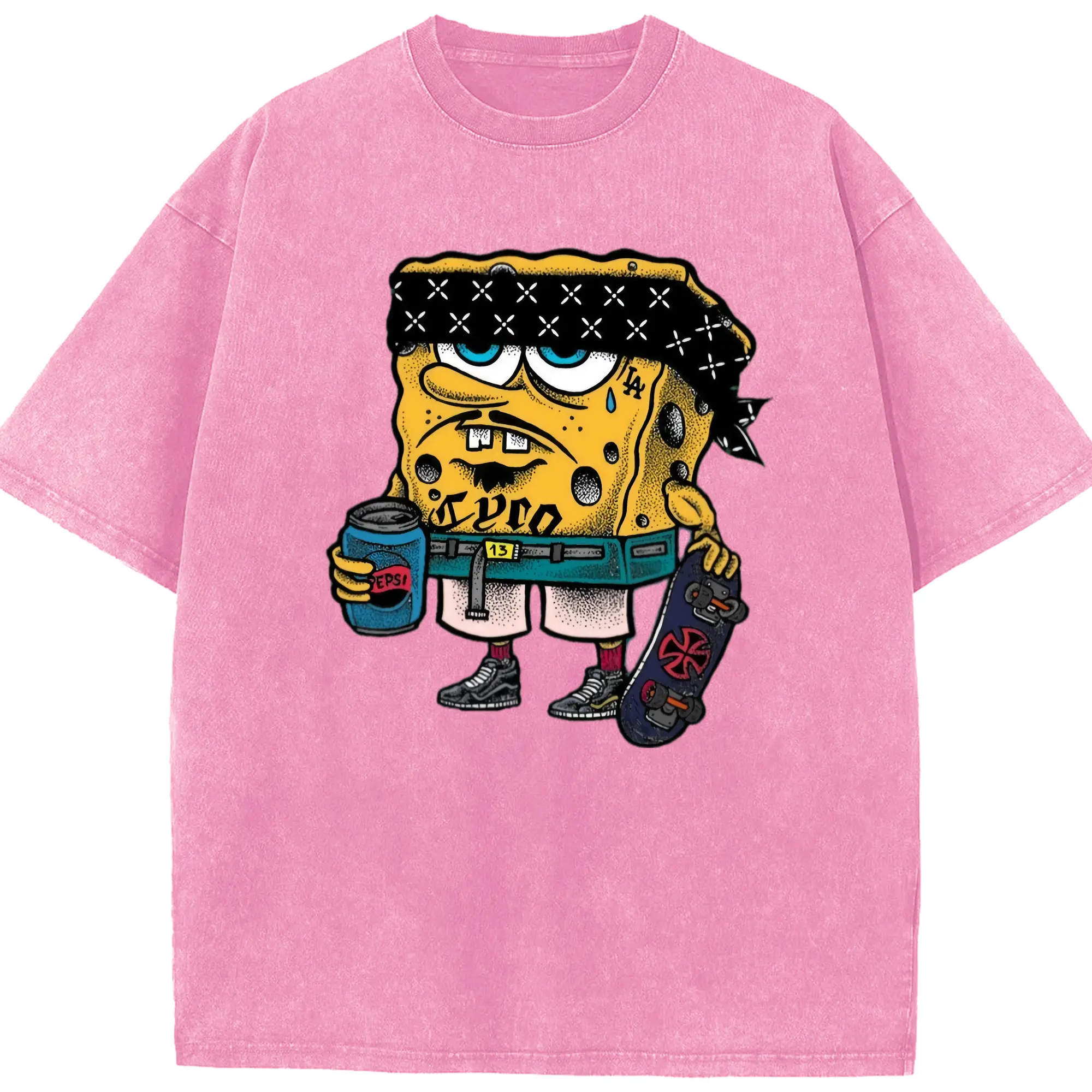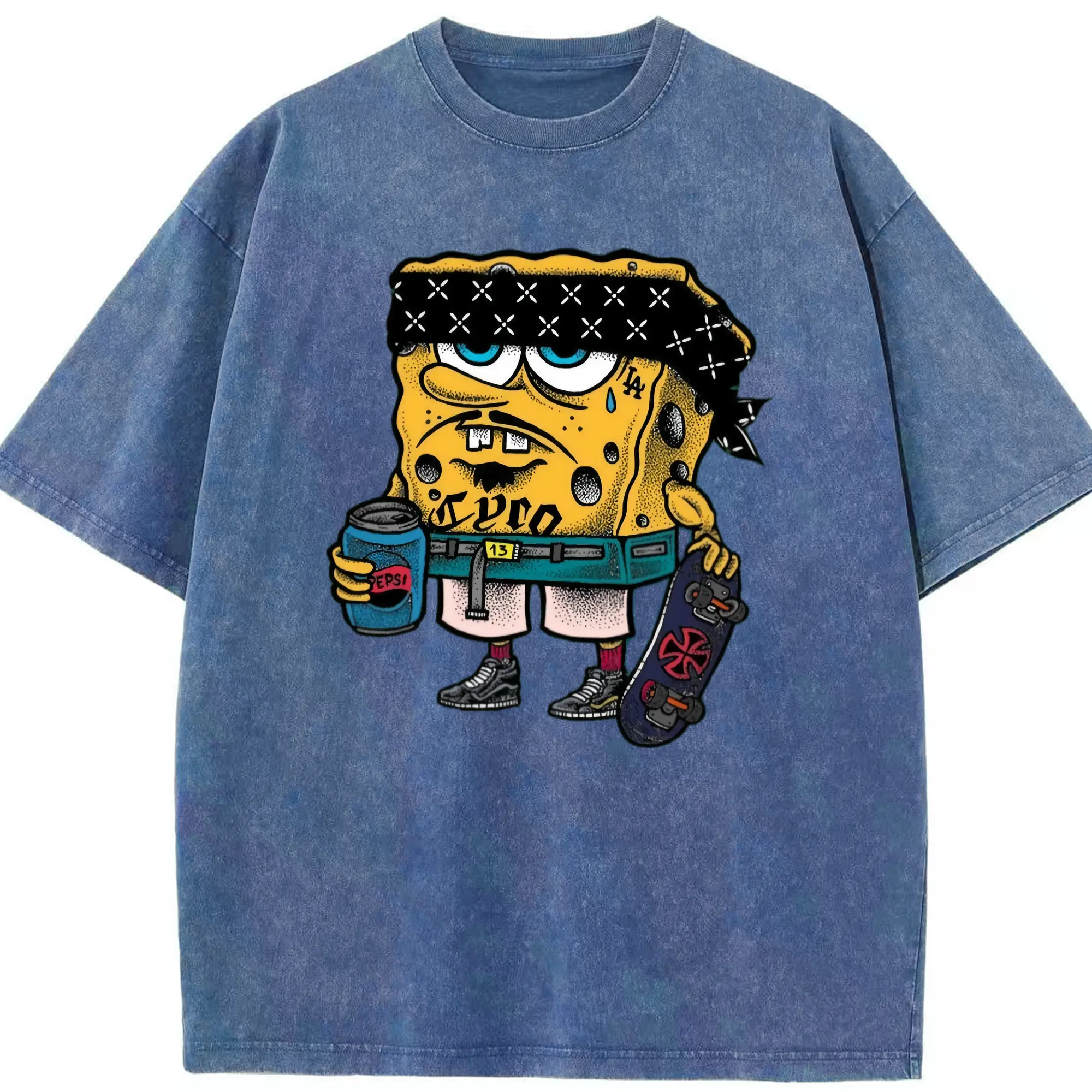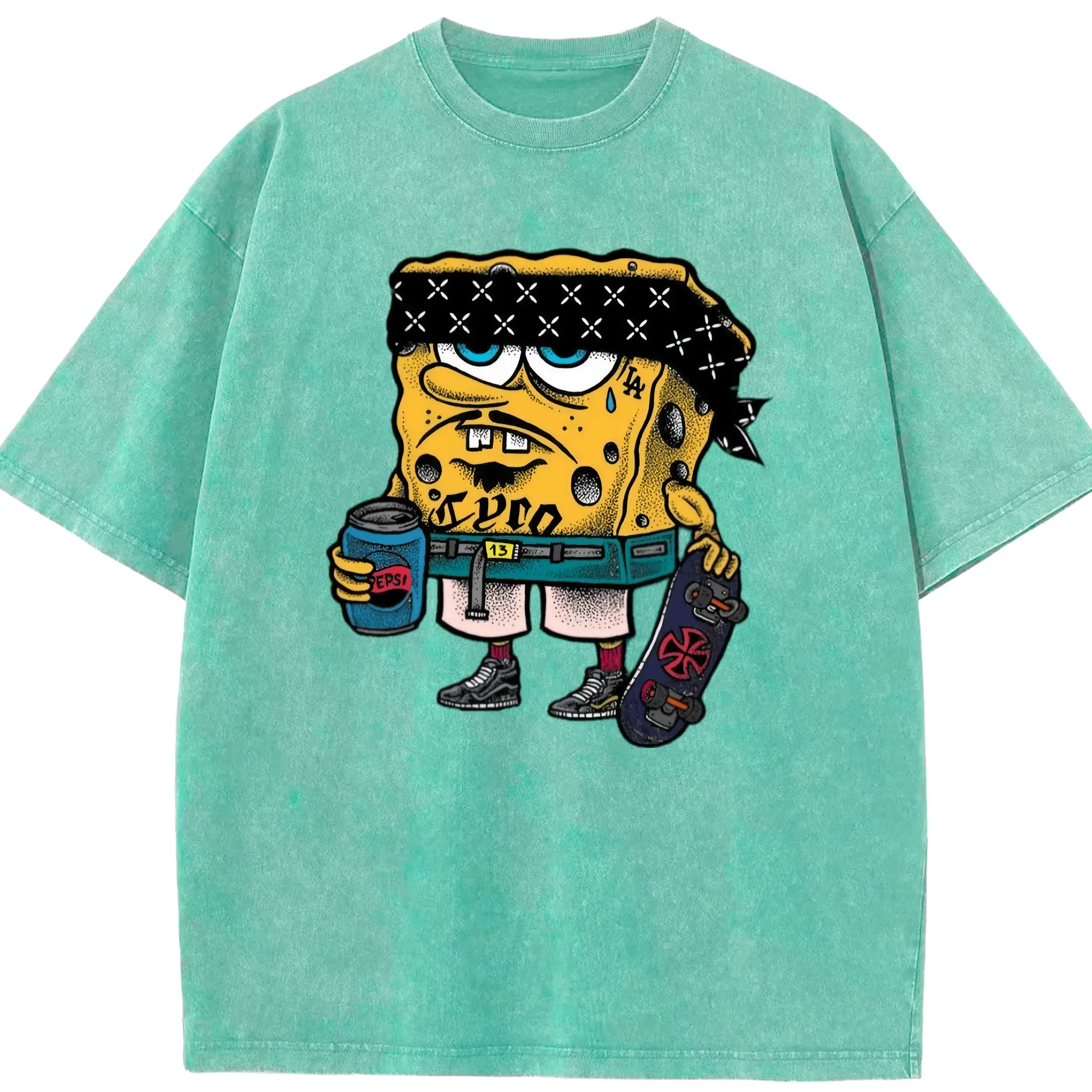 Spongebob squarepants mafia graphic t-shirt - Washed Vintage Look 230g Cotton Oversized T-Shirt With Front Heat Transfer Print – Soft, Lightweight, Stylish Fit – Comfortable Casual Wear For Sports & Everyday Use