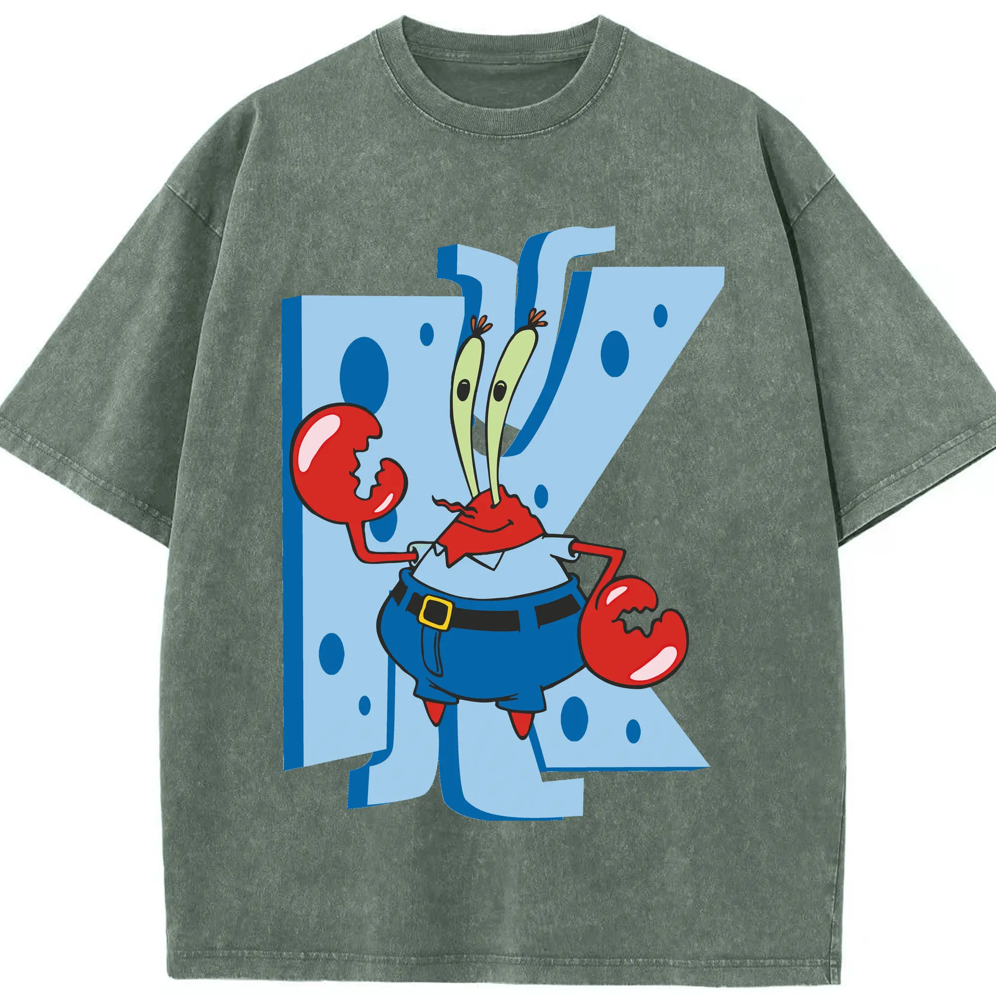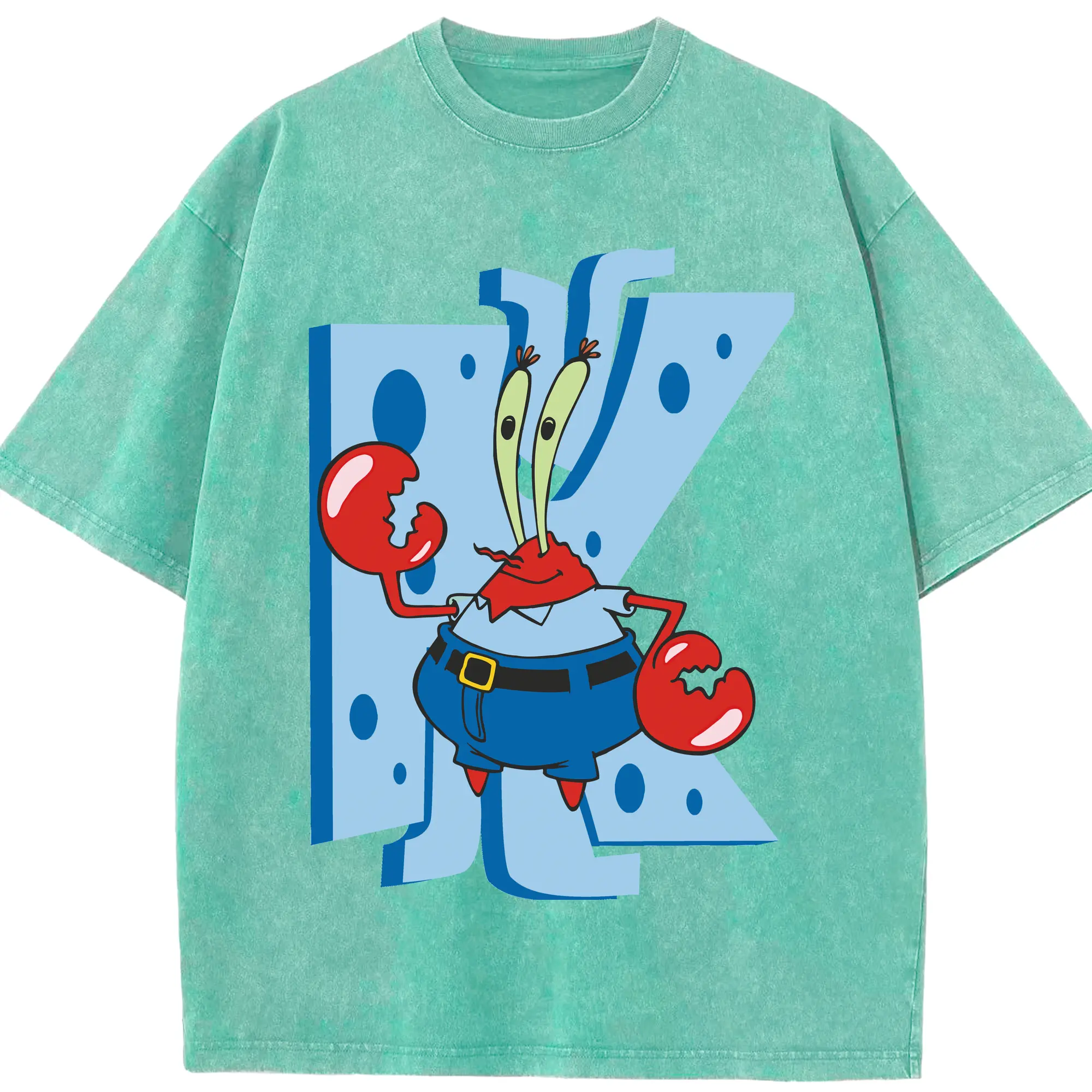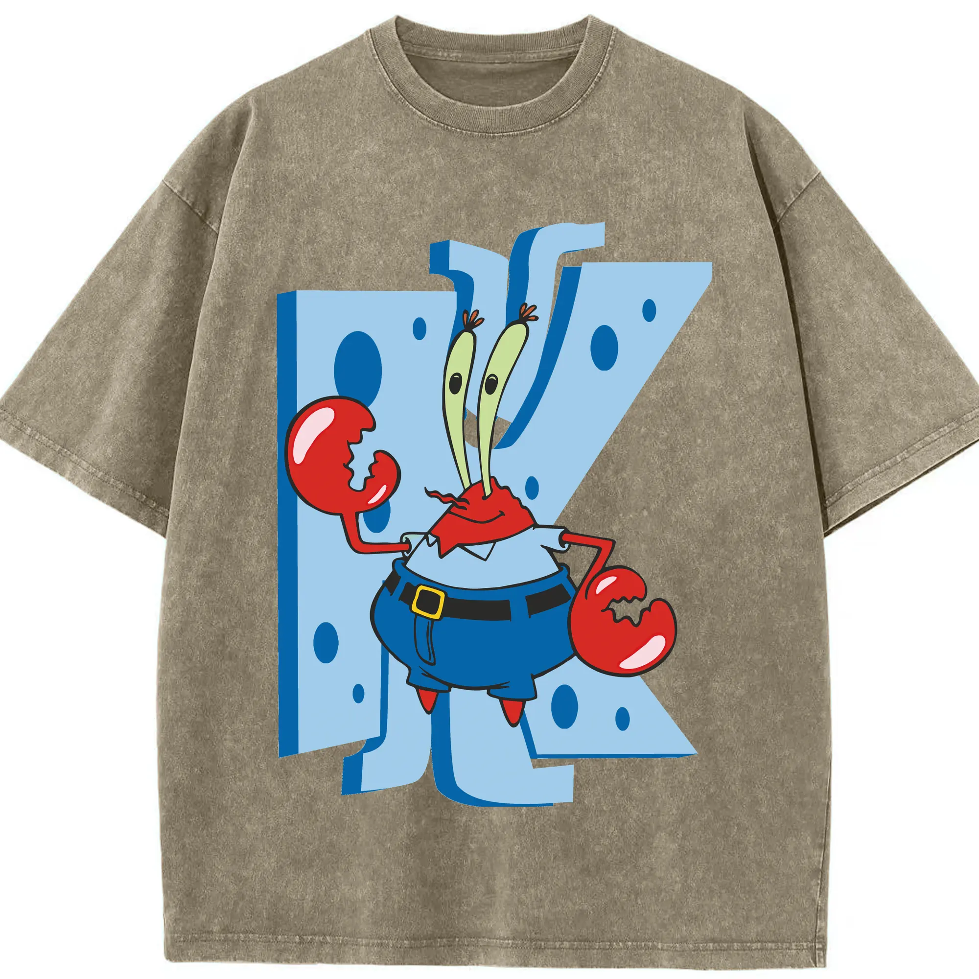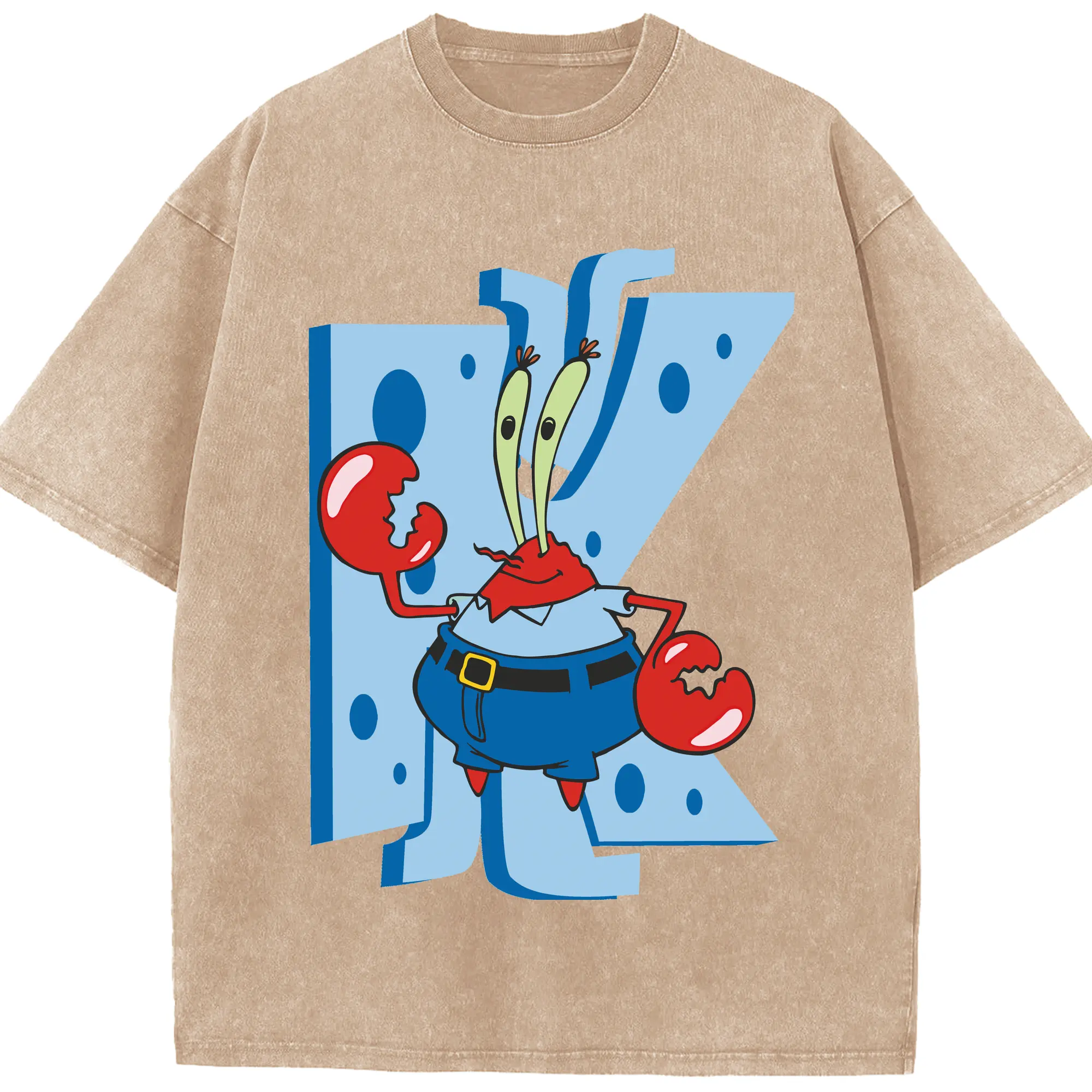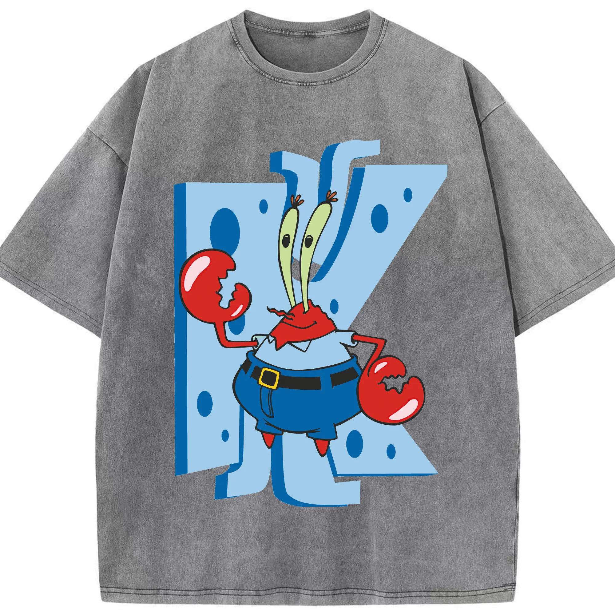 Spongebob Squarepants Mr. Costume Krabs Shirt - Washed Vintage Look 230g Cotton Oversized T-Shirt With Front Heat Transfer Print – Soft, Lightweight, Stylish Fit – Comfortable Casual Wear For Sports & Everyday Use
