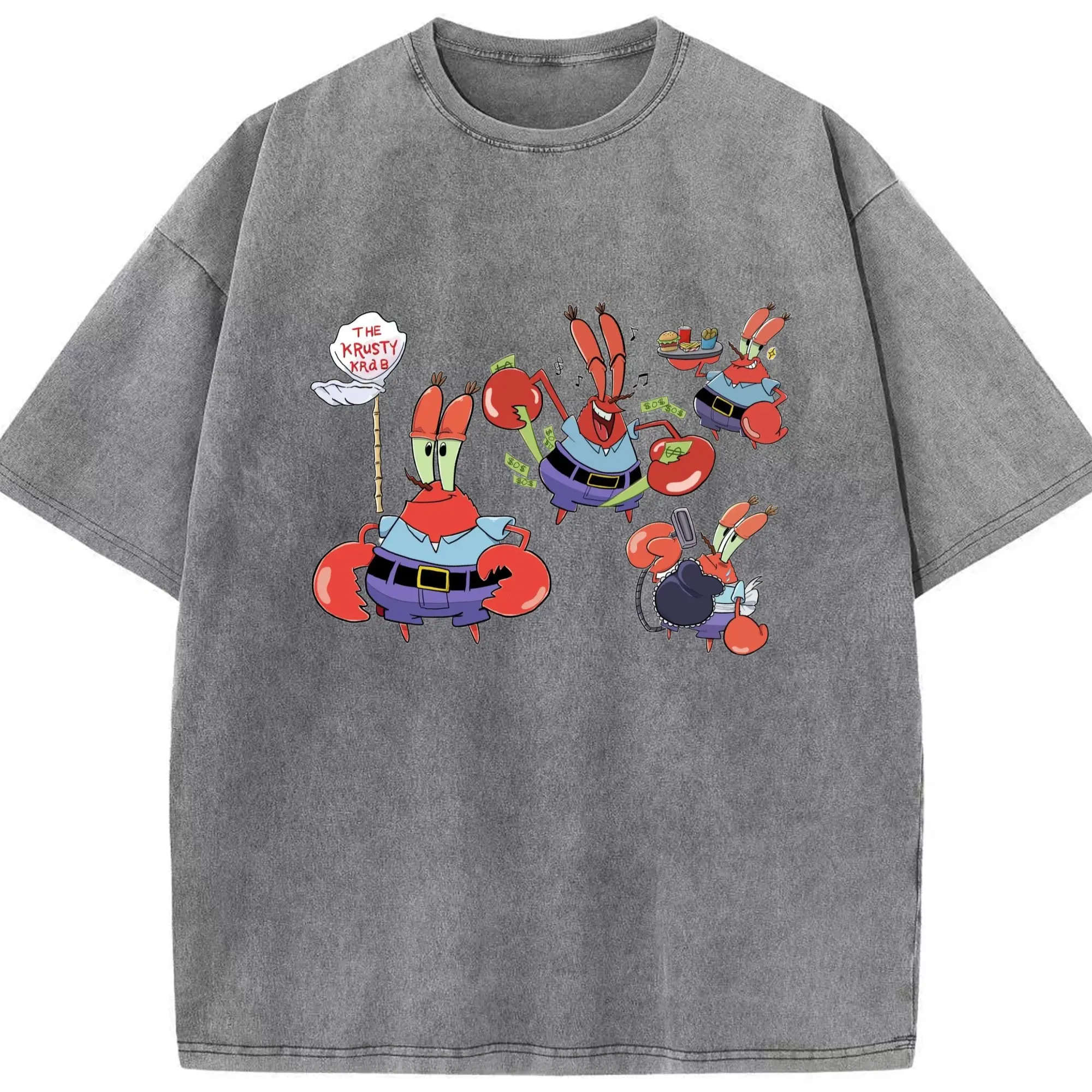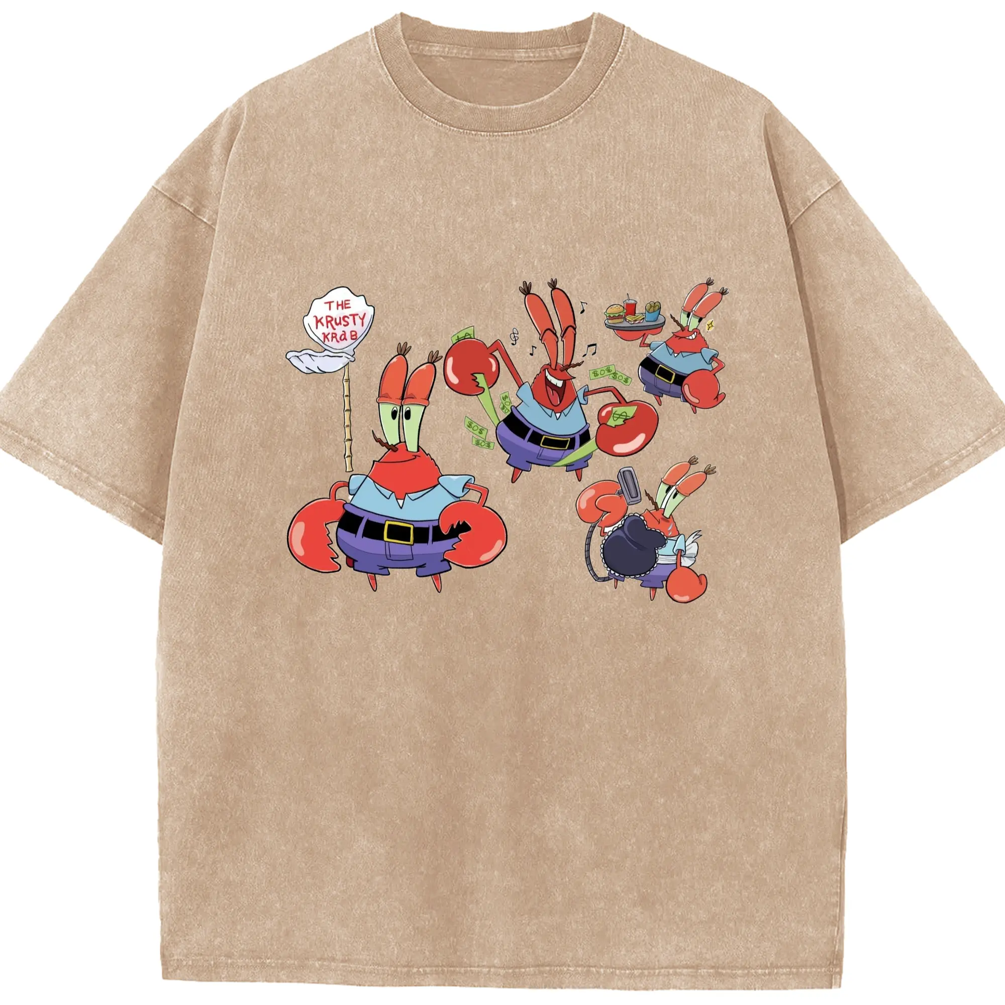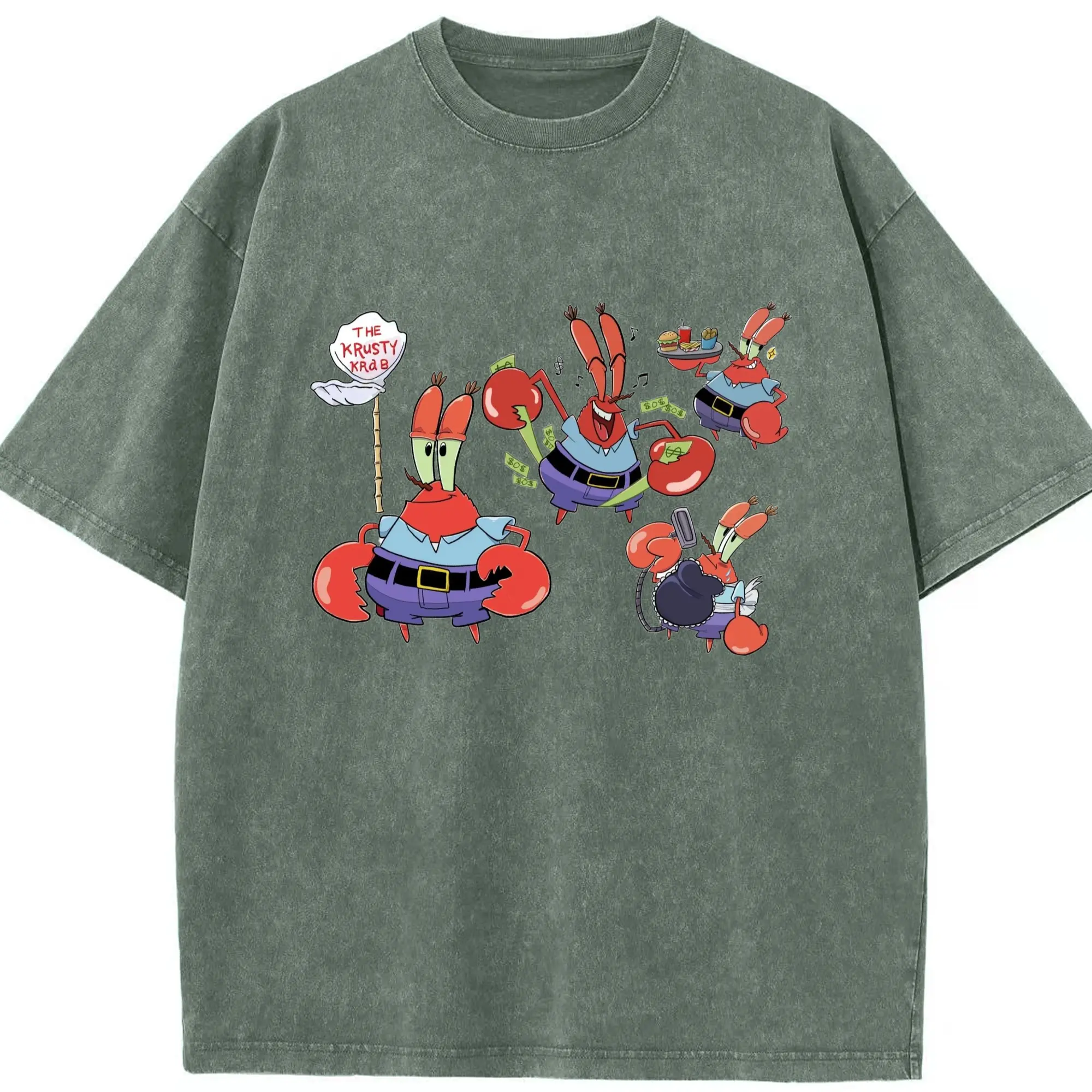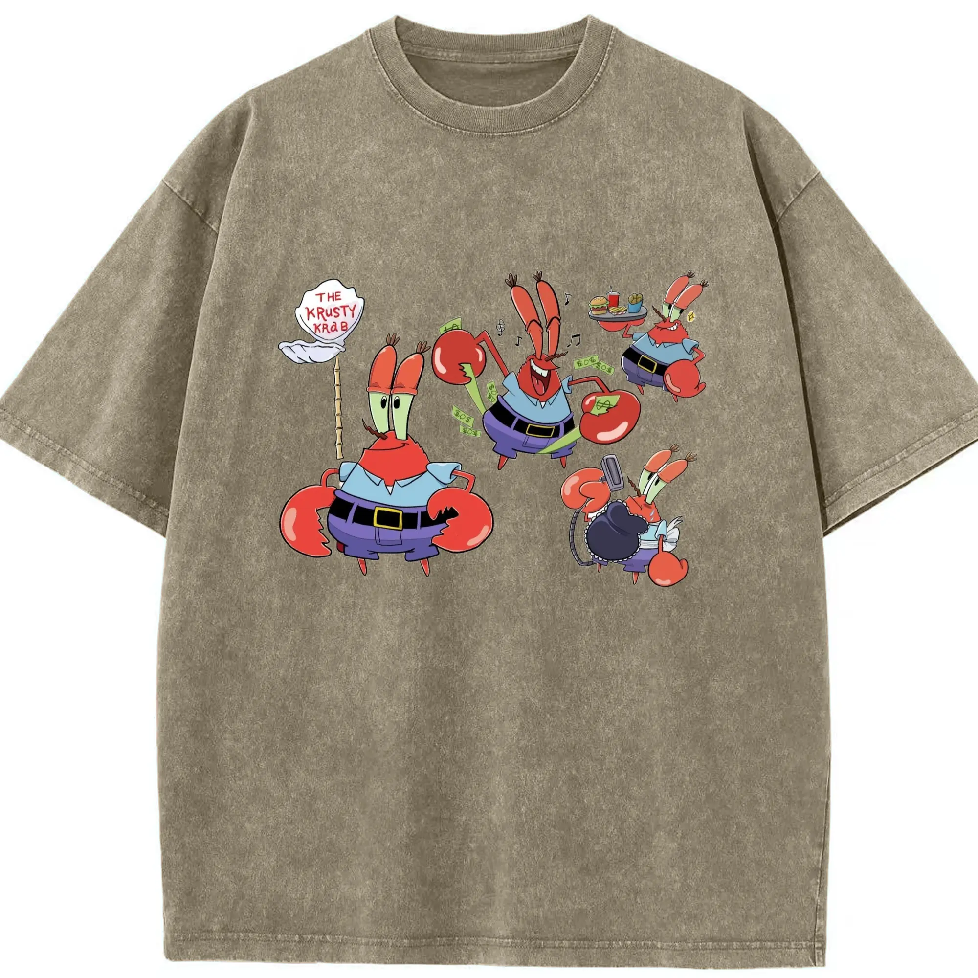 Spongebob Squarepants Mr. Krabs collage t-Shirt - Washed Vintage Look 230g Cotton Oversized T-Shirt With Front Heat Transfer Print – Soft, Lightweight, Stylish Fit – Comfortable Casual Wear For Sports & Everyday Use