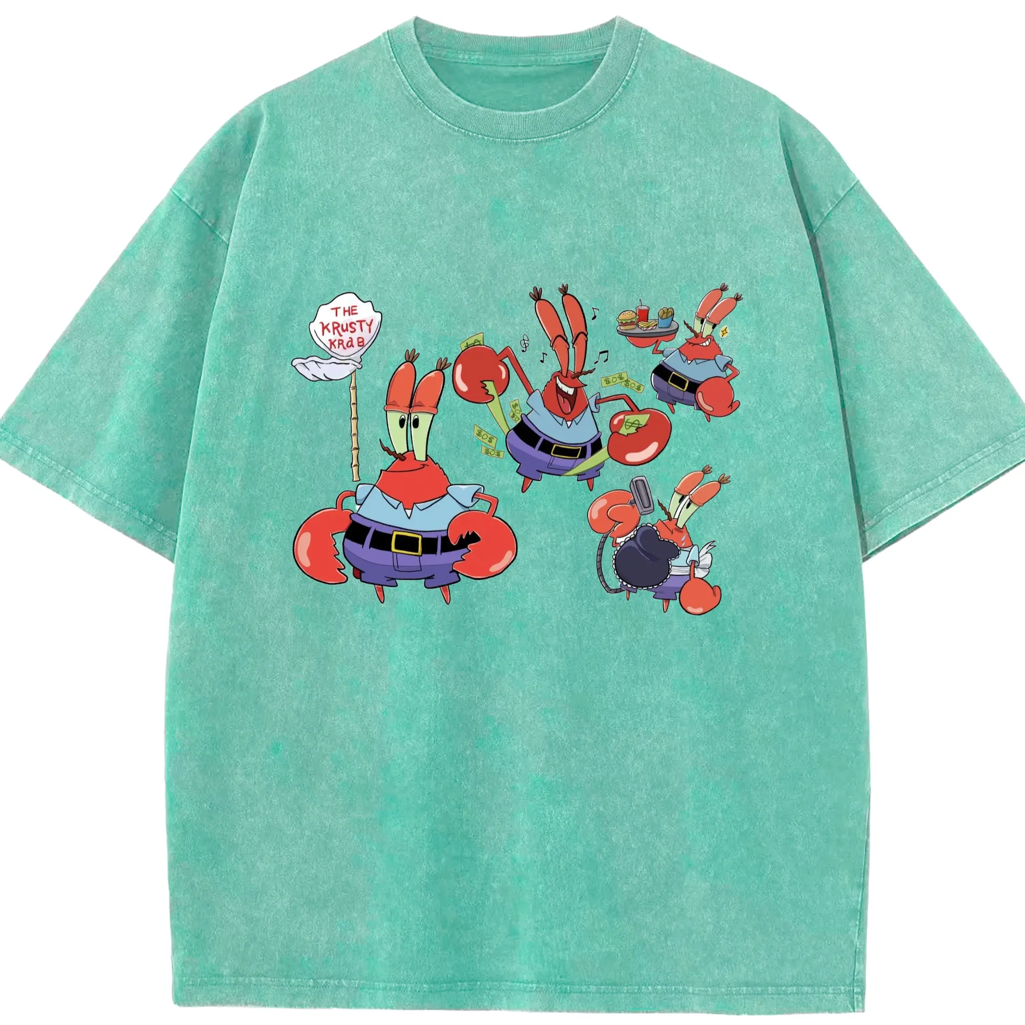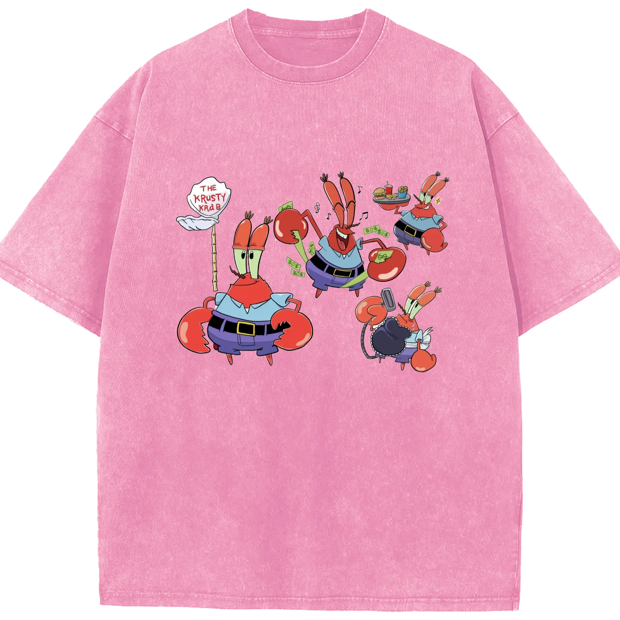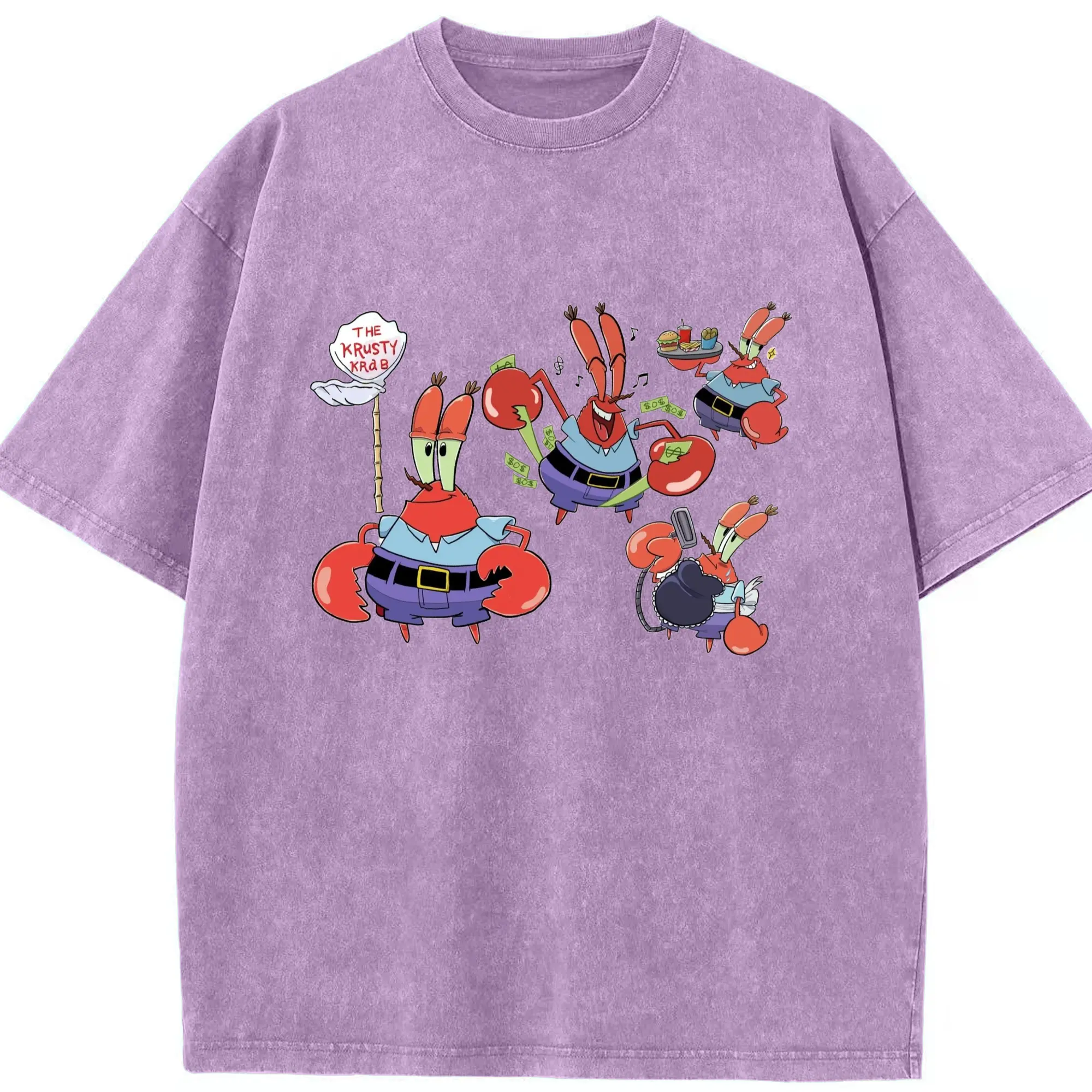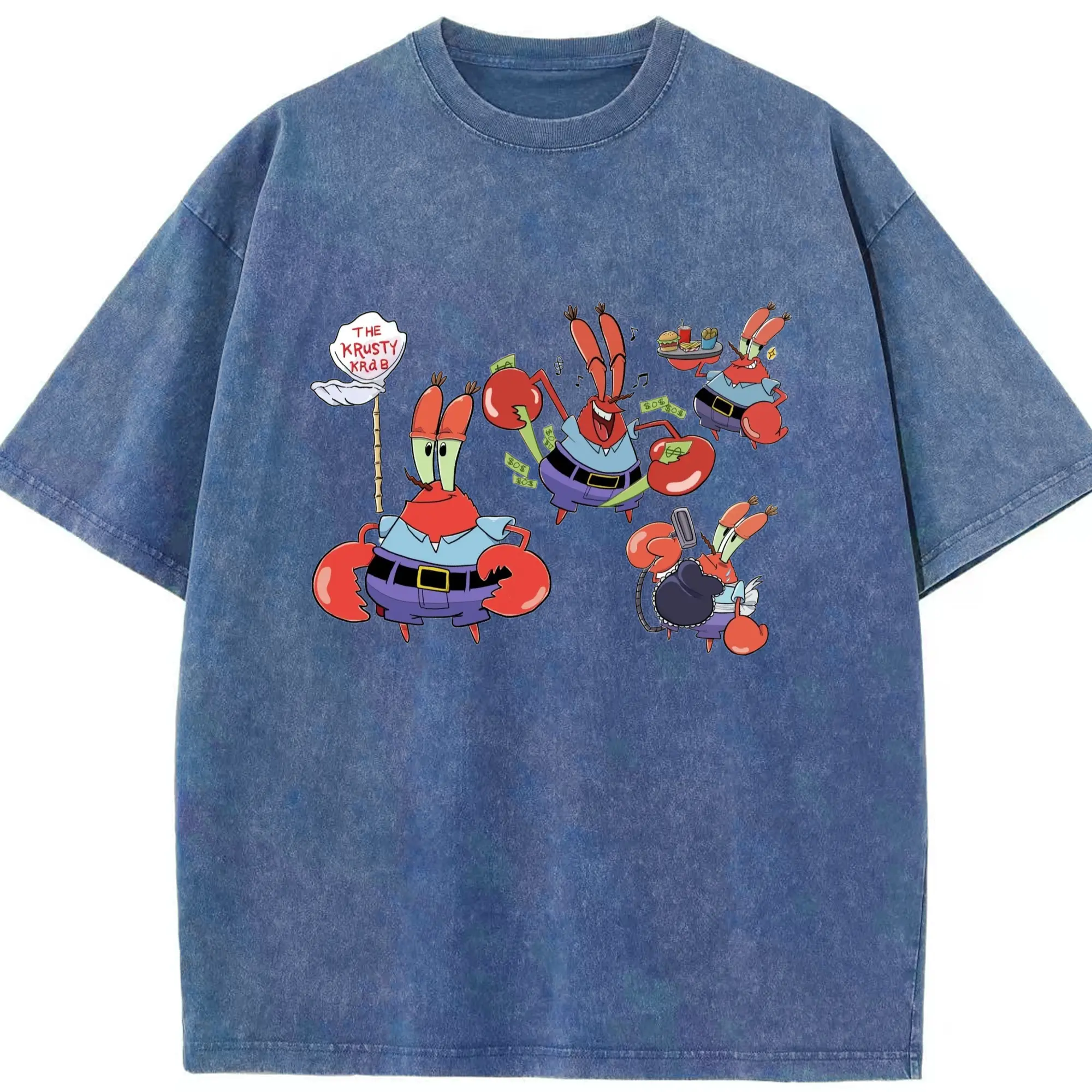 Spongebob Squarepants Mr. Krabs collage t-Shirt - Washed Vintage Look 230g Cotton Oversized T-Shirt With Front Heat Transfer Print – Soft, Lightweight, Stylish Fit – Comfortable Casual Wear For Sports & Everyday Use