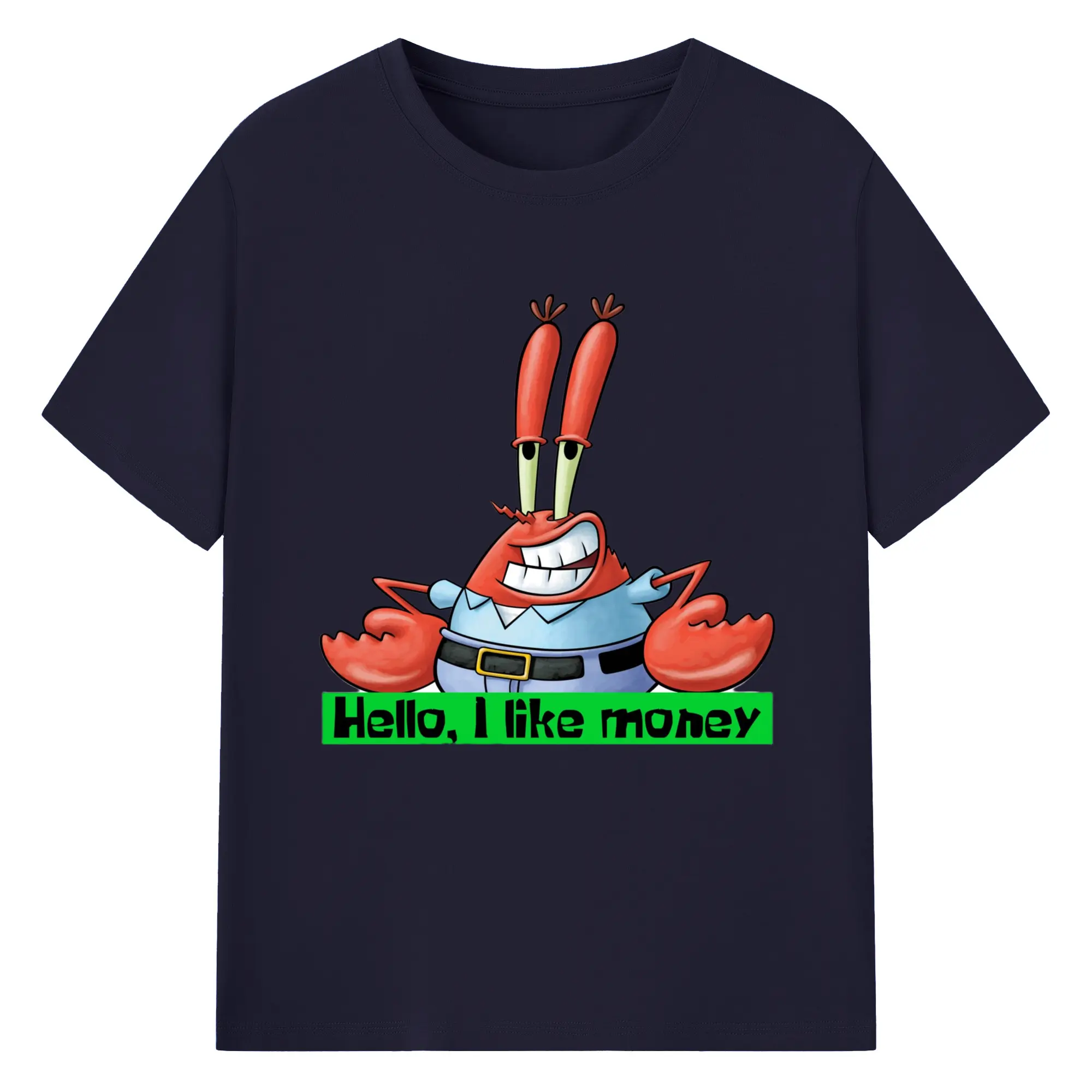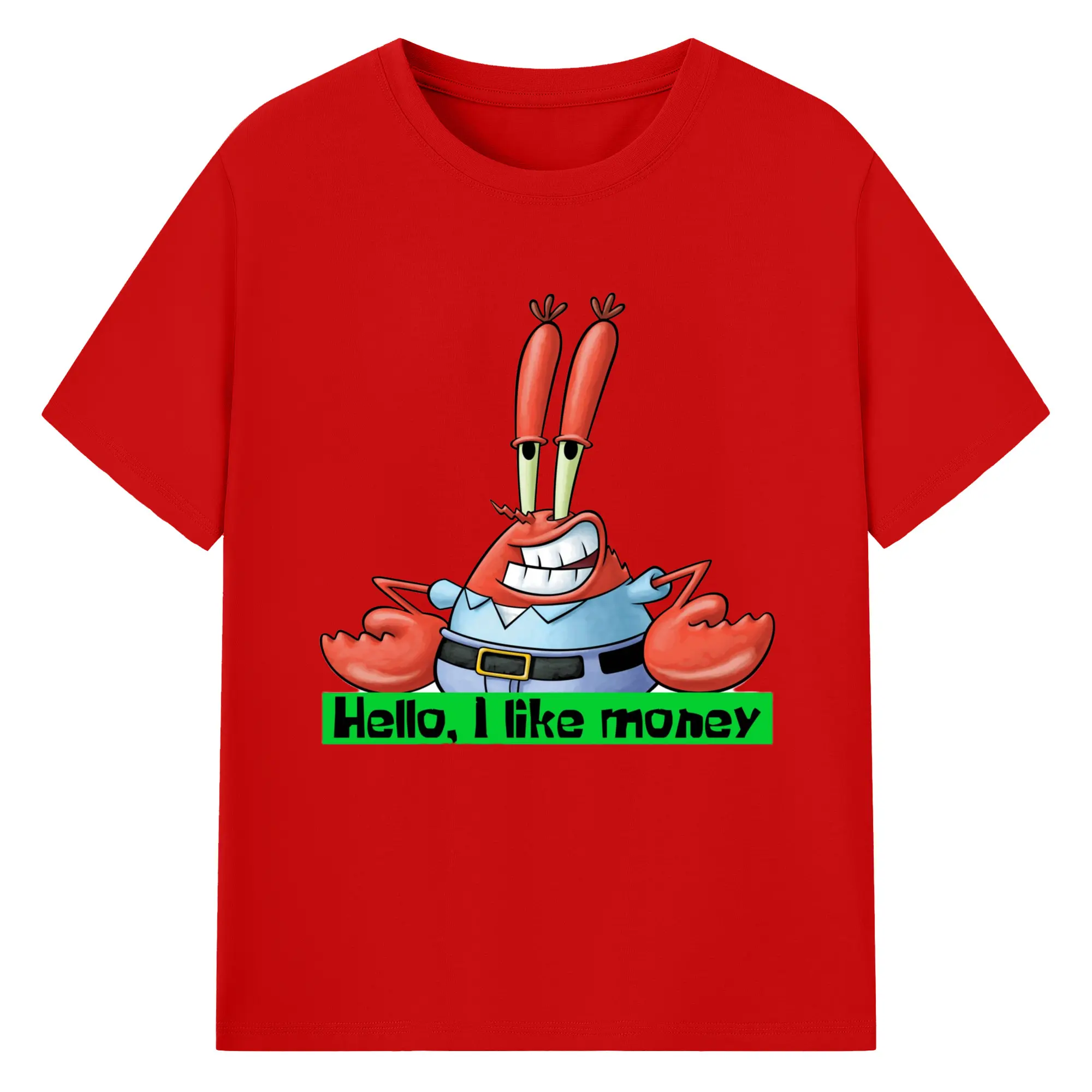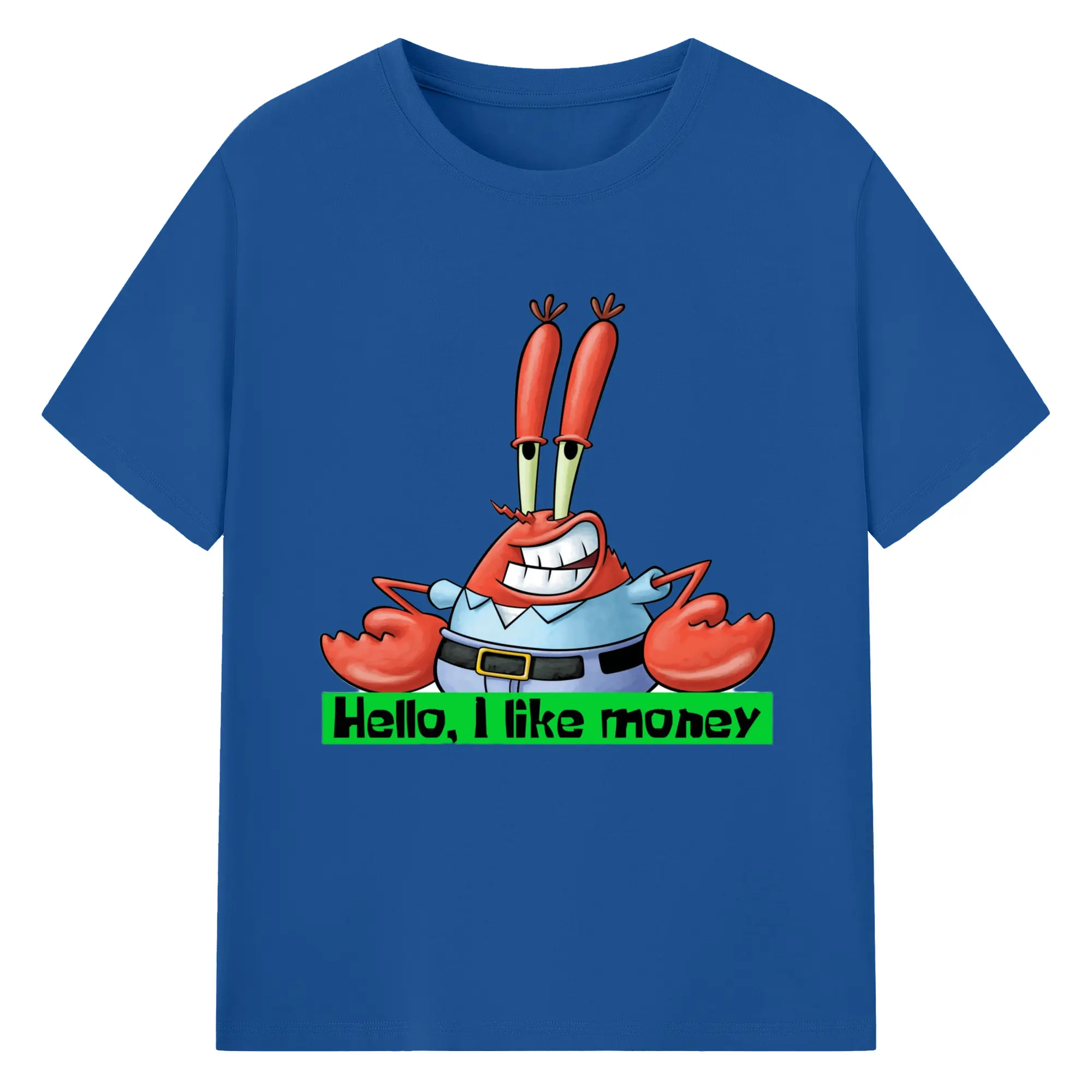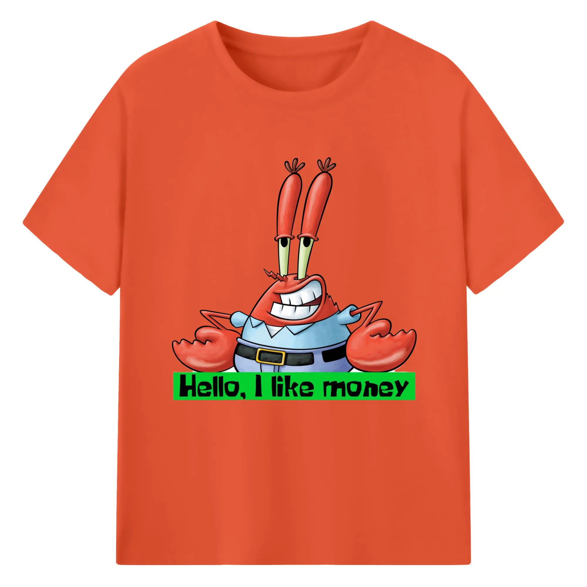 Spongebob Squarepants Mr. Krabs i like monry Shirt - 180g Cotton T-Shirt With Front Heat Transfer Print – Soft, Lightweight, Fitted Design – Comfortable Casual Wear For Sports & Everyday Use
