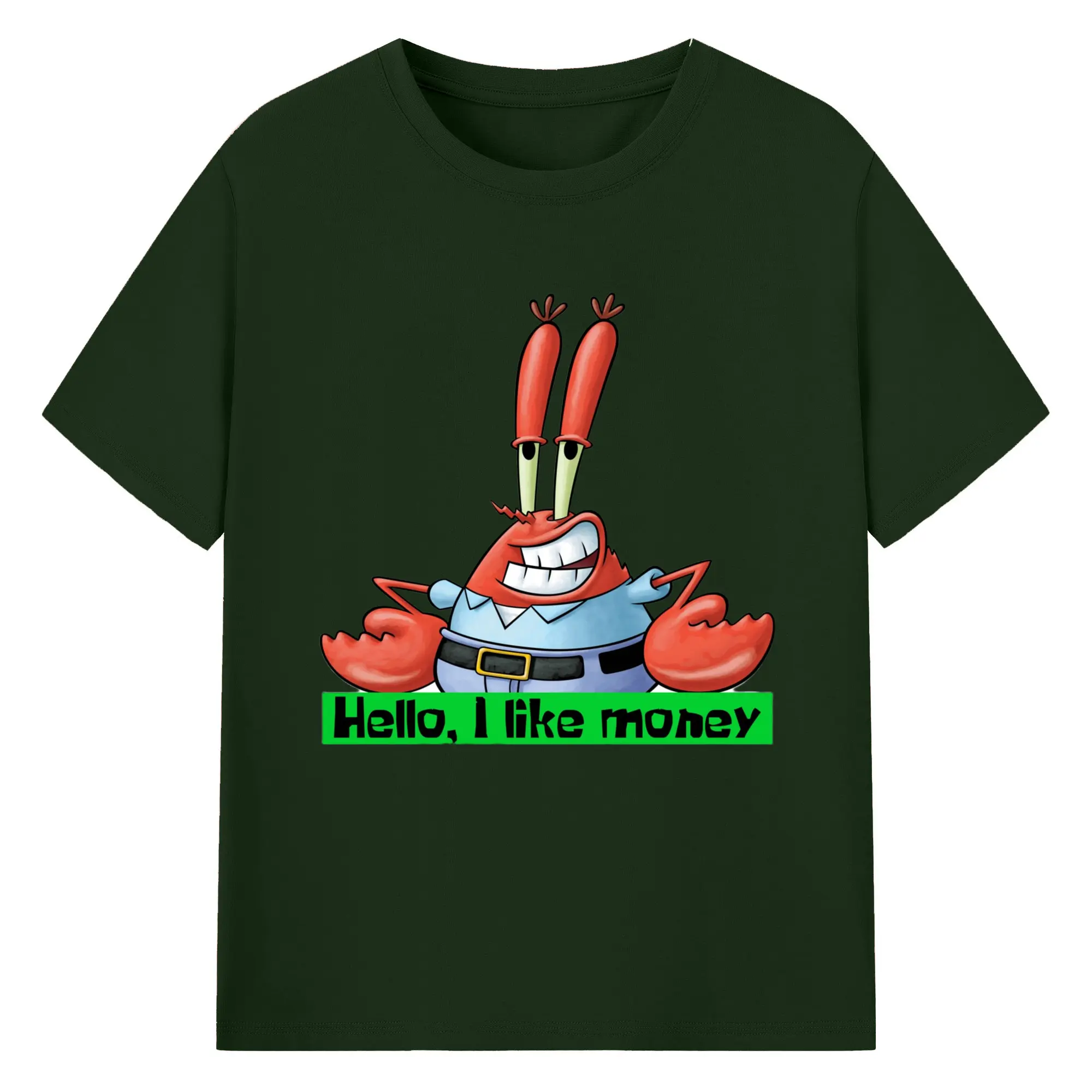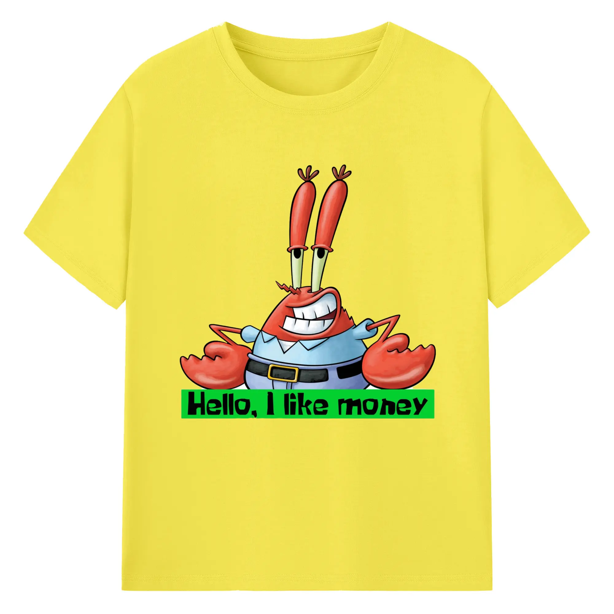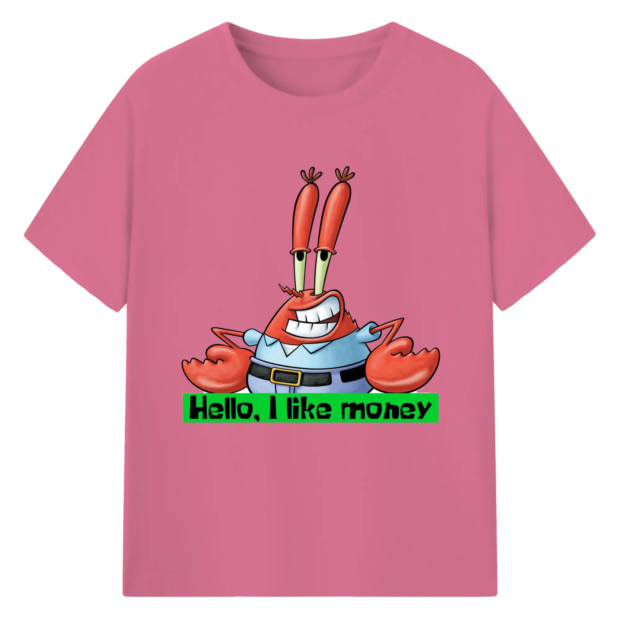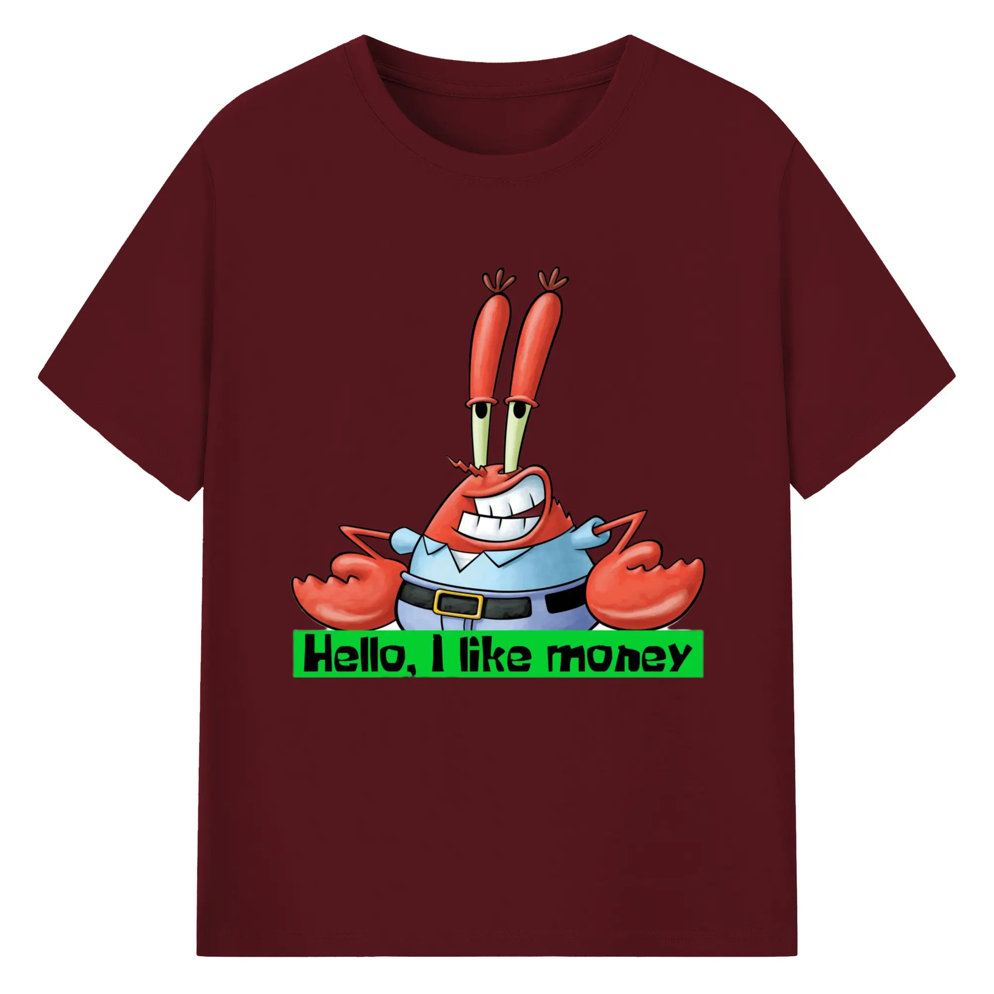 Spongebob Squarepants Mr. Krabs i like monry Shirt - 180g Cotton T-Shirt With Front Heat Transfer Print – Soft, Lightweight, Fitted Design – Comfortable Casual Wear For Sports & Everyday Use