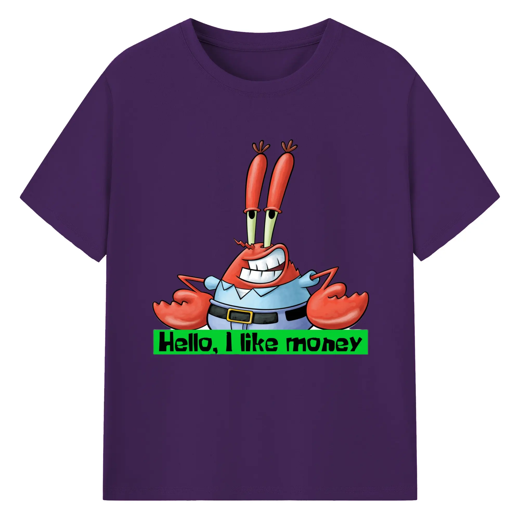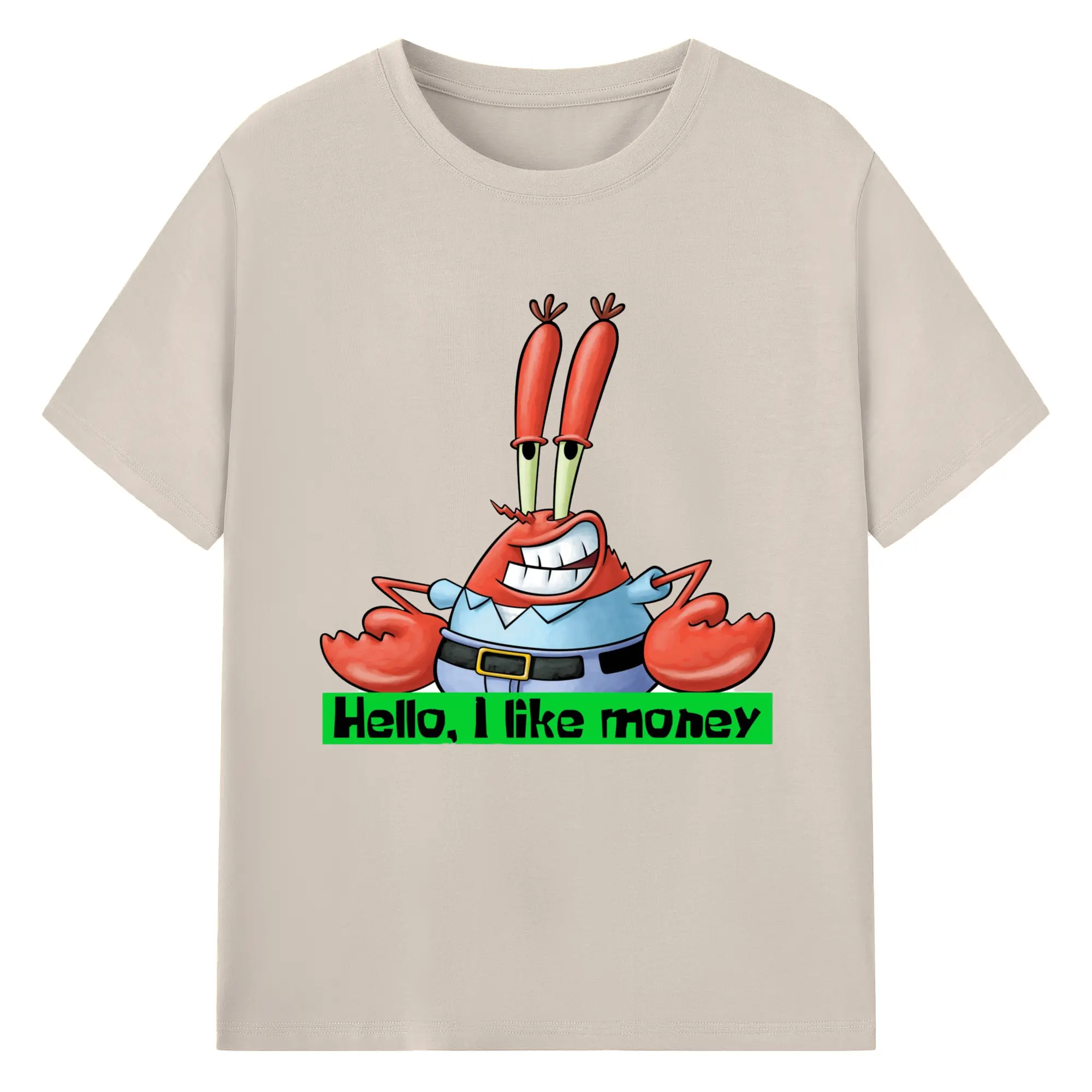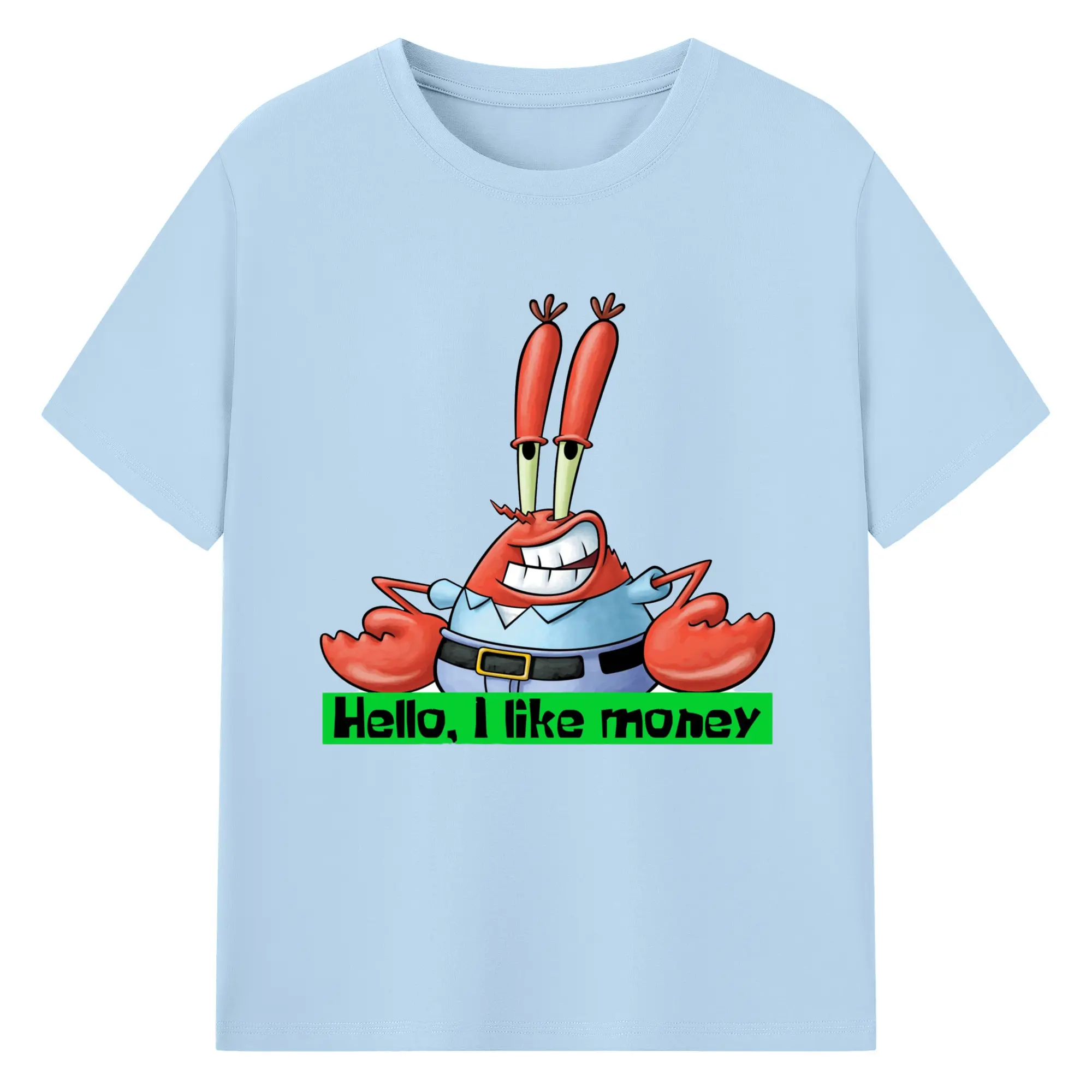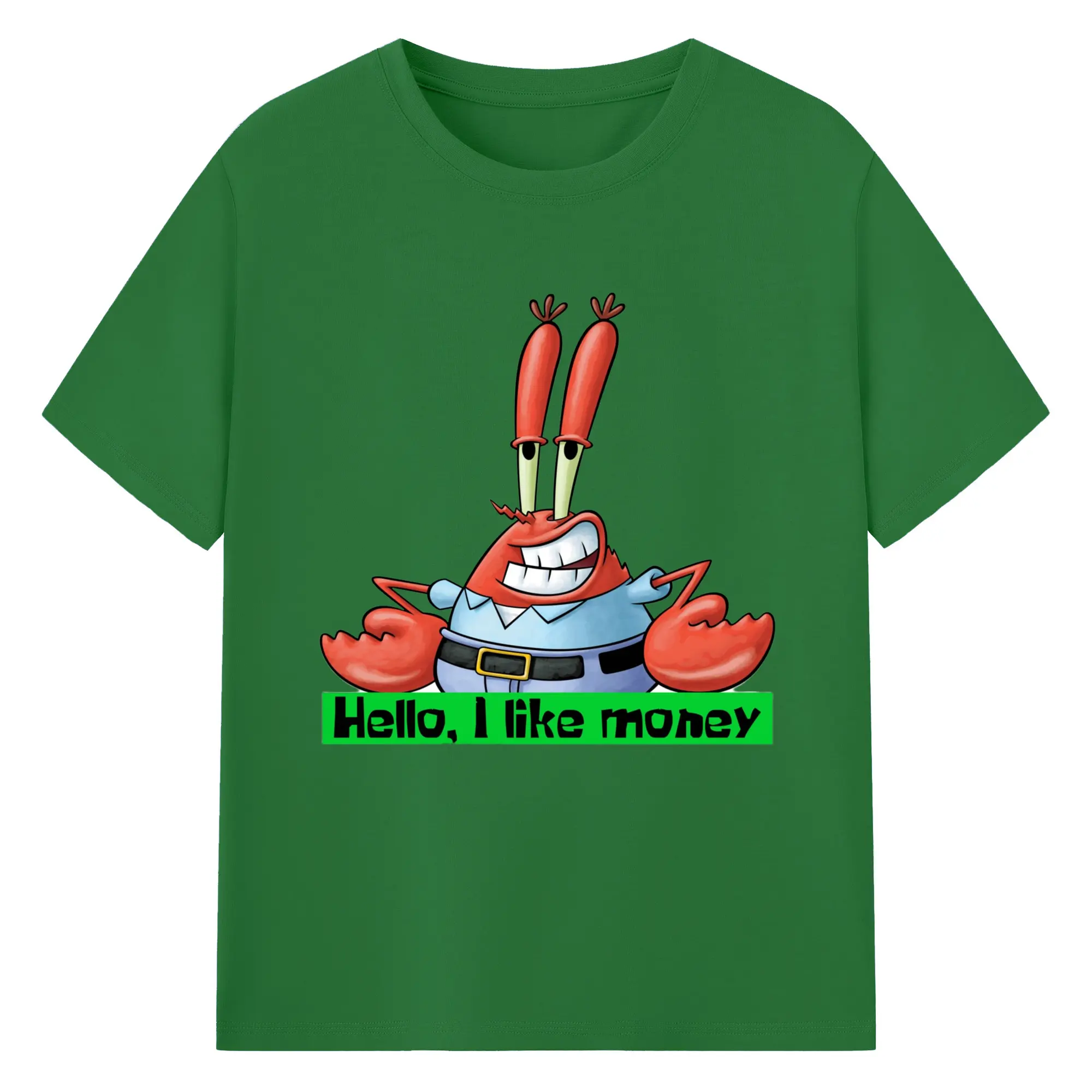 Spongebob Squarepants Mr. Krabs i like monry Shirt - 180g Cotton T-Shirt With Front Heat Transfer Print – Soft, Lightweight, Fitted Design – Comfortable Casual Wear For Sports & Everyday Use