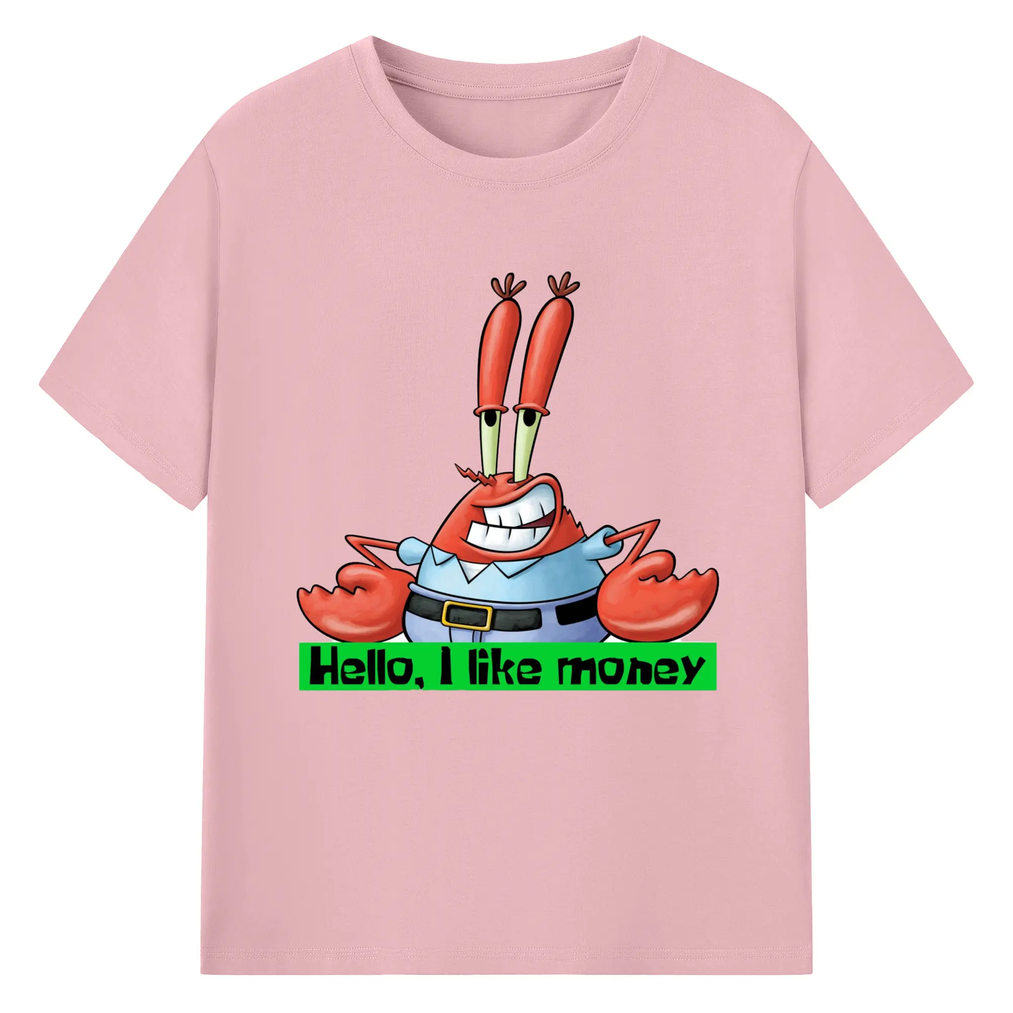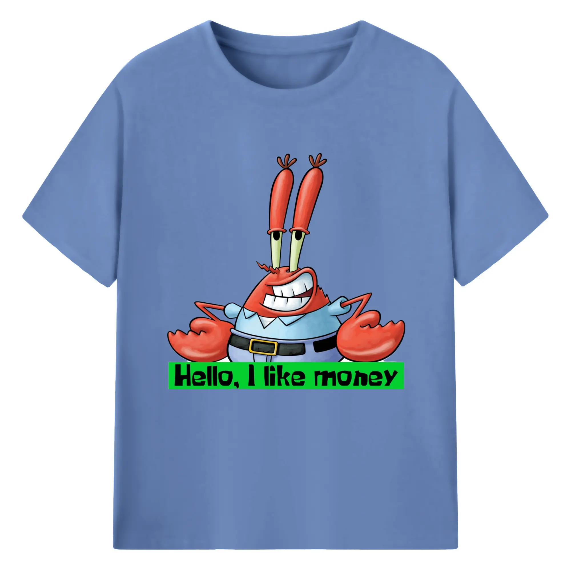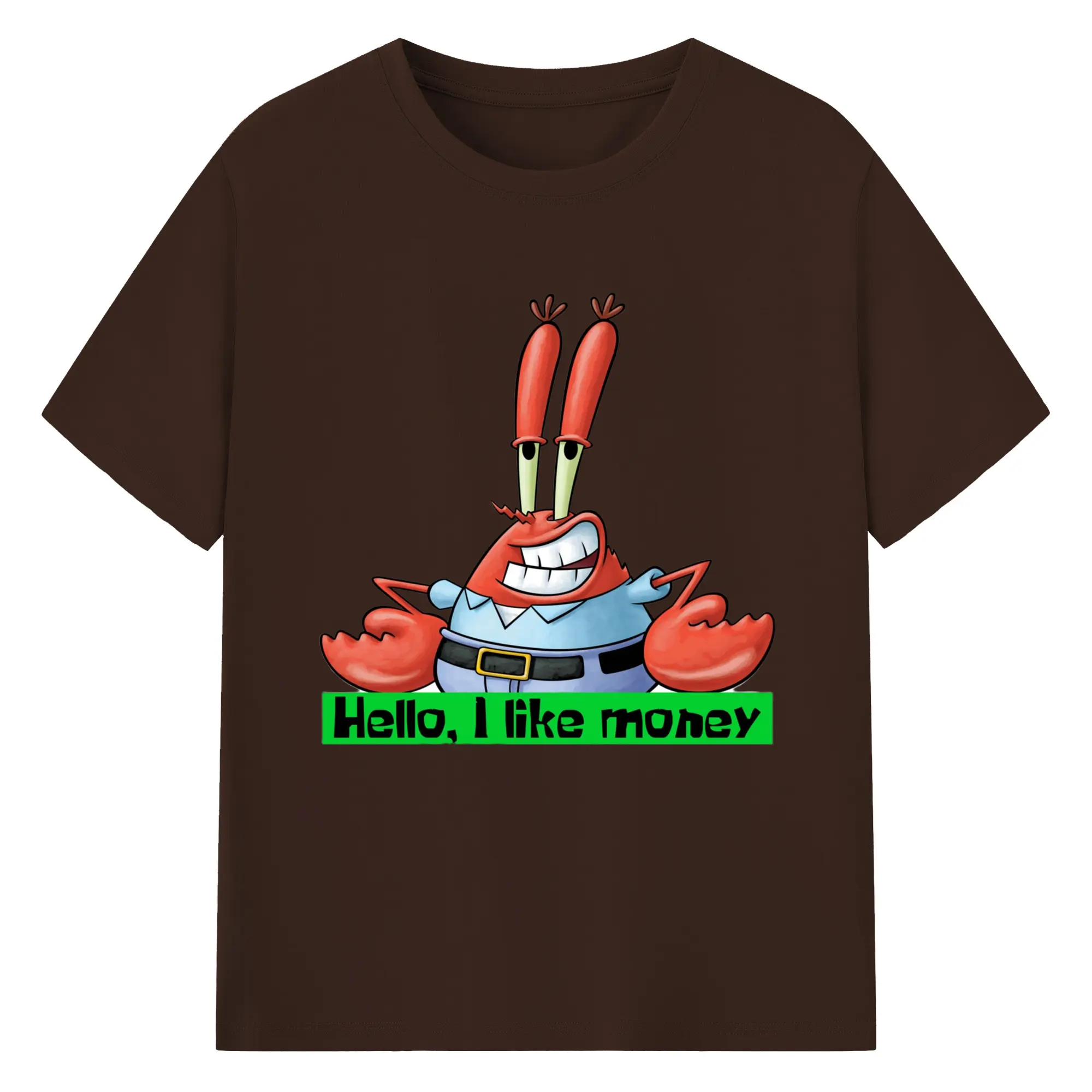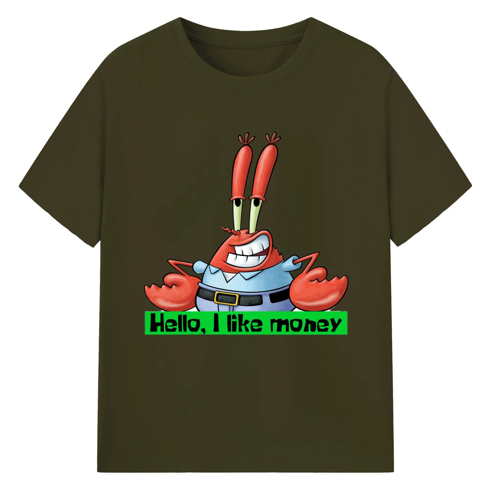 Spongebob Squarepants Mr. Krabs i like monry Shirt - 180g Cotton T-Shirt With Front Heat Transfer Print – Soft, Lightweight, Fitted Design – Comfortable Casual Wear For Sports & Everyday Use