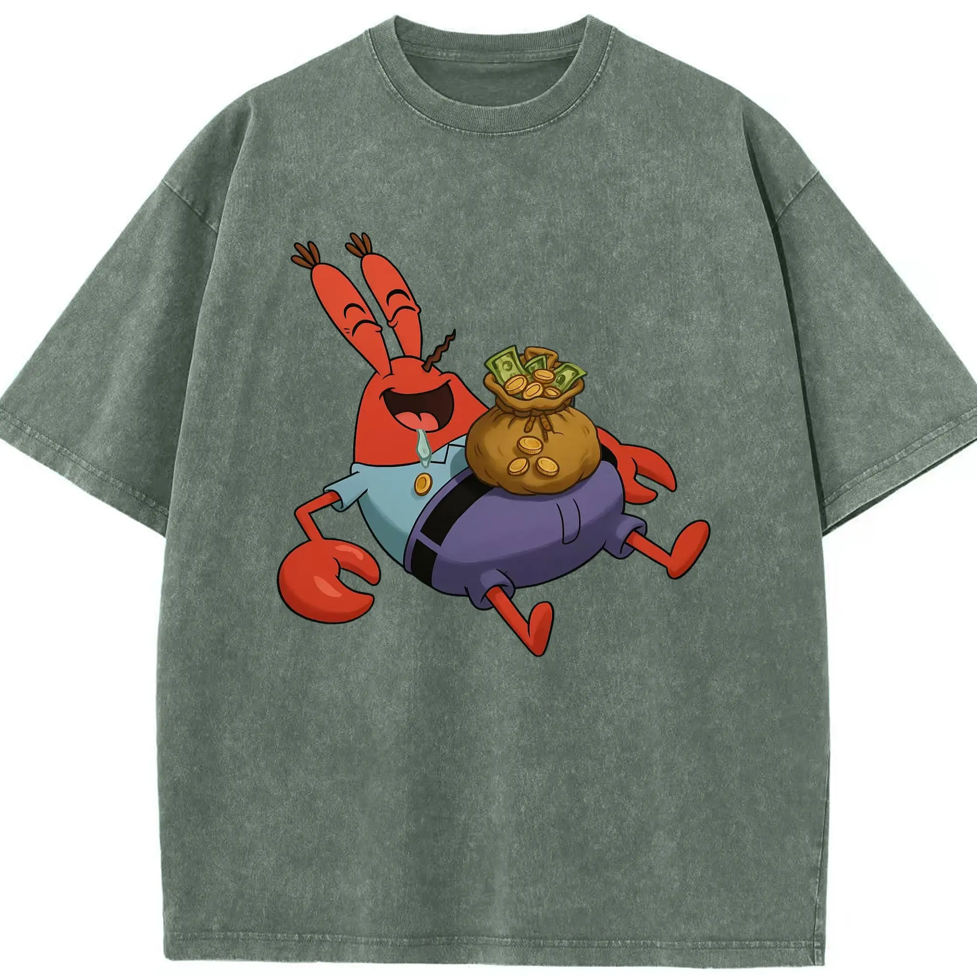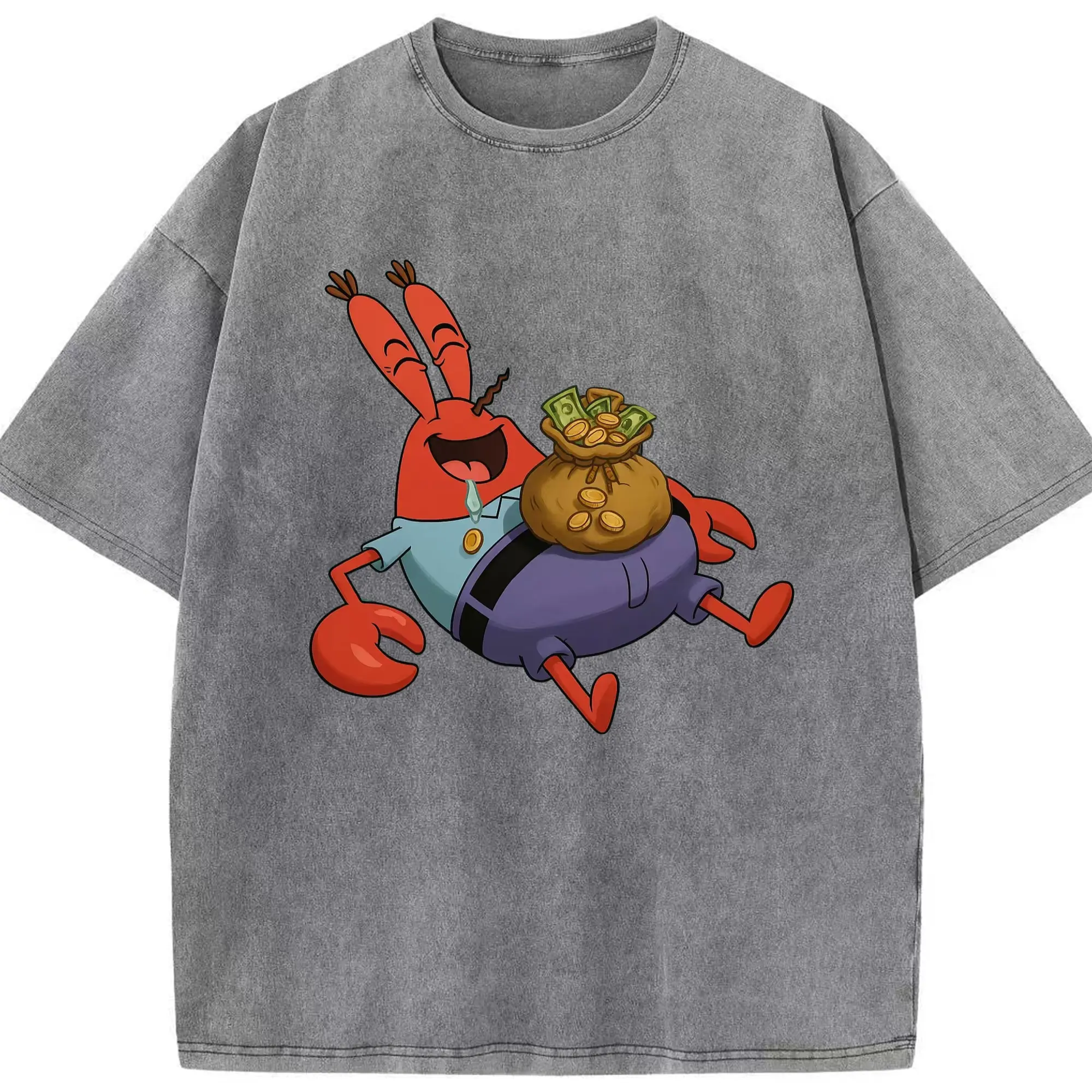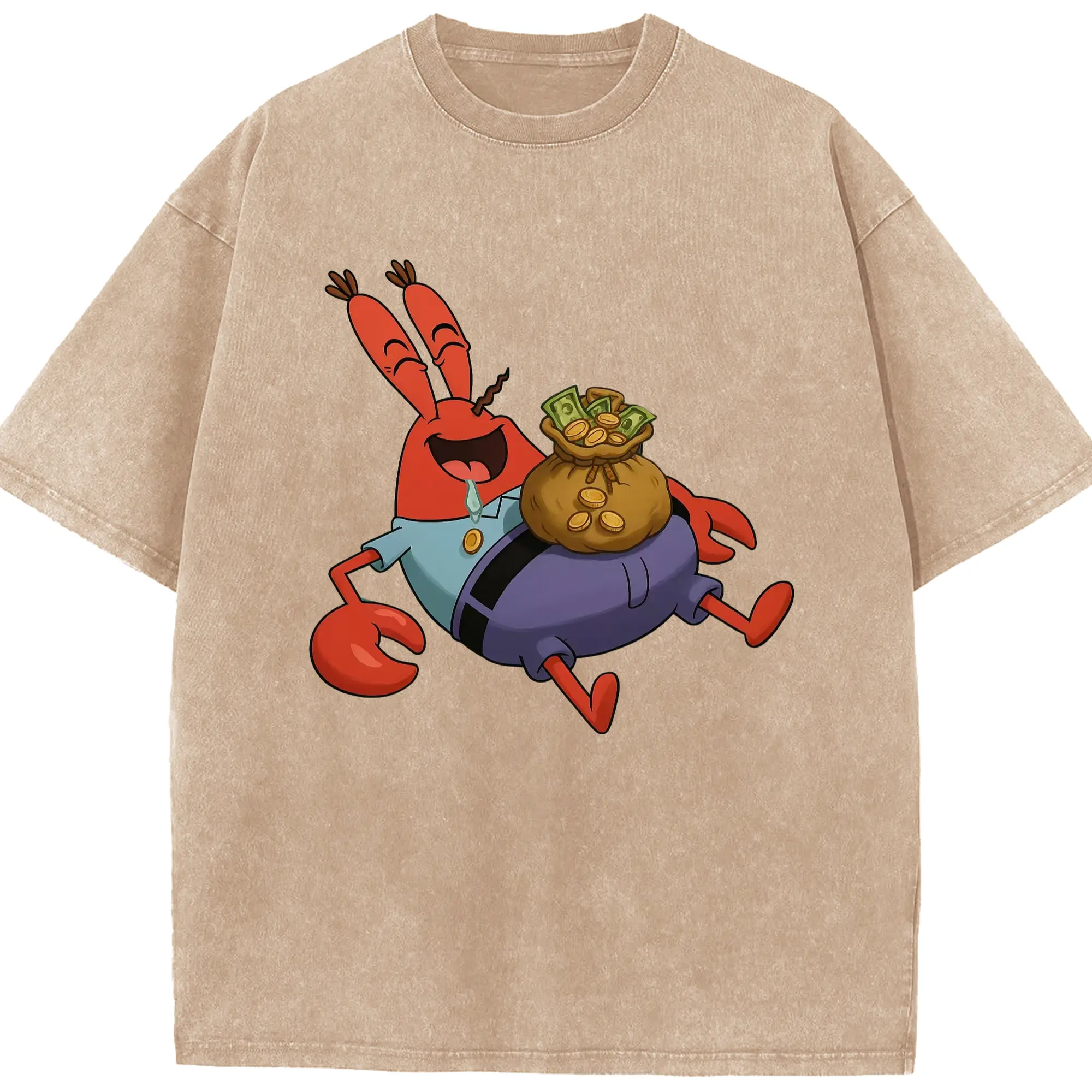Spongebob Squarepants Mr. Krabs like money tee - Washed Vintage Look 230g Cotton Oversized T-Shirt With Front Heat Transfer Print – Soft, Lightweight, Stylish Fit – Comfortable Casual Wear For Sports & Everyday Use