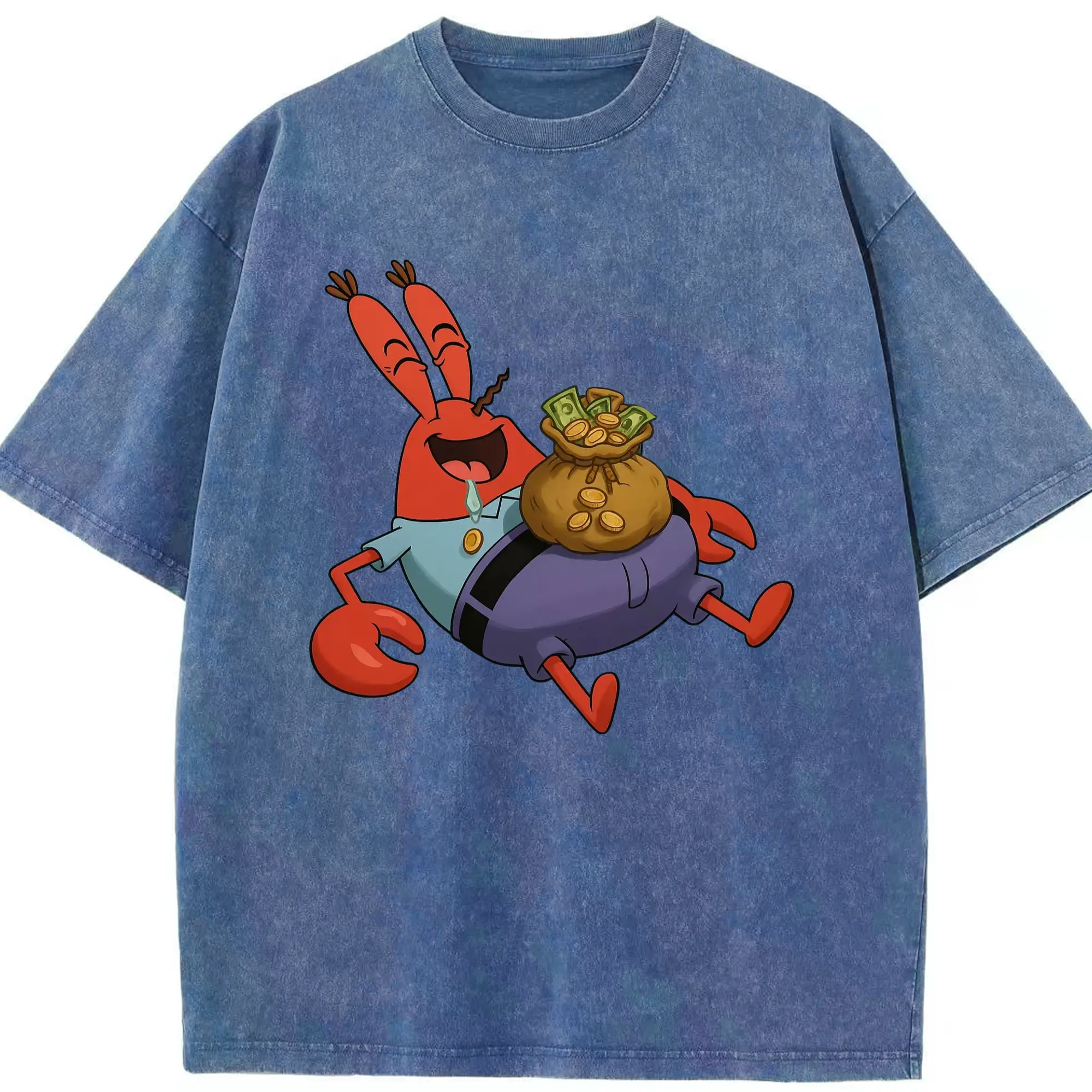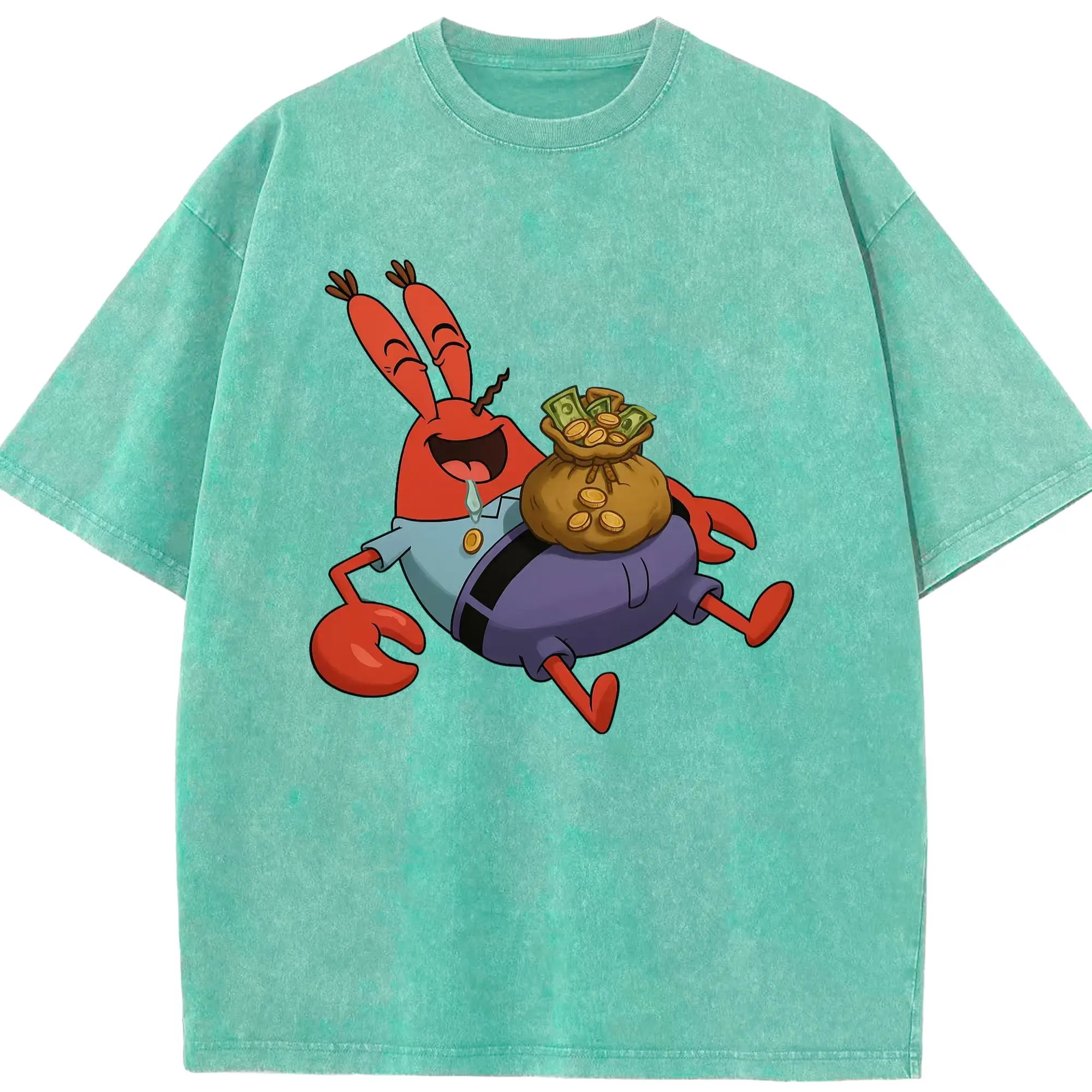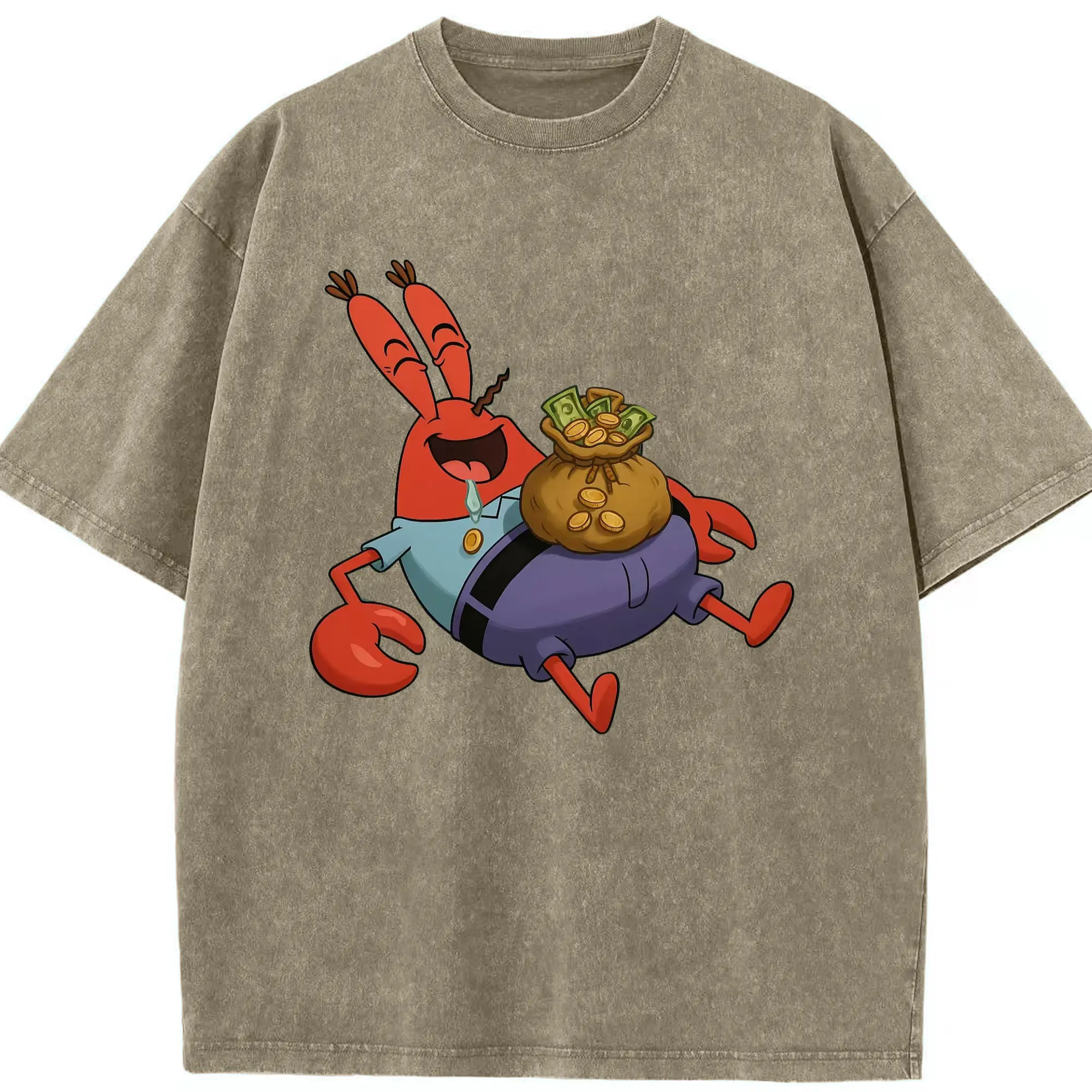 Spongebob Squarepants Mr. Krabs like money tee - Washed Vintage Look 230g Cotton Oversized T-Shirt With Front Heat Transfer Print – Soft, Lightweight, Stylish Fit – Comfortable Casual Wear For Sports & Everyday Use