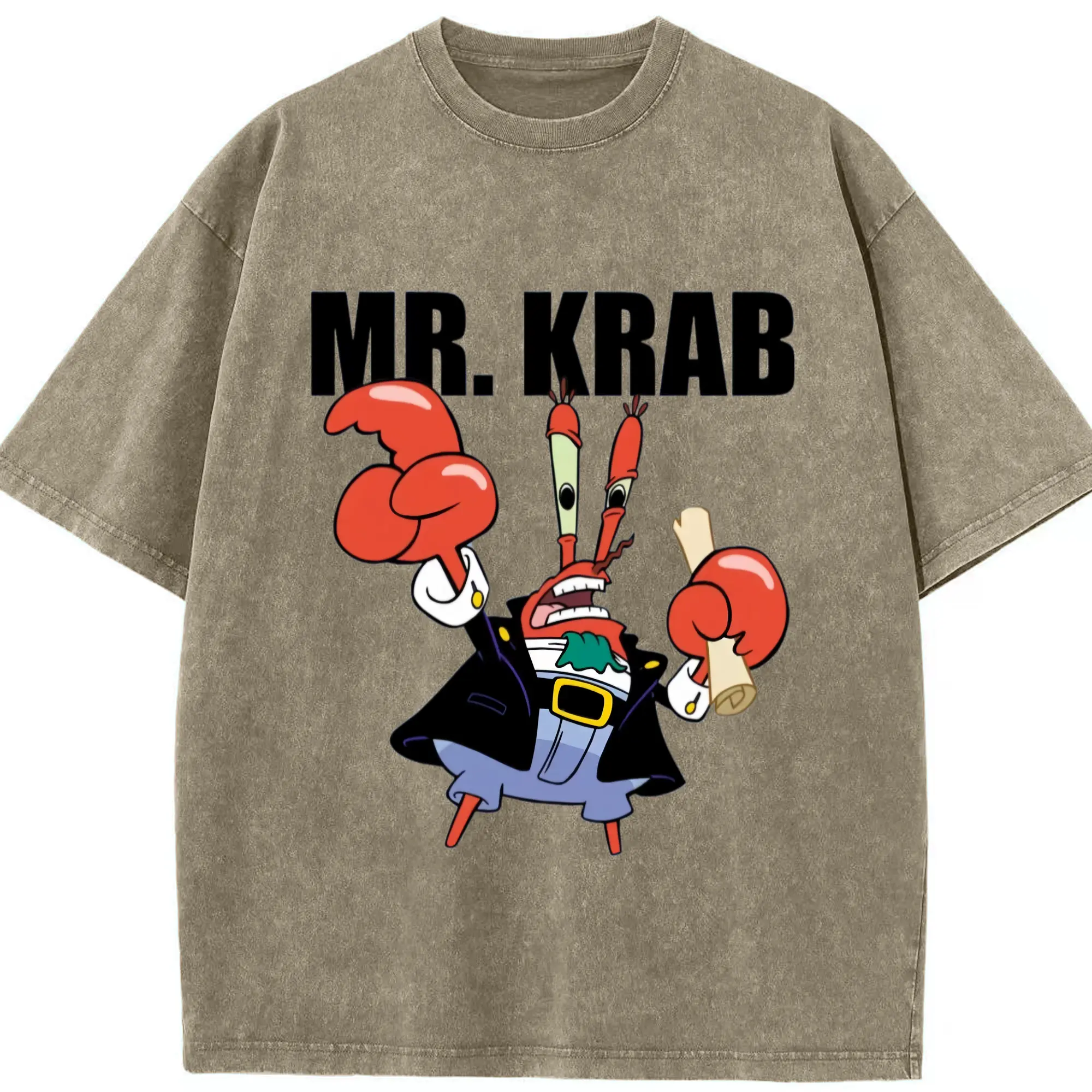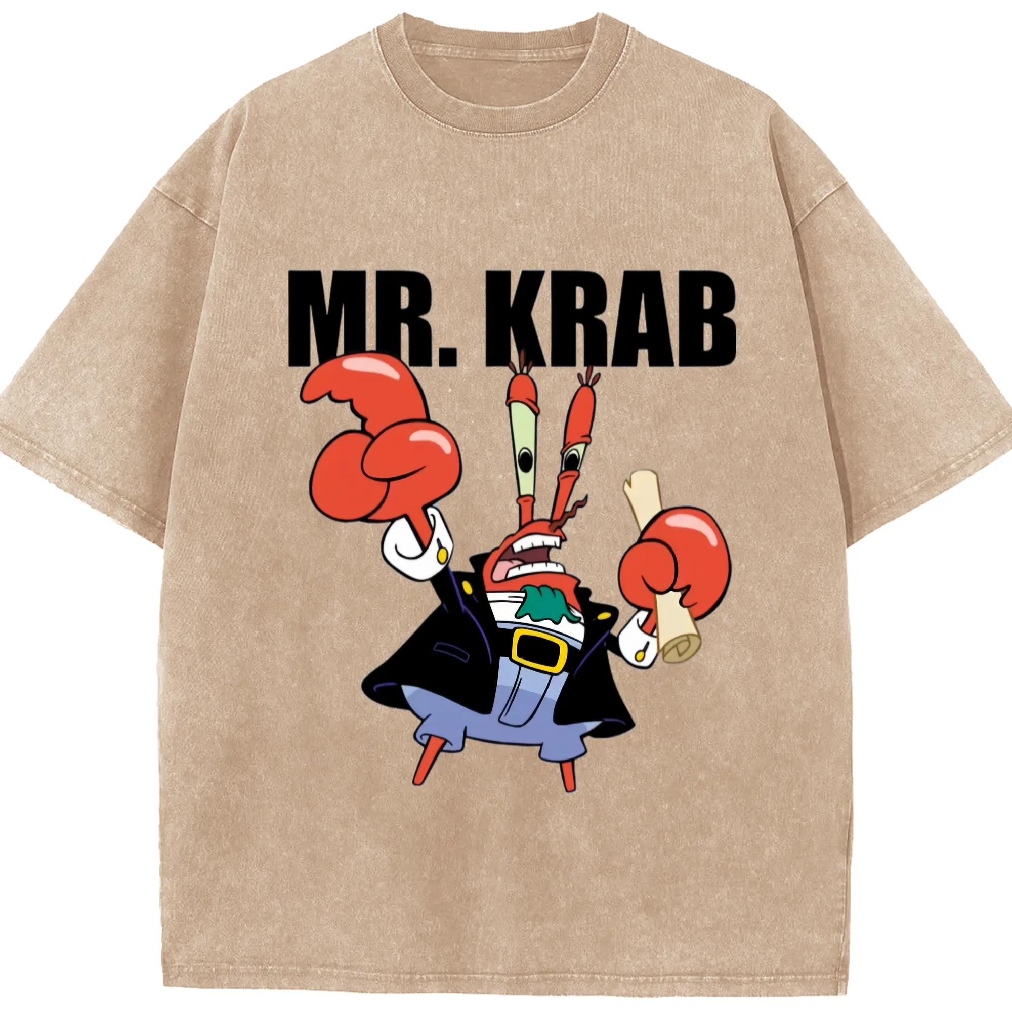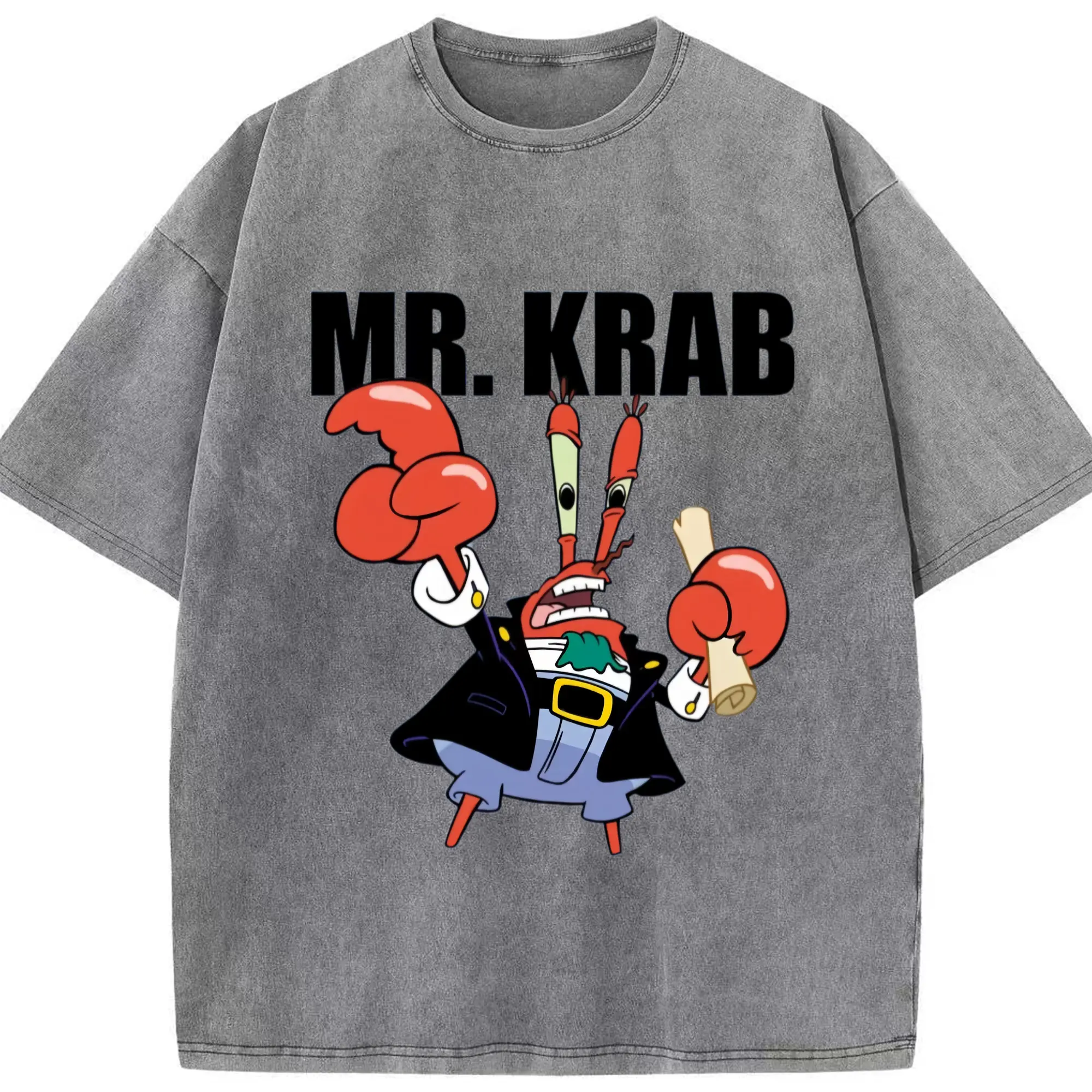 Spongebob Squarepants Mr. Krabs tee - Washed Vintage Look 230g Cotton Oversized T-Shirt With Front Heat Transfer Print – Soft, Lightweight, Stylish Fit – Comfortable Casual Wear For Sports & Everyday Use