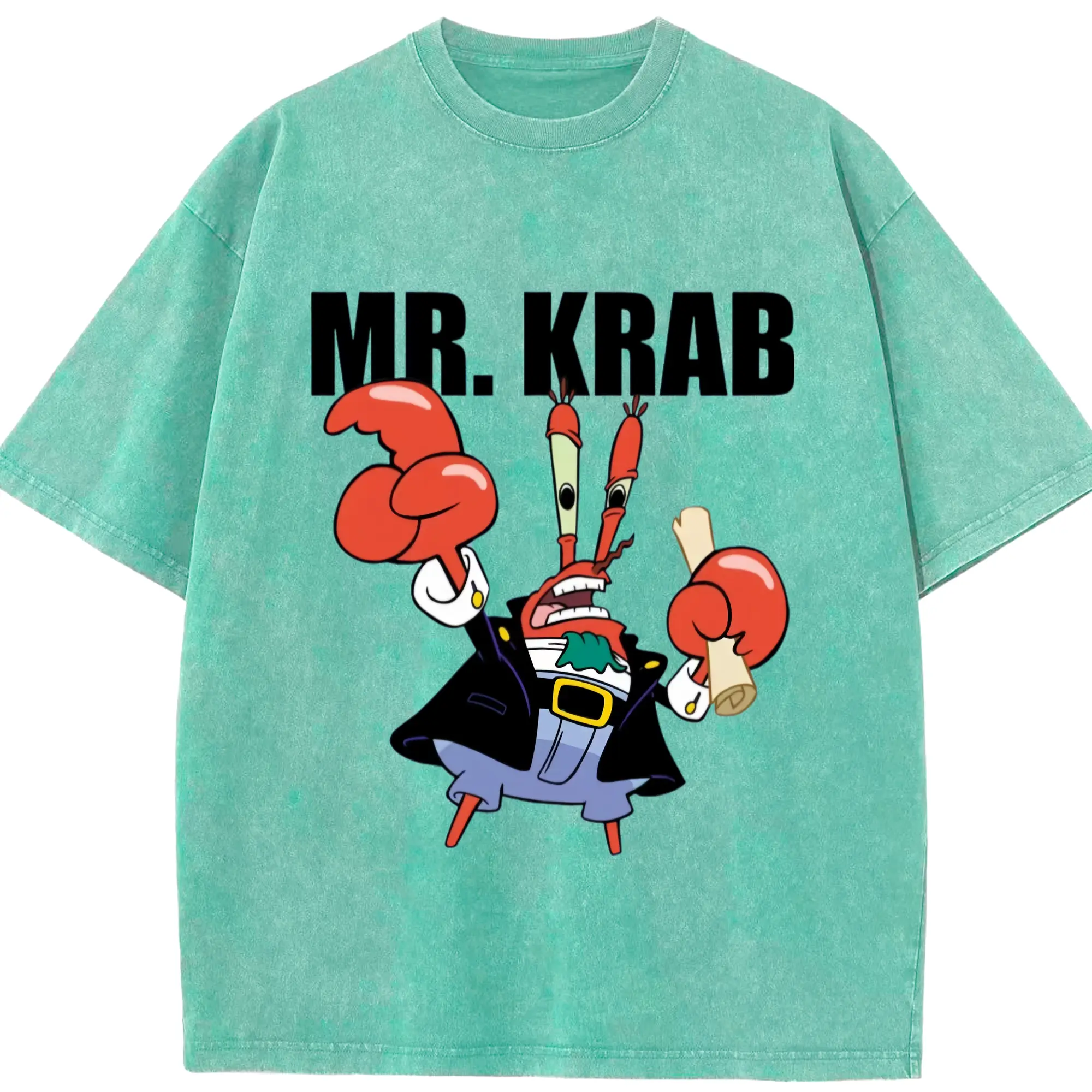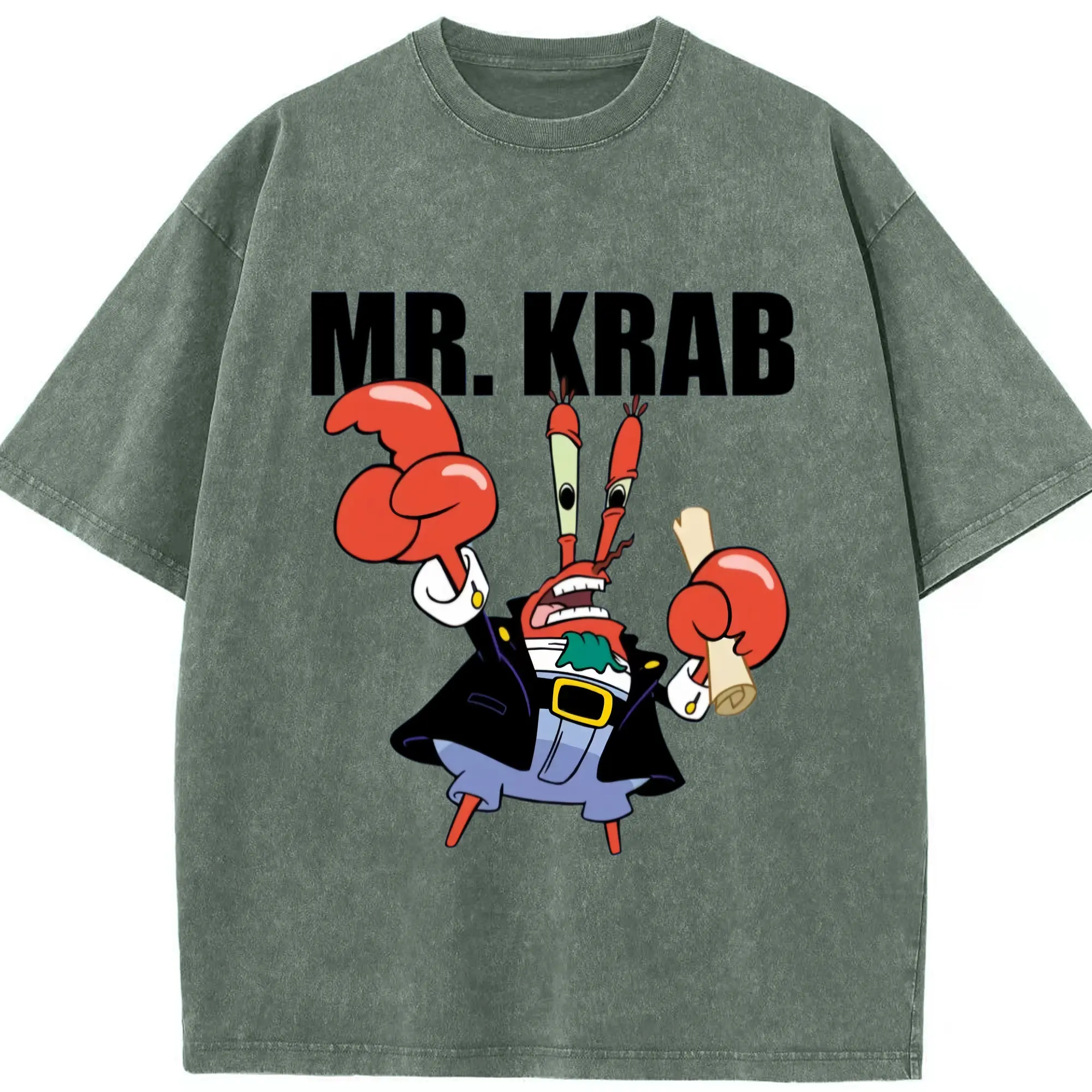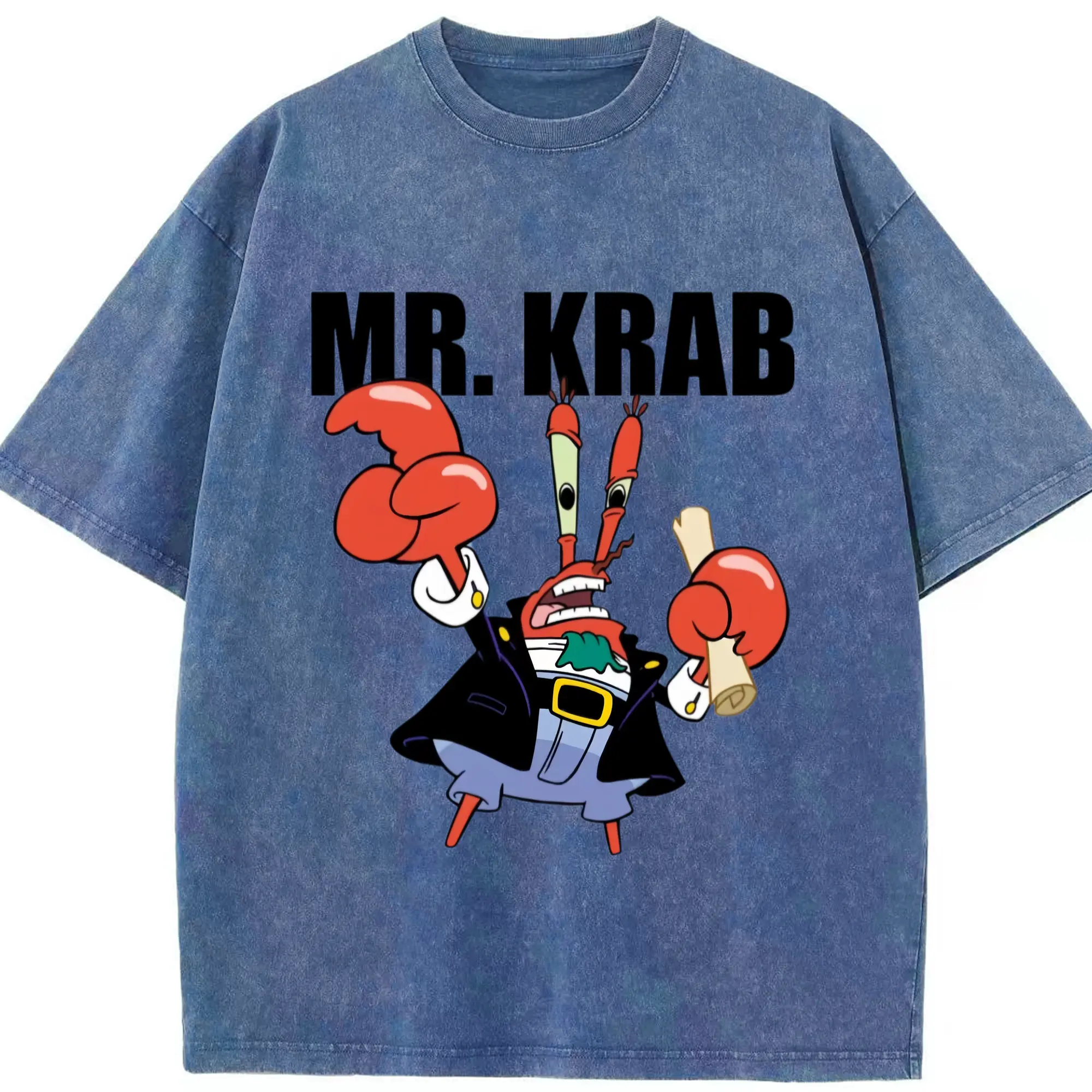 Spongebob Squarepants Mr. Krabs tee - Washed Vintage Look 230g Cotton Oversized T-Shirt With Front Heat Transfer Print – Soft, Lightweight, Stylish Fit – Comfortable Casual Wear For Sports & Everyday Use