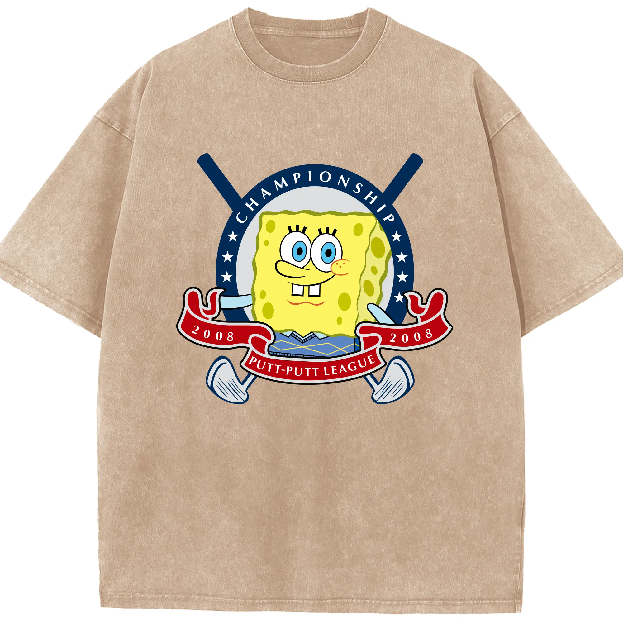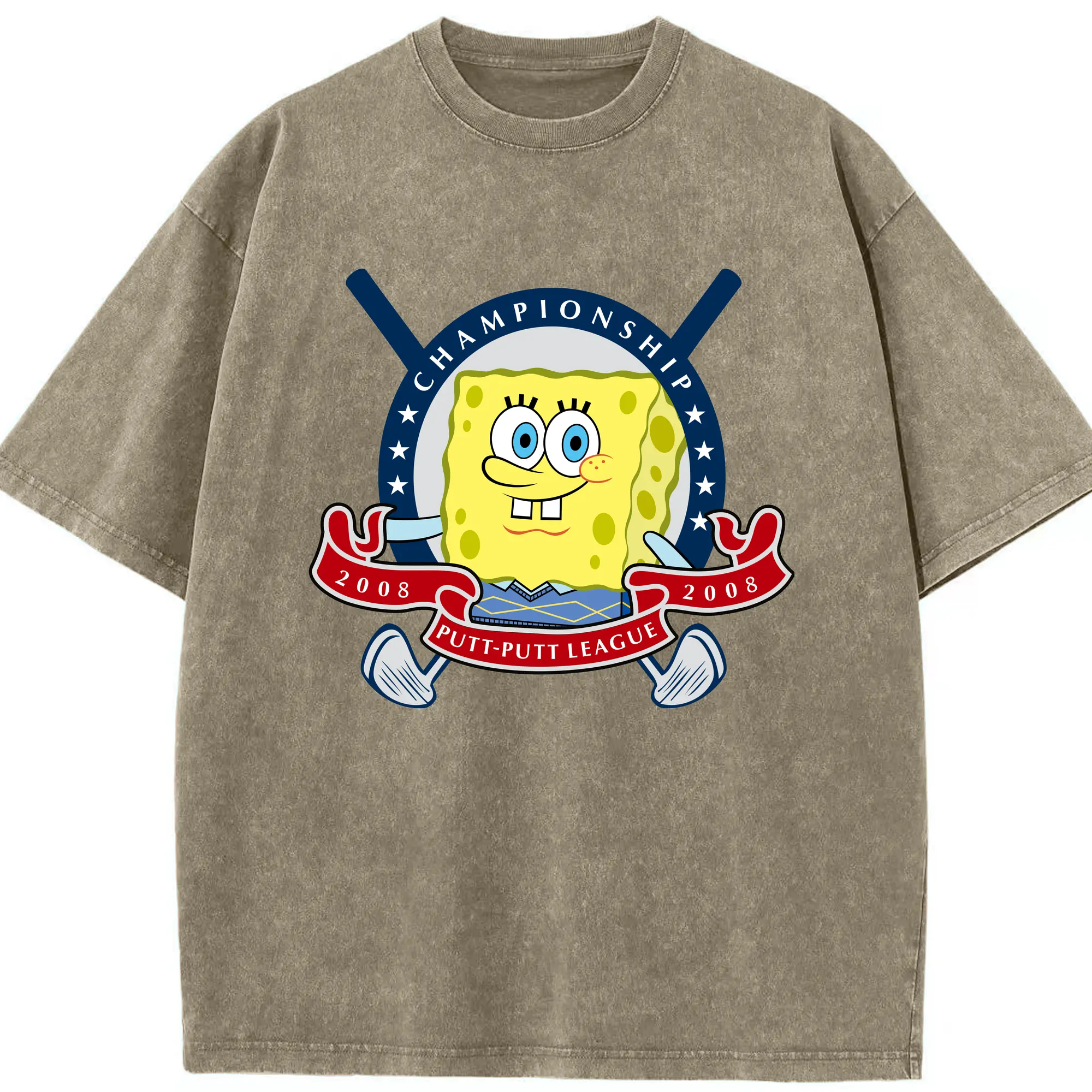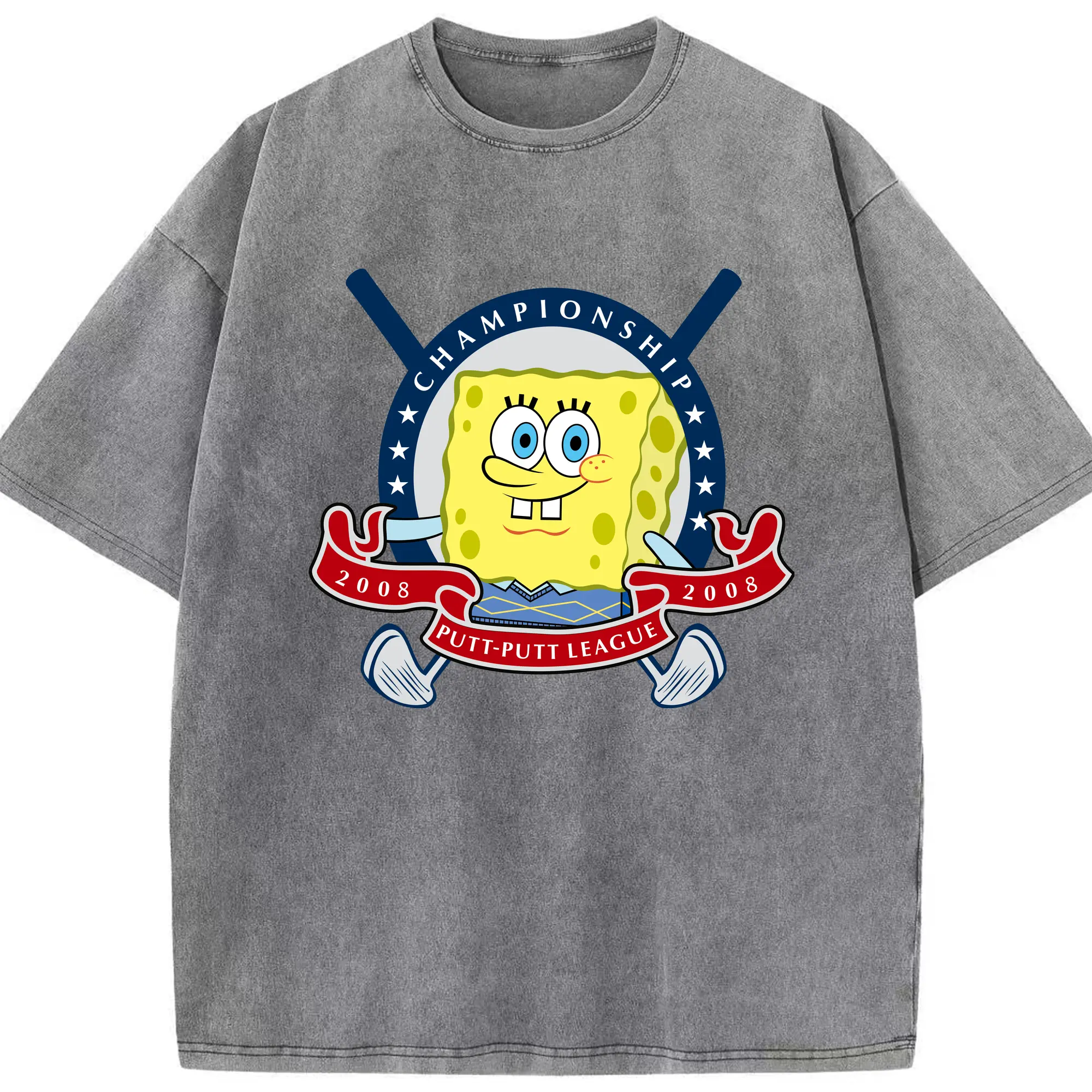 Spongebob squarepants putt putt league art t shirt - Washed Vintage Look 230g Cotton Oversized T-Shirt With Front Heat Transfer Print – Soft, Lightweight, Stylish Fit – Comfortable Casual Wear For Sports & Everyday Use