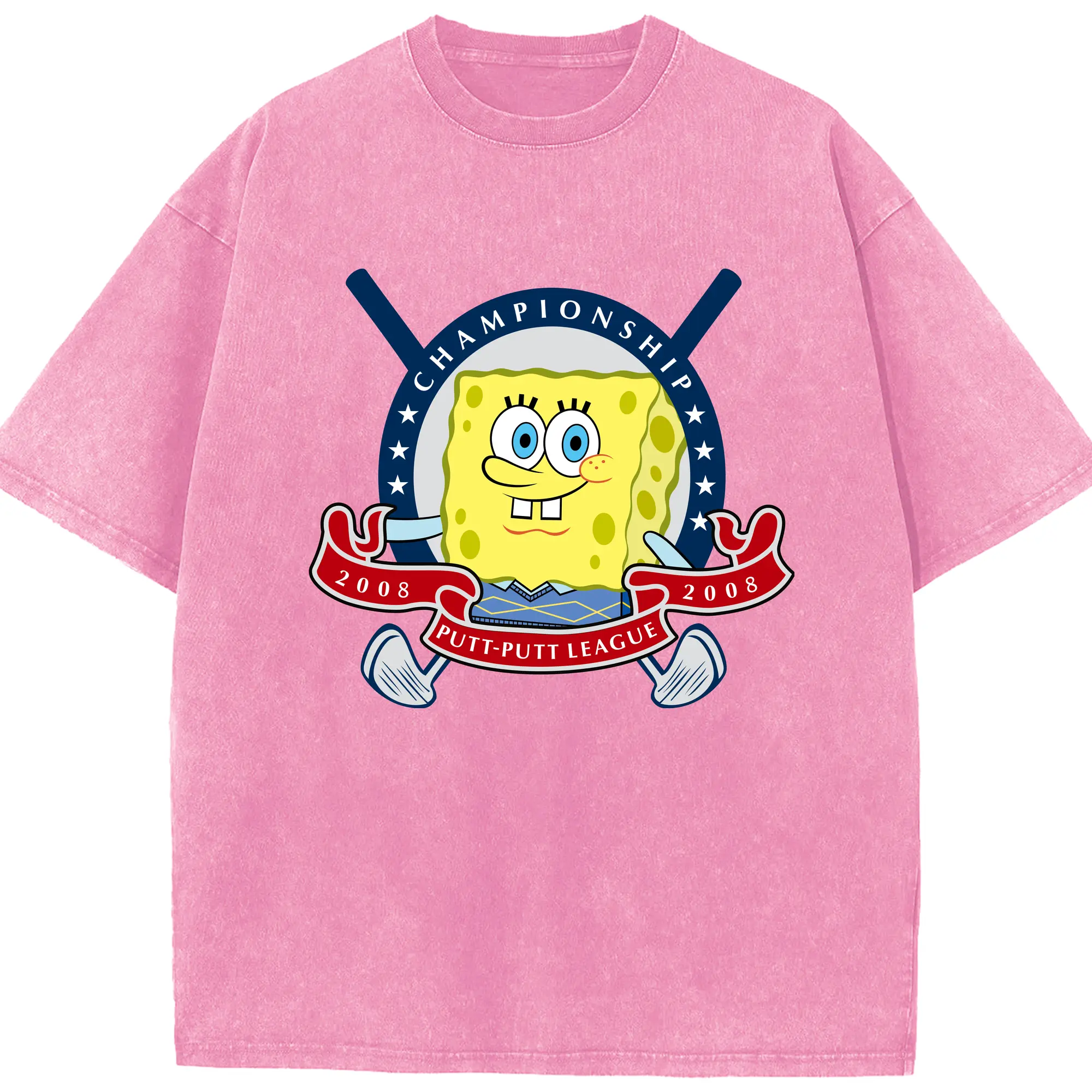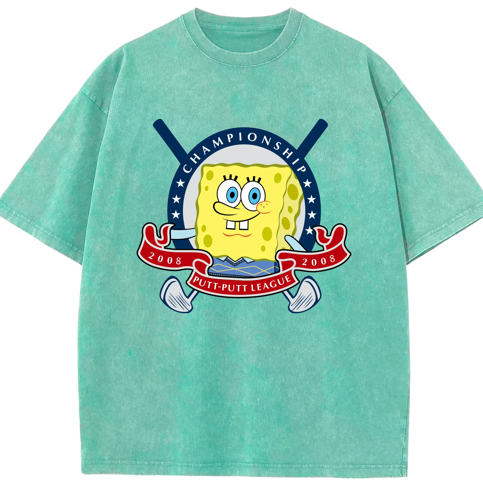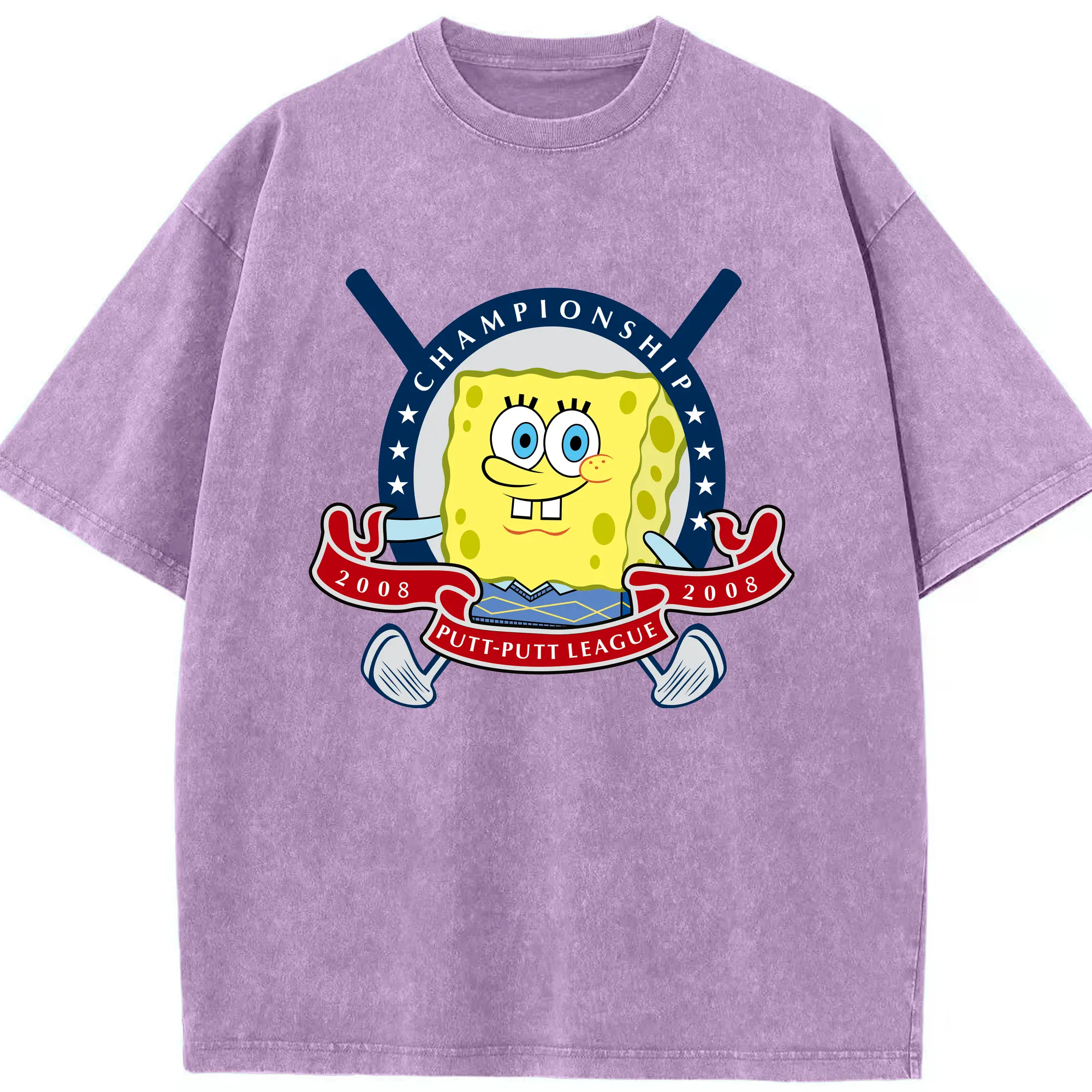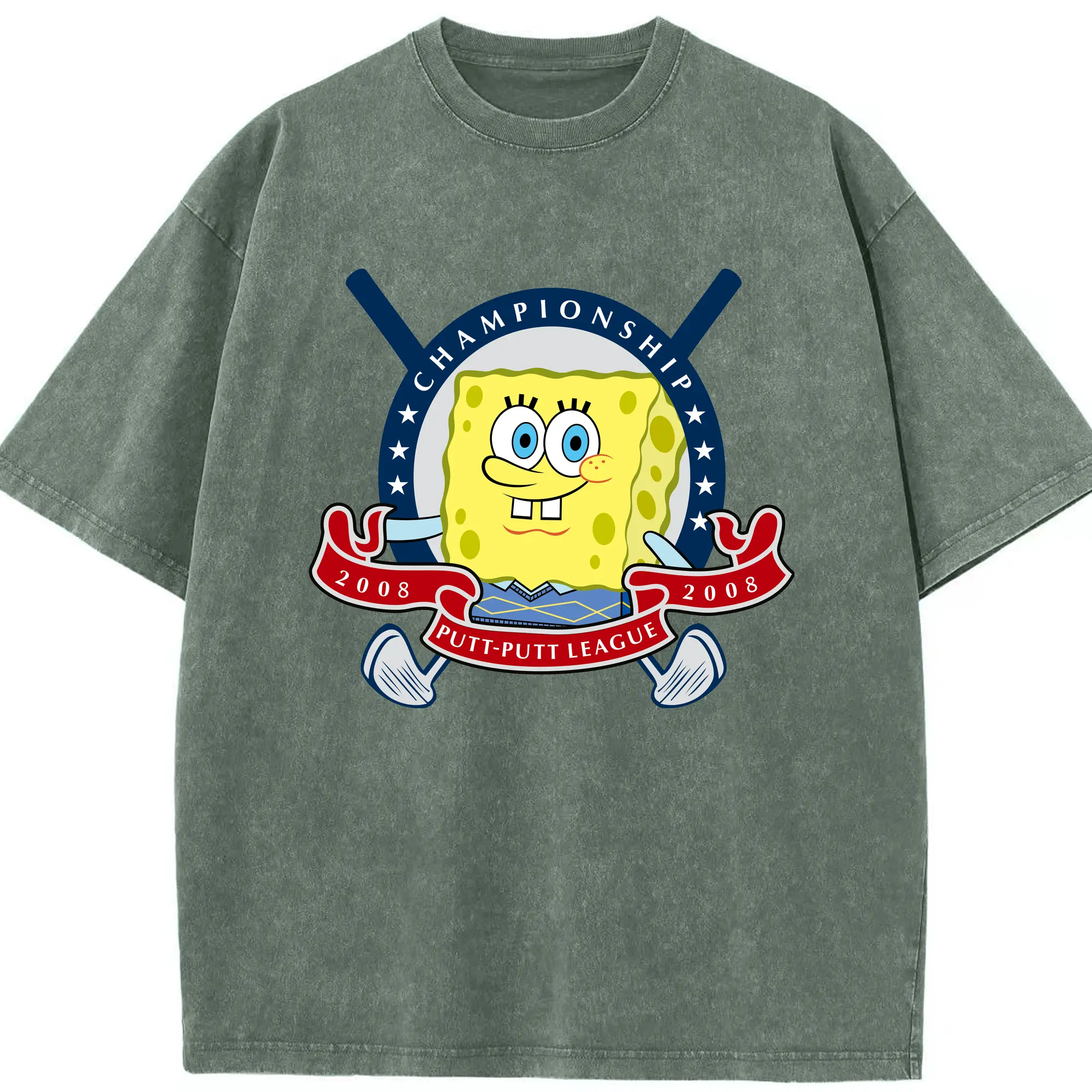 Spongebob squarepants putt putt league art t shirt - Washed Vintage Look 230g Cotton Oversized T-Shirt With Front Heat Transfer Print – Soft, Lightweight, Stylish Fit – Comfortable Casual Wear For Sports & Everyday Use