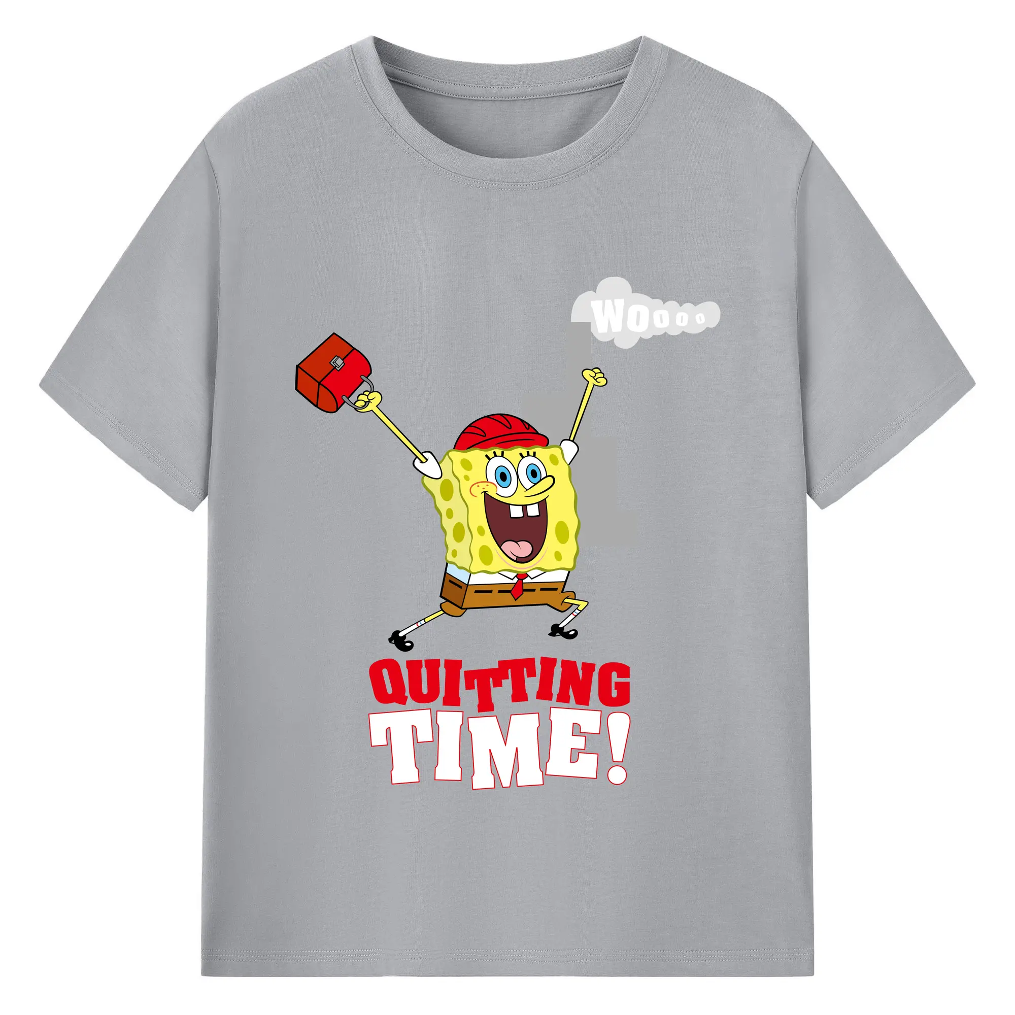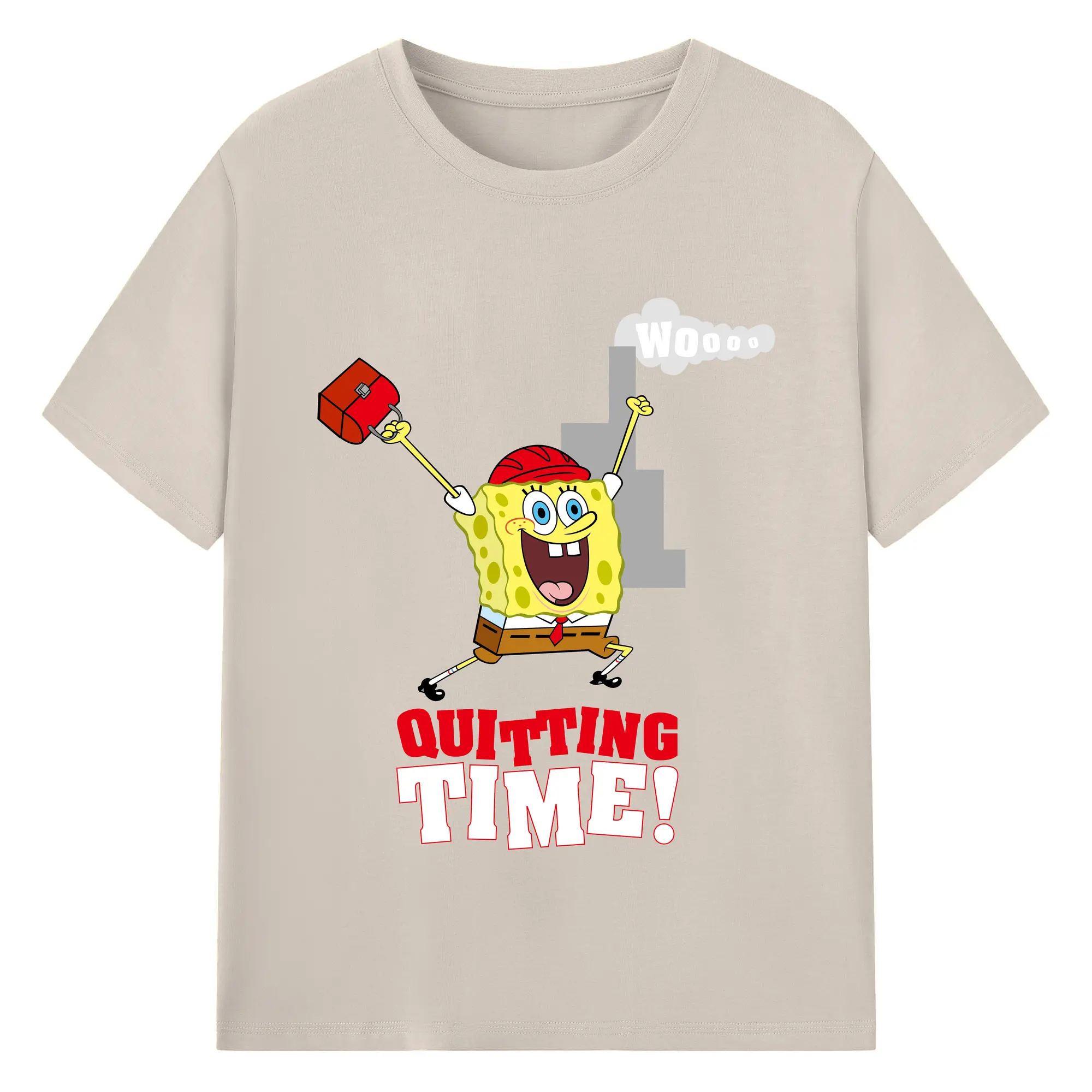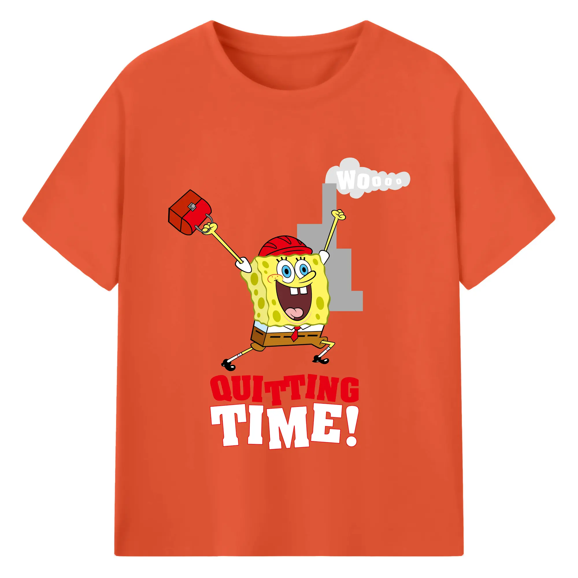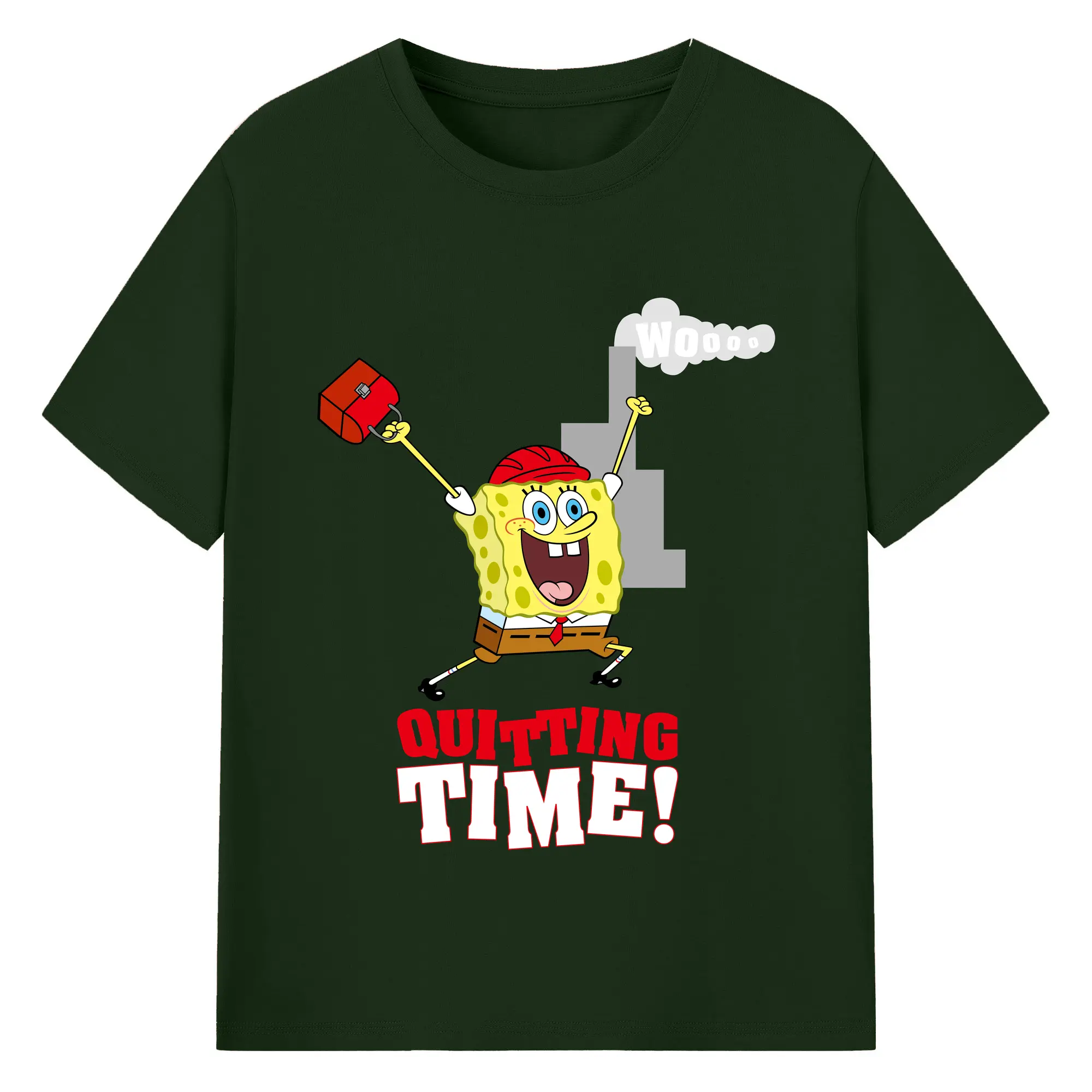 Spongebob squarepants quitting time graphic t-shirt - 180g Cotton T-Shirt With Front Heat Transfer Print – Soft, Lightweight, Fitted Design – Comfortable Casual Wear For Sports & Everyday Use
