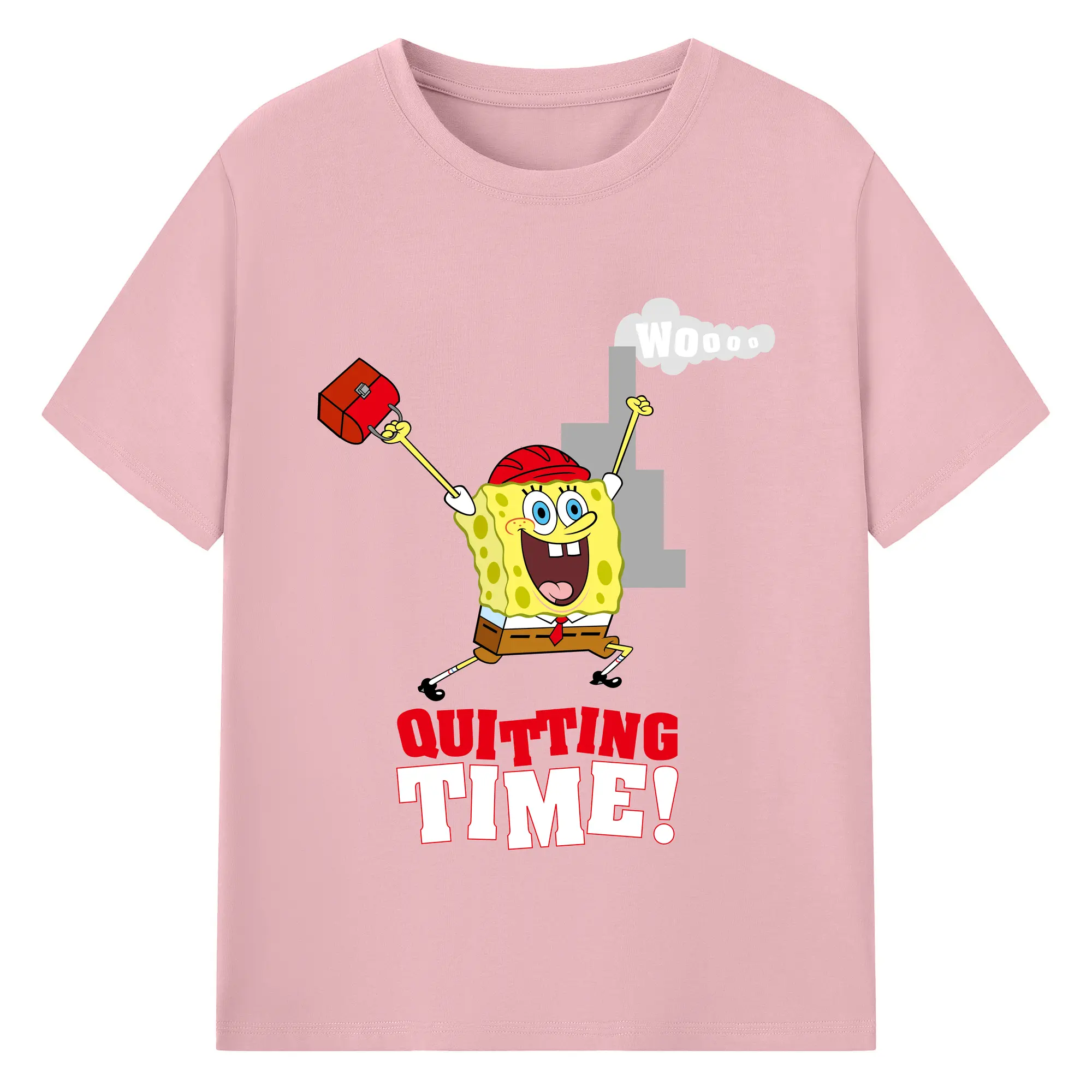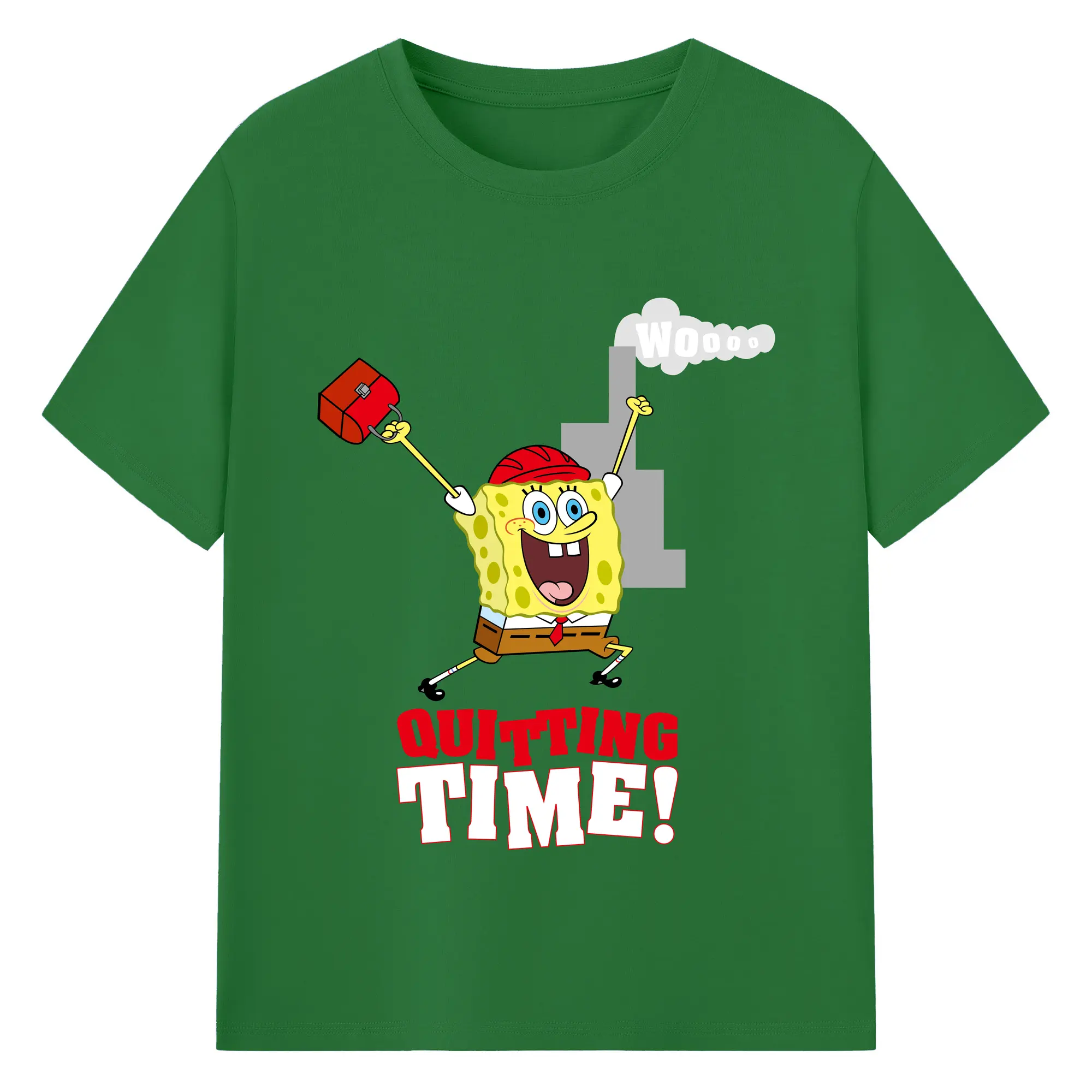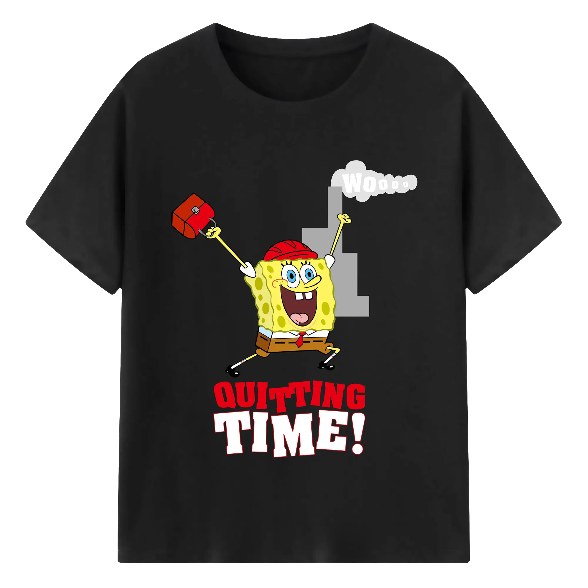 Spongebob squarepants quitting time graphic t-shirt - 180g Cotton T-Shirt With Front Heat Transfer Print – Soft, Lightweight, Fitted Design – Comfortable Casual Wear For Sports & Everyday Use