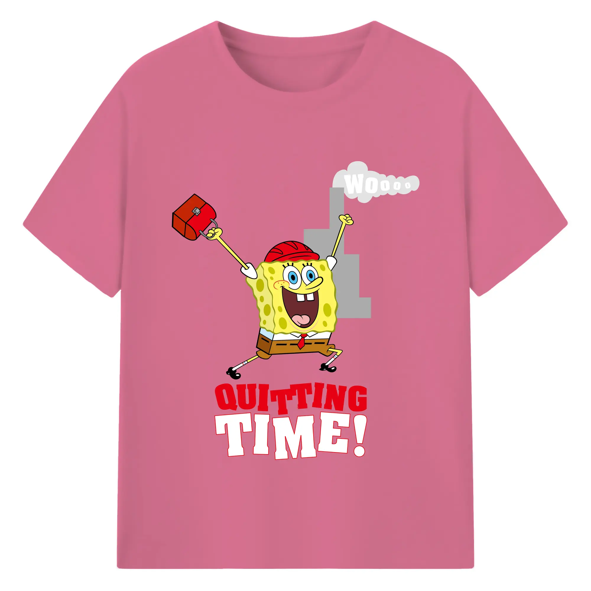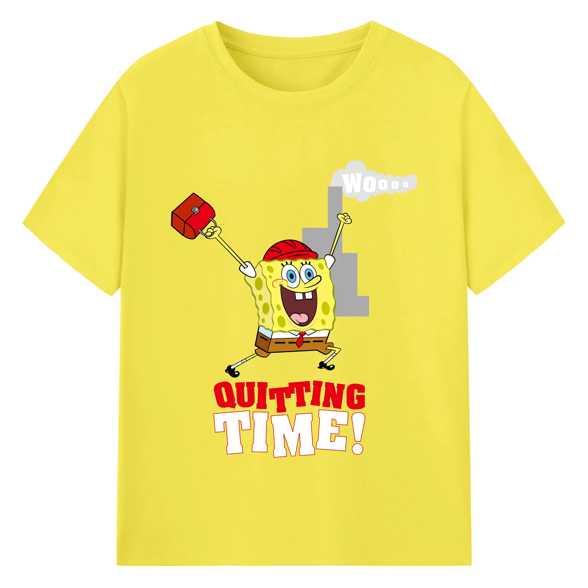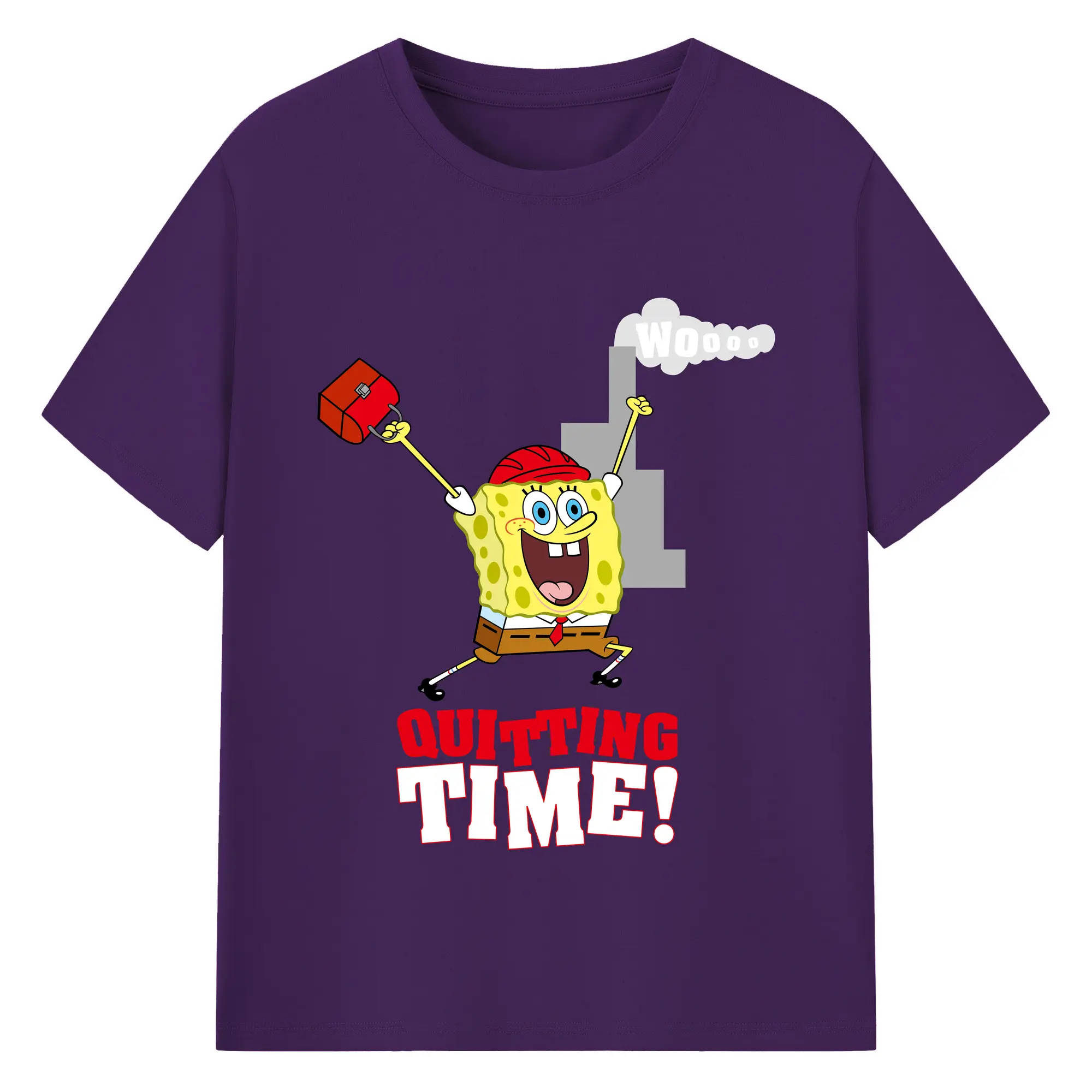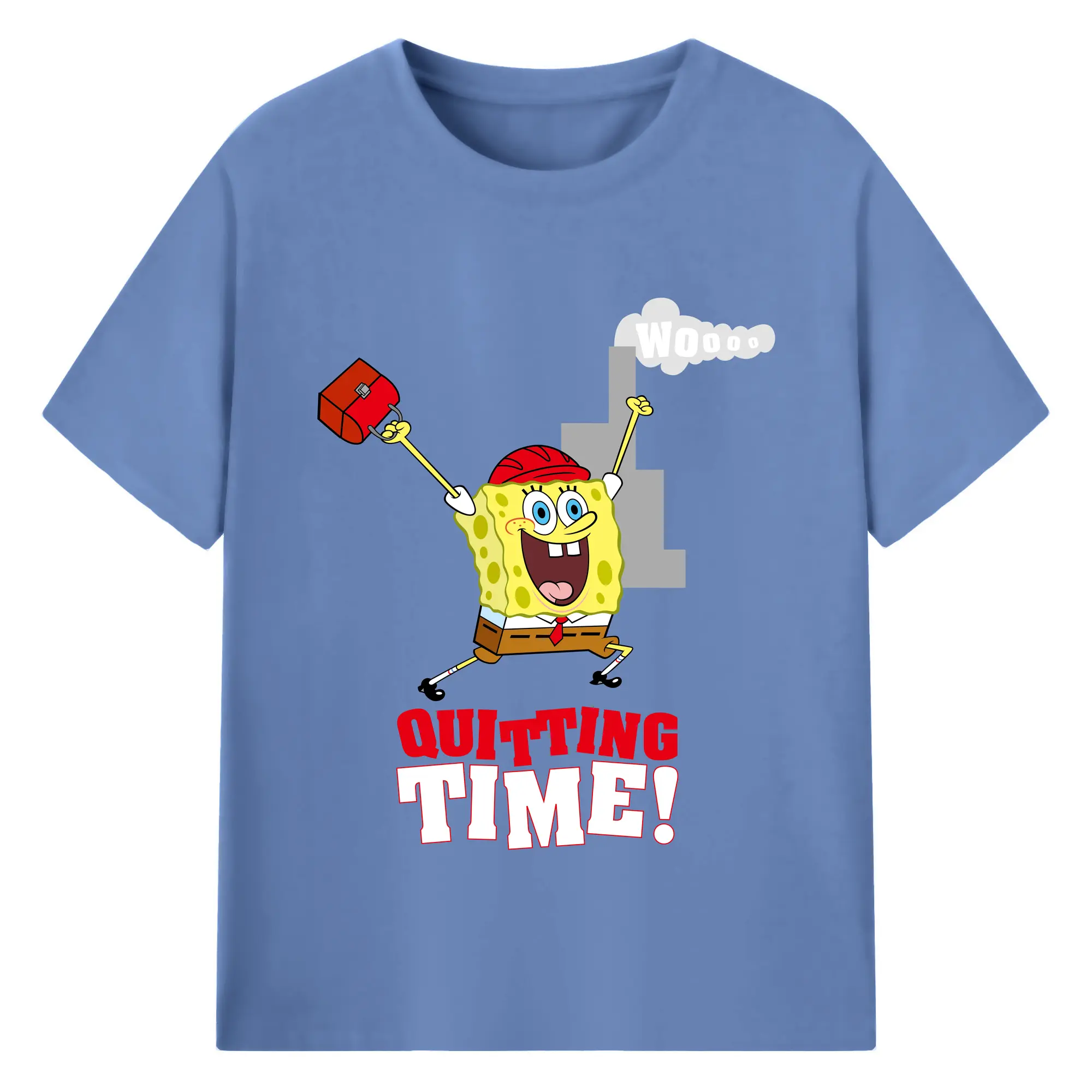 Spongebob squarepants quitting time graphic t-shirt - 180g Cotton T-Shirt With Front Heat Transfer Print – Soft, Lightweight, Fitted Design – Comfortable Casual Wear For Sports & Everyday Use