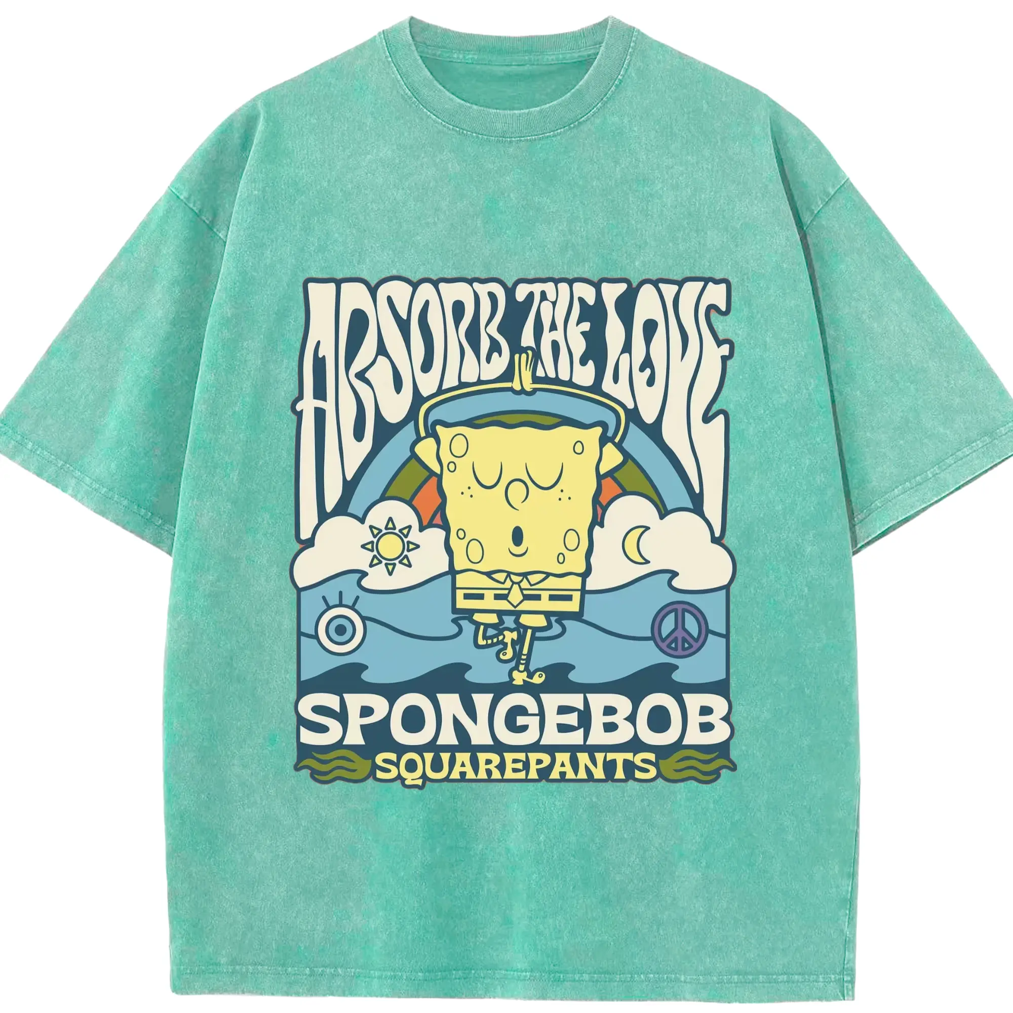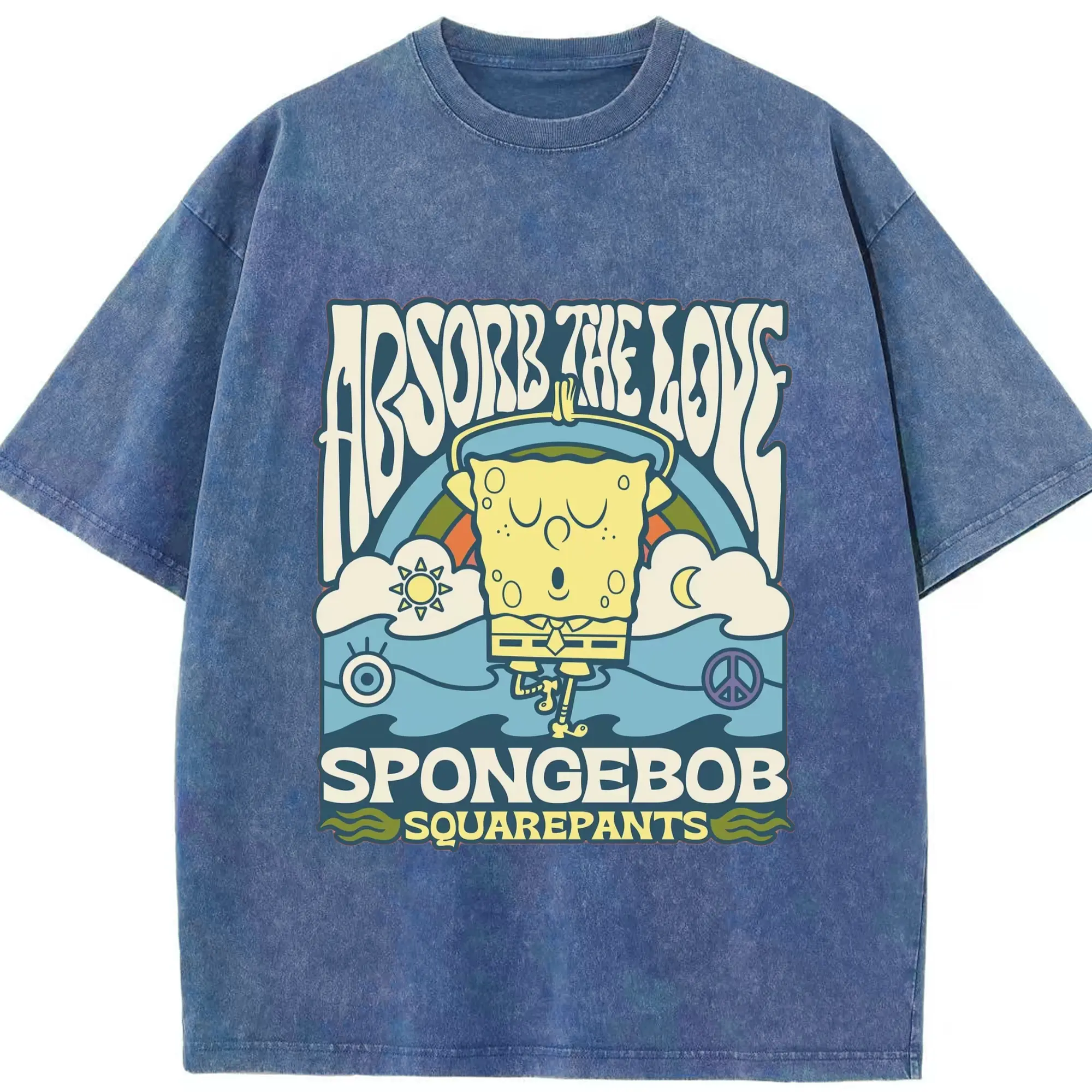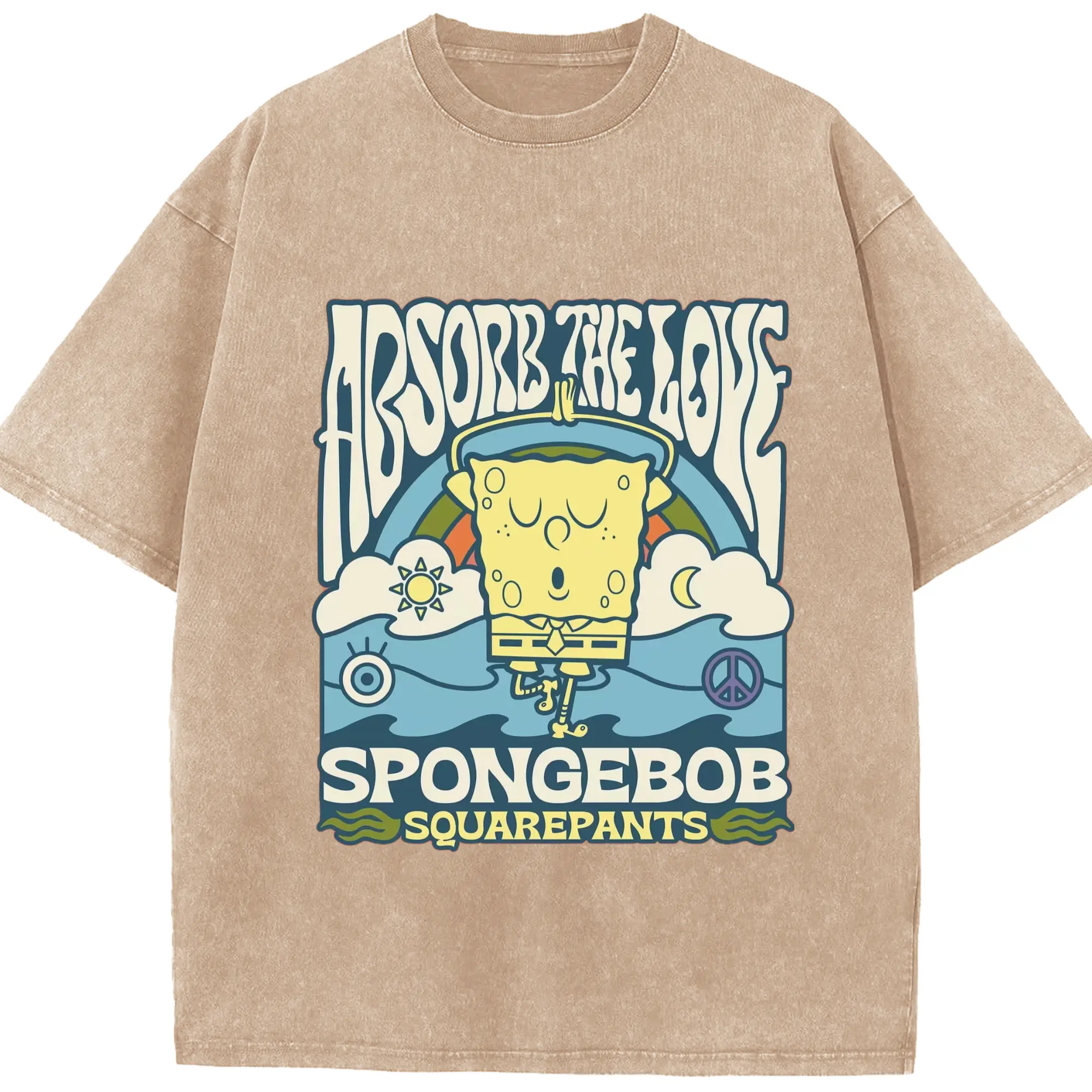Spongebob squarepants Retro art tee - Washed Vintage Look 230g Cotton Oversized T-Shirt With Front Heat Transfer Print – Soft, Lightweight, Stylish Fit – Comfortable Casual Wear For Sports & Everyday Use
