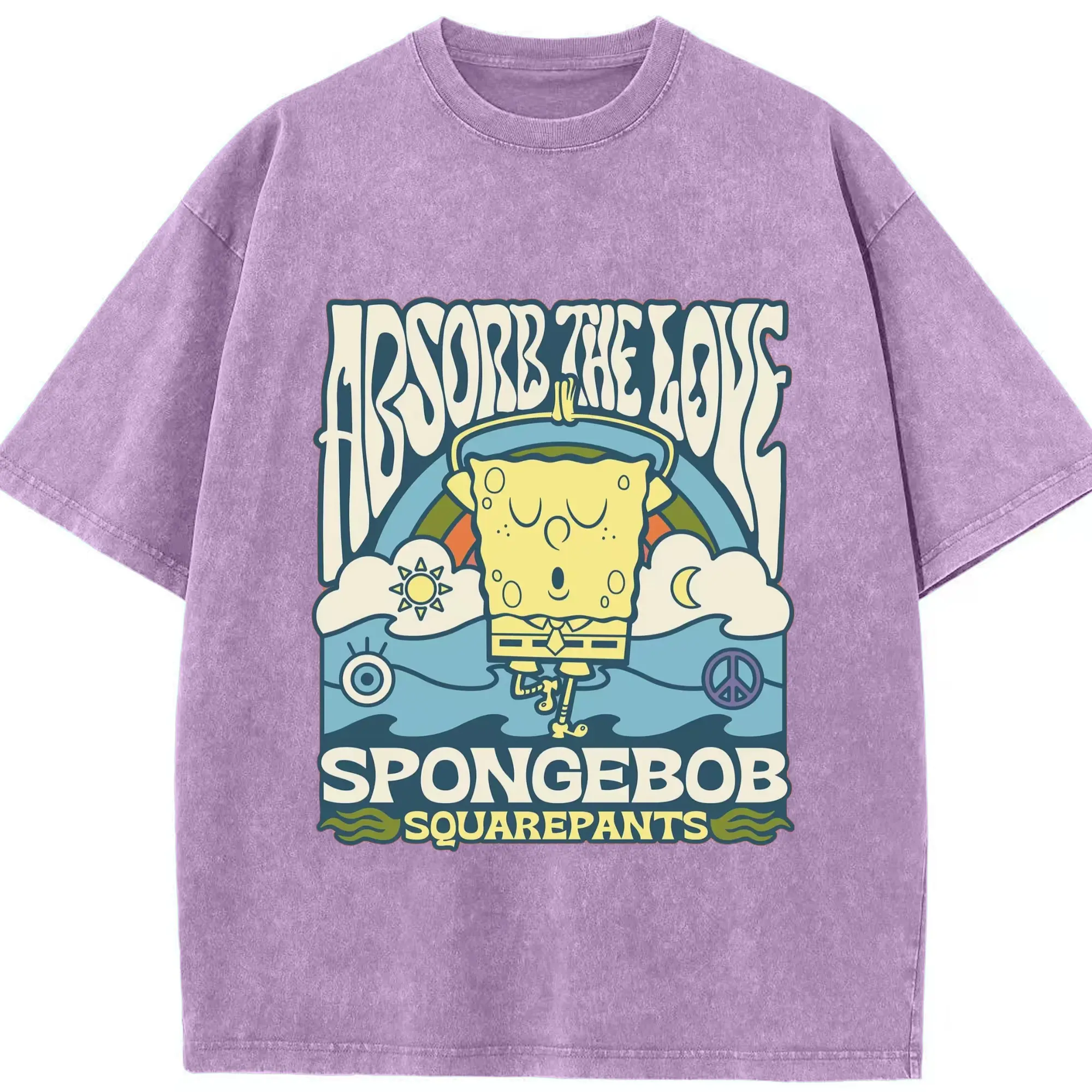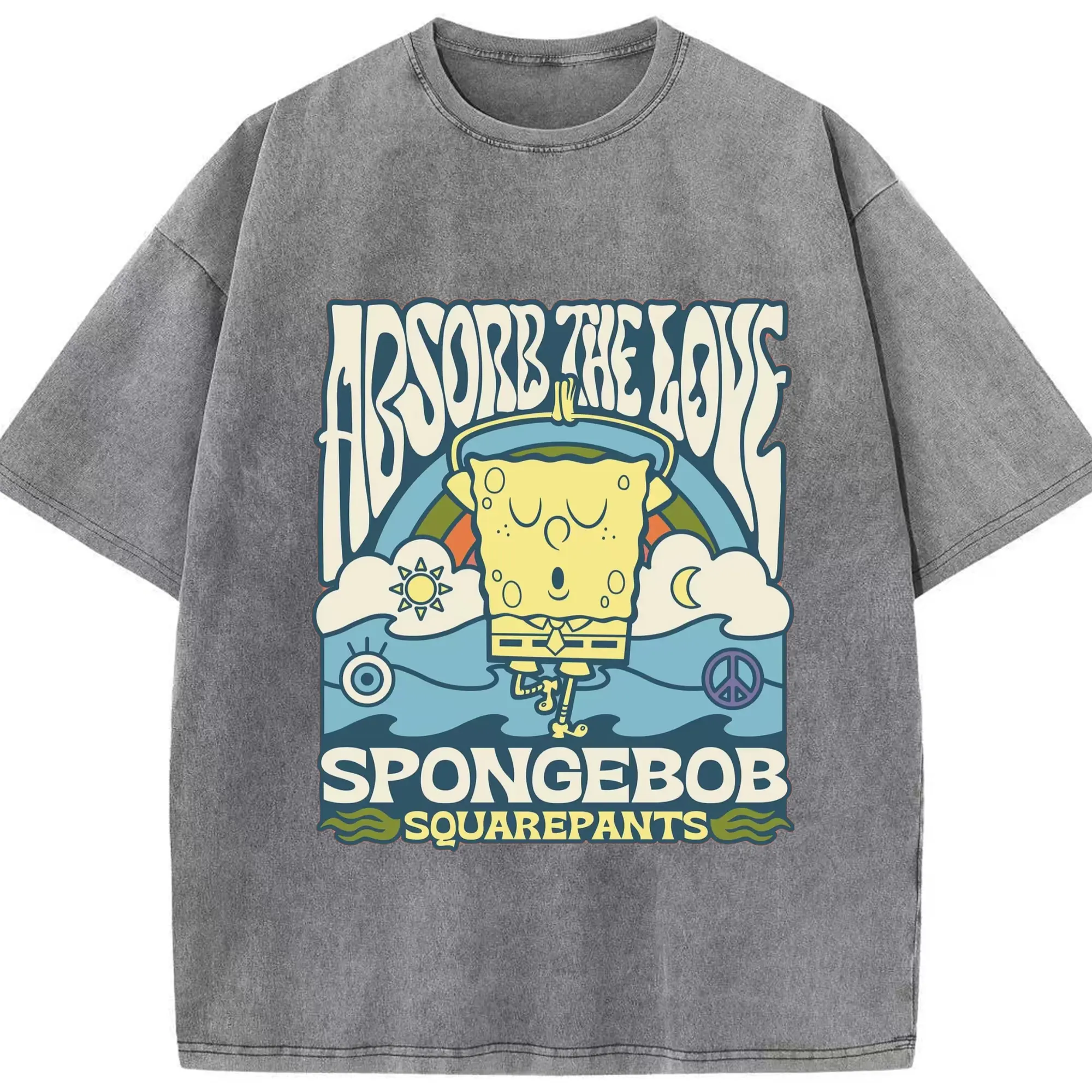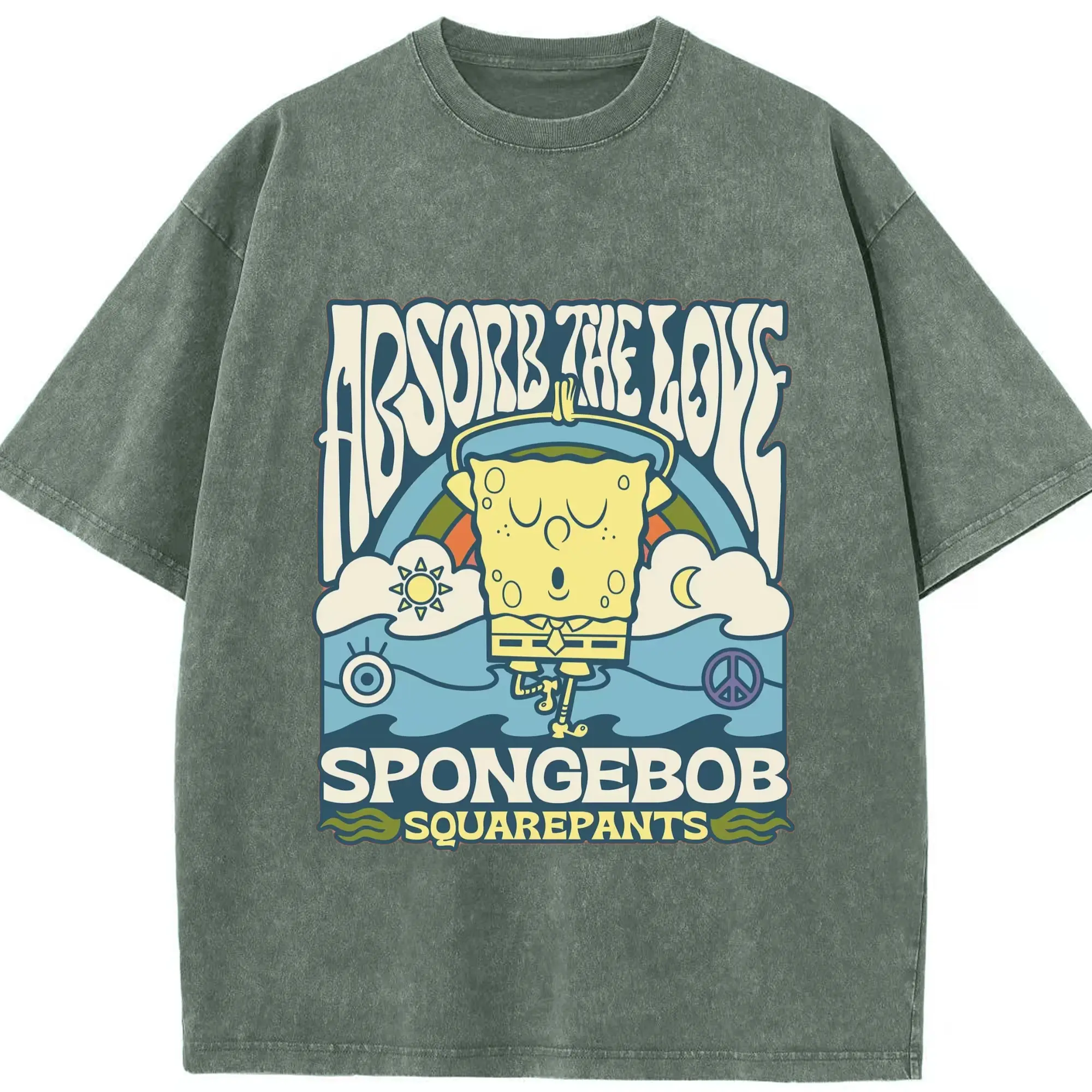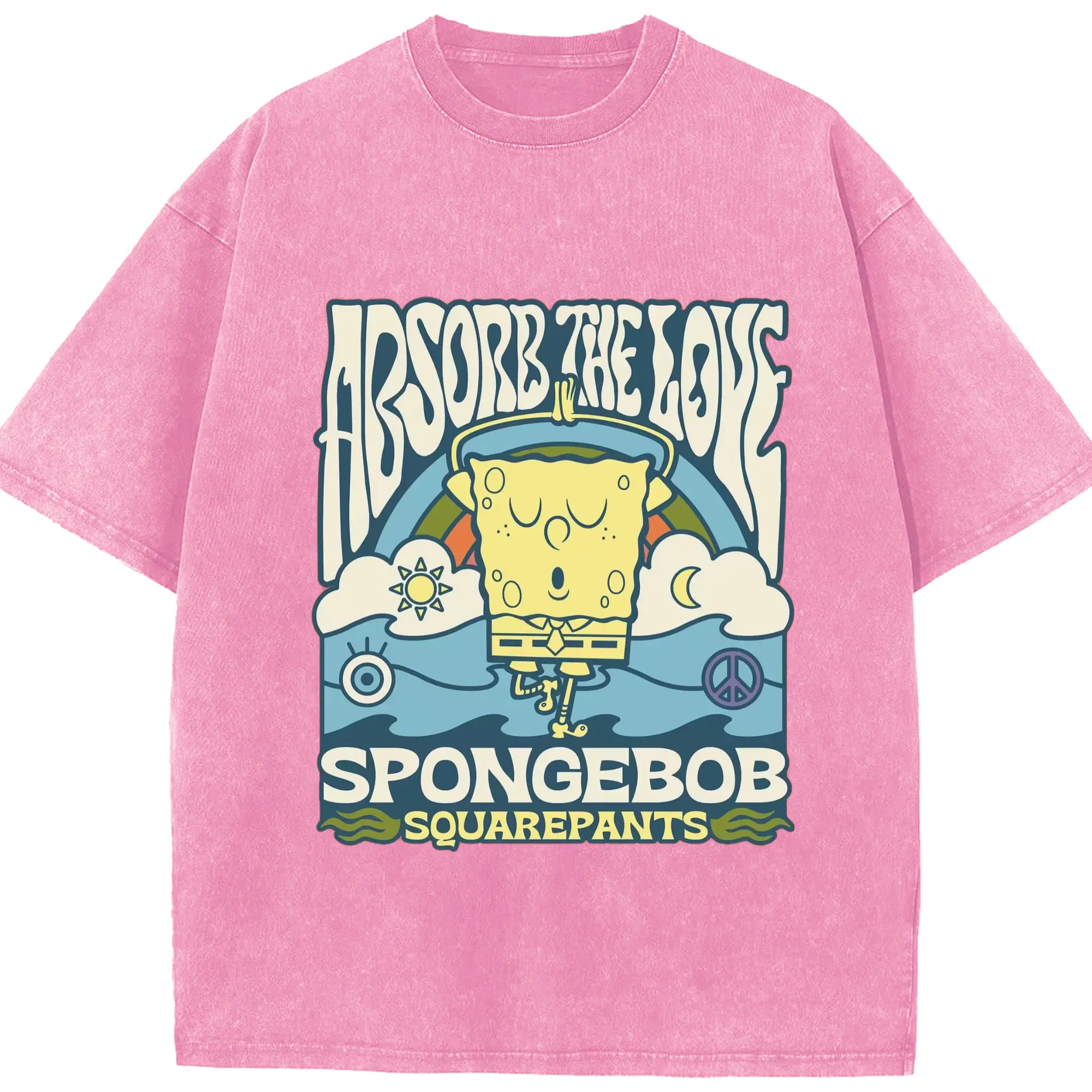 Spongebob squarepants Retro art tee - Washed Vintage Look 230g Cotton Oversized T-Shirt With Front Heat Transfer Print – Soft, Lightweight, Stylish Fit – Comfortable Casual Wear For Sports & Everyday Use