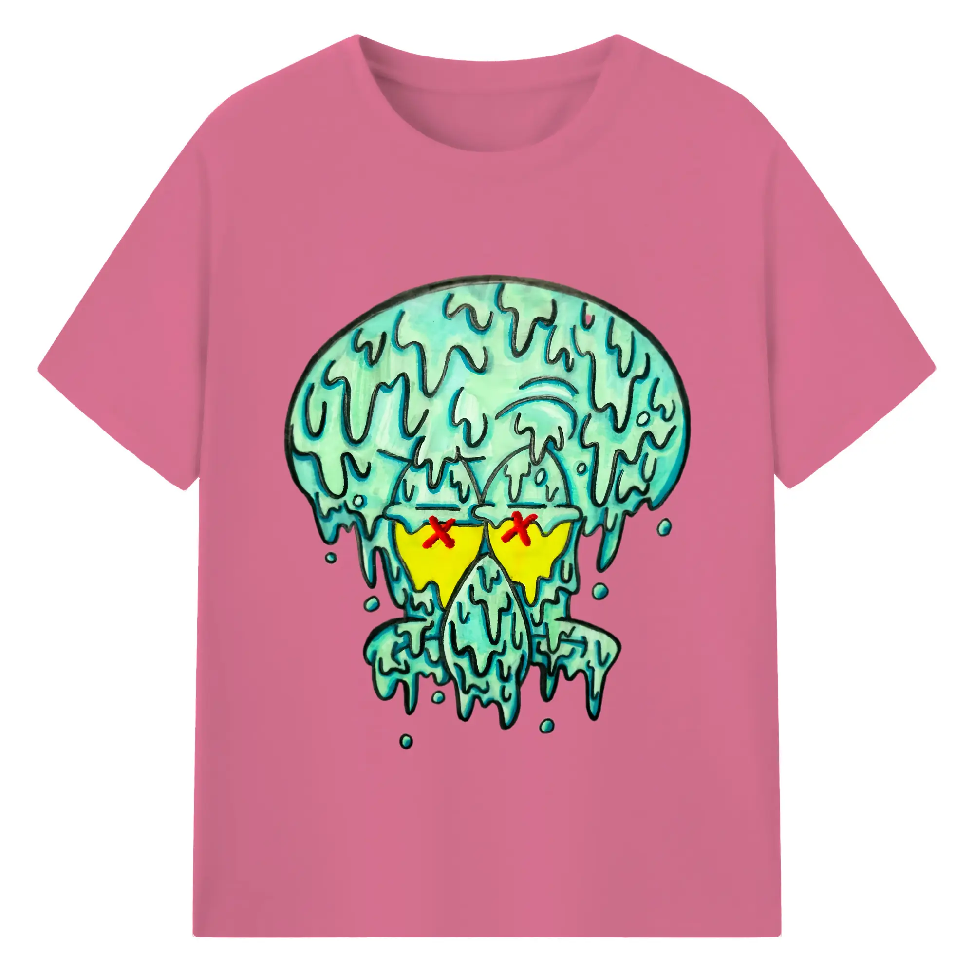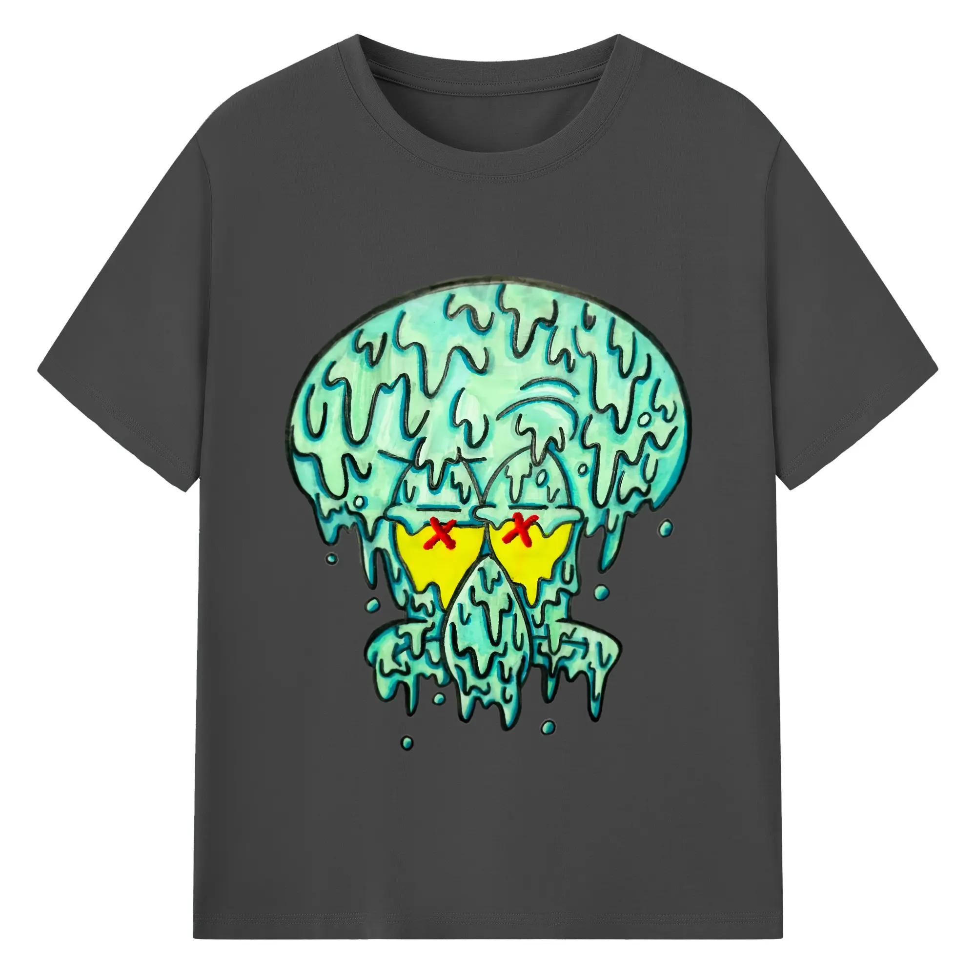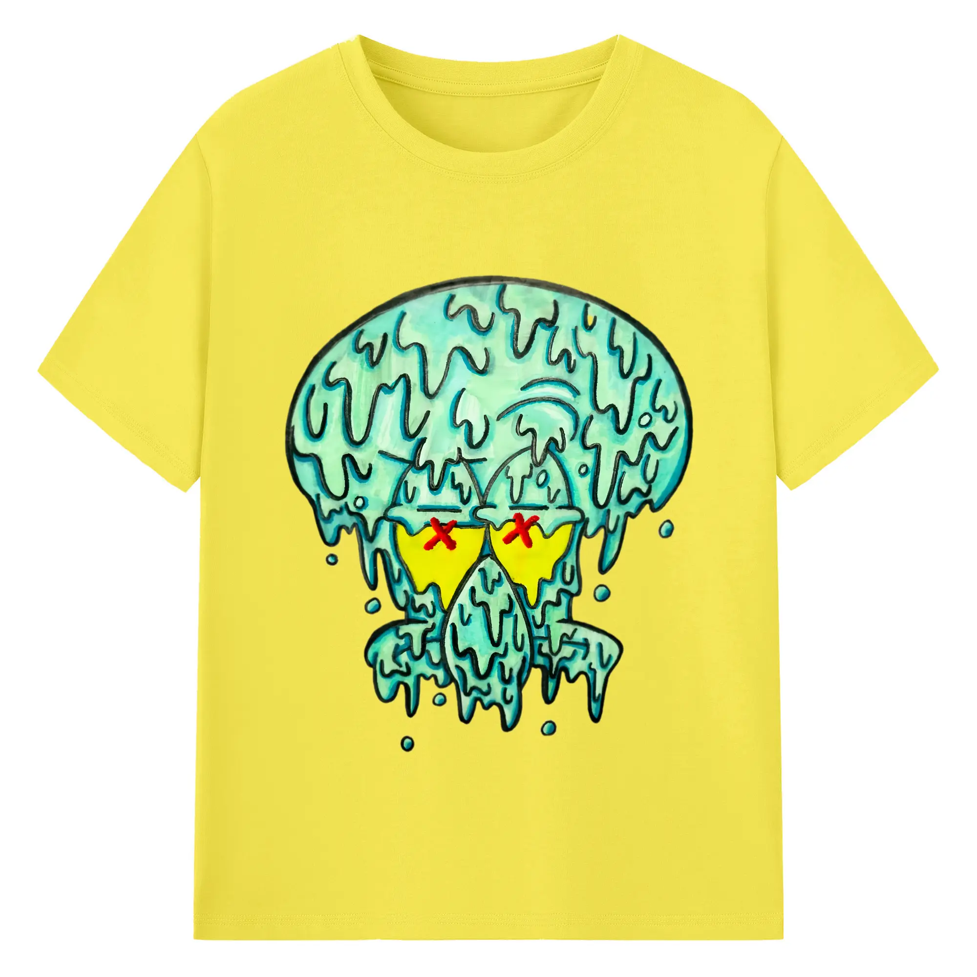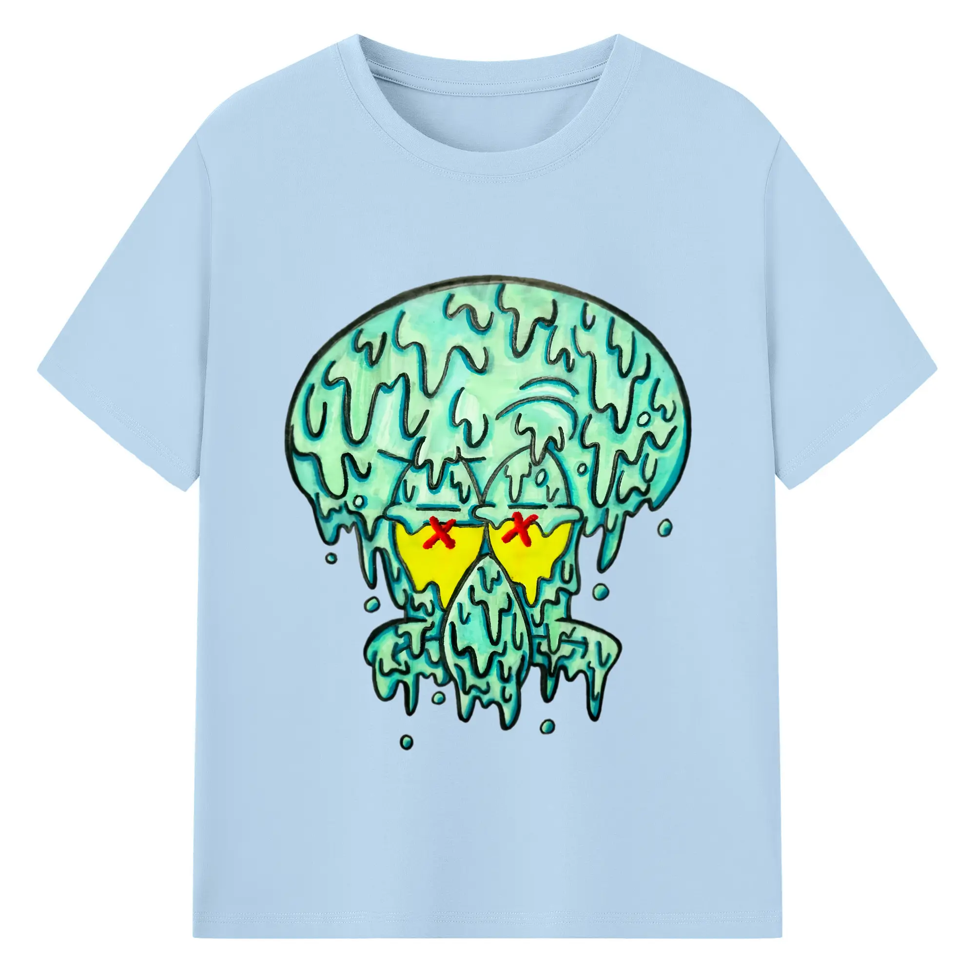 Spongebob Squidward dissolve the pattern t-shirt - 180g Cotton T-Shirt With Front Heat Transfer Print – Soft, Lightweight, Fitted Design – Comfortable Casual Wear For Sports & Everyday Use