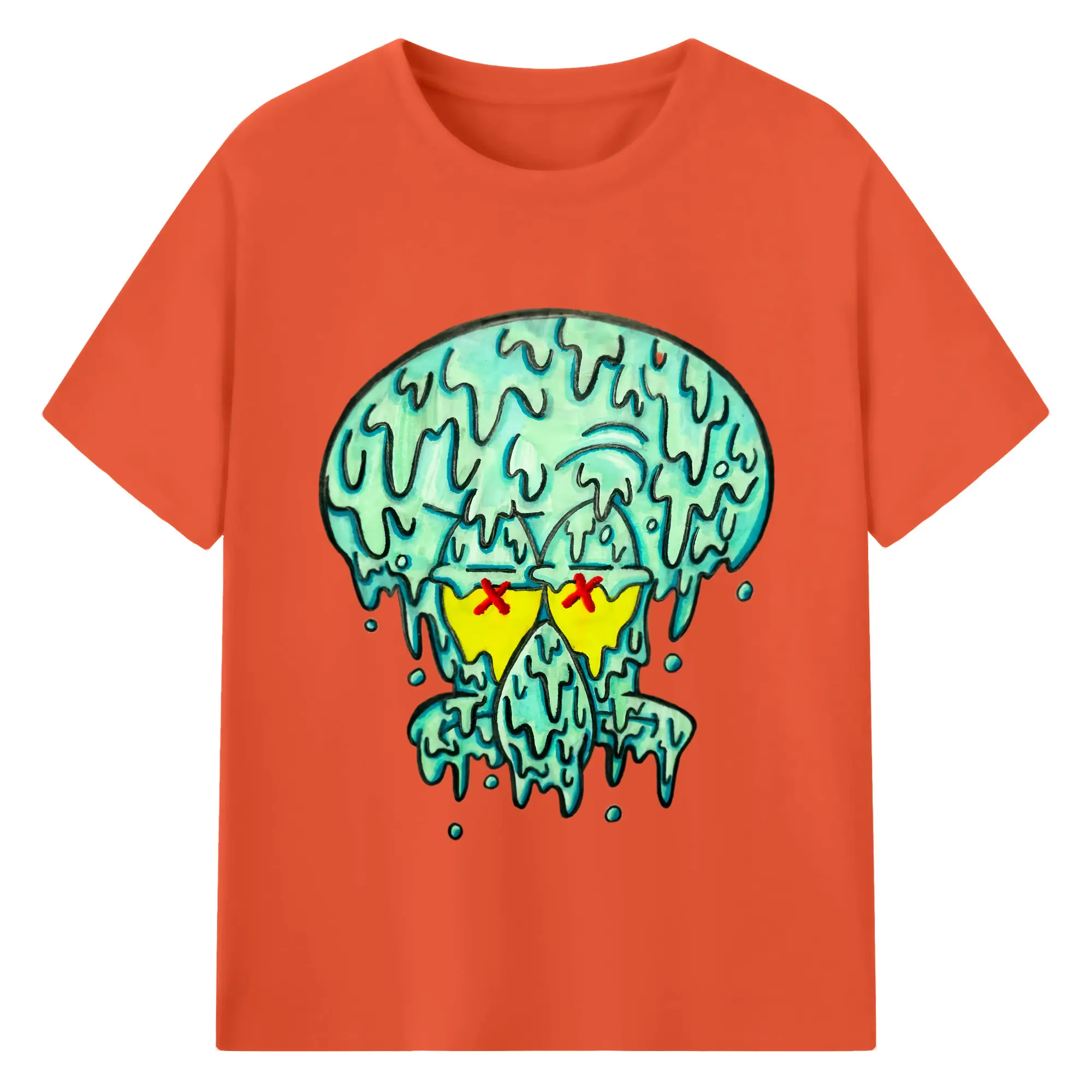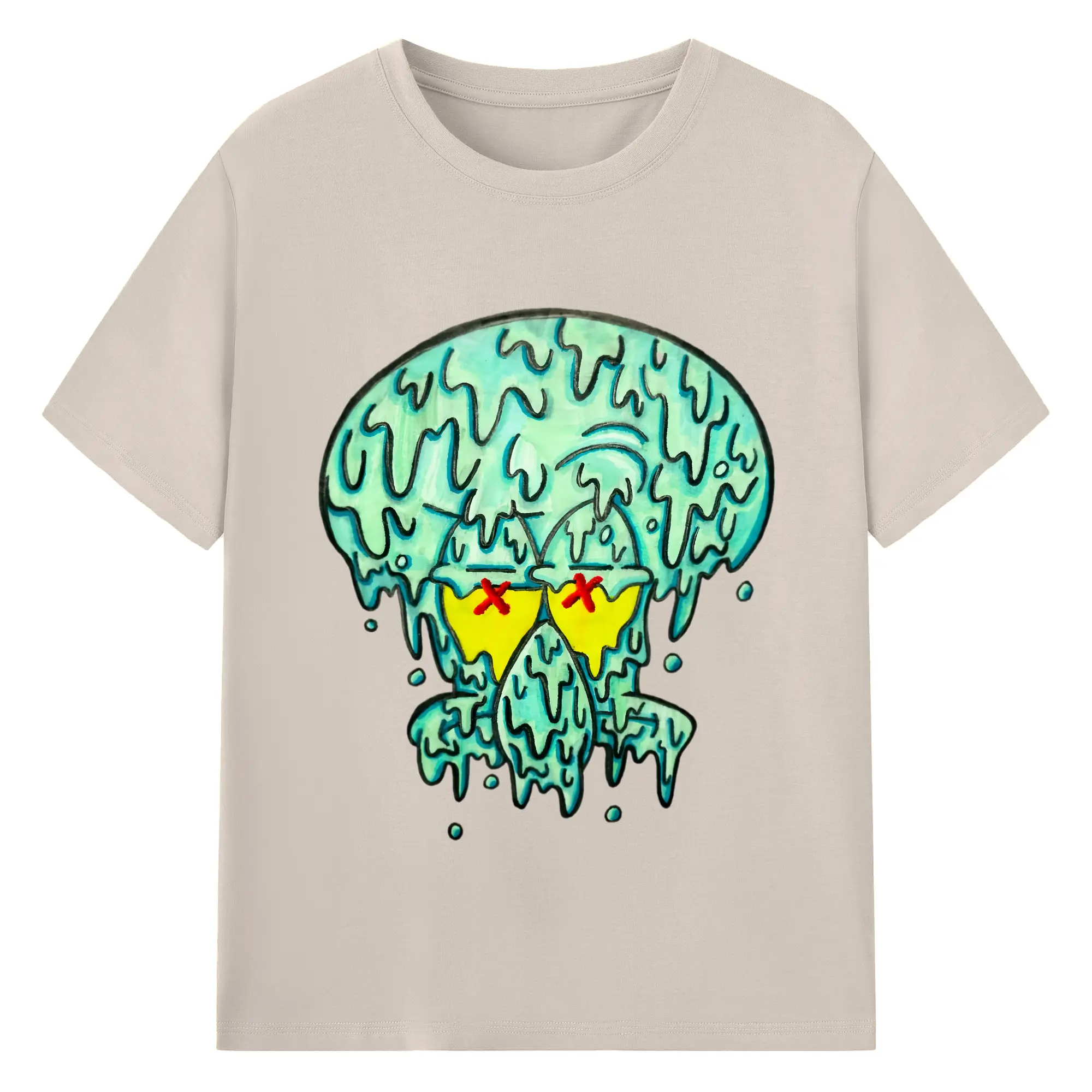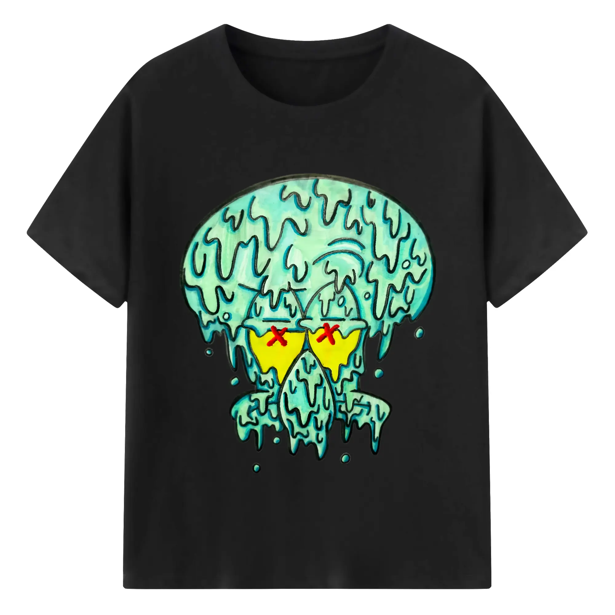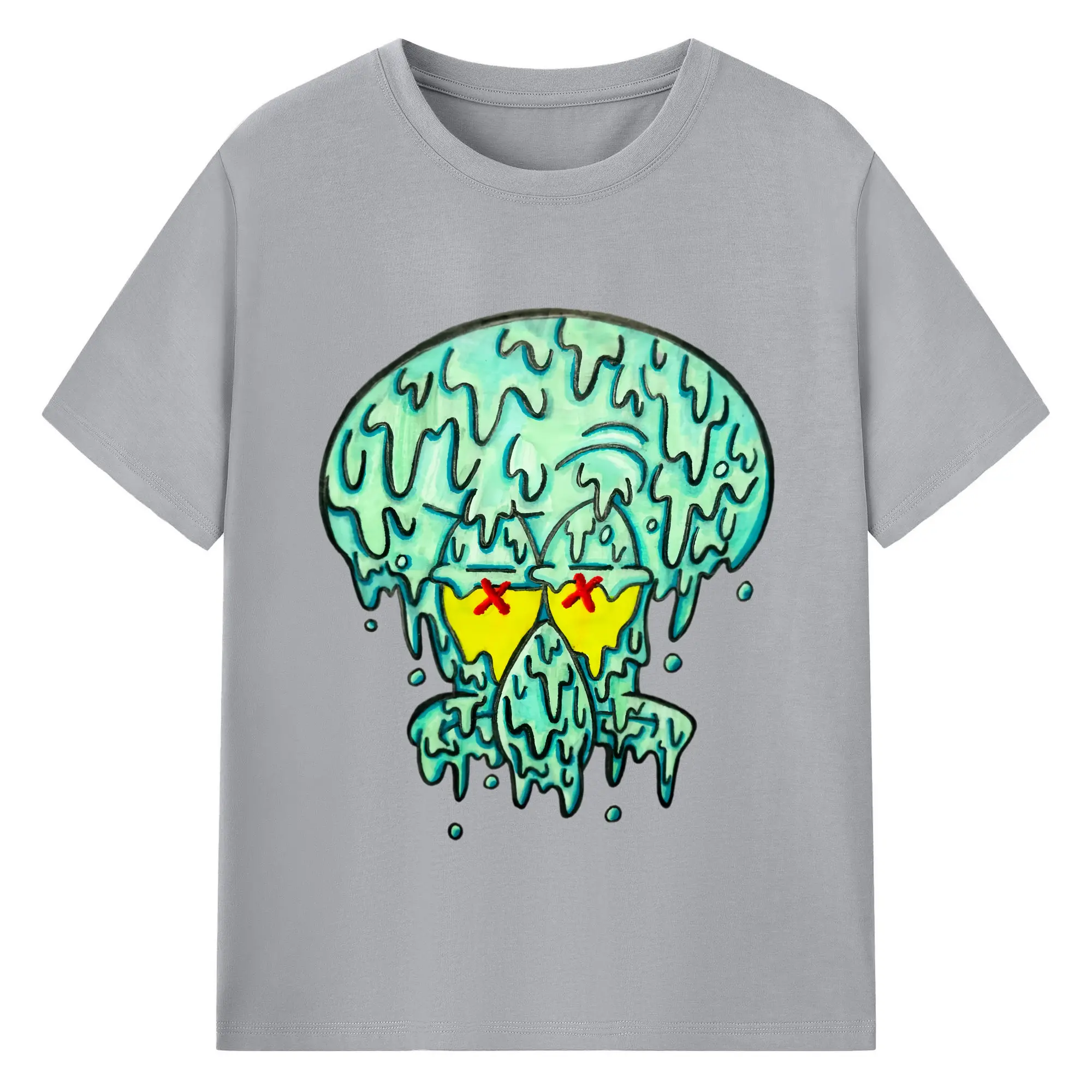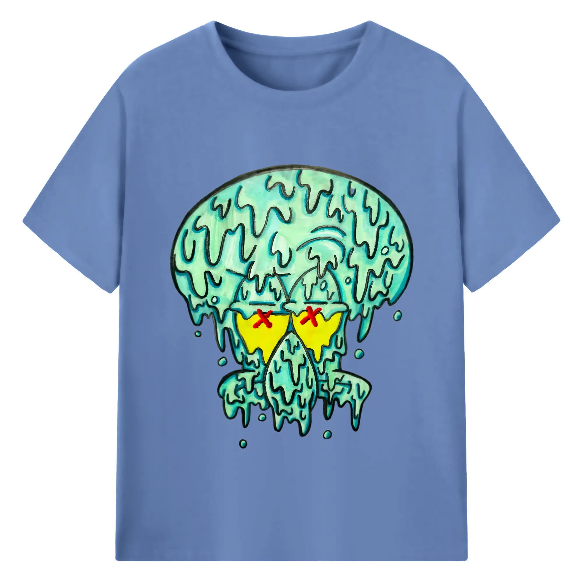Spongebob Squidward dissolve the pattern t-shirt - 180g Cotton T-Shirt With Front Heat Transfer Print – Soft, Lightweight, Fitted Design – Comfortable Casual Wear For Sports & Everyday Use