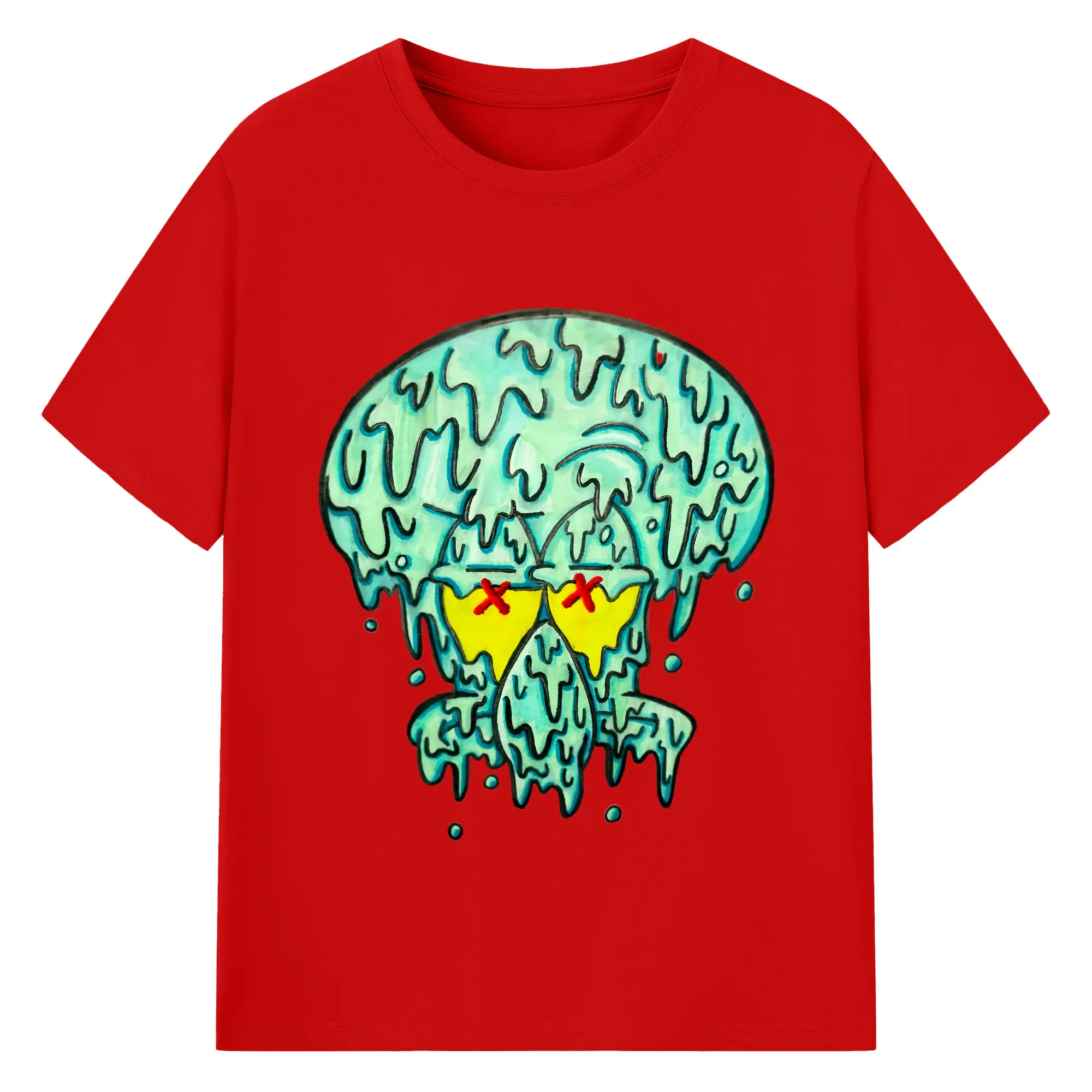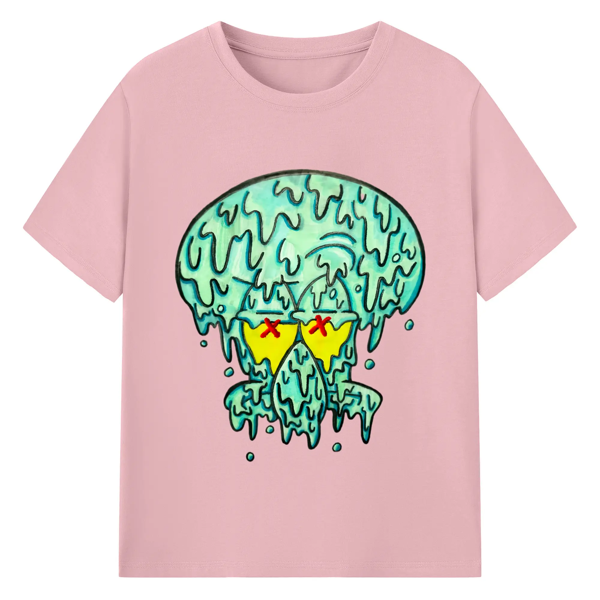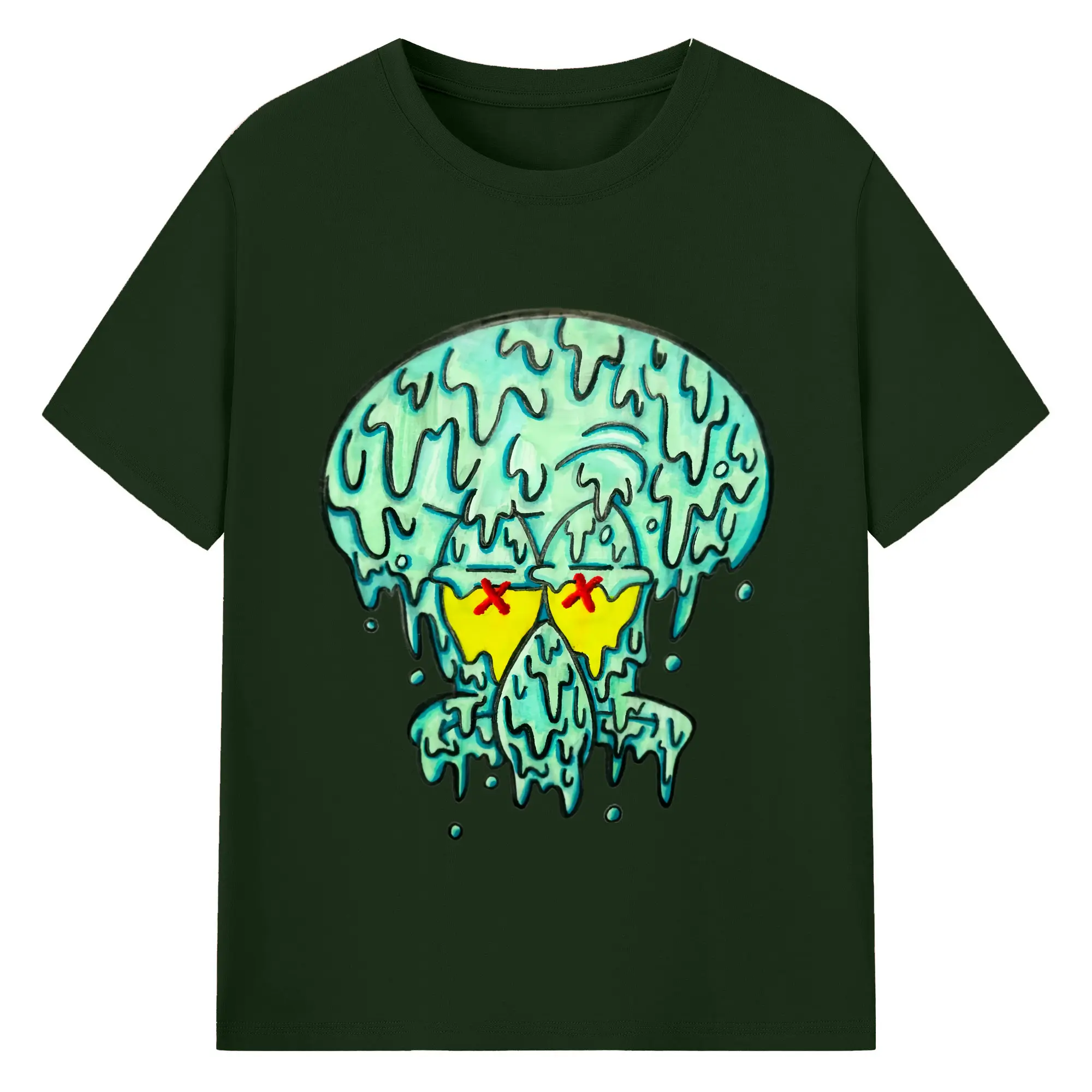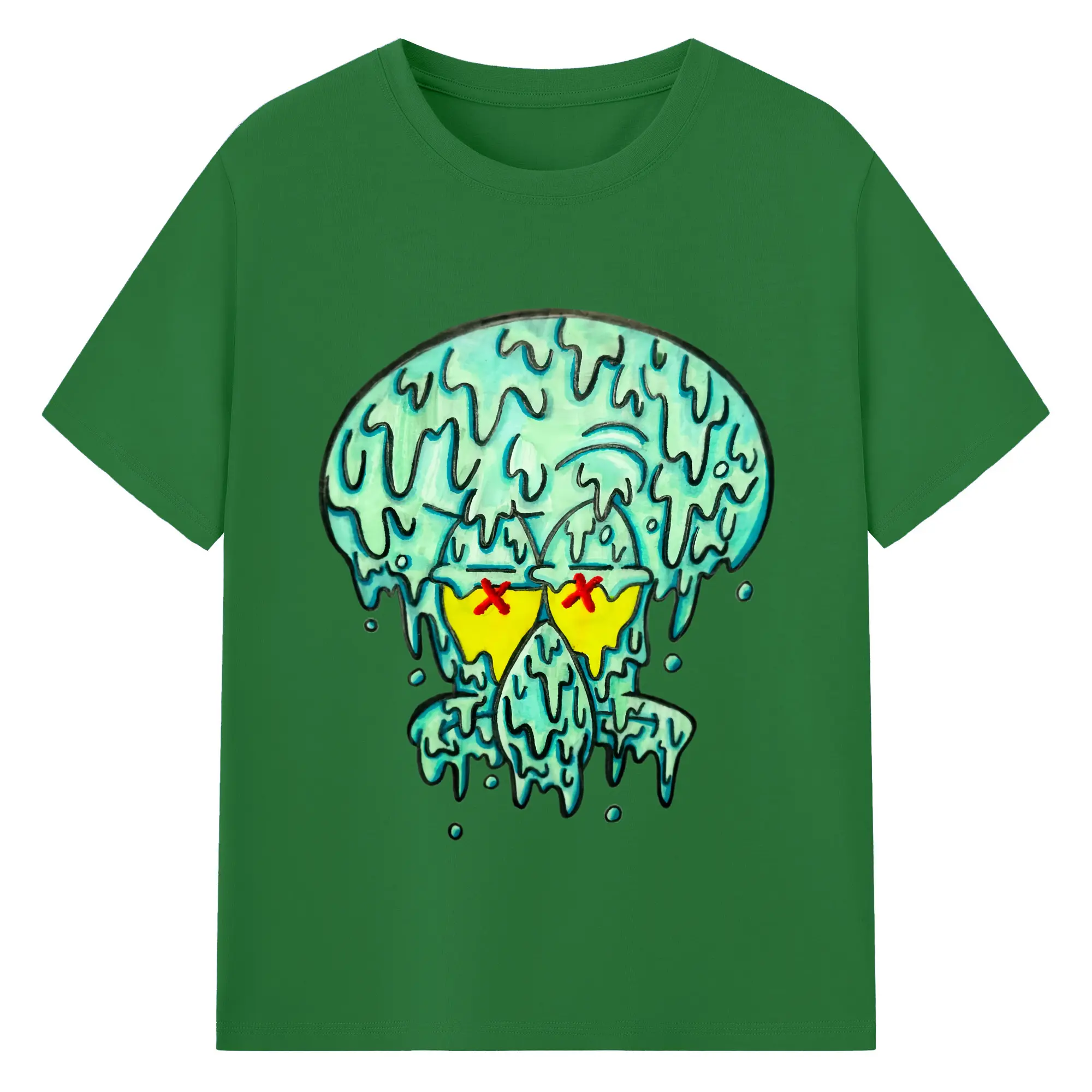 Spongebob Squidward dissolve the pattern t-shirt - 180g Cotton T-Shirt With Front Heat Transfer Print – Soft, Lightweight, Fitted Design – Comfortable Casual Wear For Sports & Everyday Use