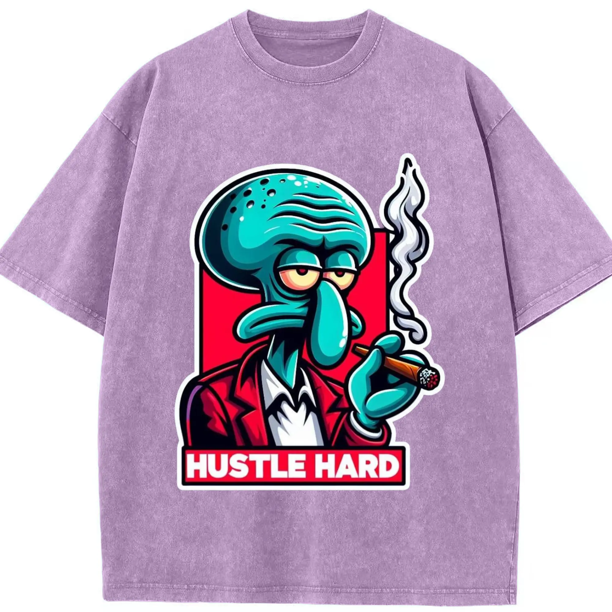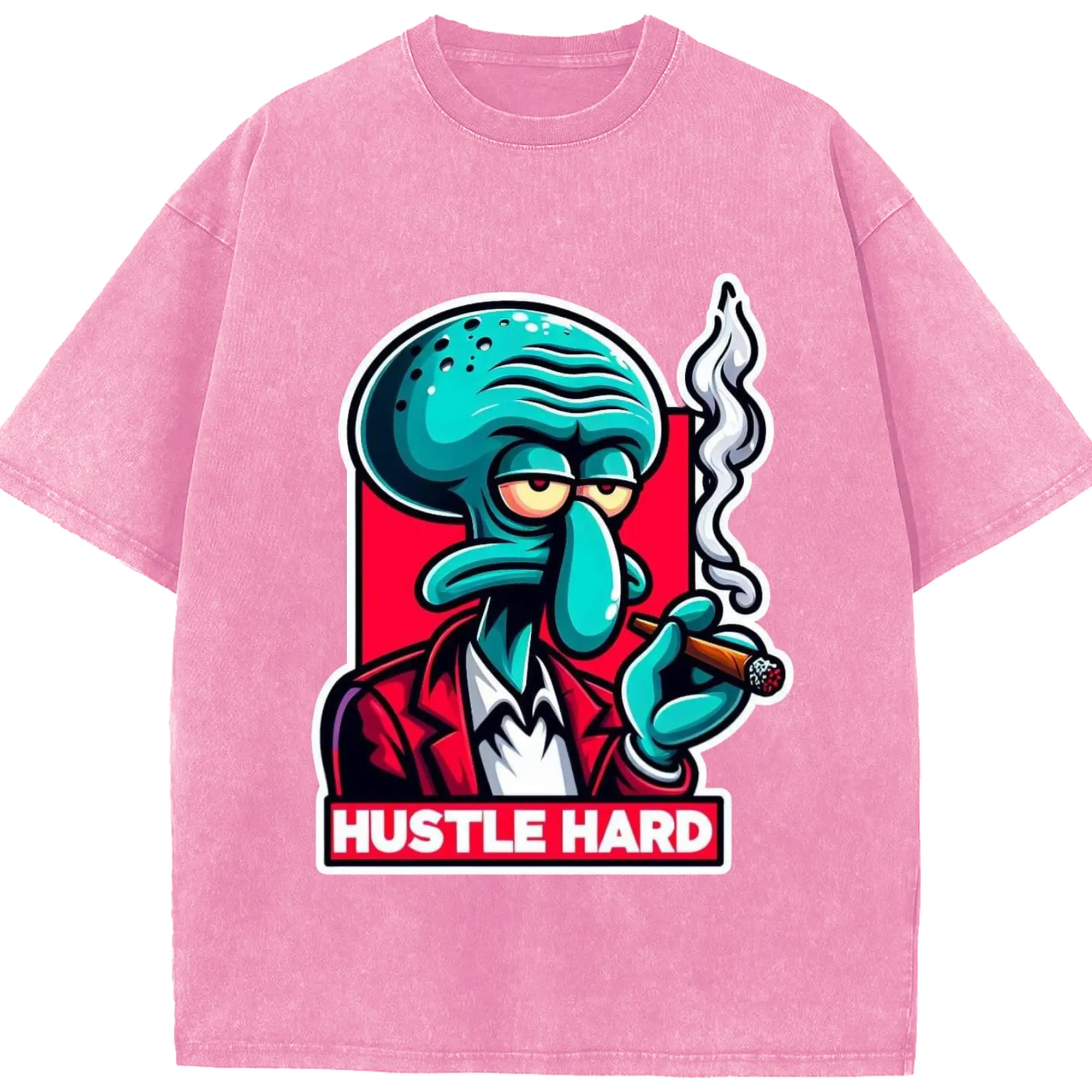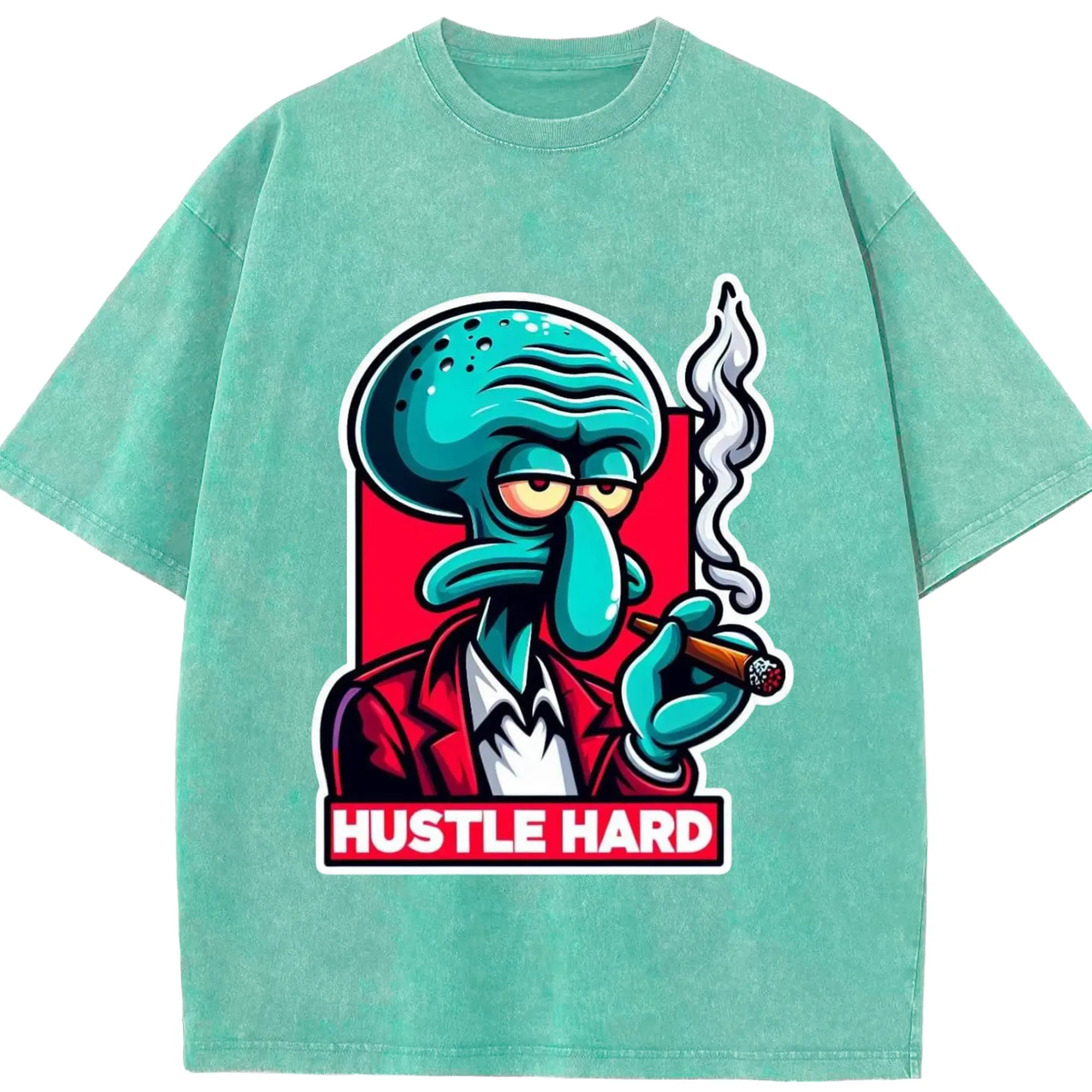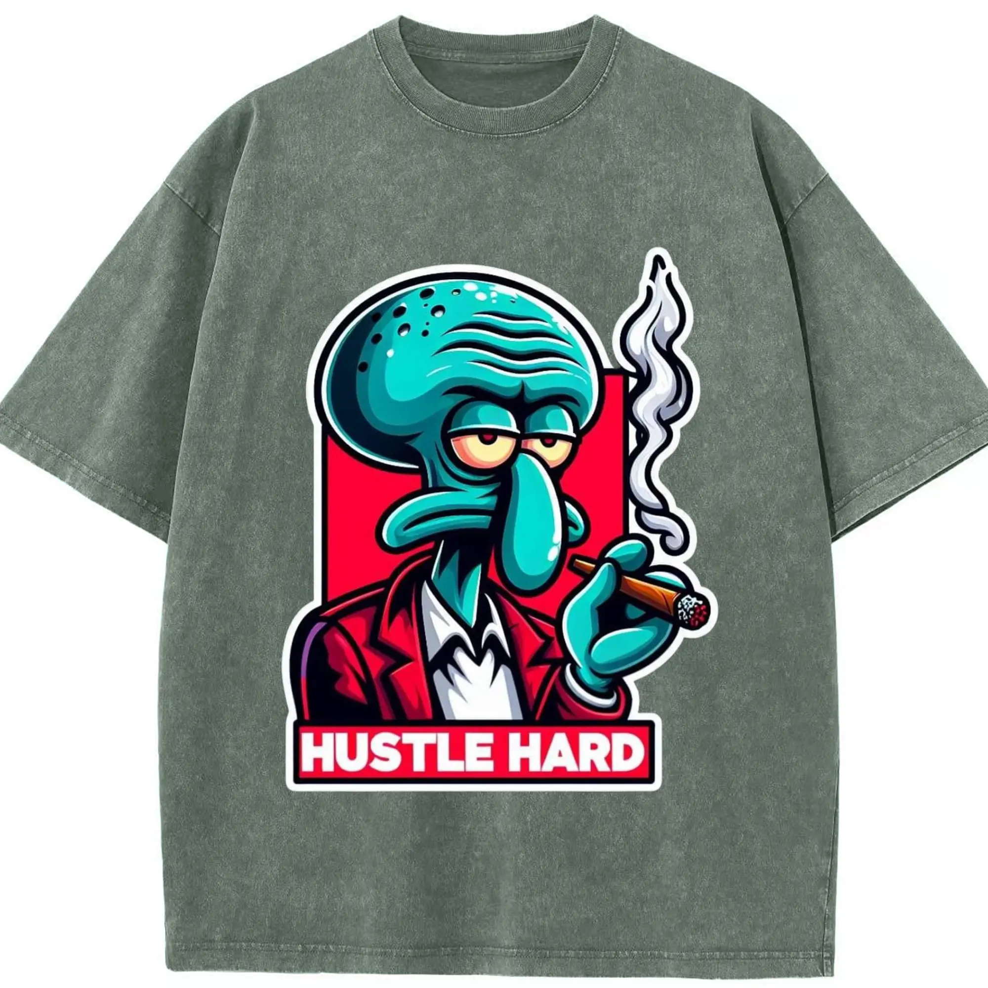 Spongebob Squidward hustle hard t-shirt - Washed Vintage Look 230g Cotton Oversized T-Shirt With Front Heat Transfer Print – Soft, Lightweight, Stylish Fit – Comfortable Casual Wear For Sports & Everyday Use
