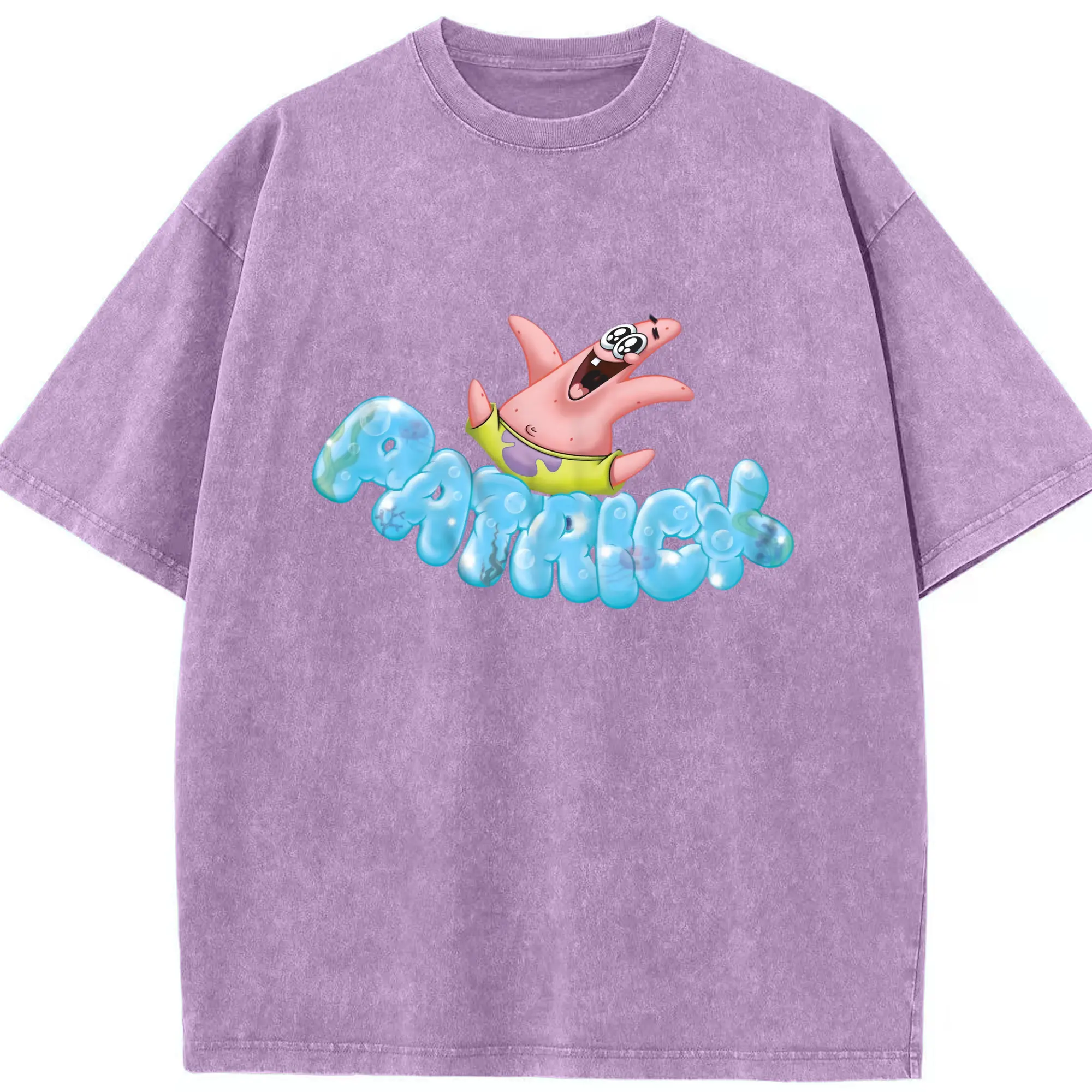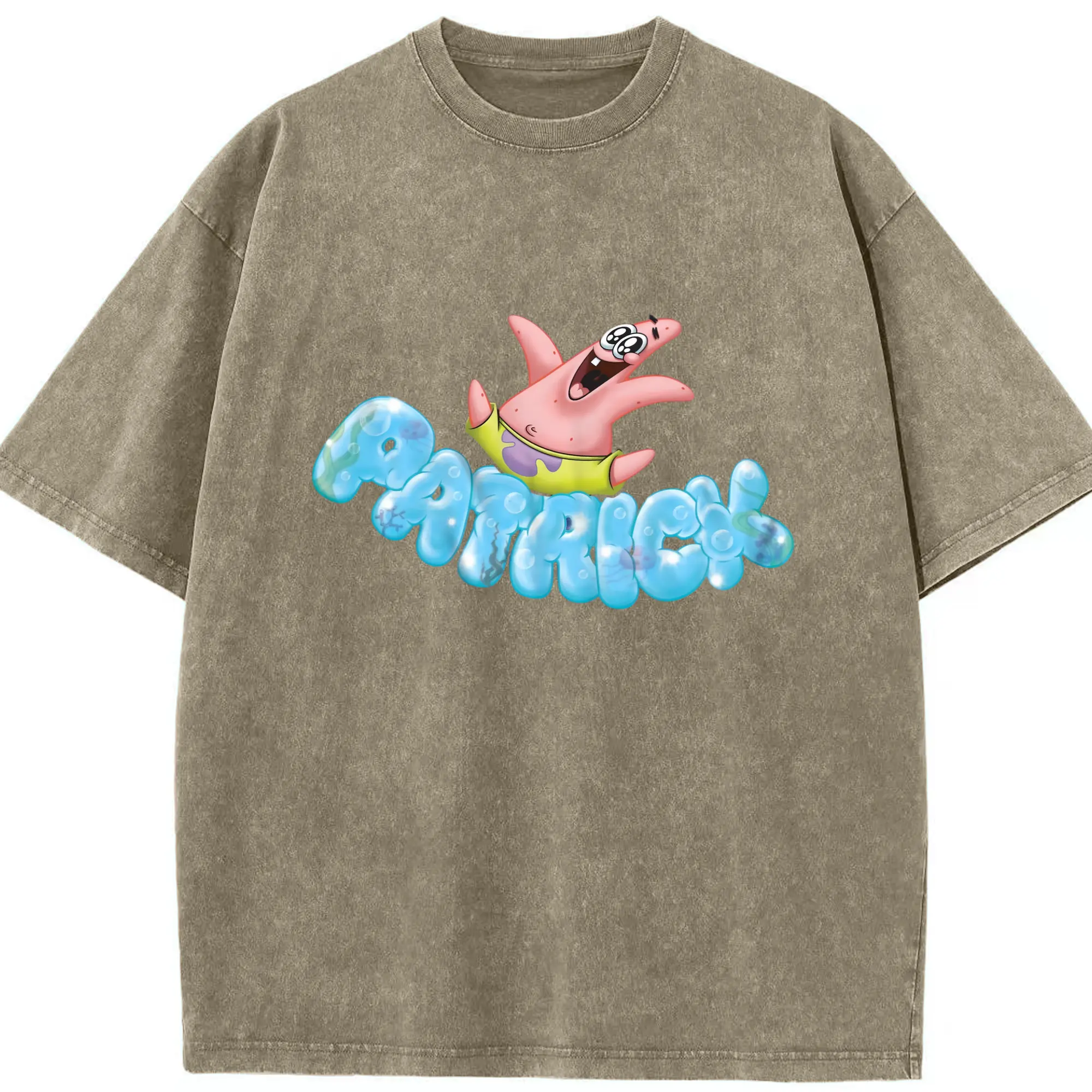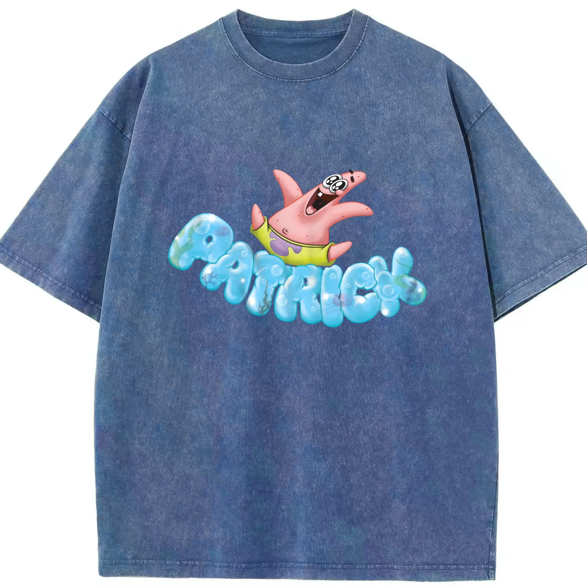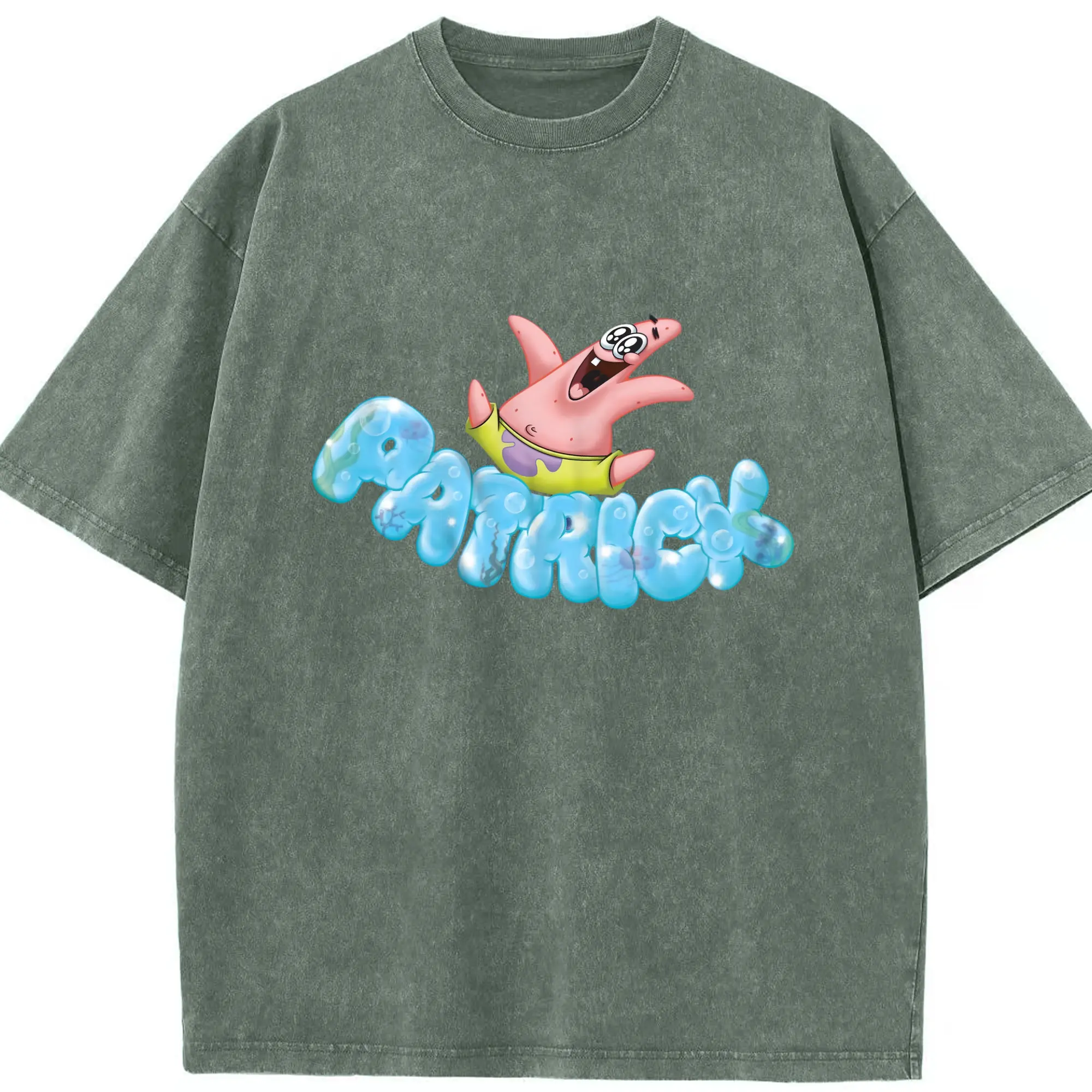 Spongebob super Patrick happy Graphic Tee - Washed Vintage Look 230g Cotton Oversized T-Shirt With Front Heat Transfer Print – Soft, Lightweight, Stylish Fit – Comfortable Casual Wear For Sports & Everyday Use