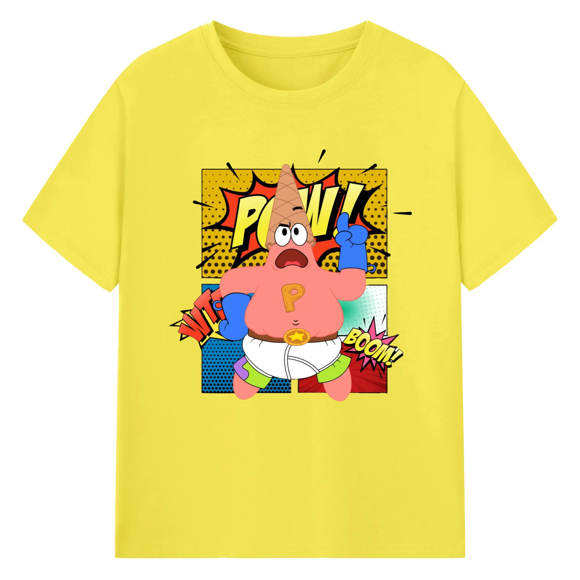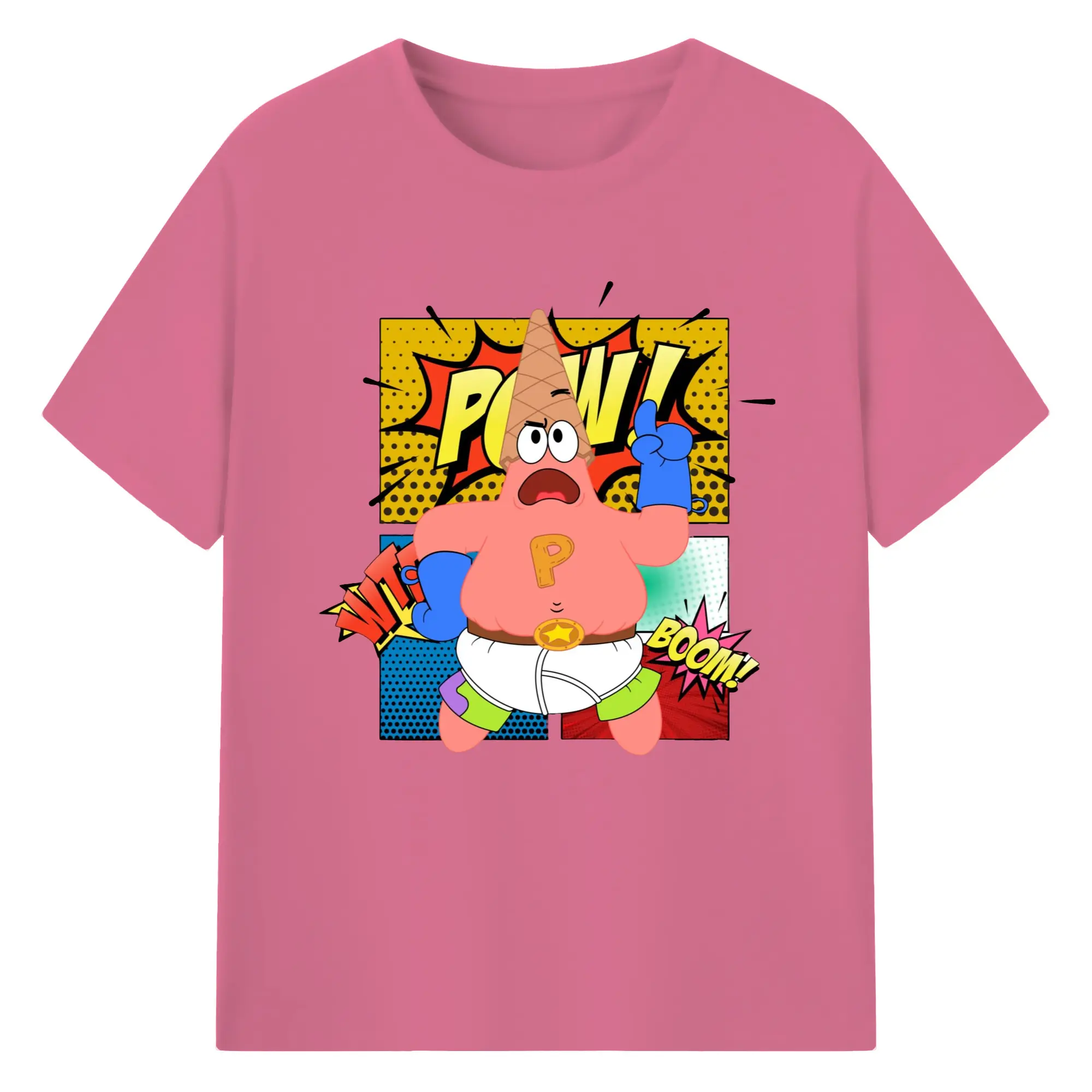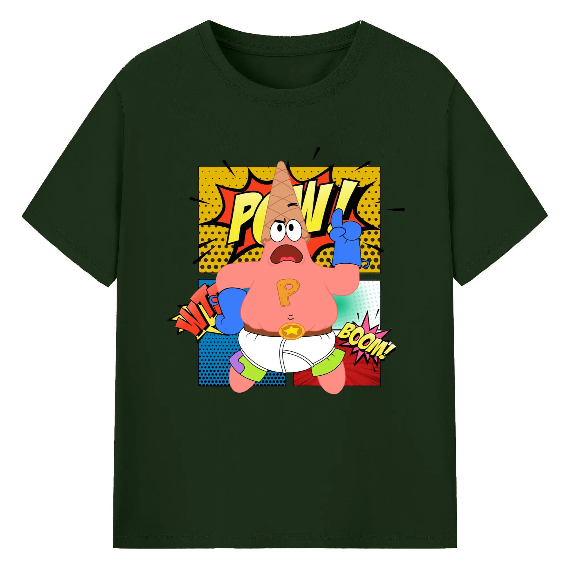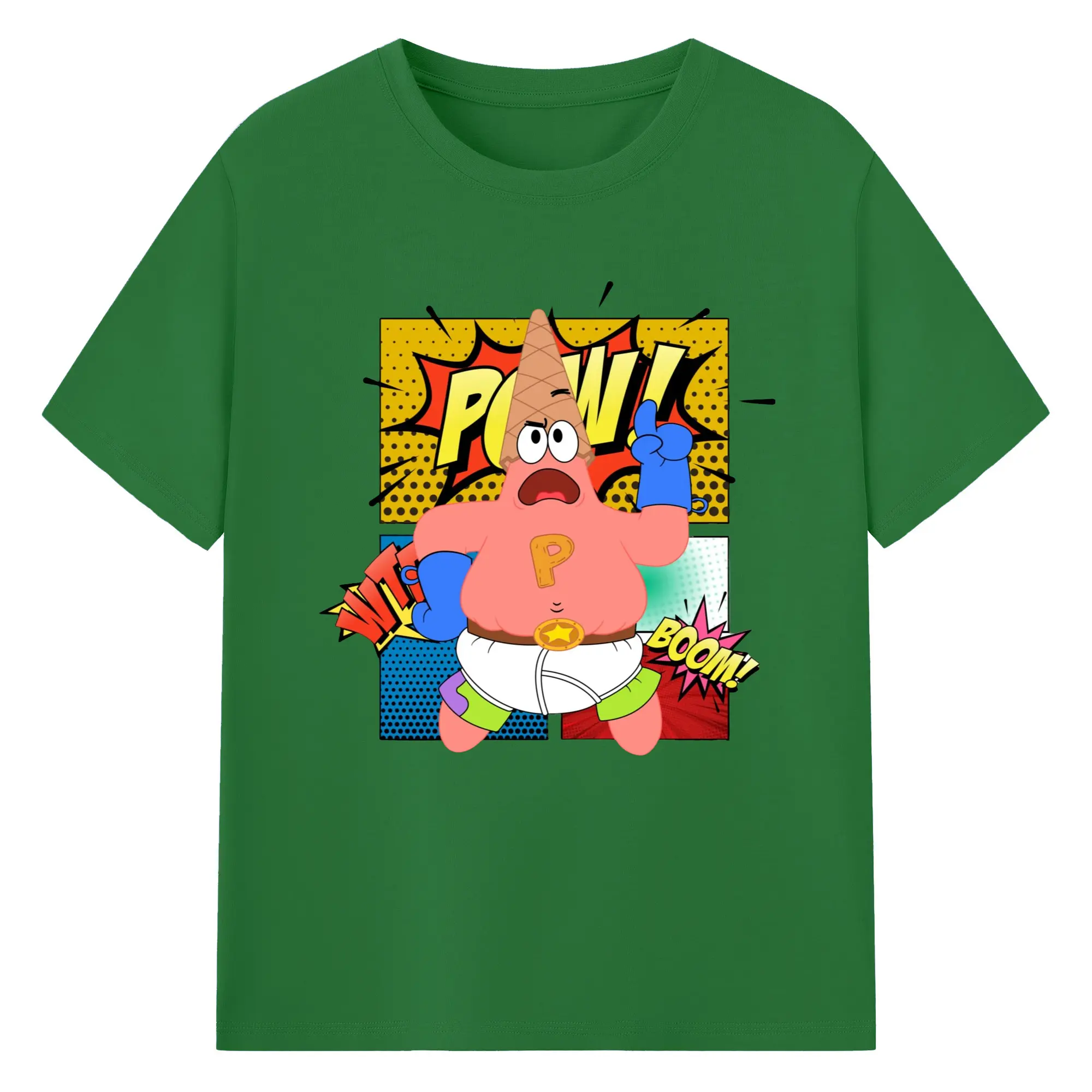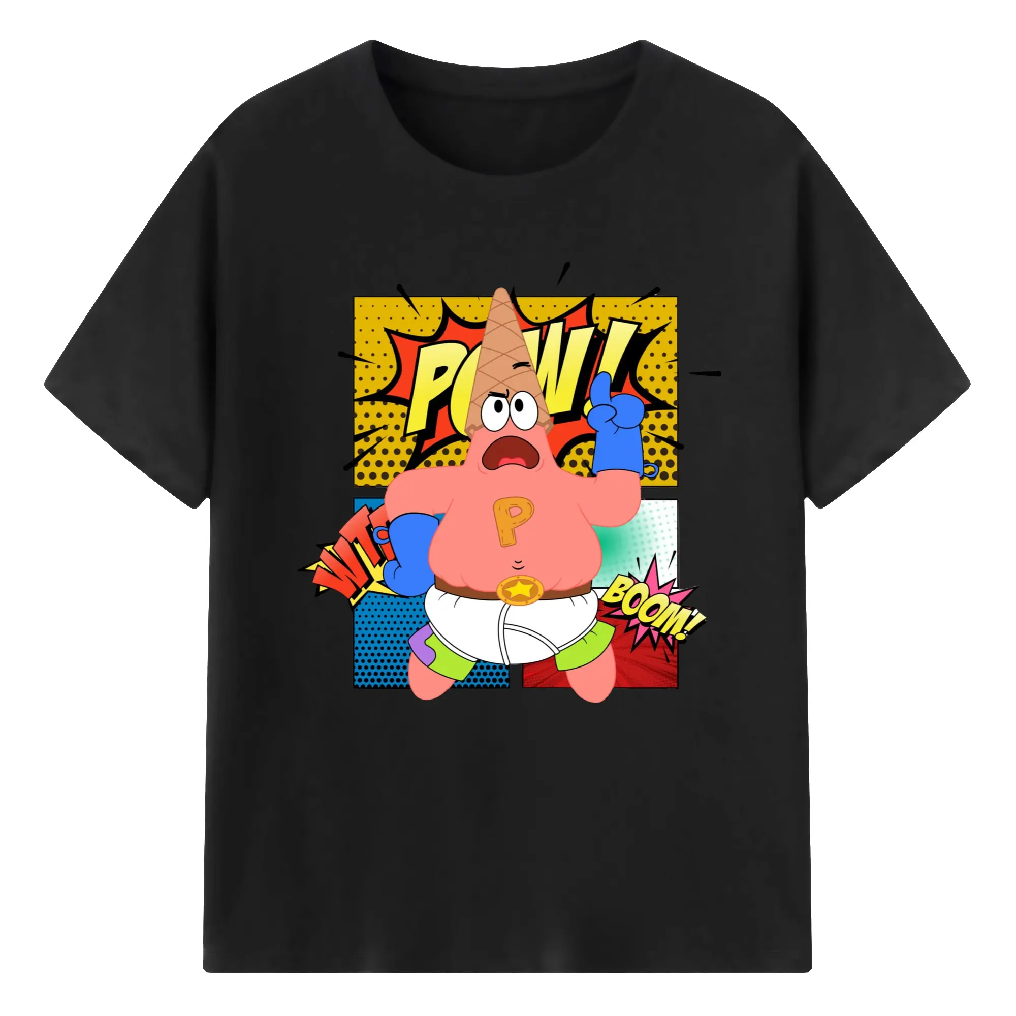 Spongebob super Patrick Star Graphic Tee - 180g Cotton T-Shirt With Front Heat Transfer Print – Soft, Lightweight, Fitted Design – Comfortable Casual Wear For Sports & Everyday Use