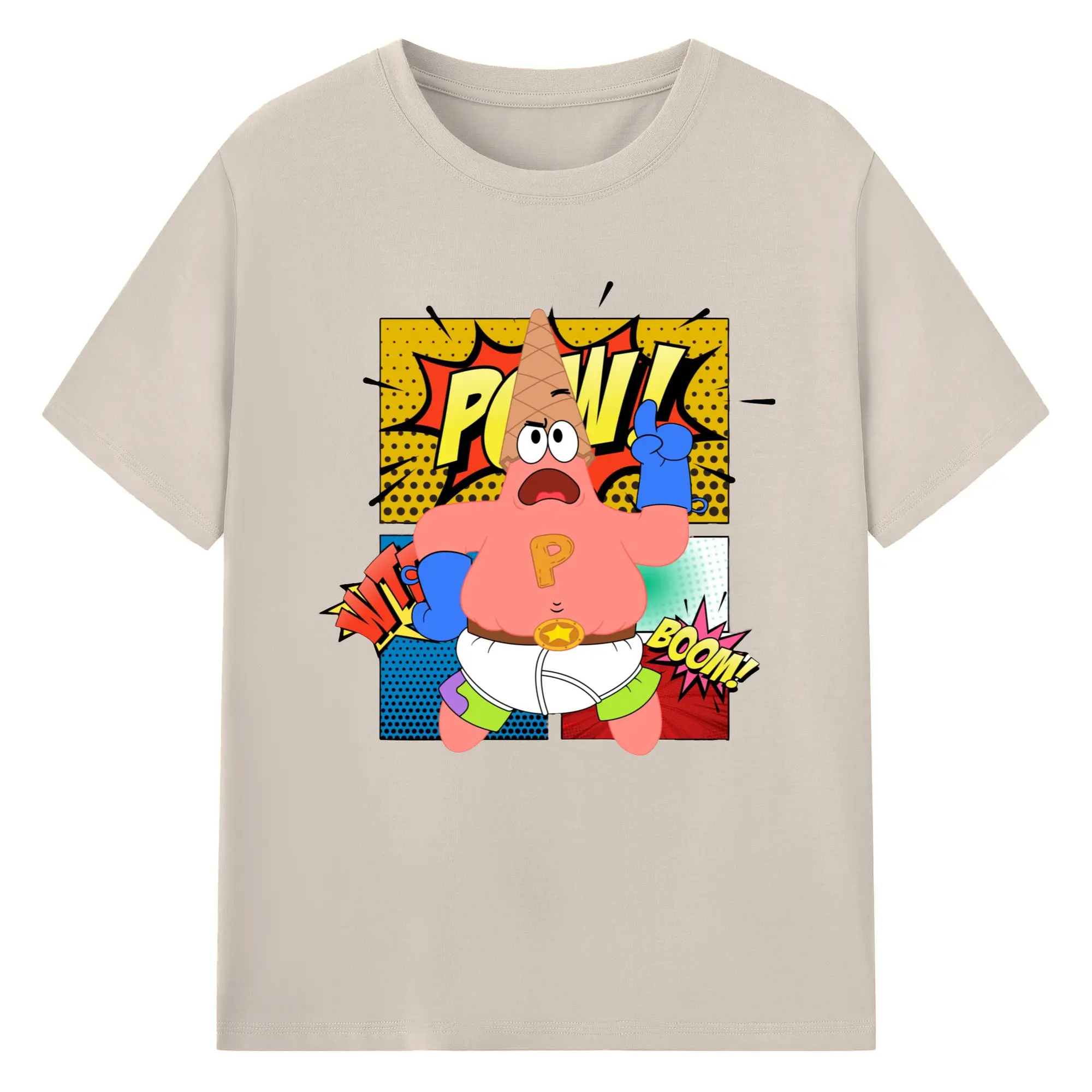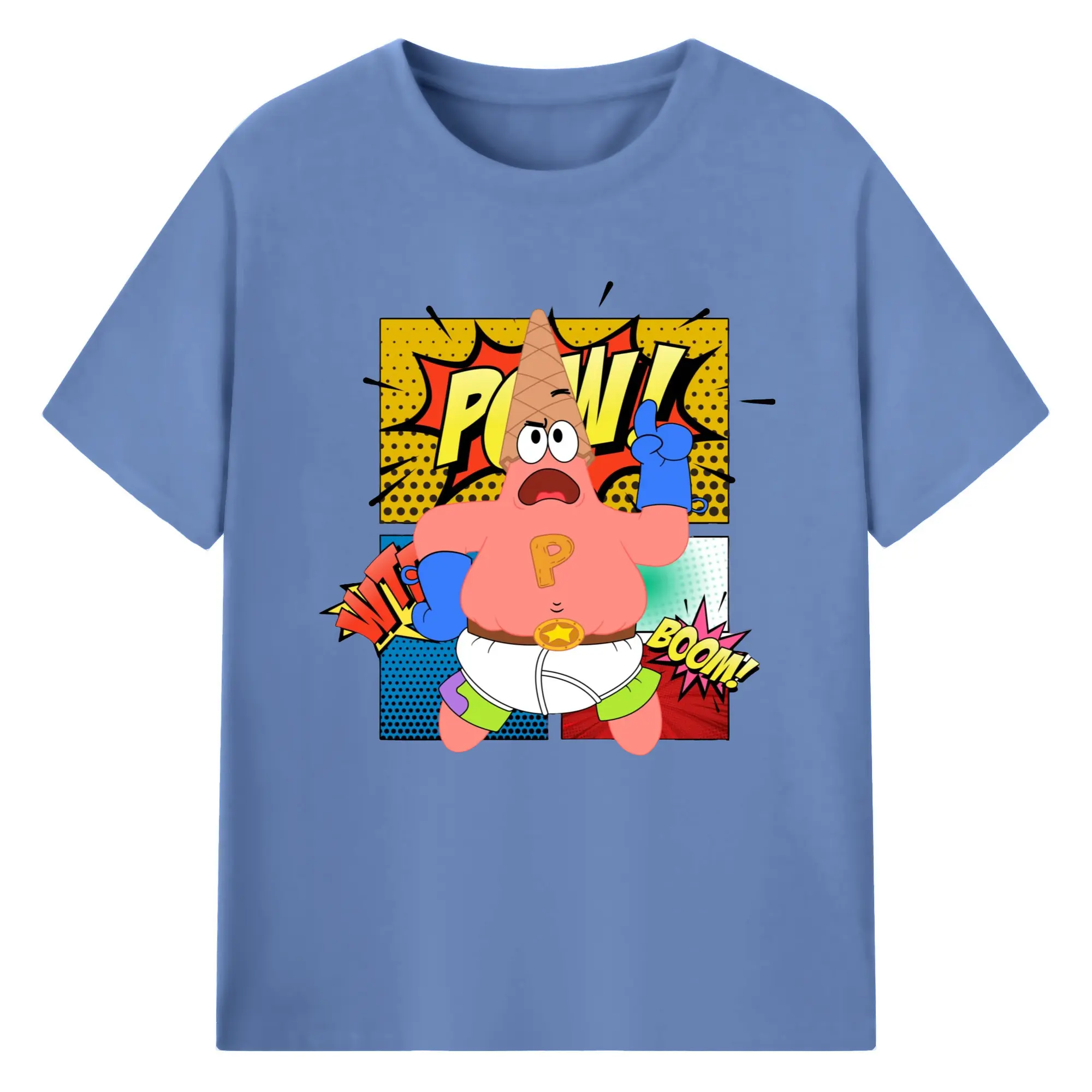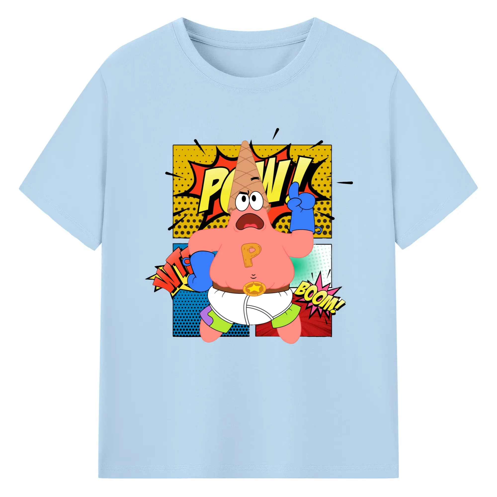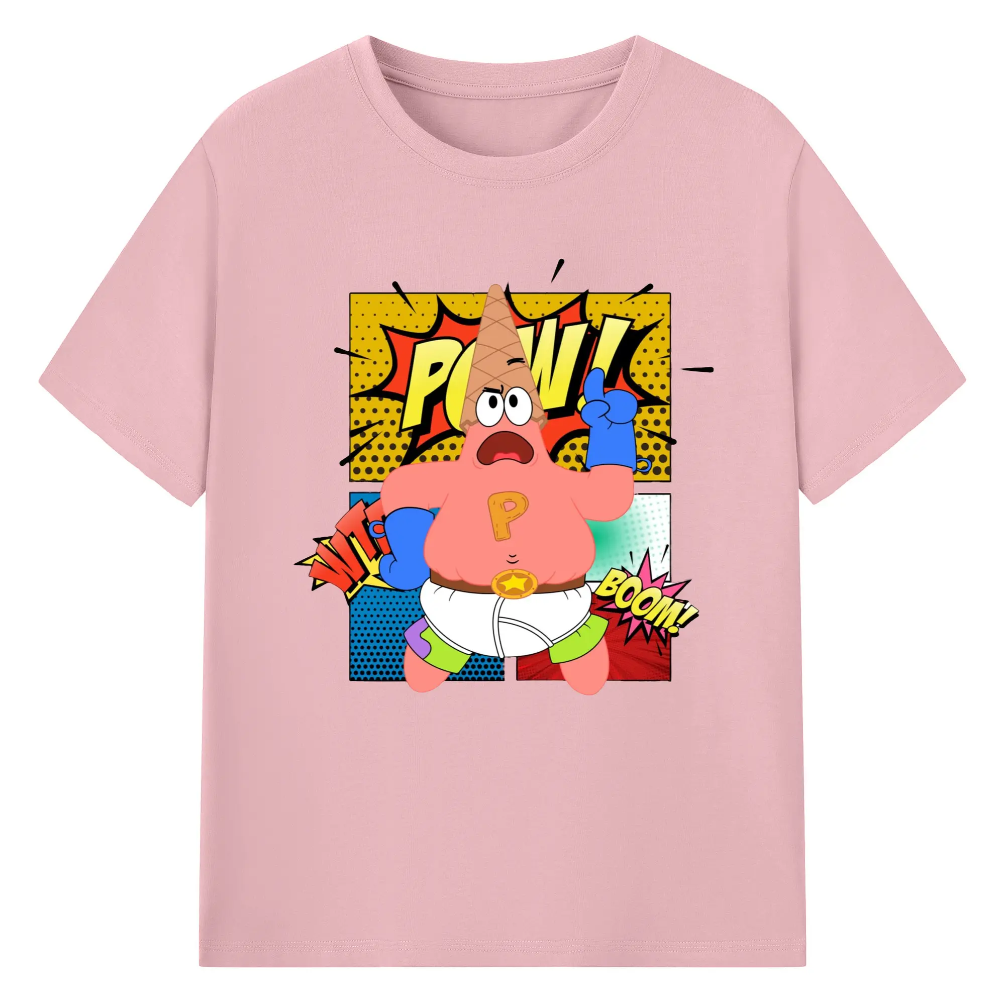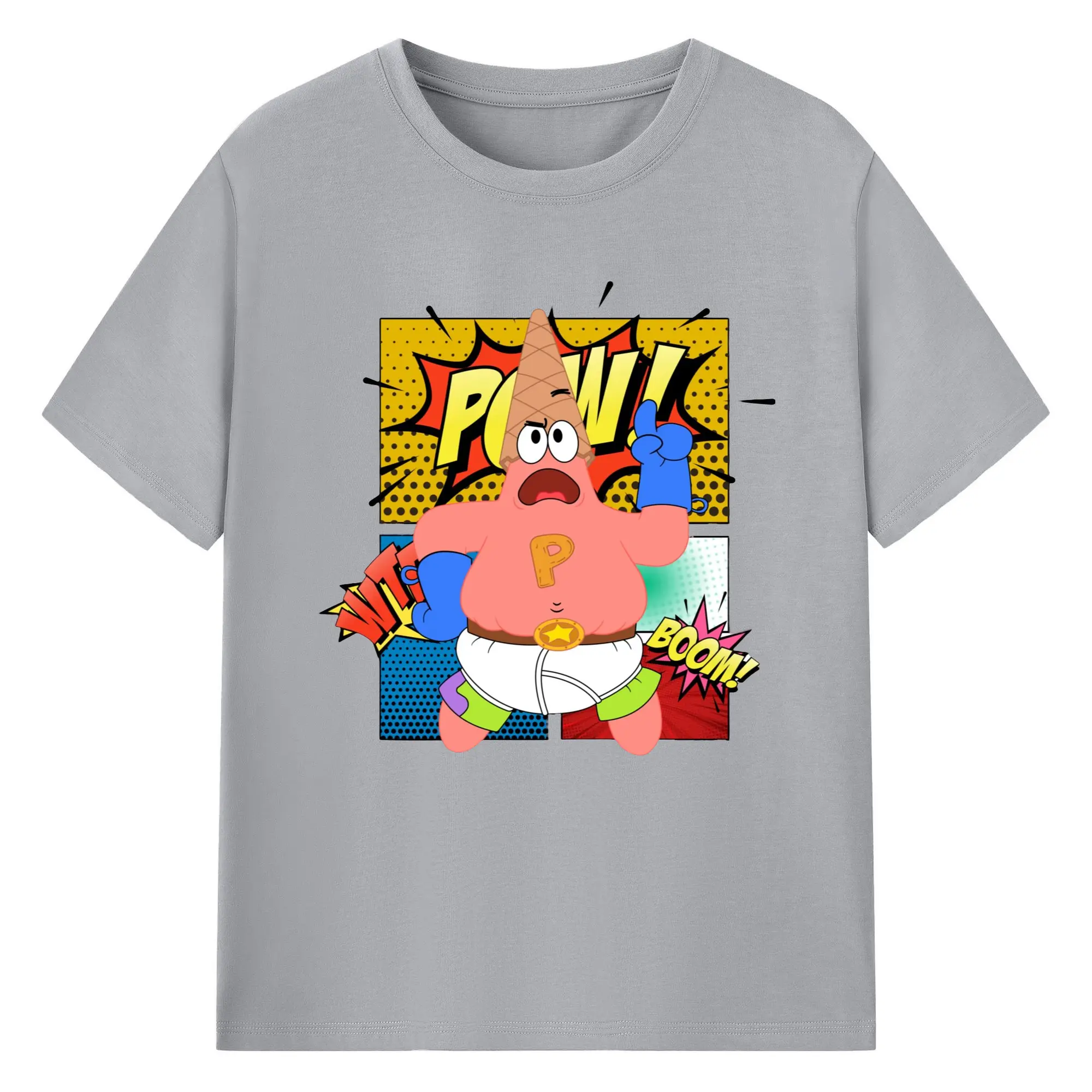 Spongebob super Patrick Star Graphic Tee - 180g Cotton T-Shirt With Front Heat Transfer Print – Soft, Lightweight, Fitted Design – Comfortable Casual Wear For Sports & Everyday Use