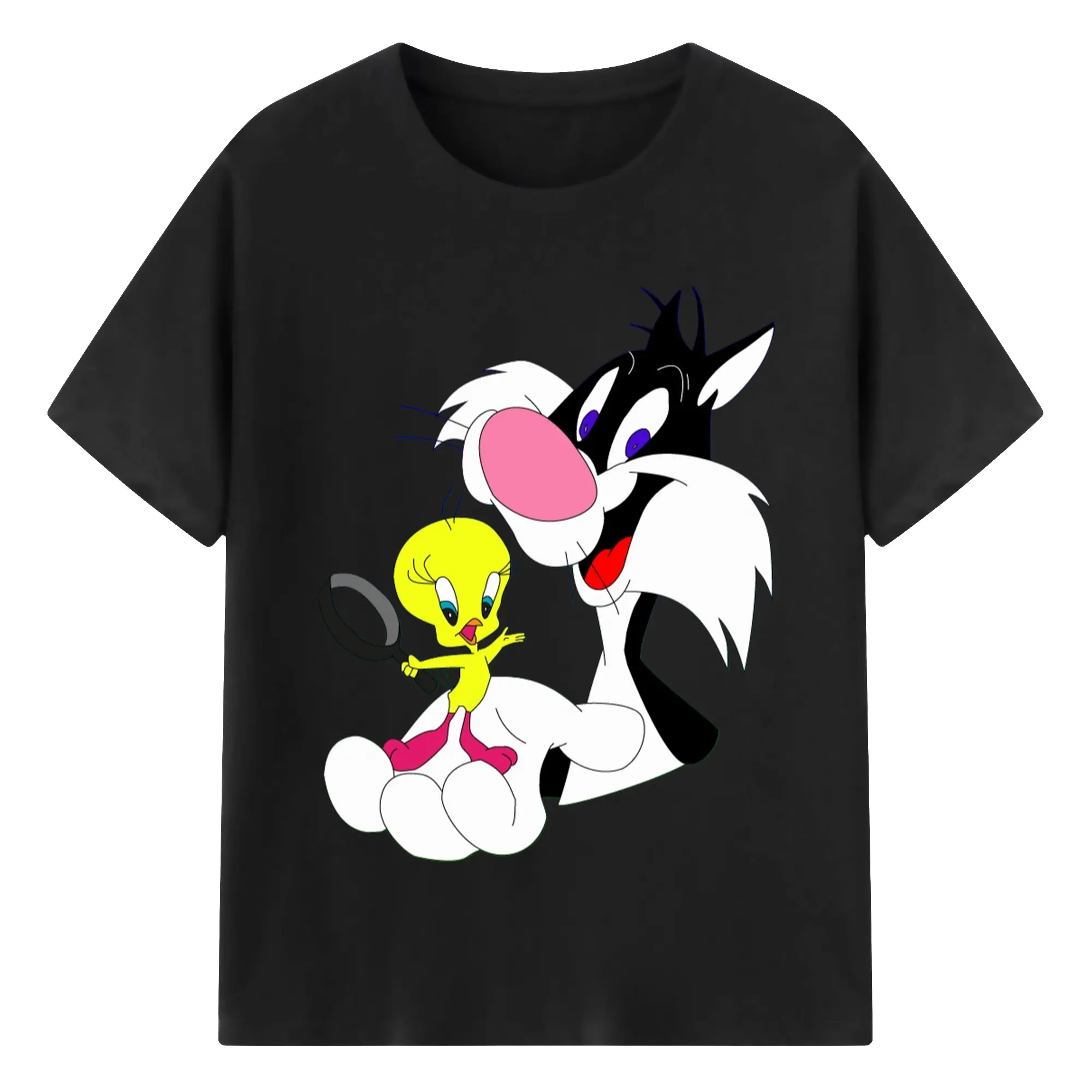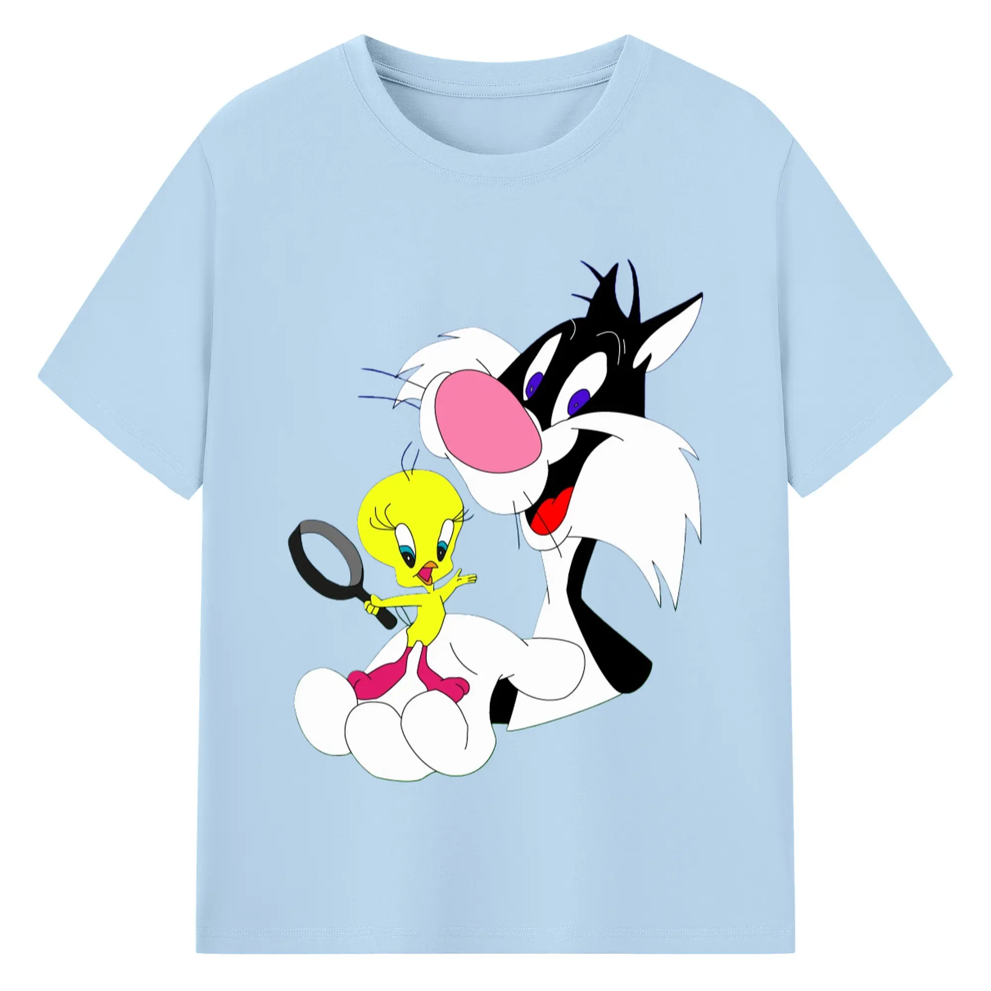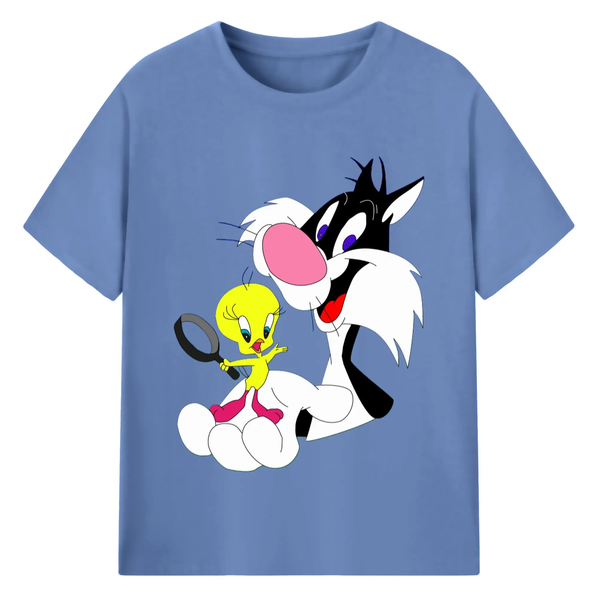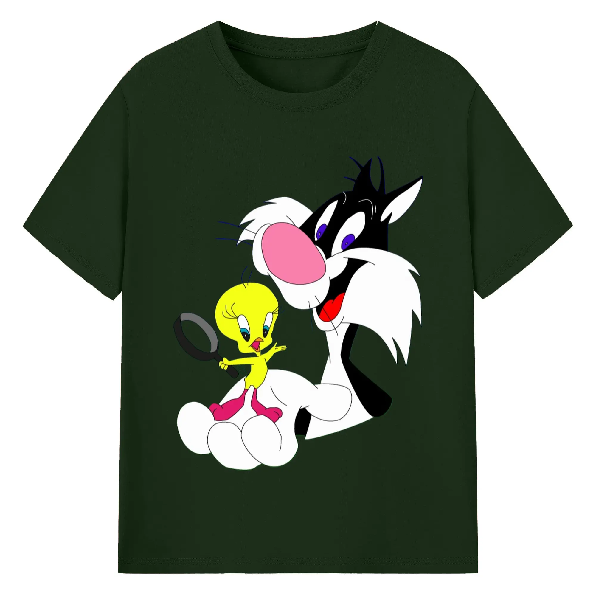Sylvester and tweety t shirt​ - 180g Cotton T-Shirt With Front Heat Transfer Print – Soft, Lightweight, Fitted Design – Comfortable Casual Wear For Sports & Everyday Use