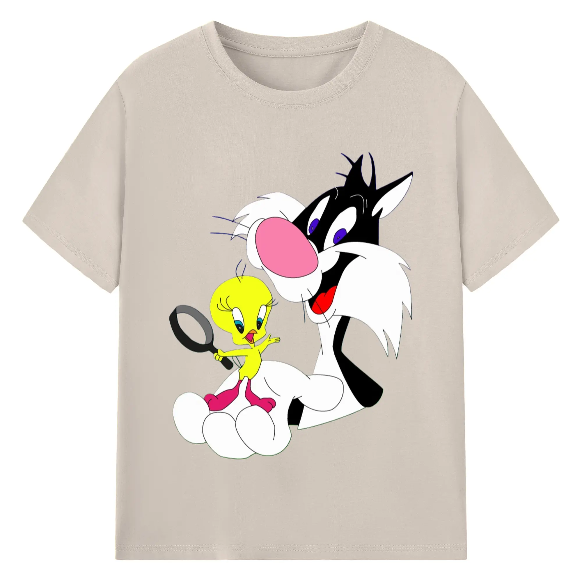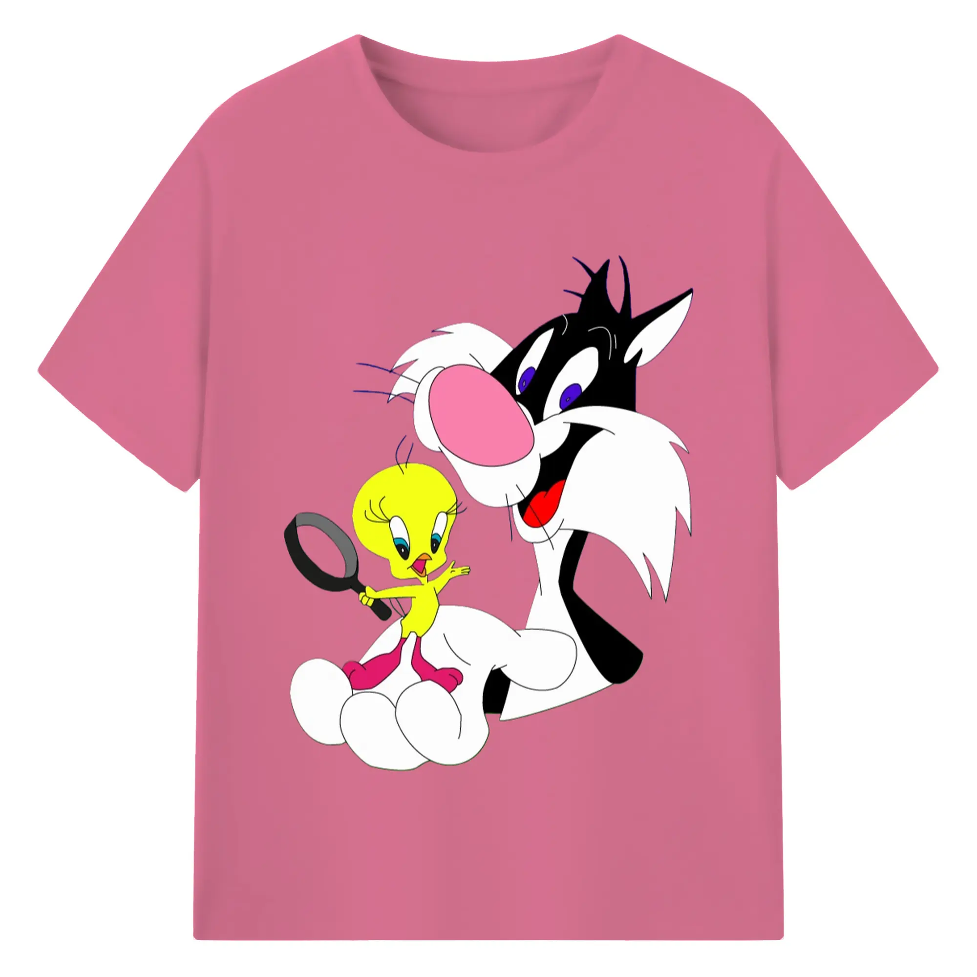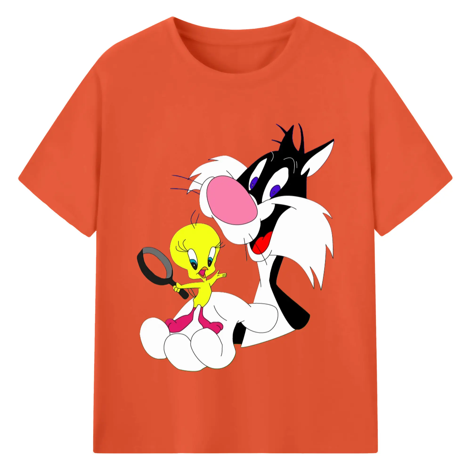 Sylvester and tweety t shirt​ - 180g Cotton T-Shirt With Front Heat Transfer Print – Soft, Lightweight, Fitted Design – Comfortable Casual Wear For Sports & Everyday Use