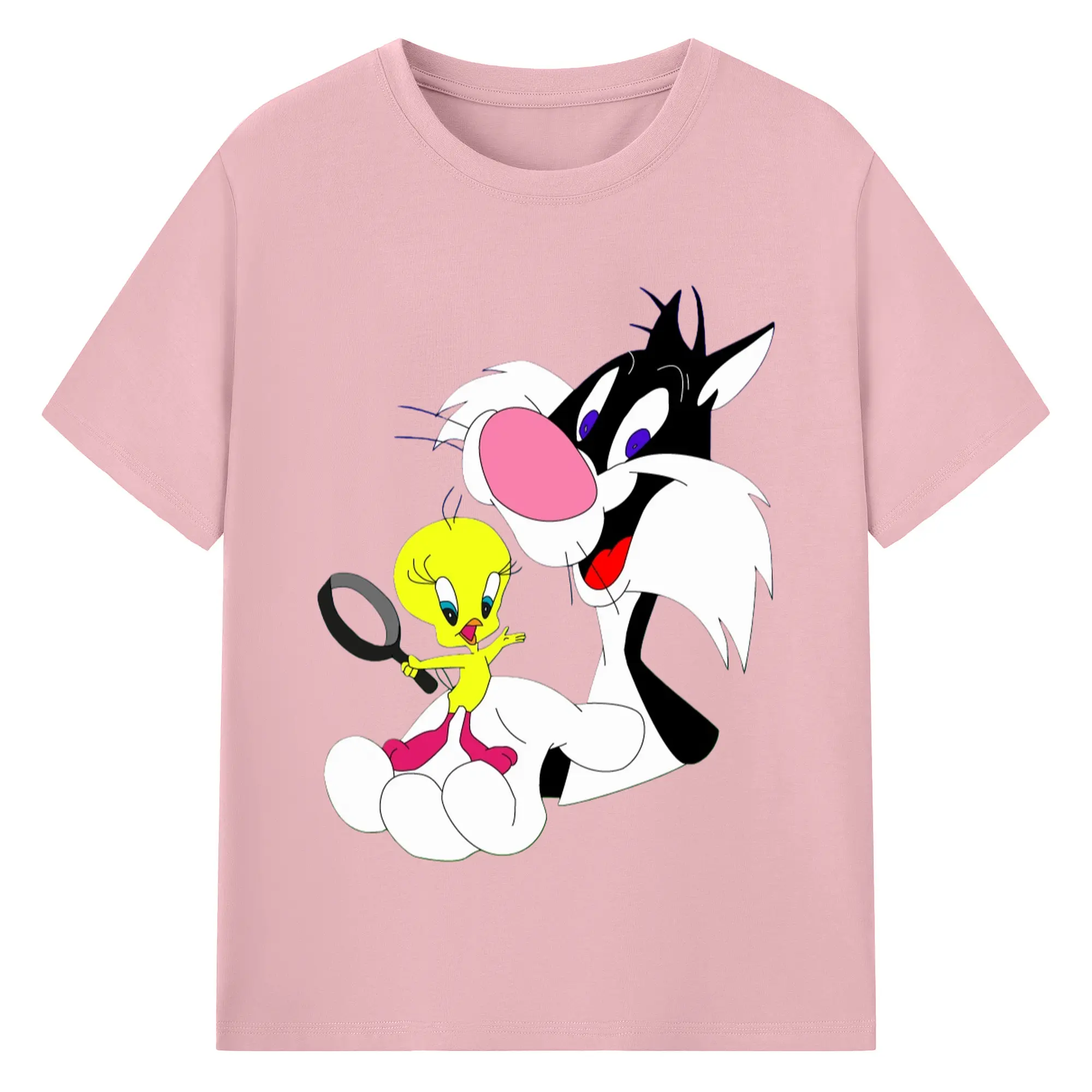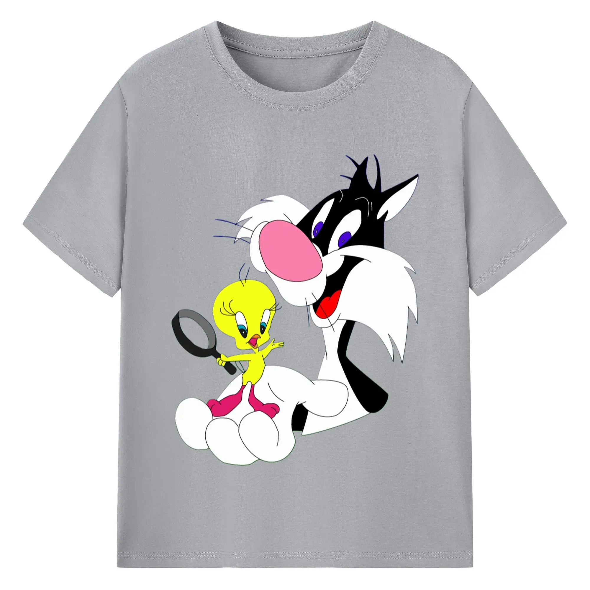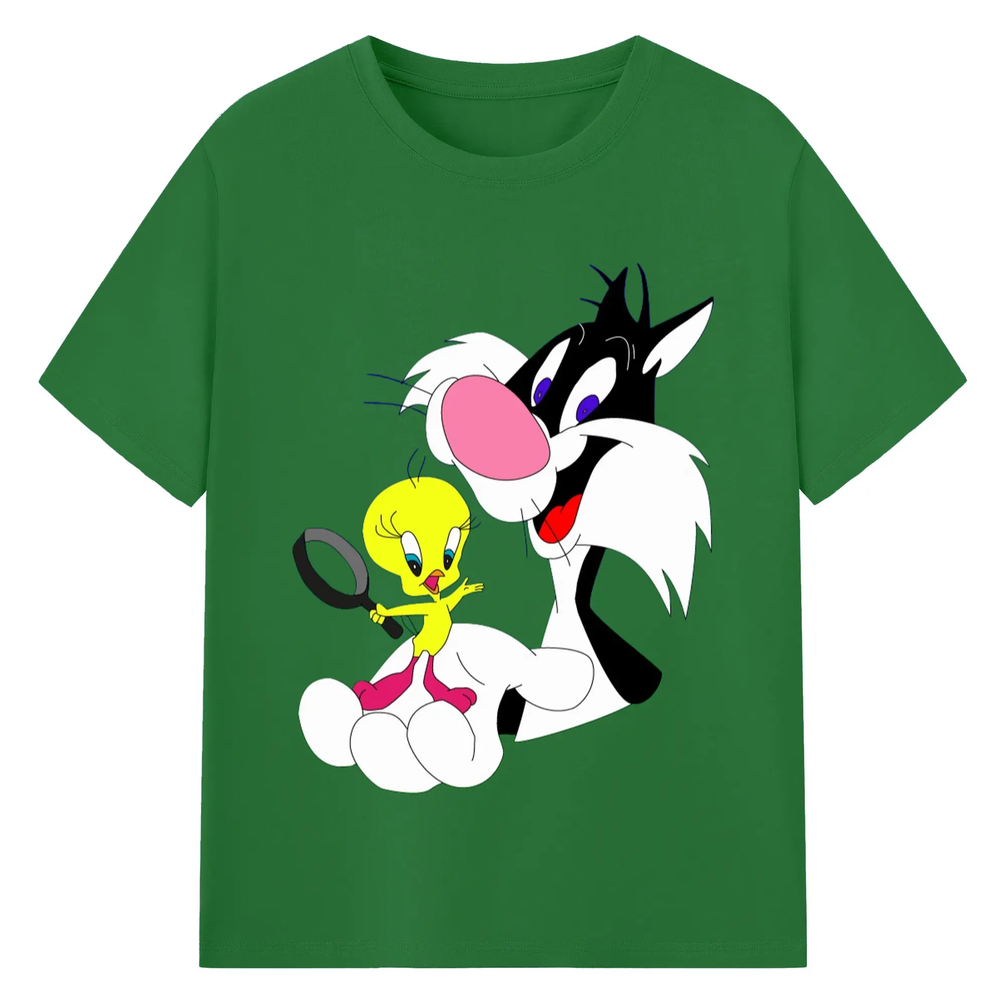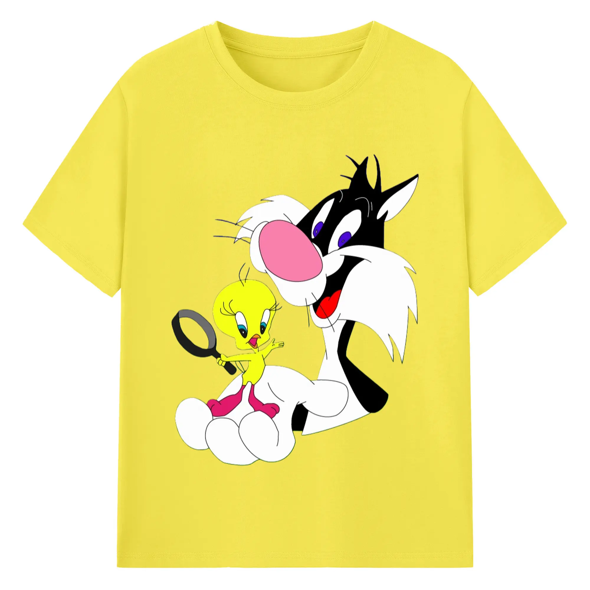 Sylvester and tweety t shirt​ - 180g Cotton T-Shirt With Front Heat Transfer Print – Soft, Lightweight, Fitted Design – Comfortable Casual Wear For Sports & Everyday Use