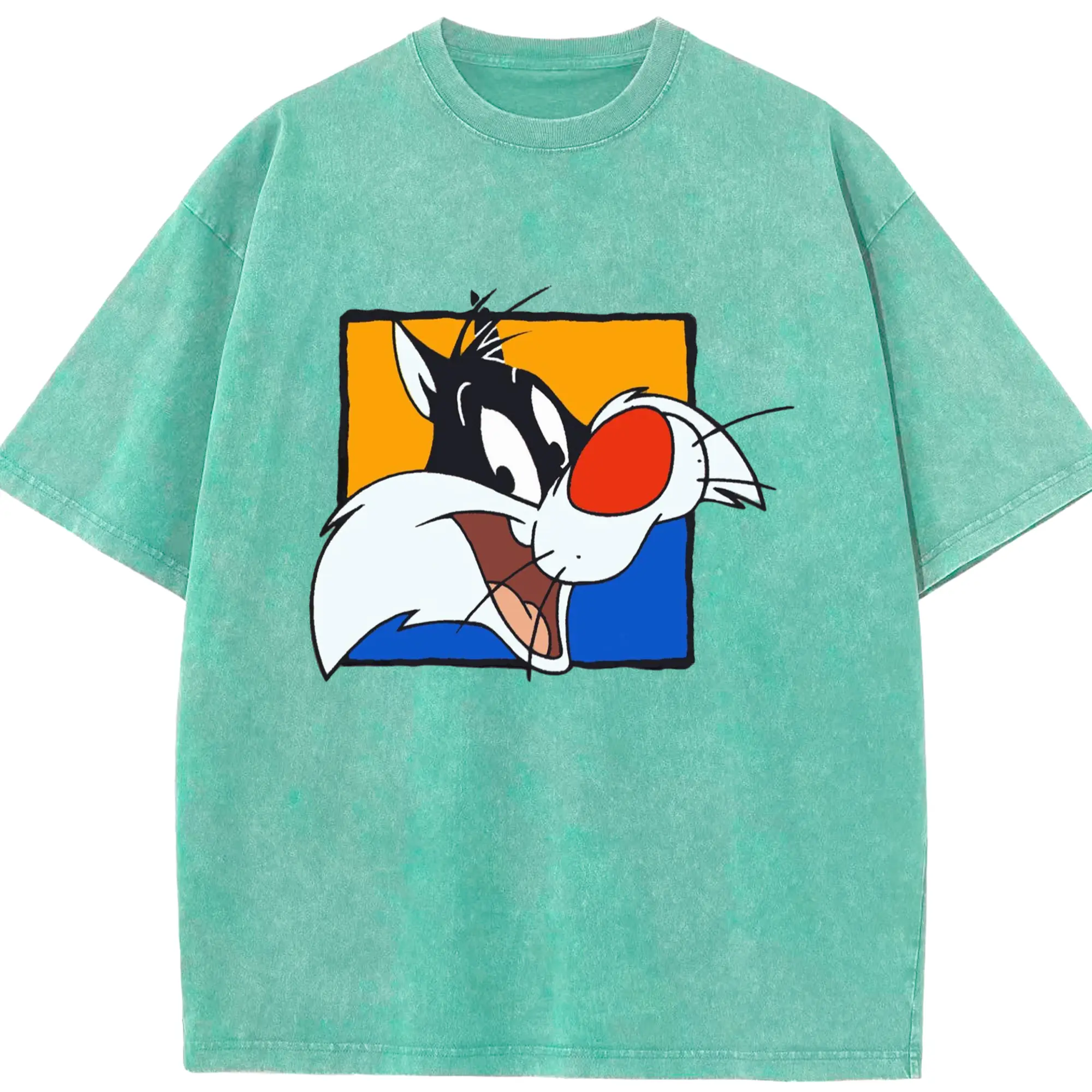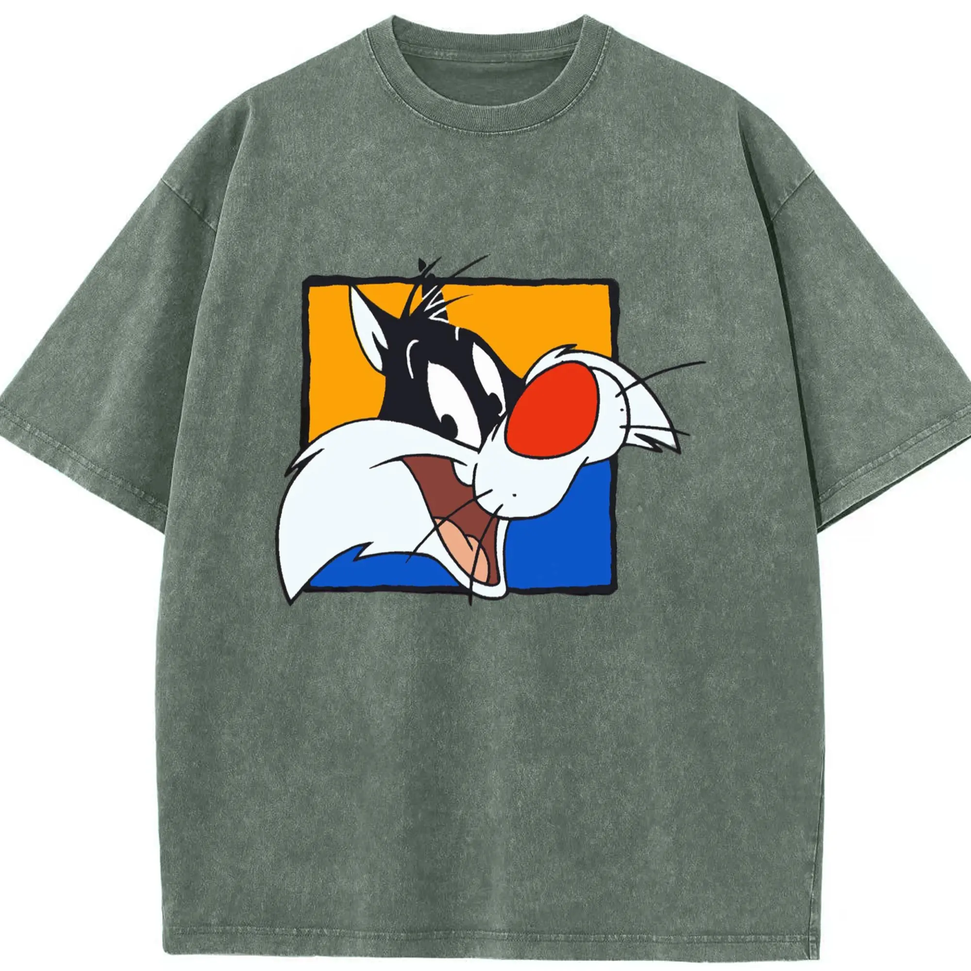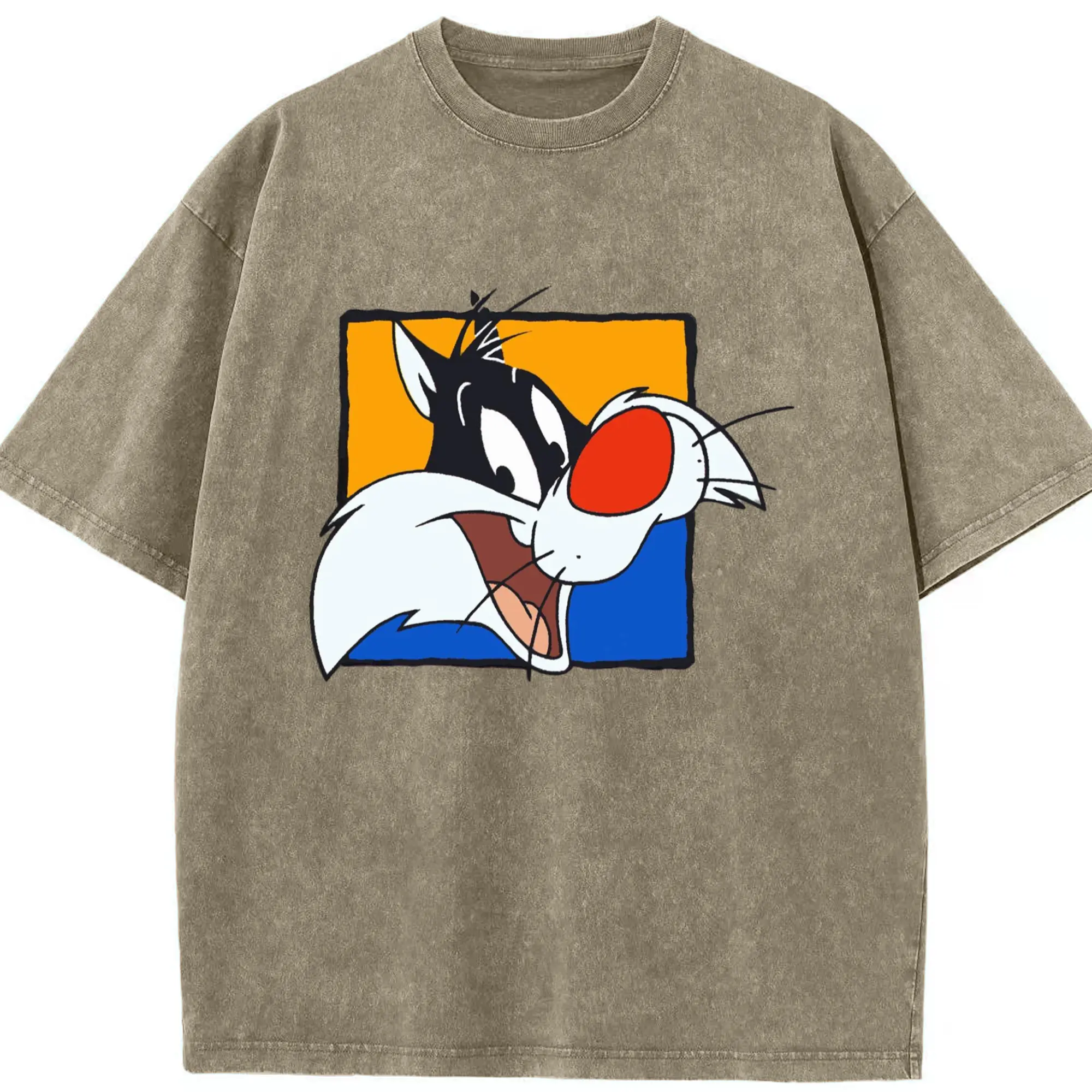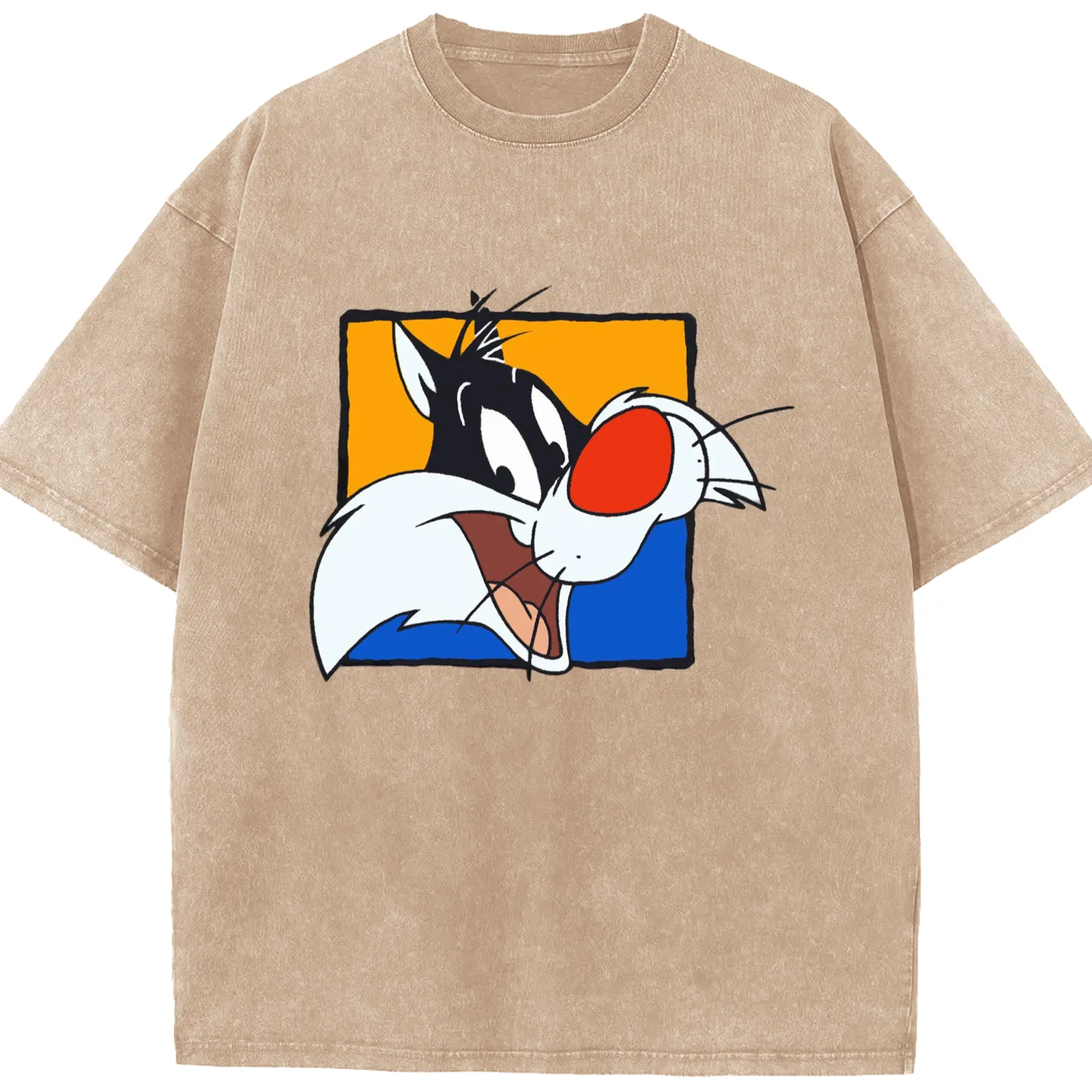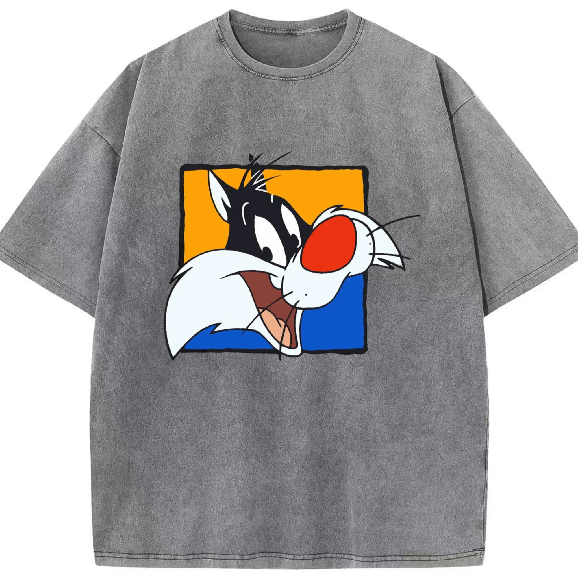 Sylvester t-shirt​ - Washed Vintage Look 230g Cotton Oversized T-Shirt With Front Heat Transfer Print – Soft, Lightweight, Stylish Fit – Comfortable Casual Wear For Sports & Everyday Use
