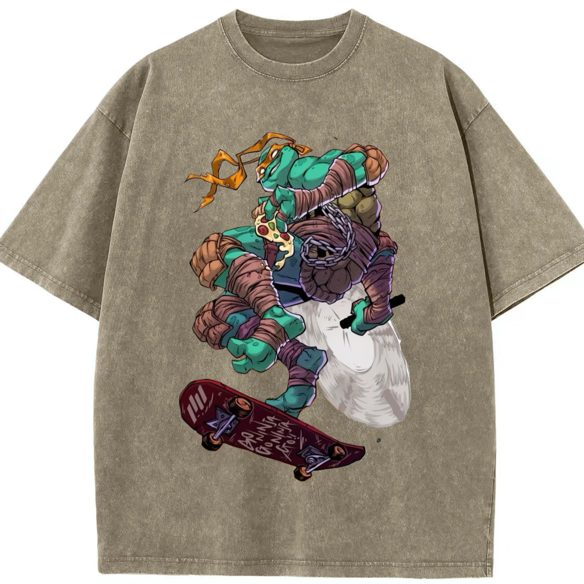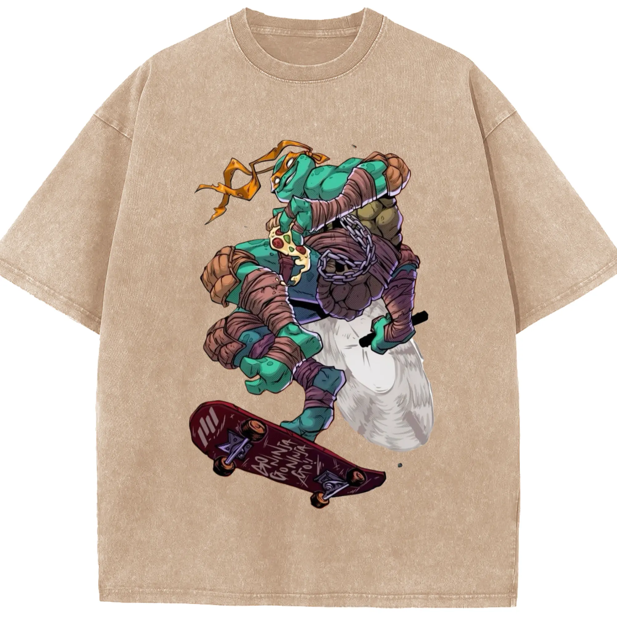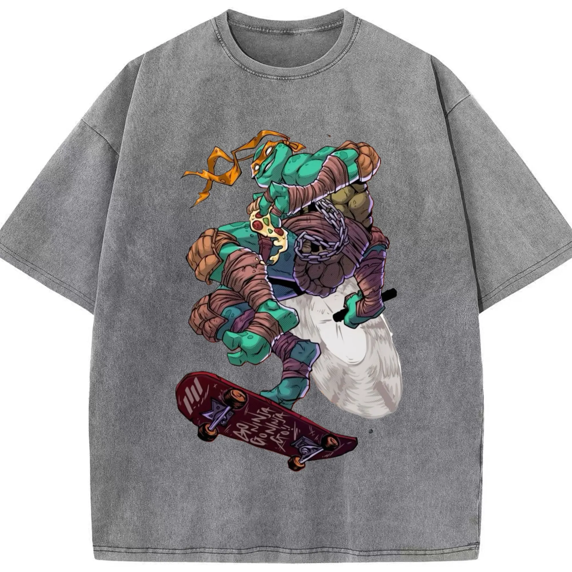 Teenage Mutant Ninja Turtles Michelangelo tee - Washed Vintage Look 230g Cotton Oversized T-Shirt With Front Heat Transfer Print – Soft, Lightweight, Stylish Fit – Comfortable Casual Wear For Sports & Everyday Use