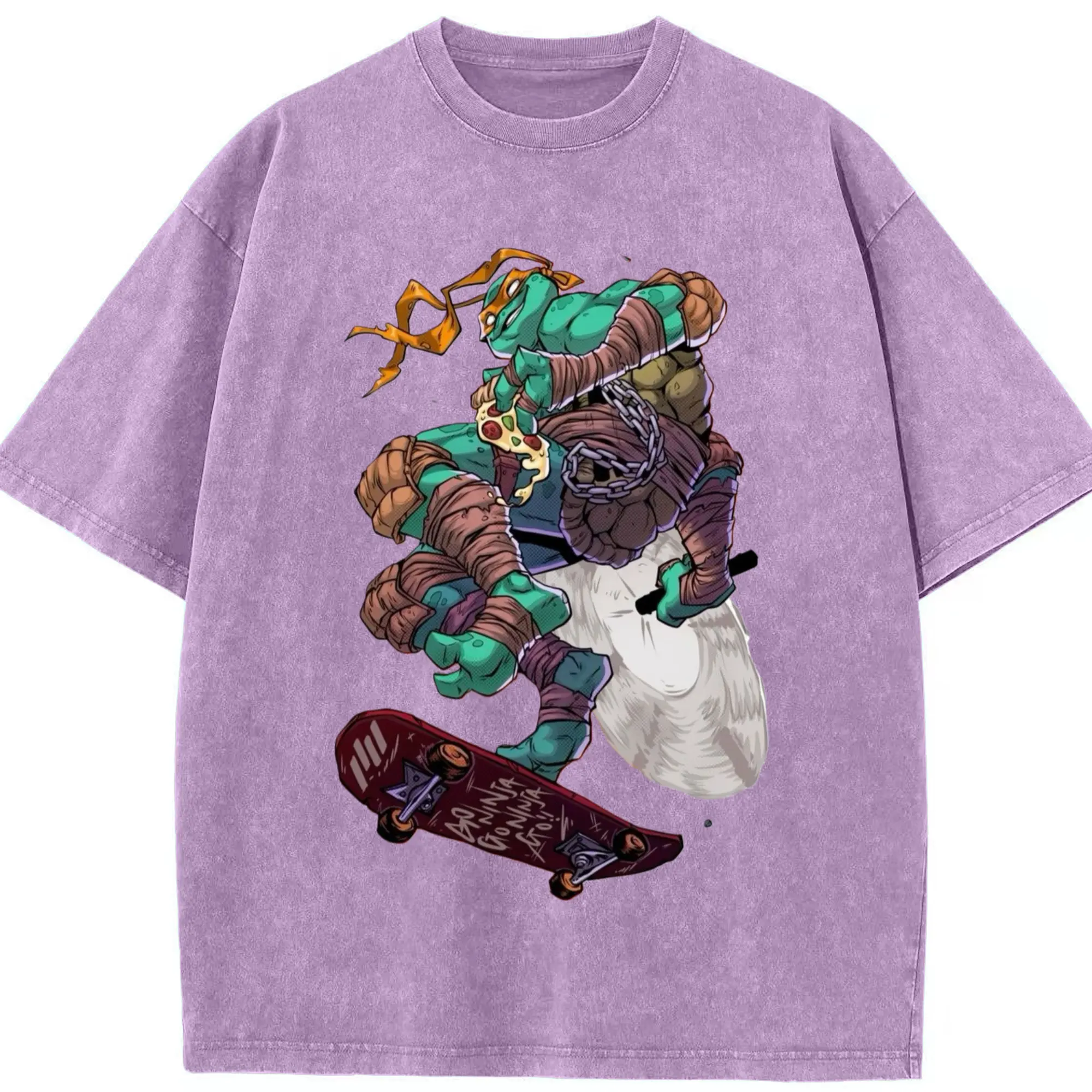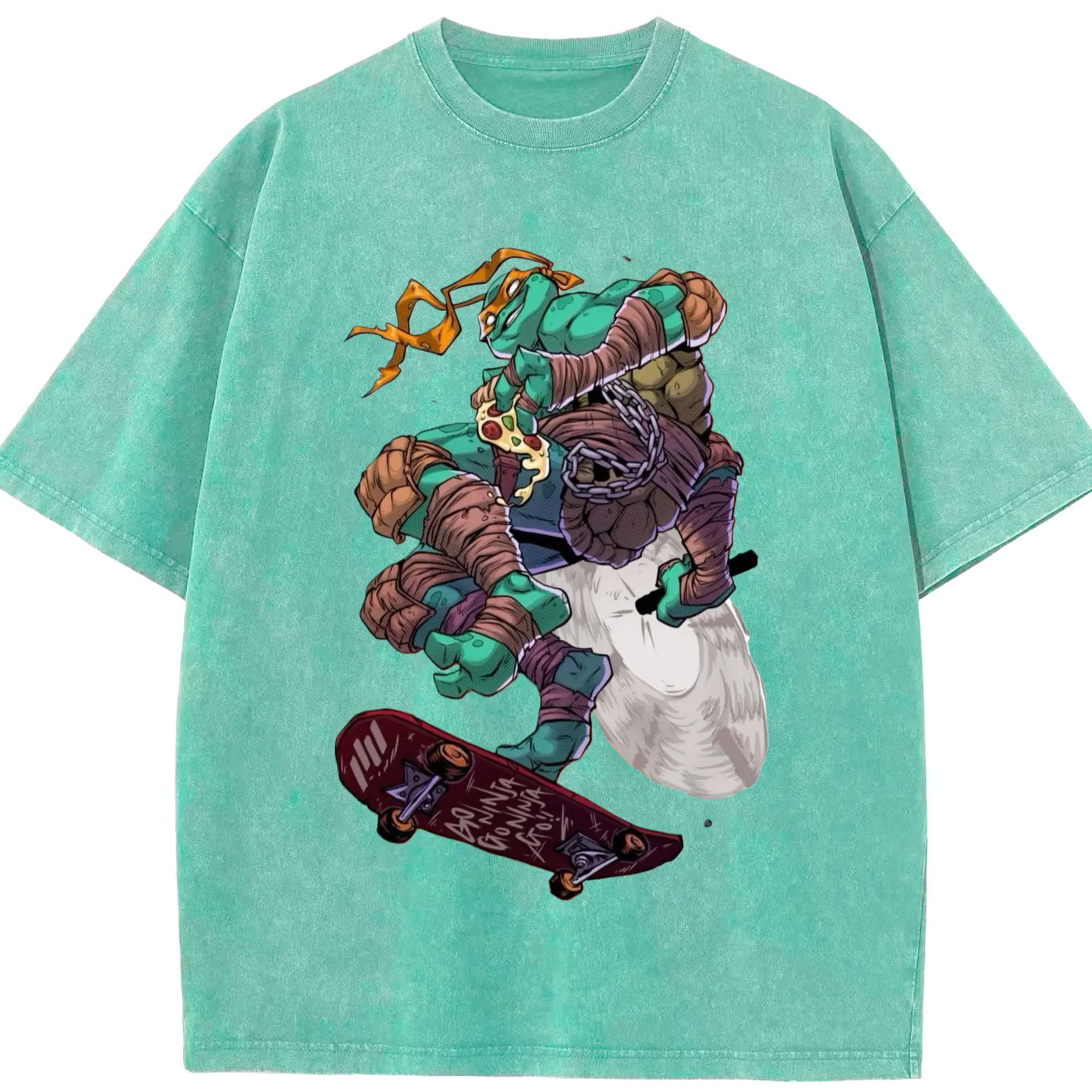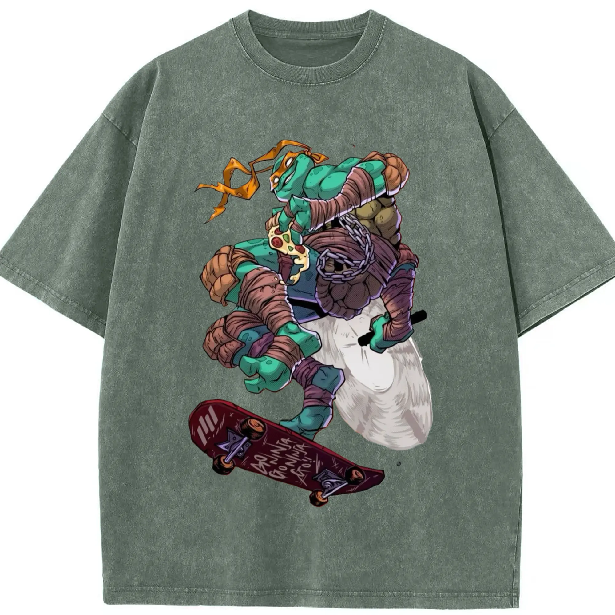Teenage Mutant Ninja Turtles Michelangelo tee - Washed Vintage Look 230g Cotton Oversized T-Shirt With Front Heat Transfer Print – Soft, Lightweight, Stylish Fit – Comfortable Casual Wear For Sports & Everyday Use