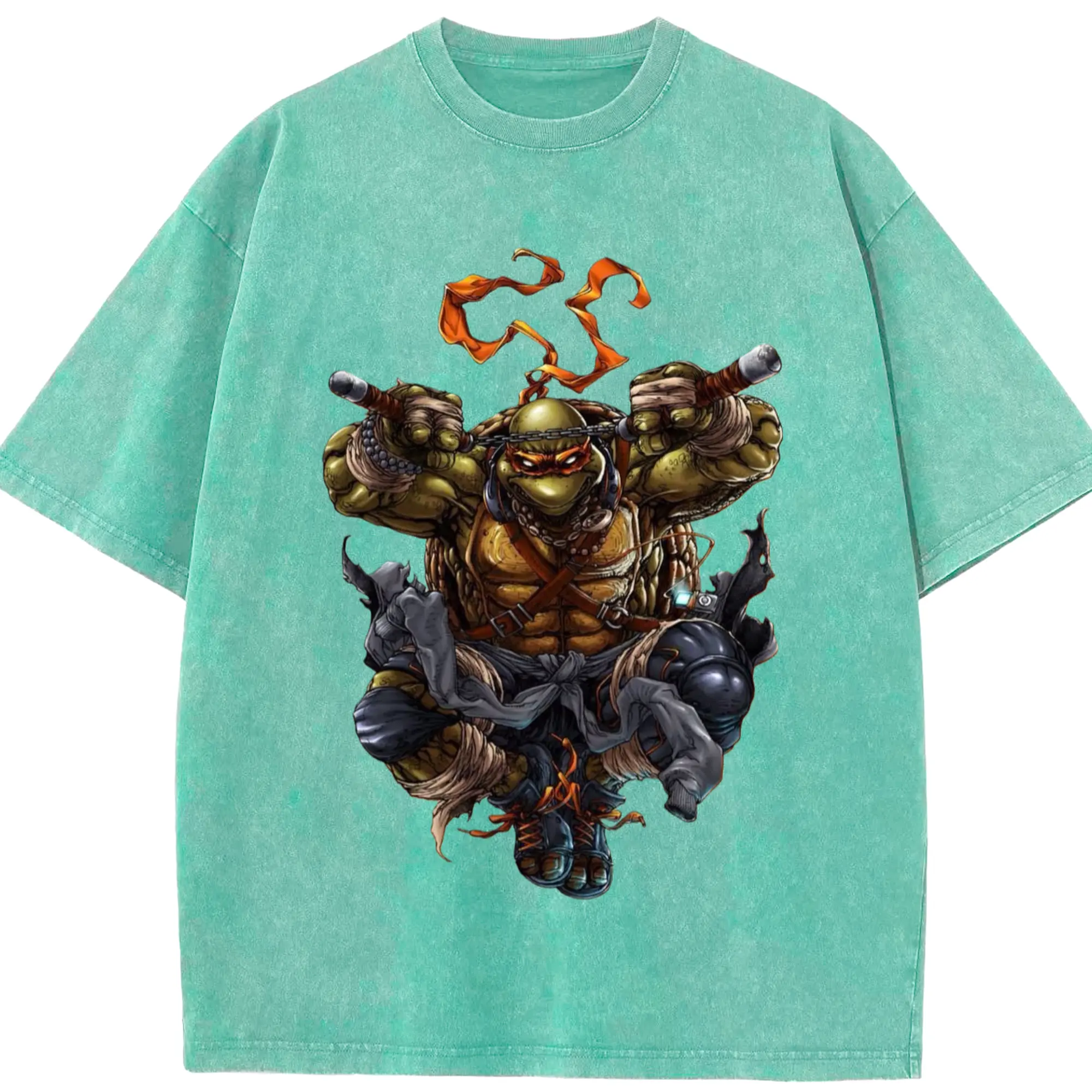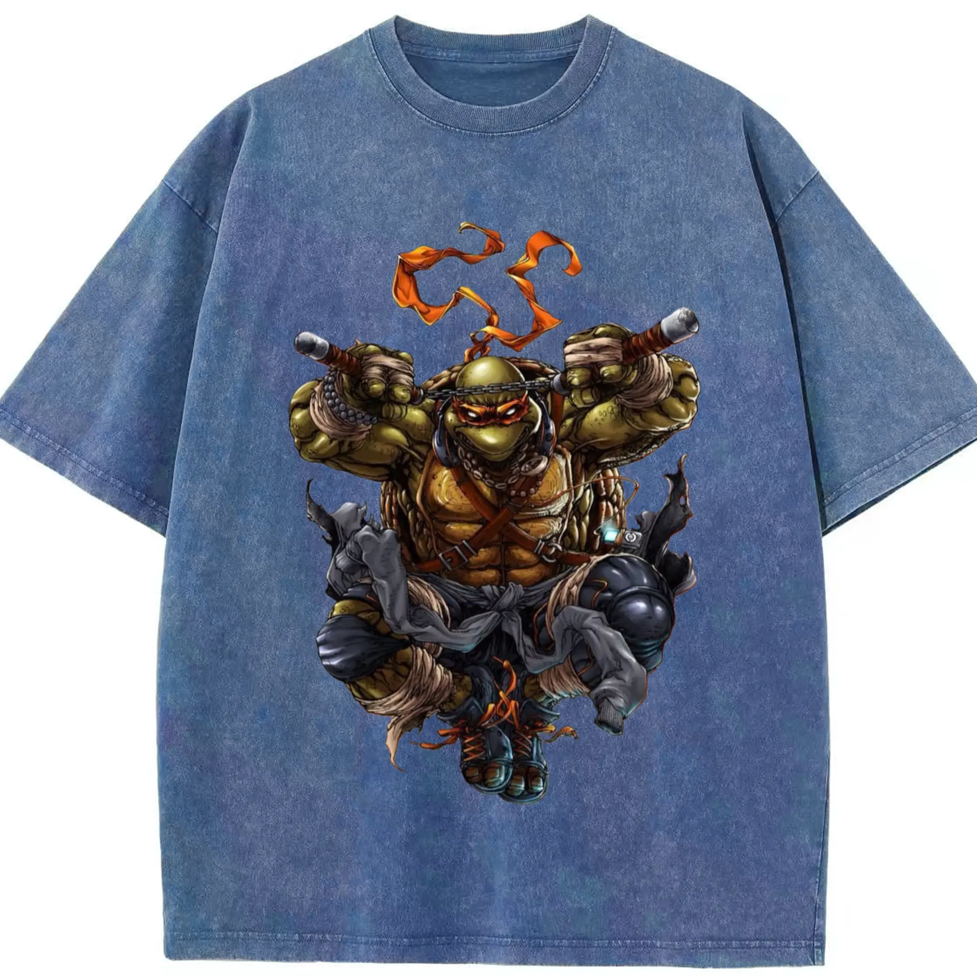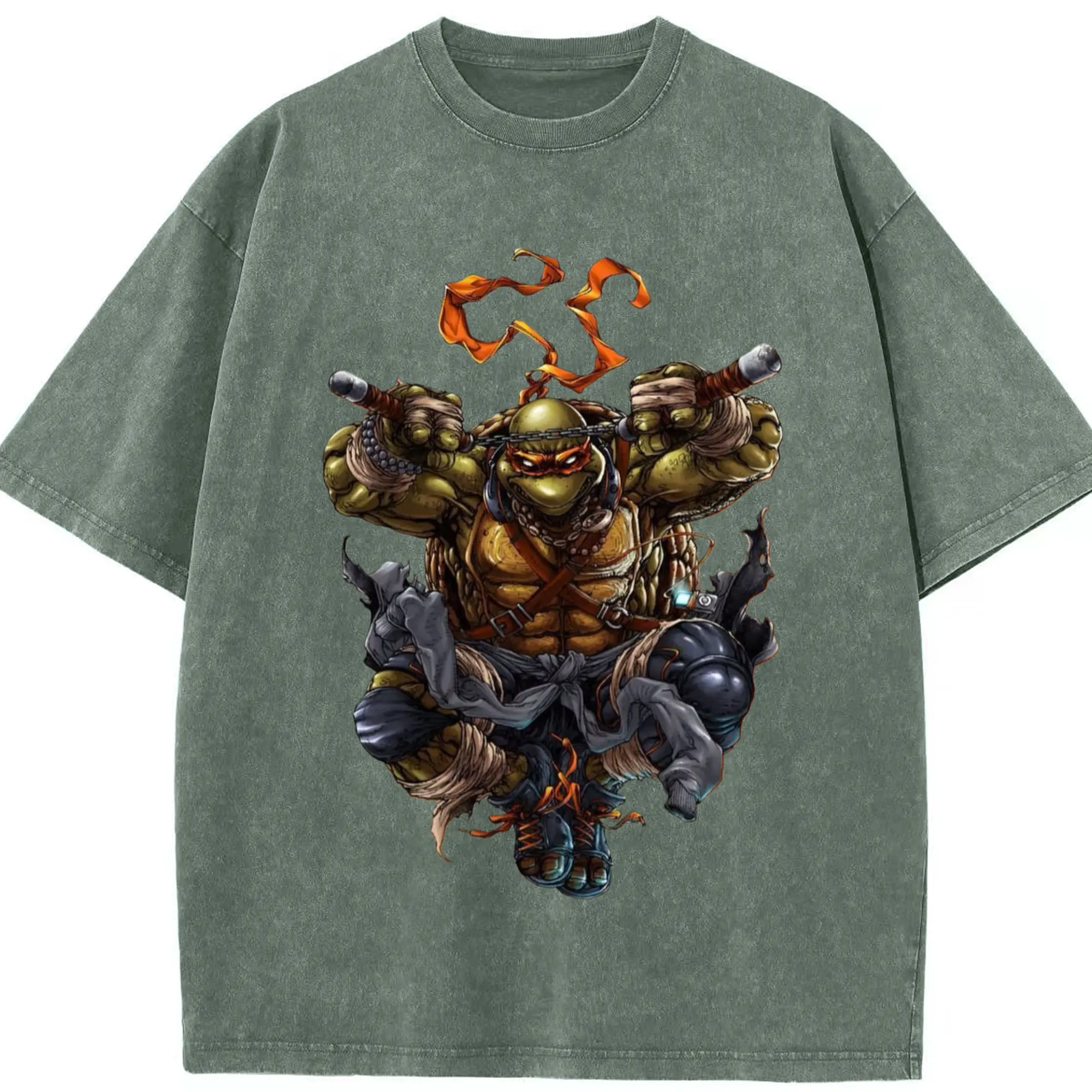 Teenage Mutant Ninja Turtles Michelangelo t-Shirt - Washed Vintage Look 230g Cotton Oversized T-Shirt With Front Heat Transfer Print – Soft, Lightweight, Stylish Fit – Comfortable Casual Wear For Sports & Everyday Use