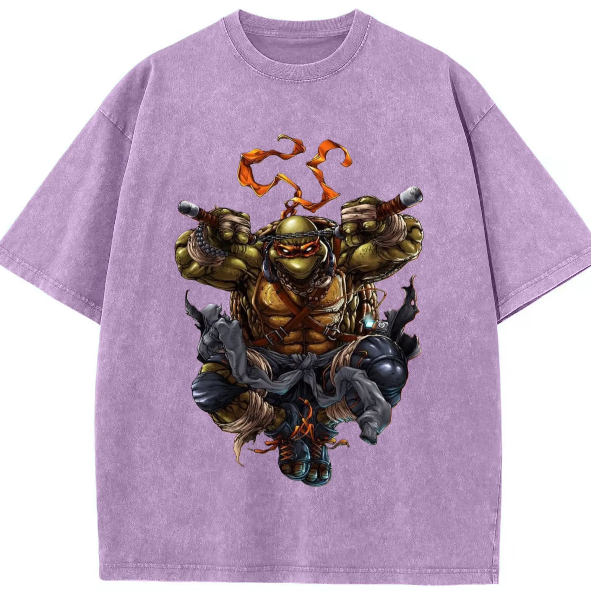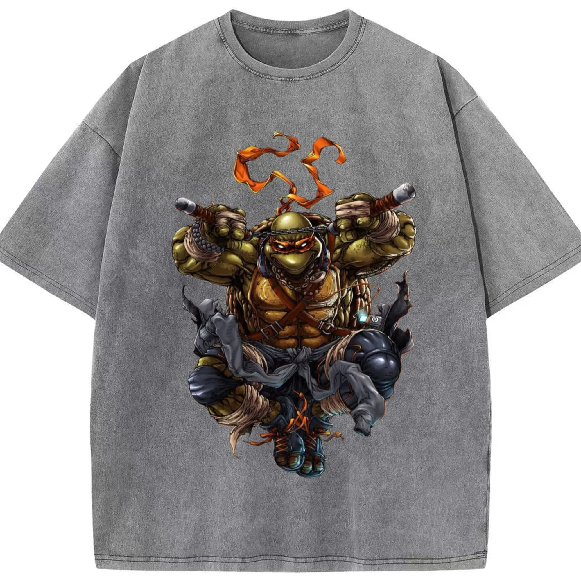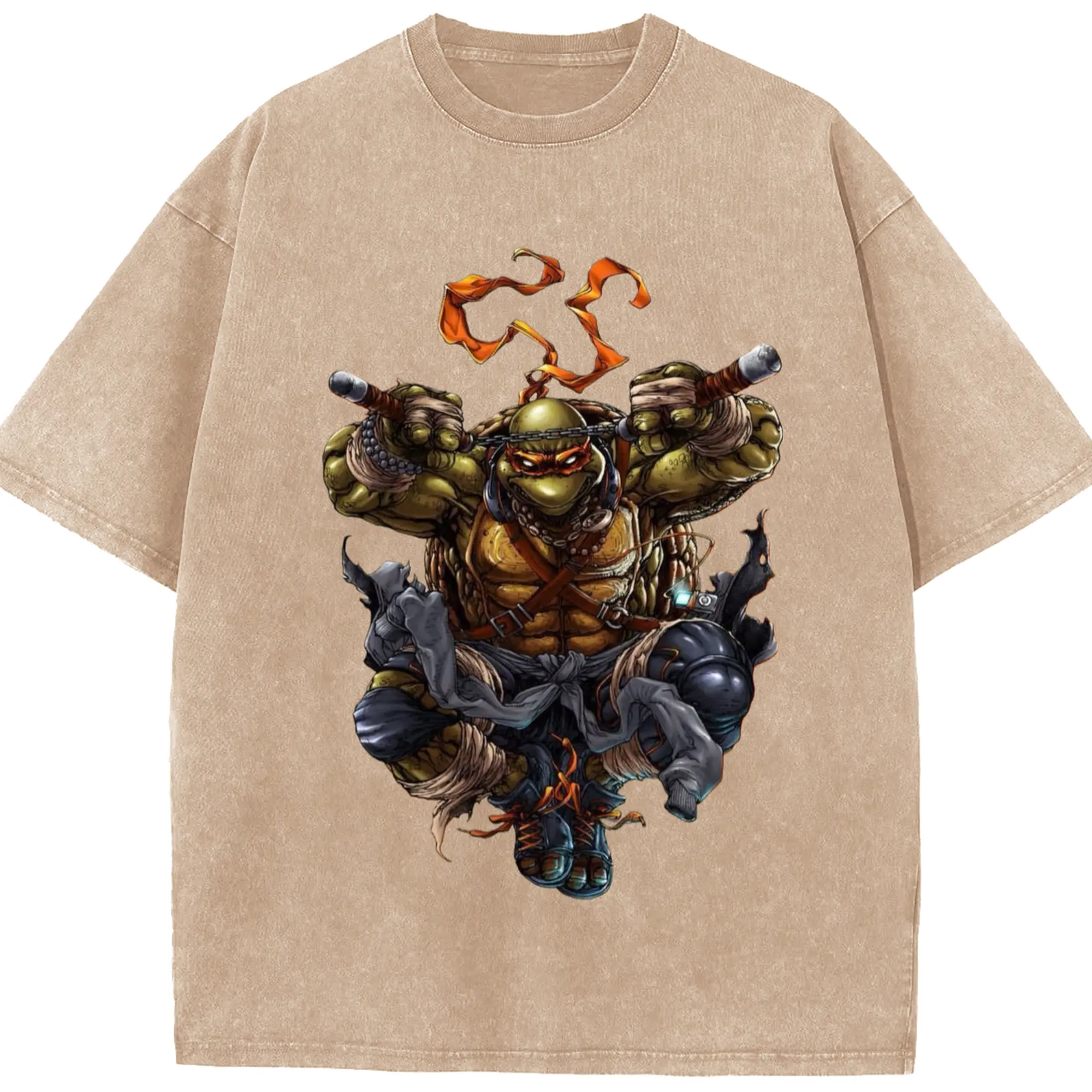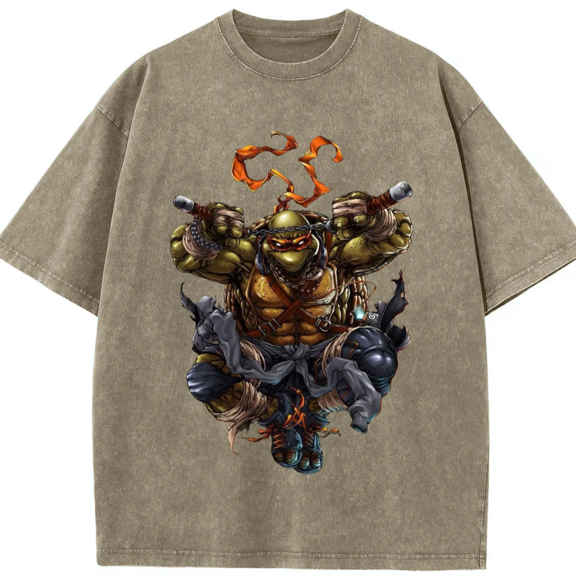 Teenage Mutant Ninja Turtles Michelangelo t-Shirt - Washed Vintage Look 230g Cotton Oversized T-Shirt With Front Heat Transfer Print – Soft, Lightweight, Stylish Fit – Comfortable Casual Wear For Sports & Everyday Use
