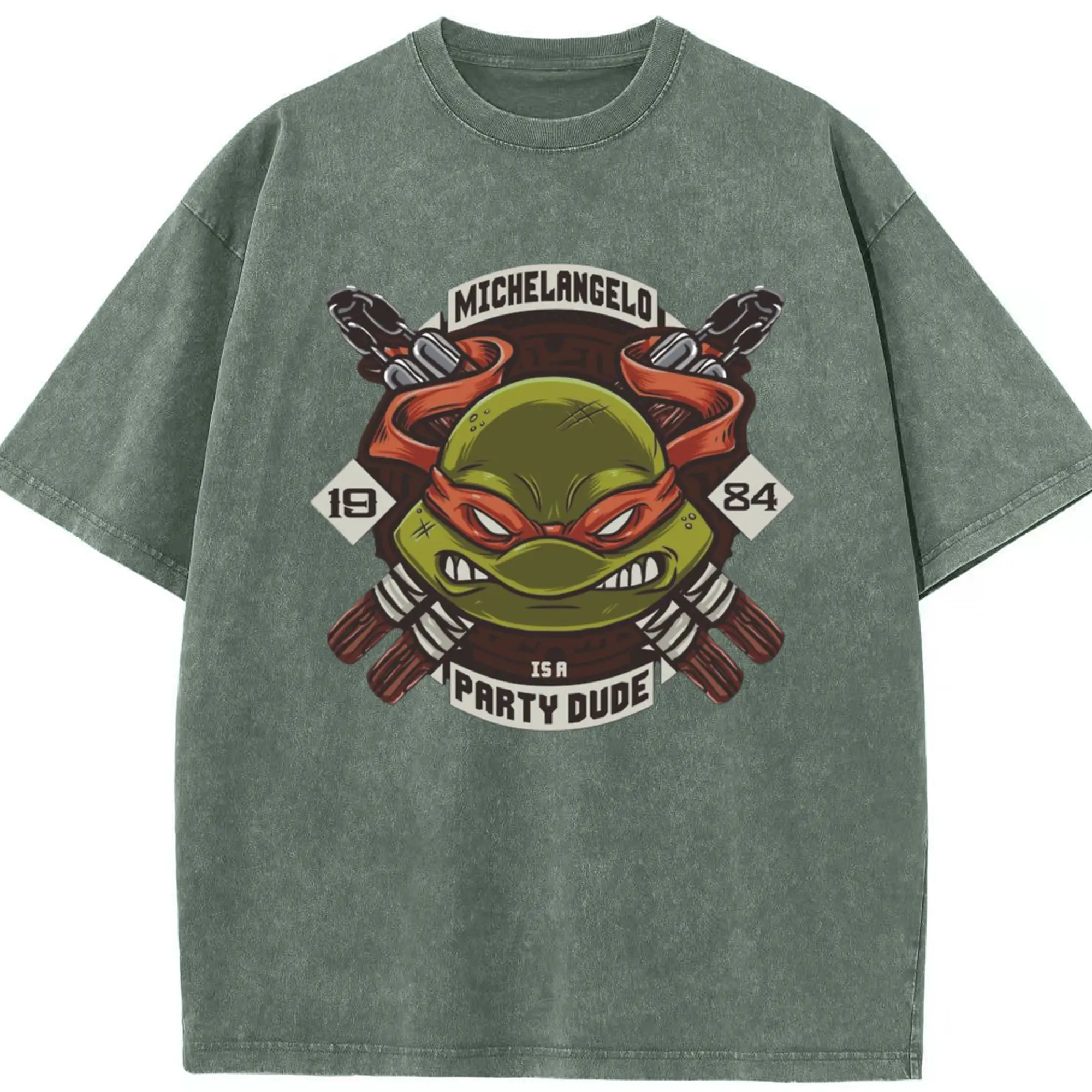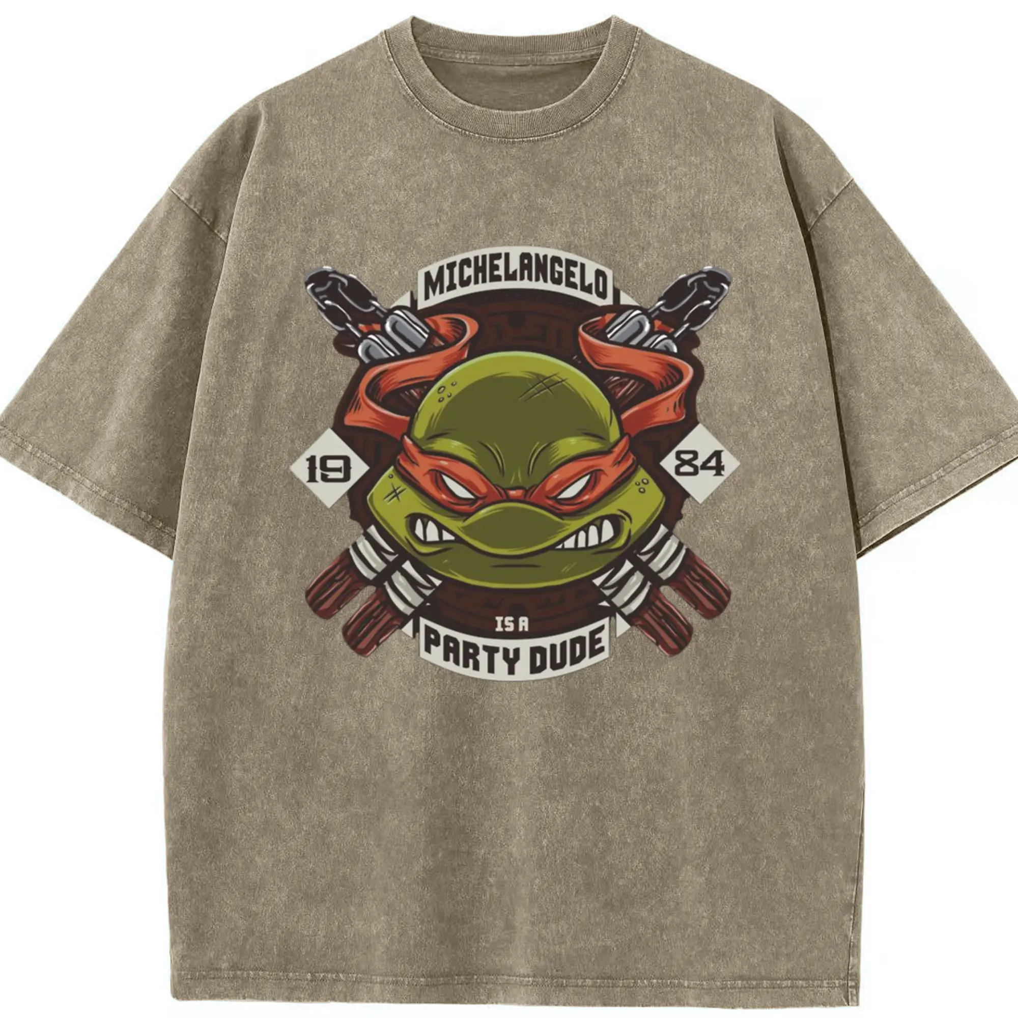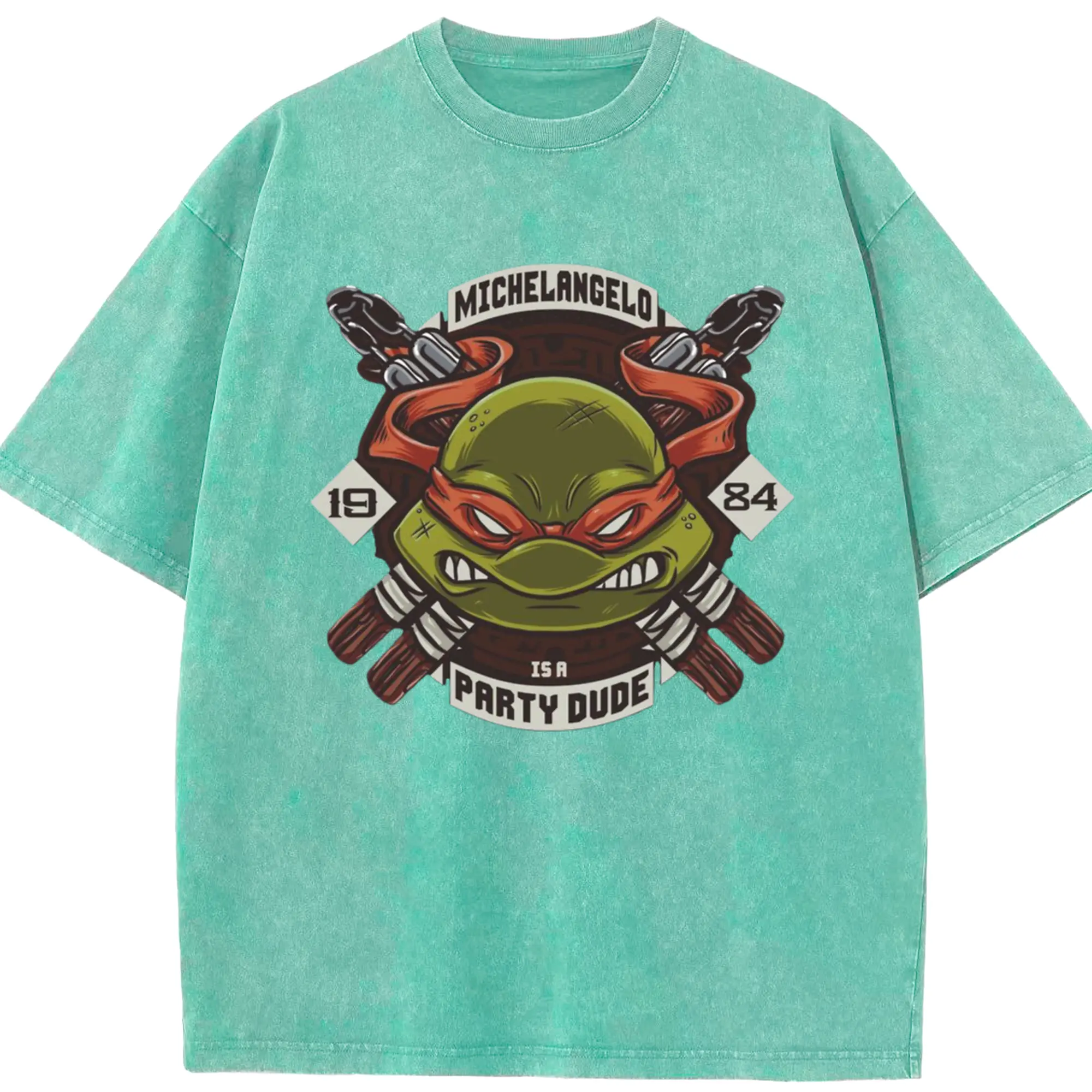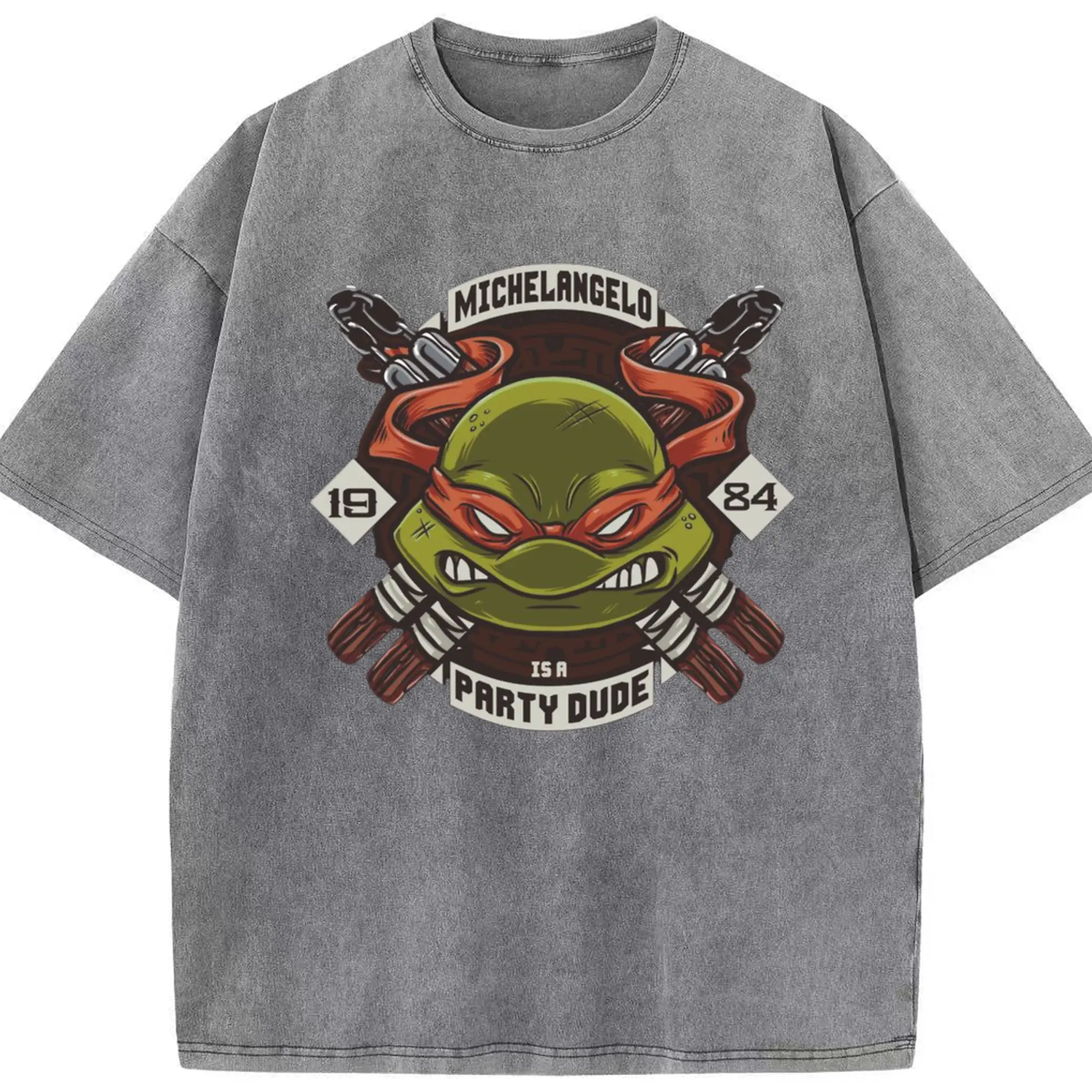 Teenage Mutant Ninja Turtles Raphael face T-Shirt - Washed Vintage Look 230g Cotton Oversized T-Shirt With Front Heat Transfer Print – Soft, Lightweight, Stylish Fit – Comfortable Casual Wear For Sports & Everyday Use