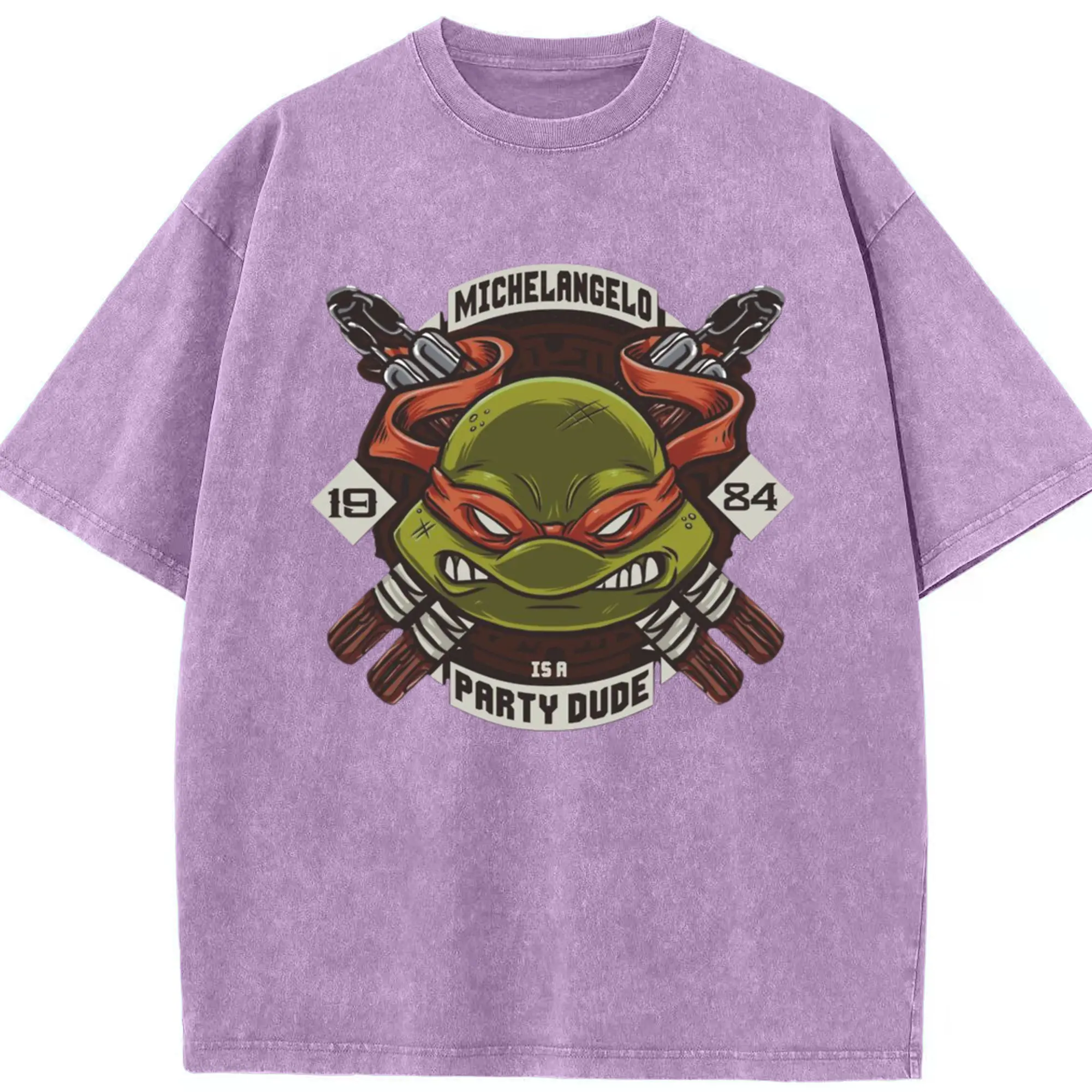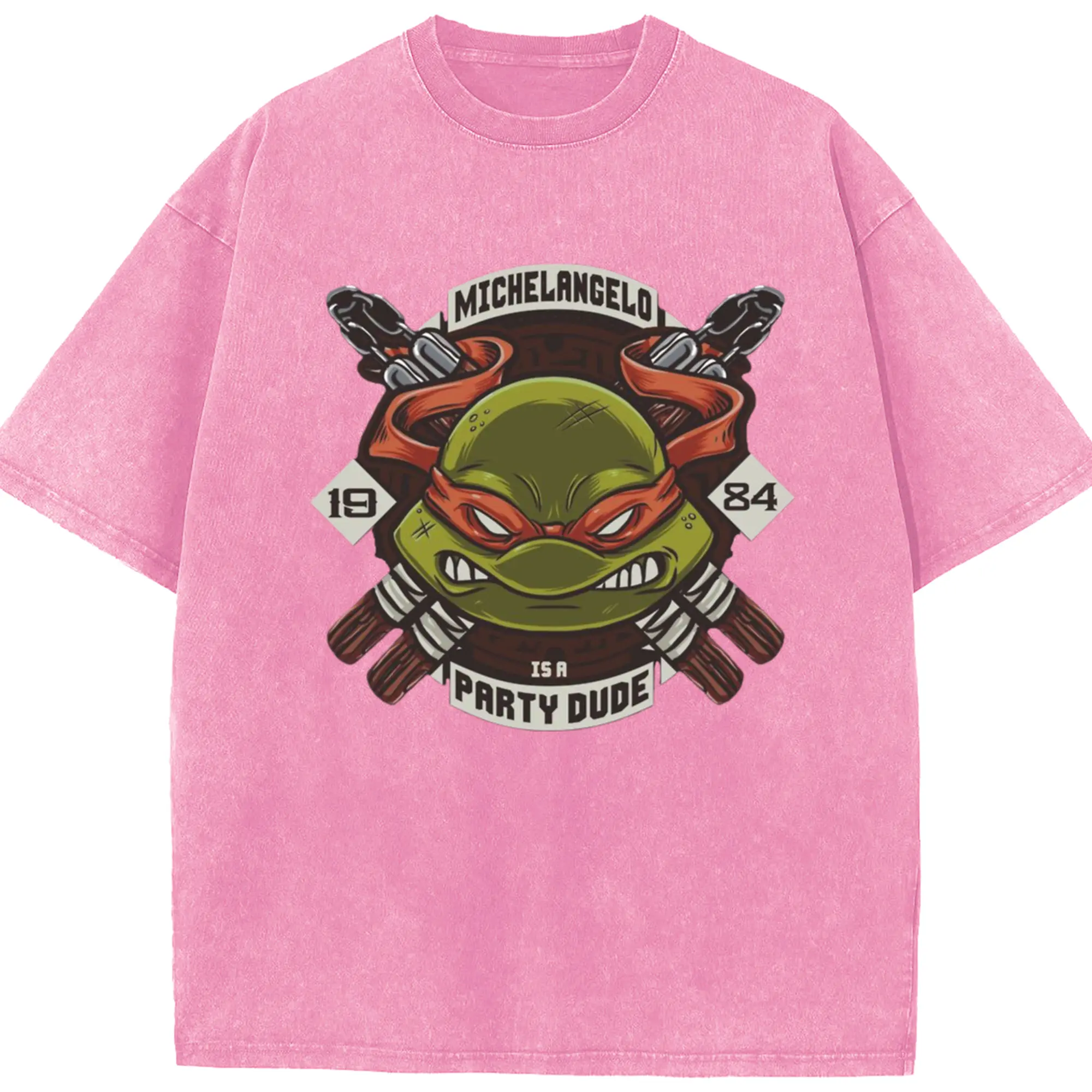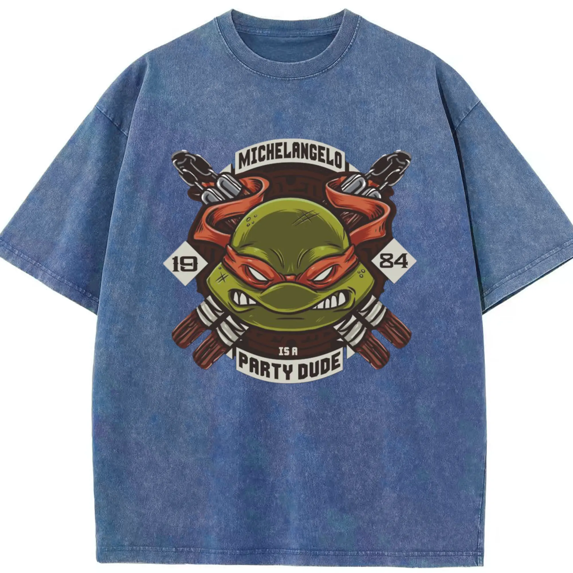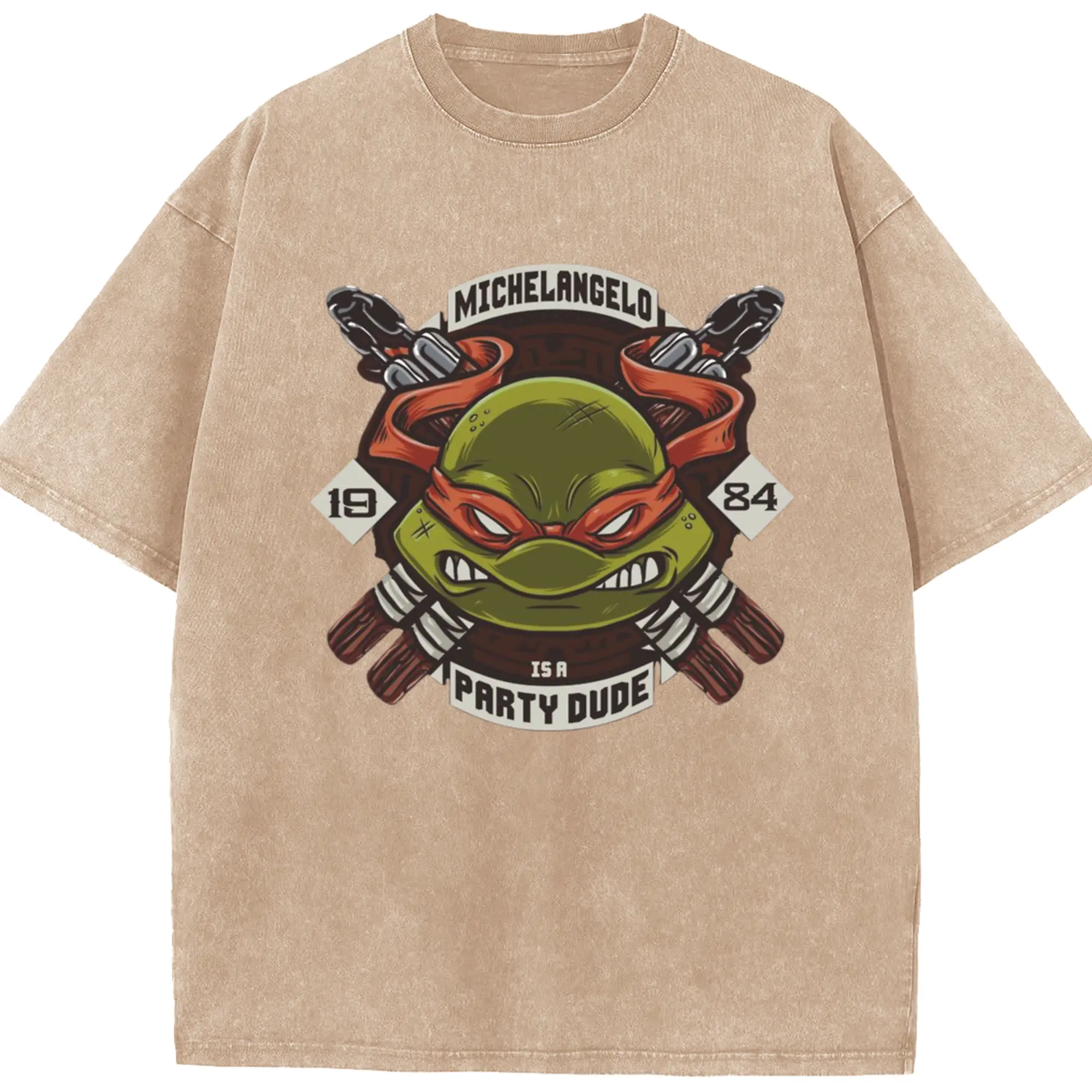 Teenage Mutant Ninja Turtles Raphael face T-Shirt - Washed Vintage Look 230g Cotton Oversized T-Shirt With Front Heat Transfer Print – Soft, Lightweight, Stylish Fit – Comfortable Casual Wear For Sports & Everyday Use
