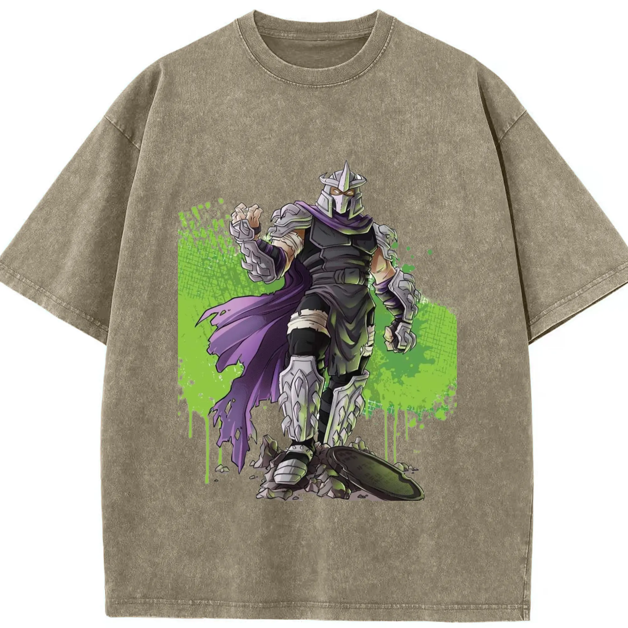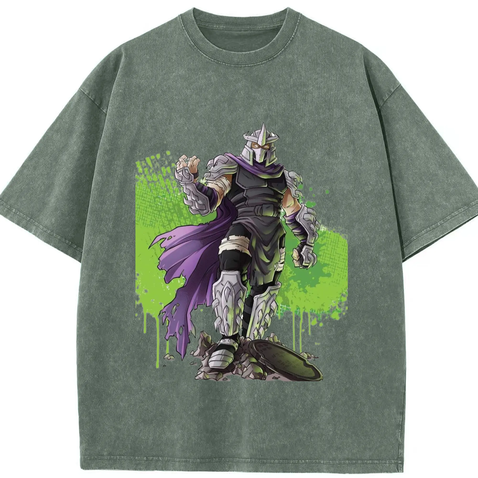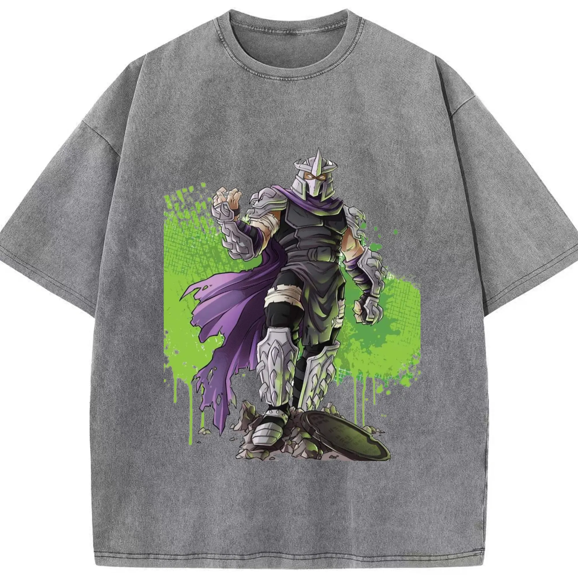 Teenage Mutant Ninja Turtles Shredder graphic shirt - Washed Vintage Look 230g Cotton Oversized T-Shirt With Front Heat Transfer Print – Soft, Lightweight, Stylish Fit – Comfortable Casual Wear For Sports & Everyday Use