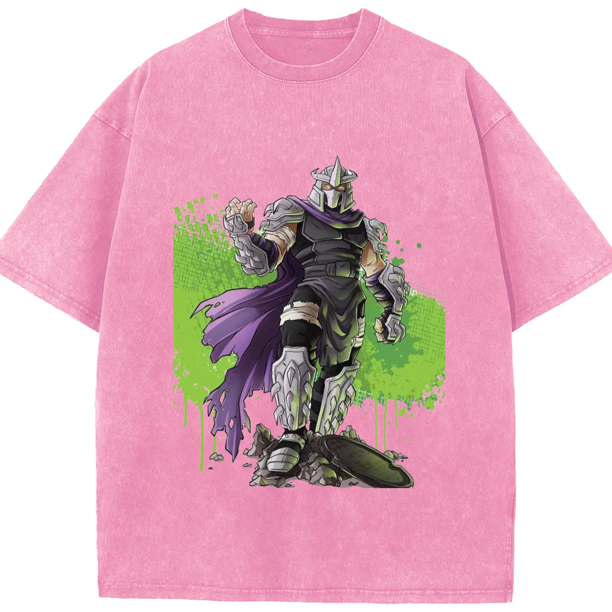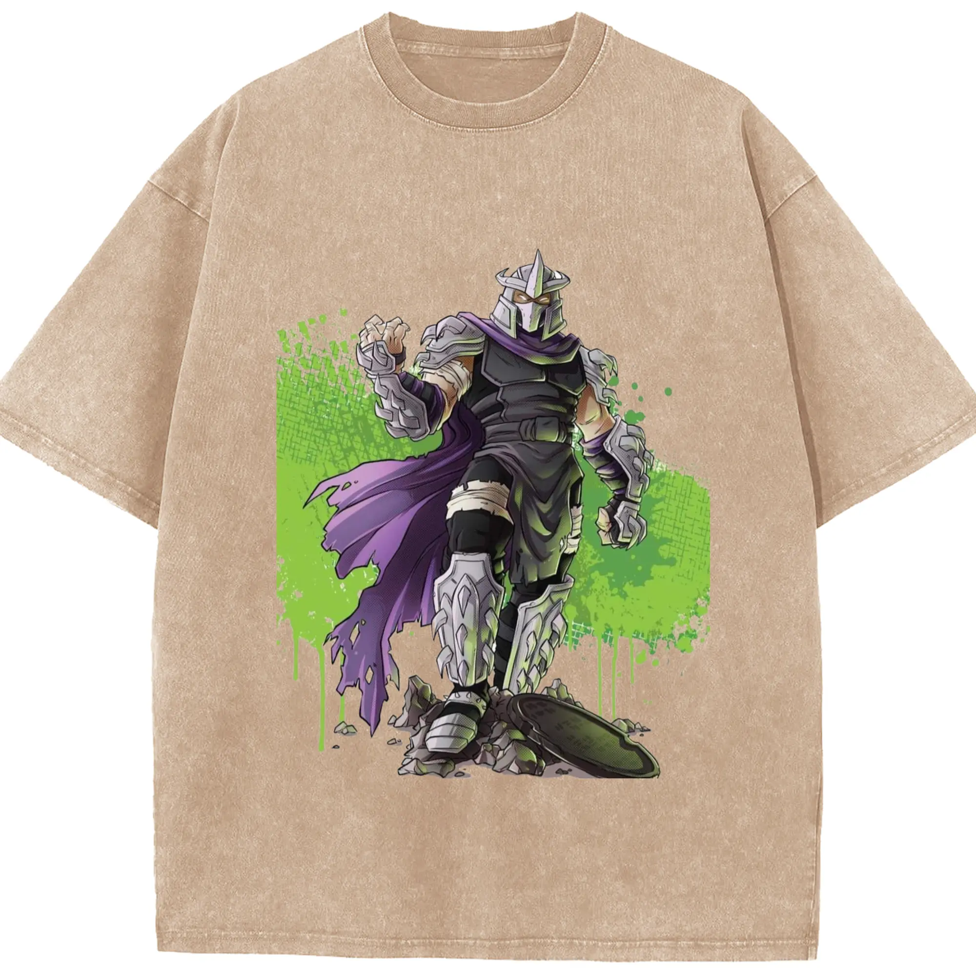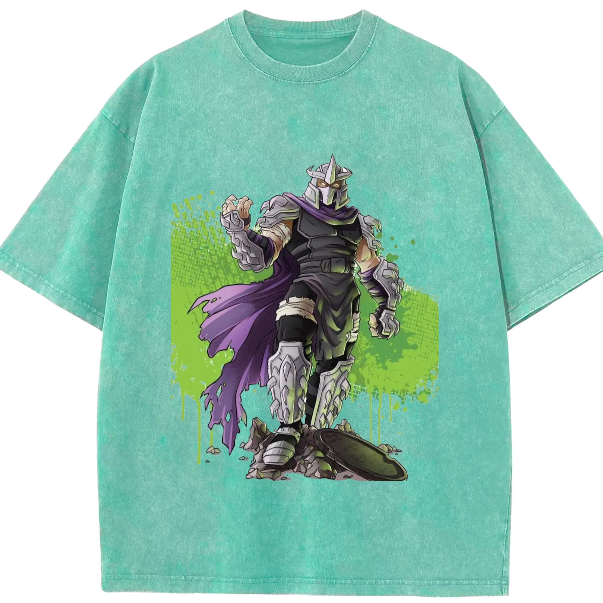 Teenage Mutant Ninja Turtles Shredder graphic shirt - Washed Vintage Look 230g Cotton Oversized T-Shirt With Front Heat Transfer Print – Soft, Lightweight, Stylish Fit – Comfortable Casual Wear For Sports & Everyday Use