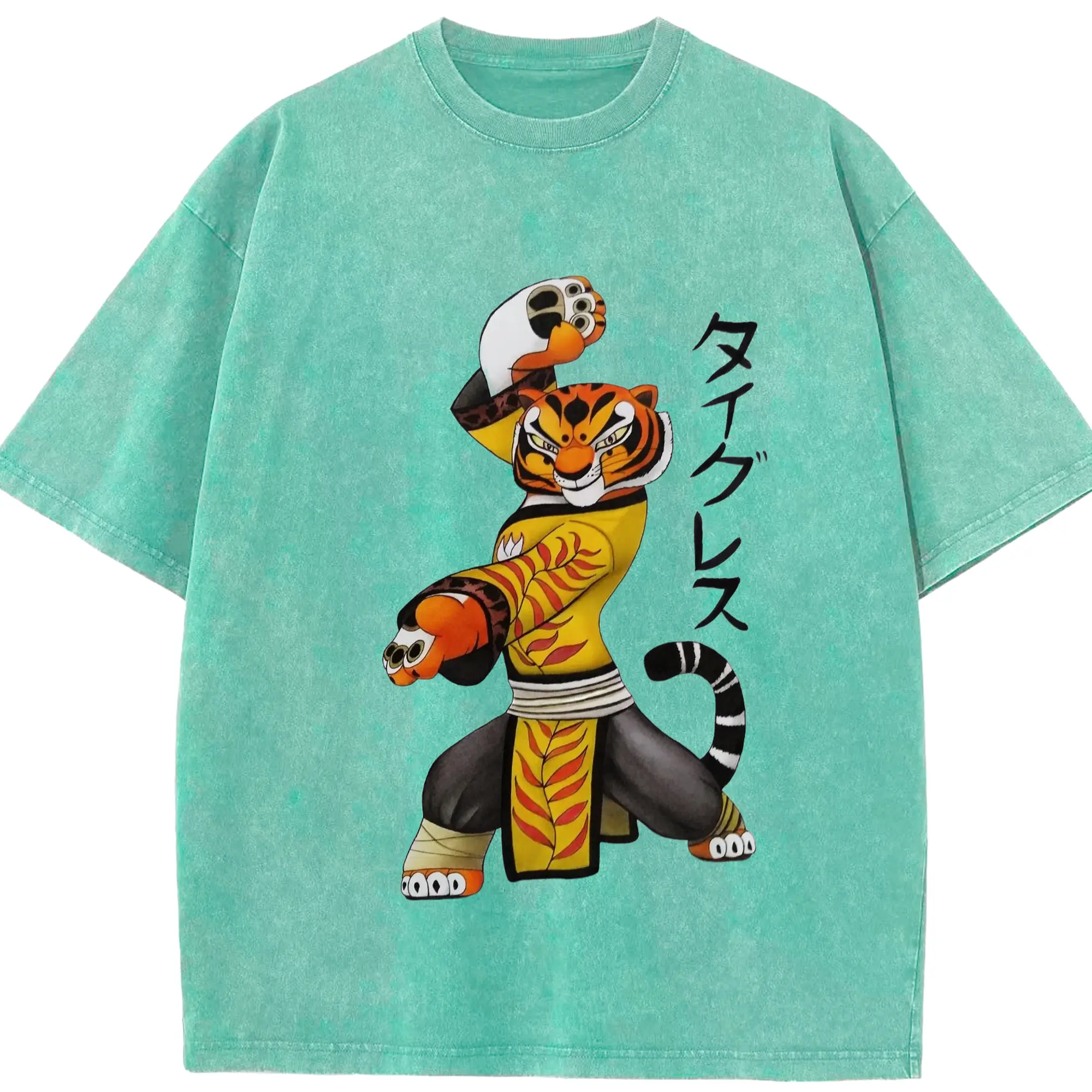 Tigress Kung Fu Panda tee - Washed Vintage Look 230g Cotton Oversized T-Shirt With Front Heat Transfer Print – Soft, Lightweight, Stylish Fit – Comfortable Casual Wear For Sports & Everyday Use