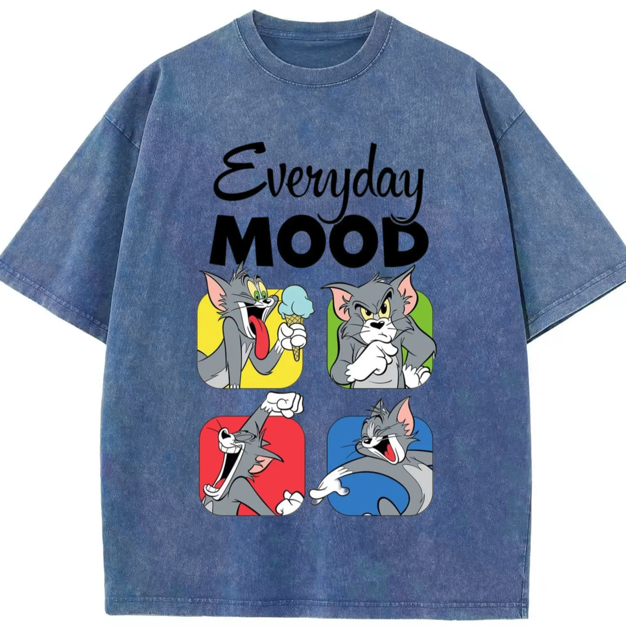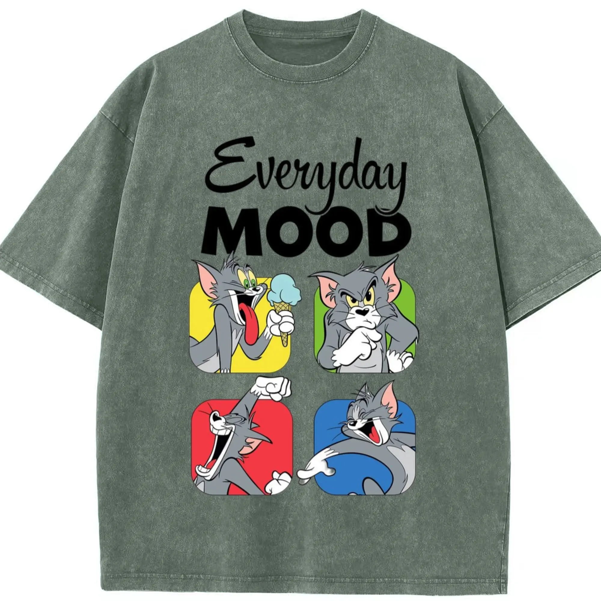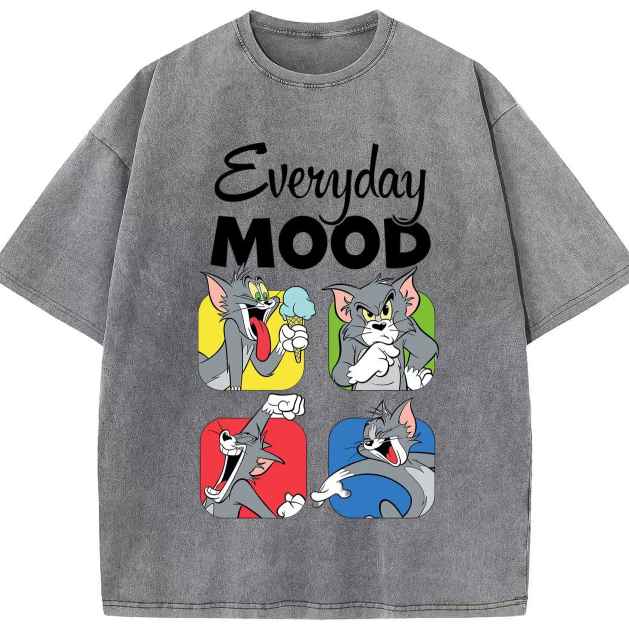 Tom and jerry collage t shirt - Washed Vintage Look 230g Cotton Oversized T-Shirt With Front Heat Transfer Print – Soft, Lightweight, Stylish Fit – Comfortable Casual Wear For Sports & Everyday Use