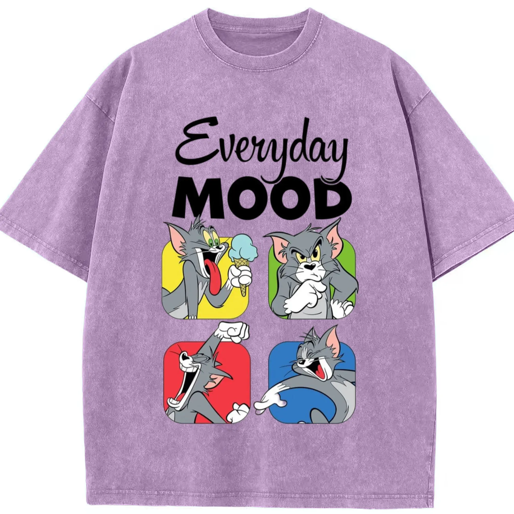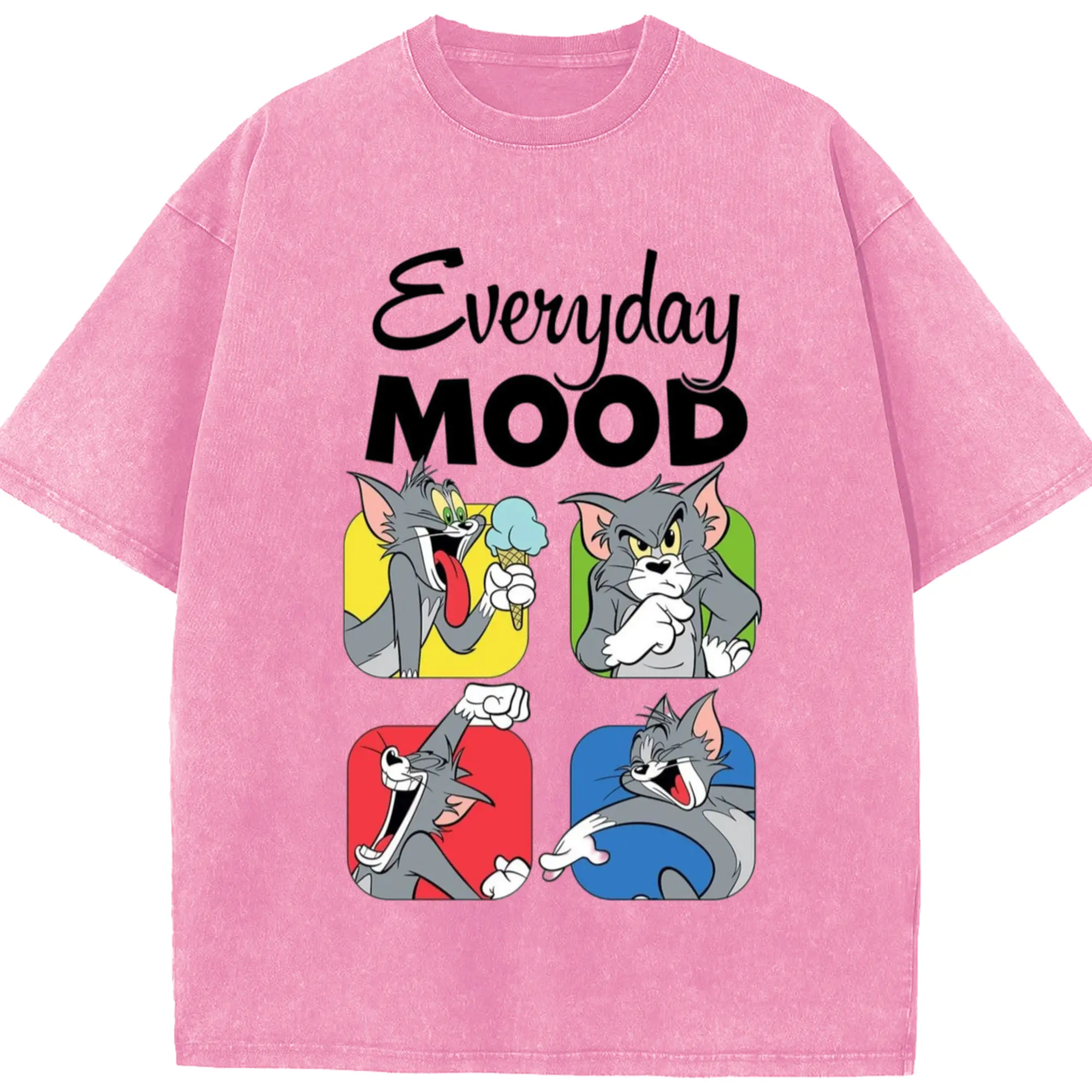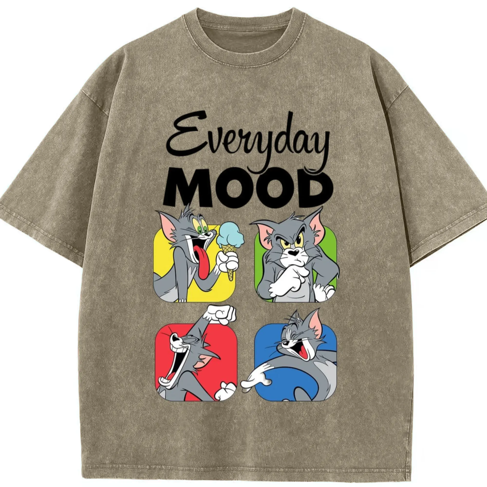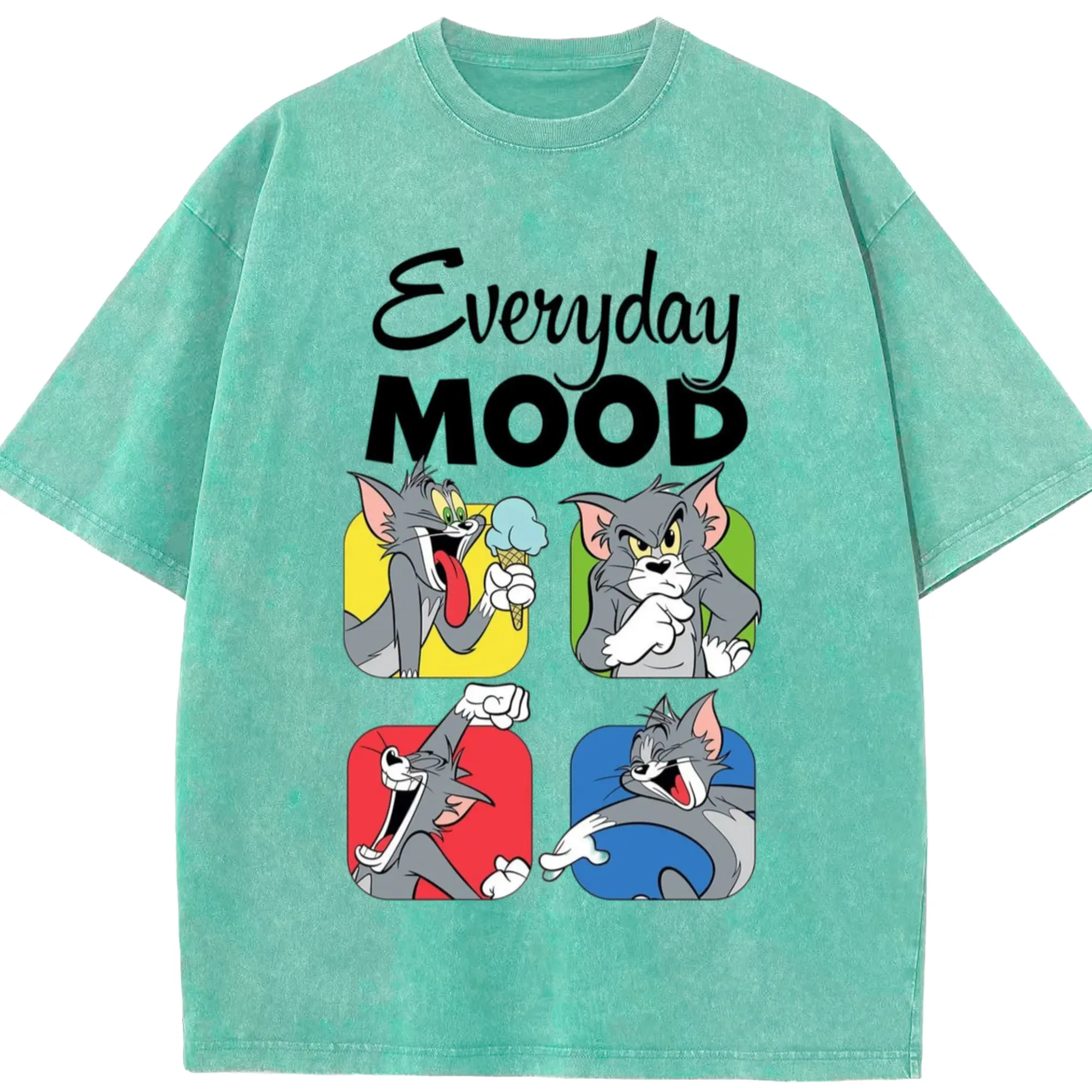 Tom and jerry collage t shirt - Washed Vintage Look 230g Cotton Oversized T-Shirt With Front Heat Transfer Print – Soft, Lightweight, Stylish Fit – Comfortable Casual Wear For Sports & Everyday Use