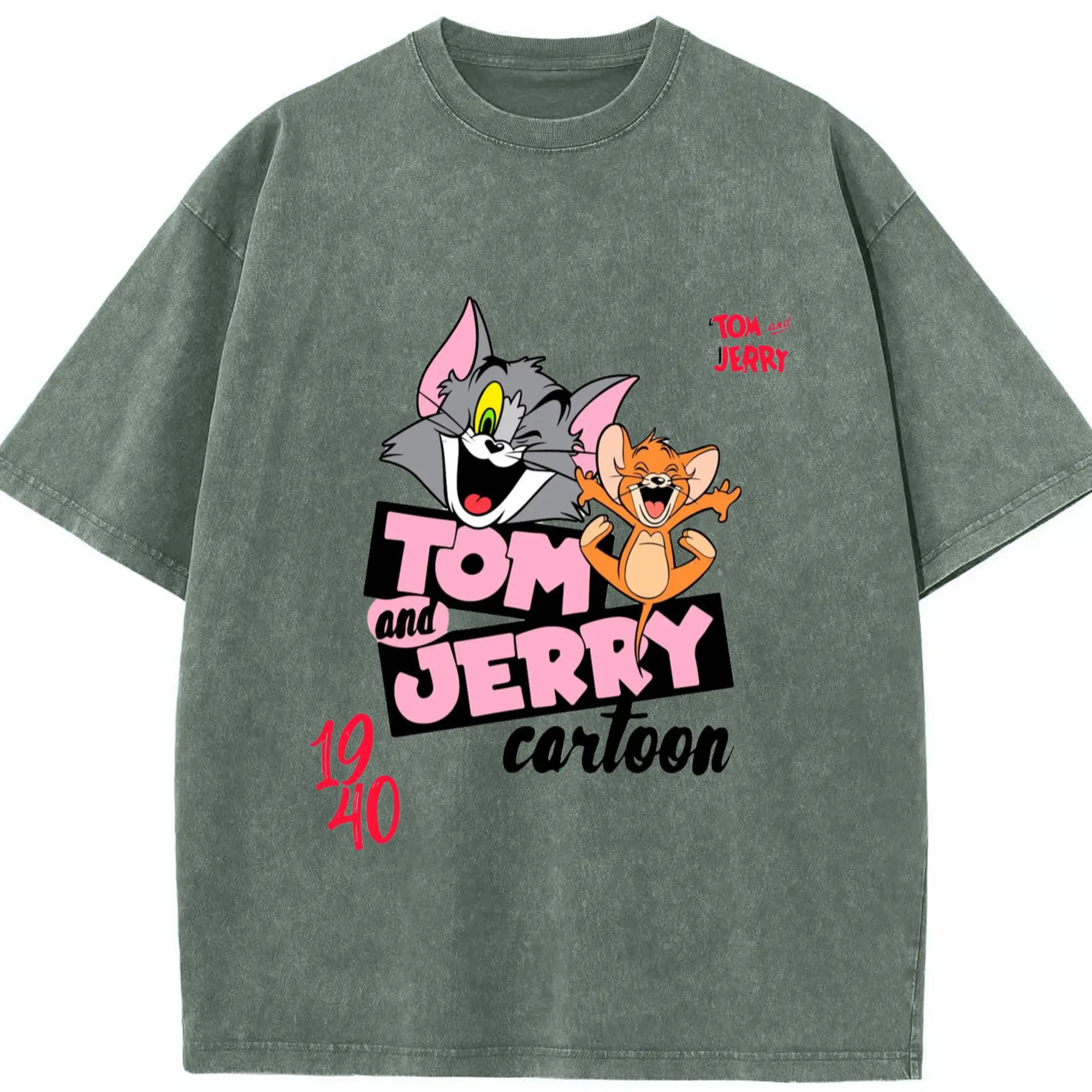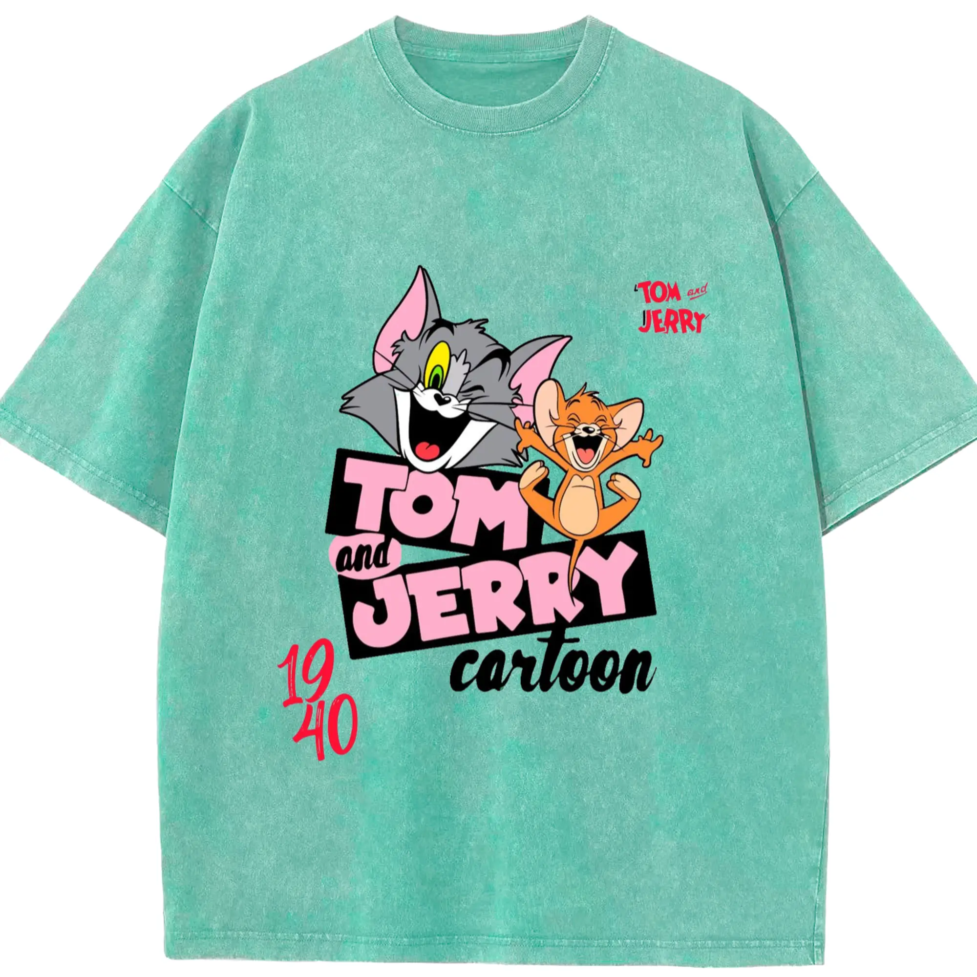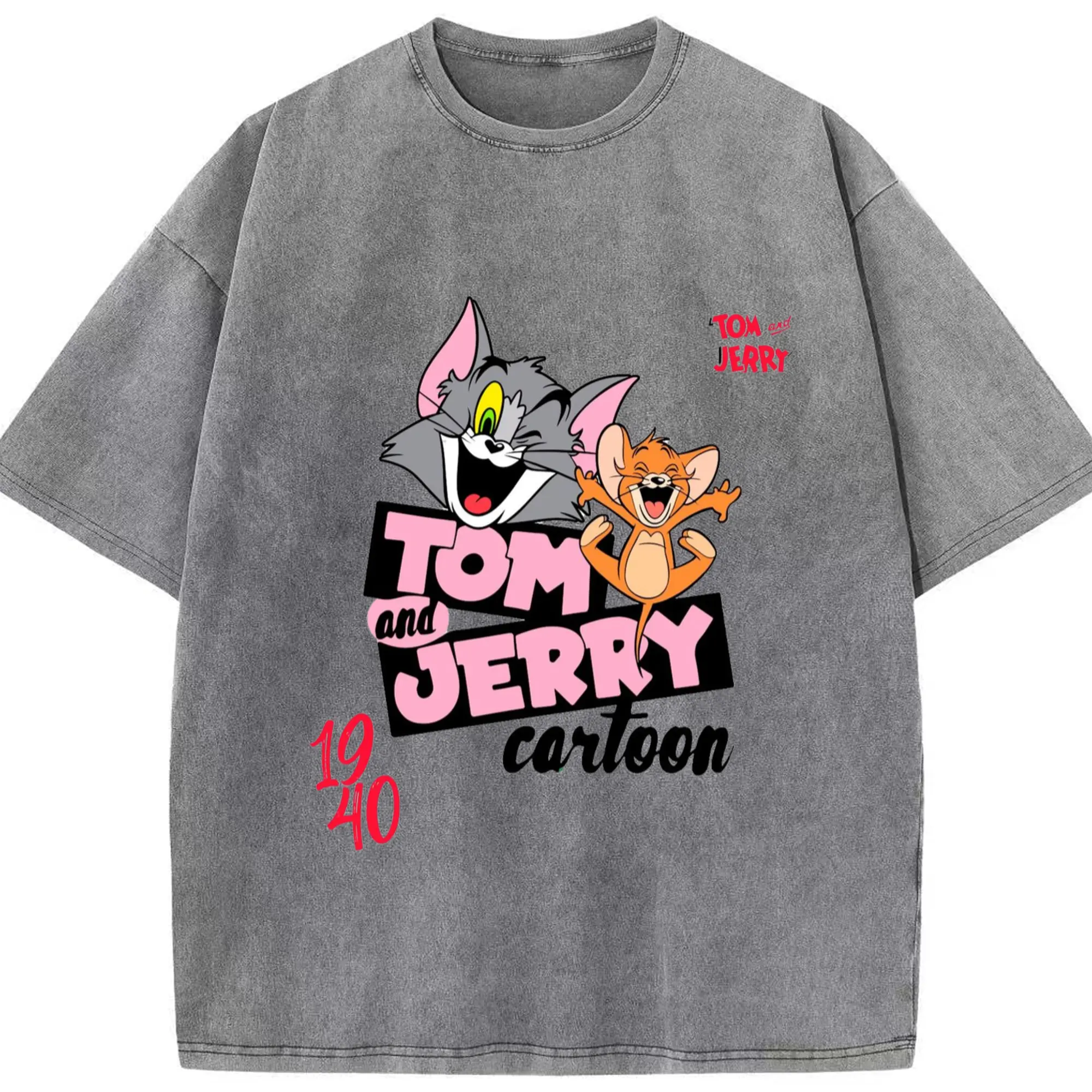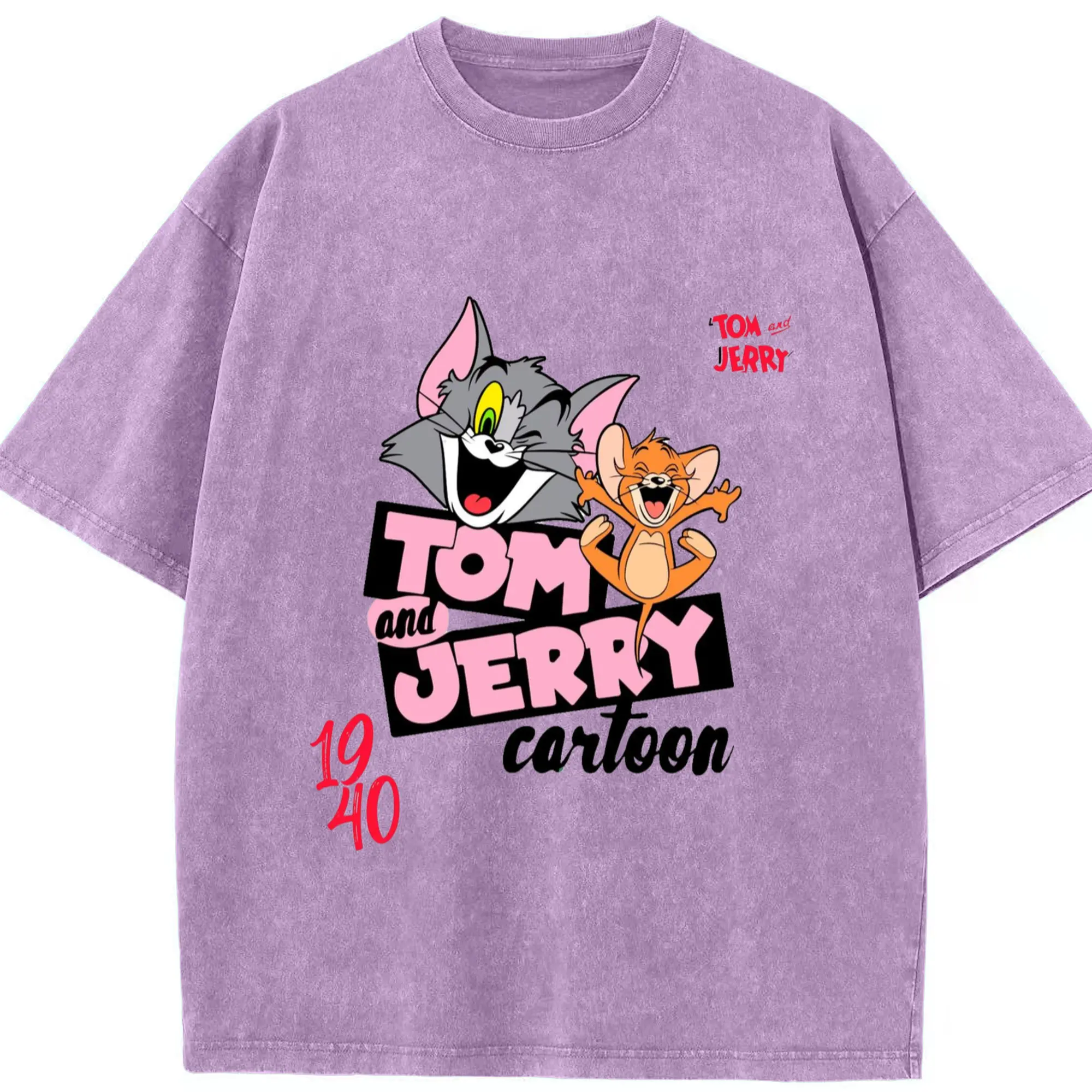 Tom and jerry couple t shirt - Washed Vintage Look 230g Cotton Oversized T-Shirt With Front Heat Transfer Print – Soft, Lightweight, Stylish Fit – Comfortable Casual Wear For Sports & Everyday Use