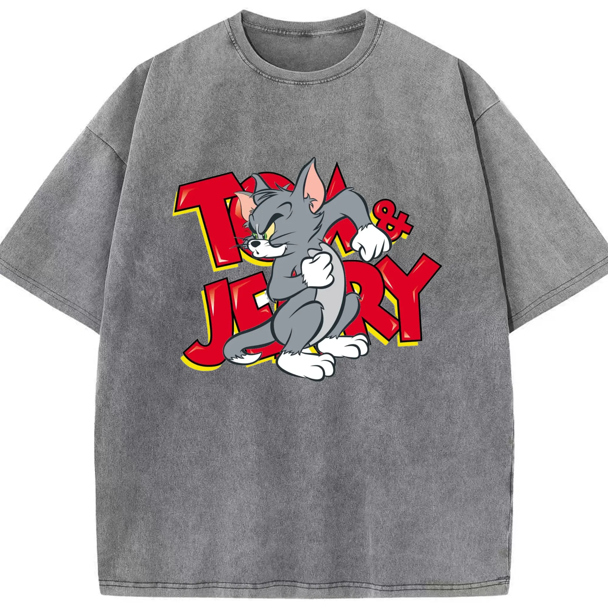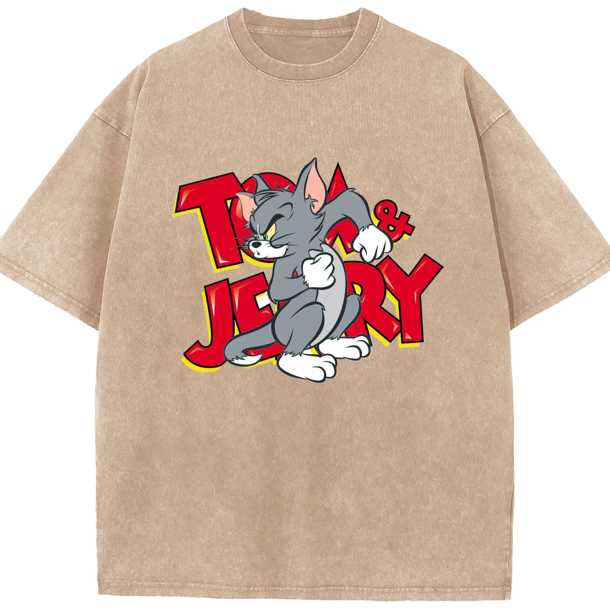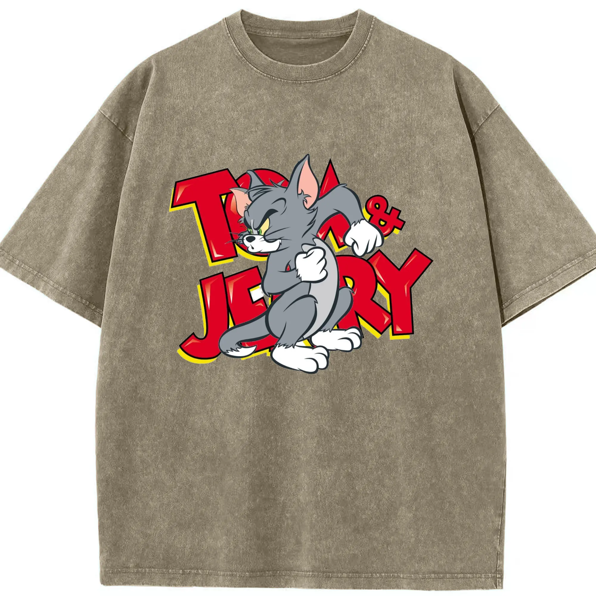 Tom and jerry men's graphic tee - Washed Vintage Look 230g Cotton Oversized T-Shirt With Front Heat Transfer Print – Soft, Lightweight, Stylish Fit – Comfortable Casual Wear For Sports & Everyday Use