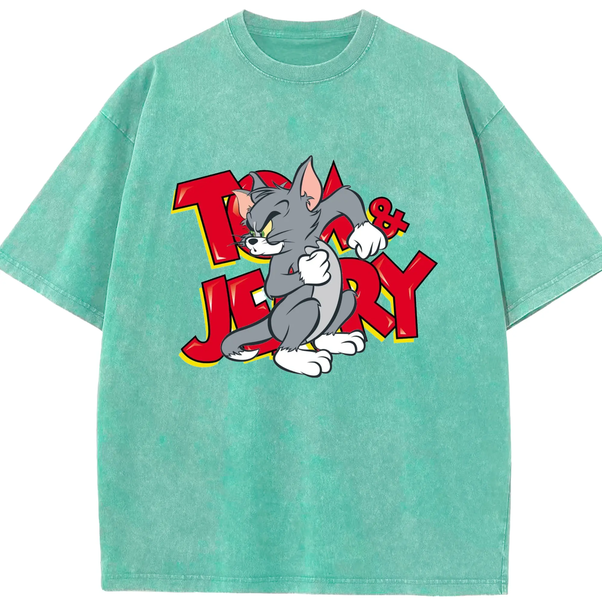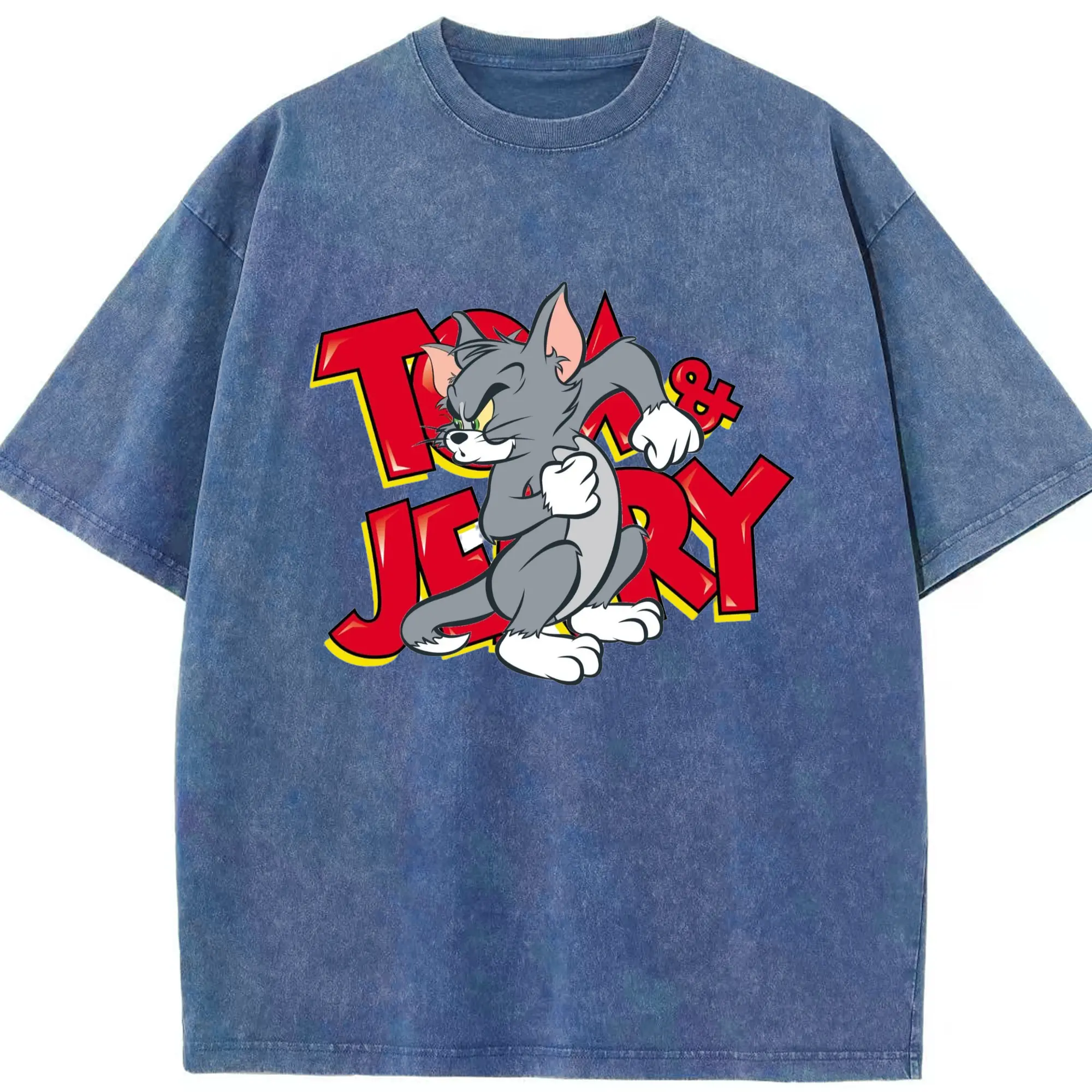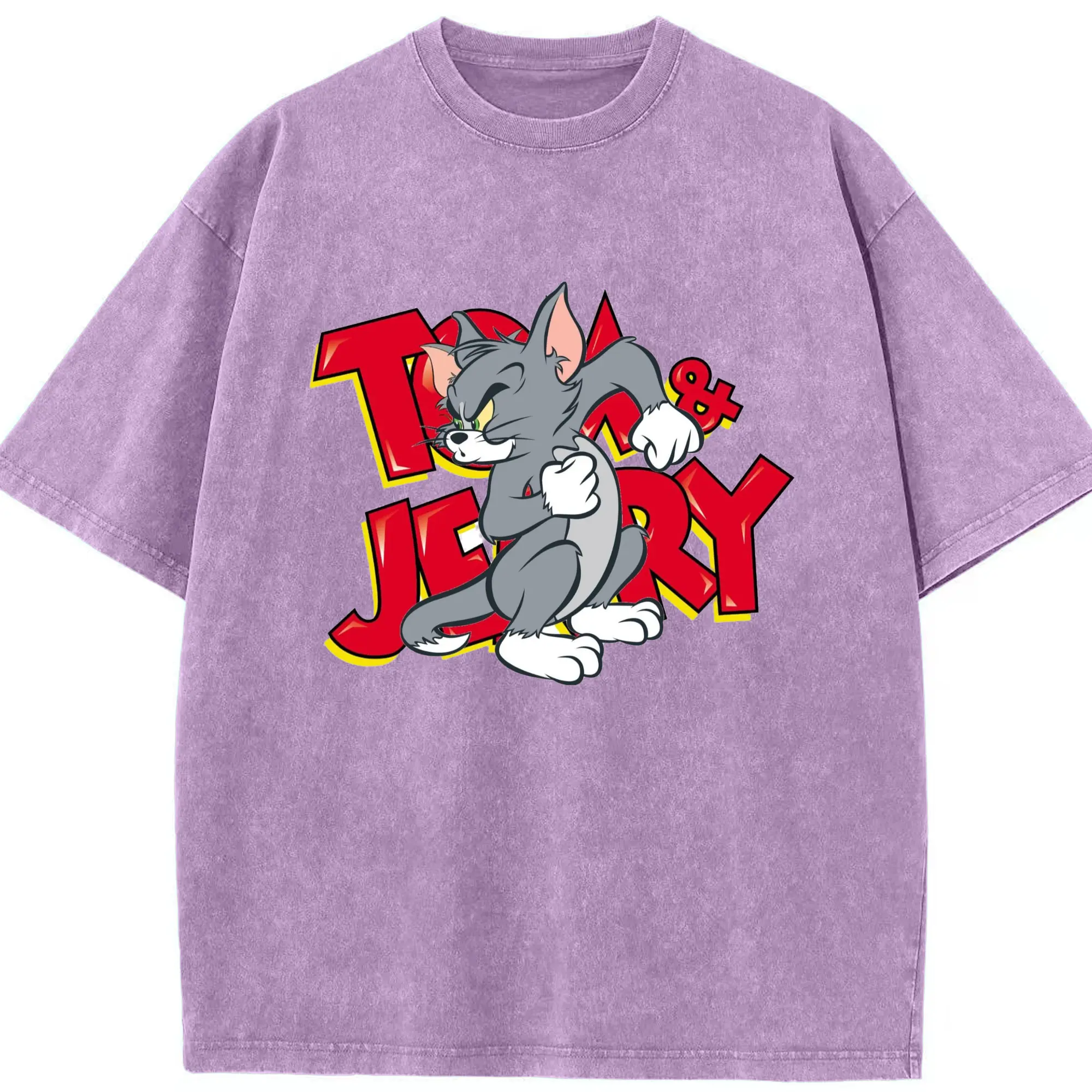 Tom and jerry men's graphic tee - Washed Vintage Look 230g Cotton Oversized T-Shirt With Front Heat Transfer Print – Soft, Lightweight, Stylish Fit – Comfortable Casual Wear For Sports & Everyday Use