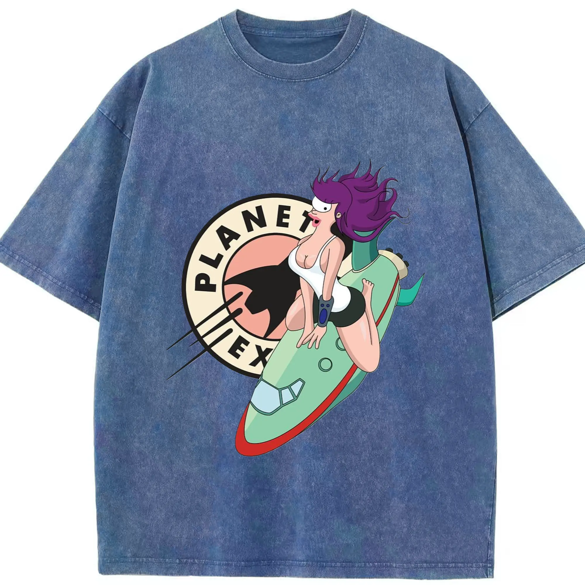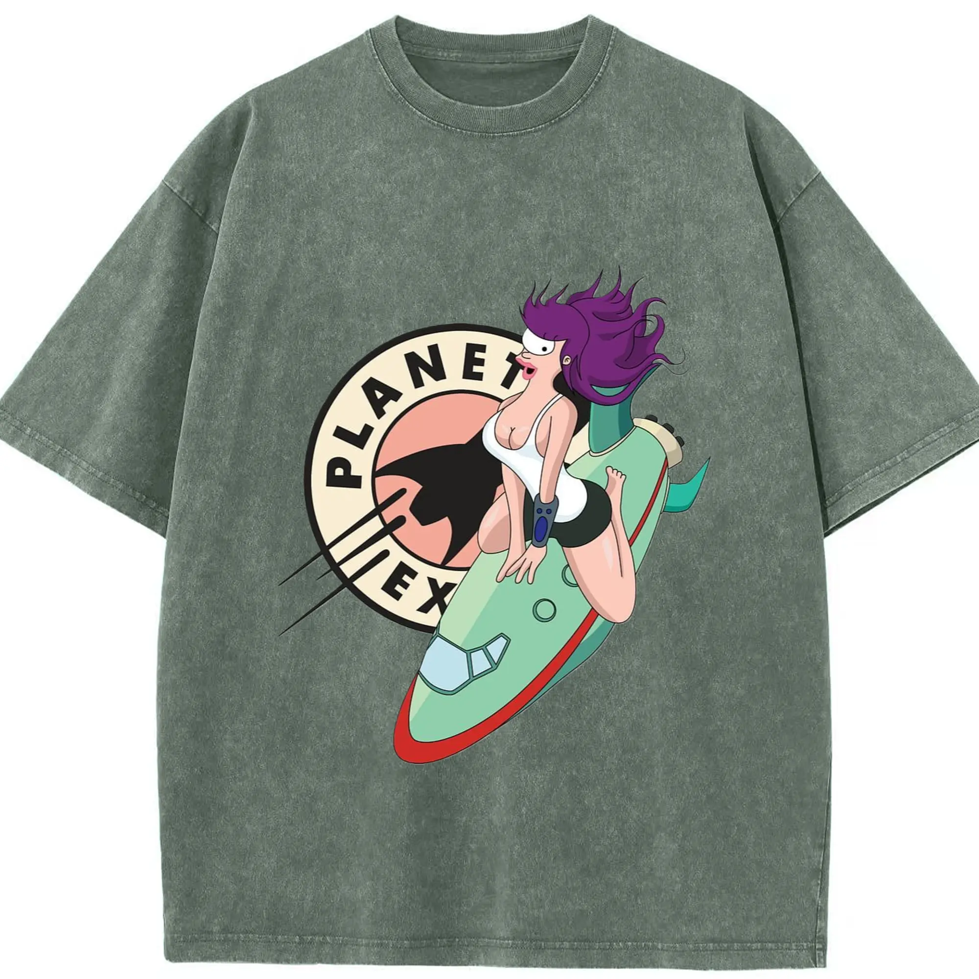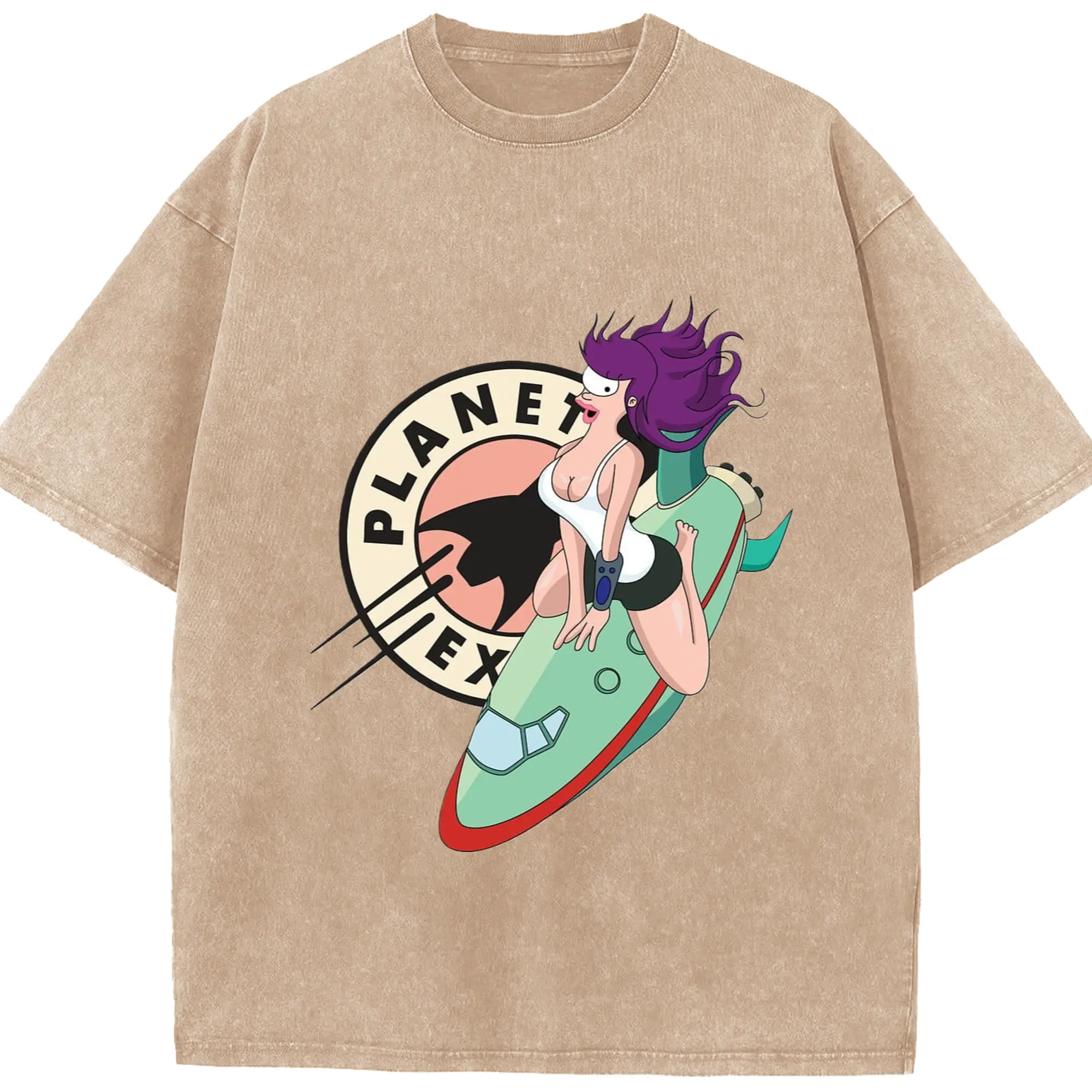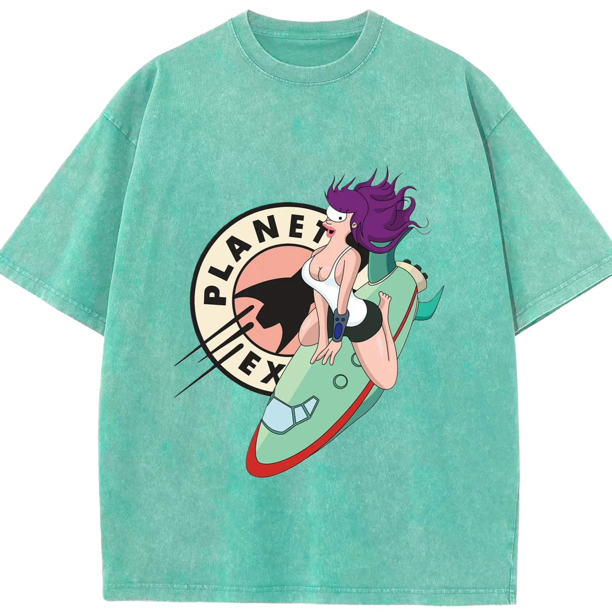 Turanga leela cartoon graphic tee - Washed Vintage Look 230g Cotton Oversized T-Shirt With Front Heat Transfer Print – Soft, Lightweight, Stylish Fit – Comfortable Casual Wear For Sports & Everyday Use