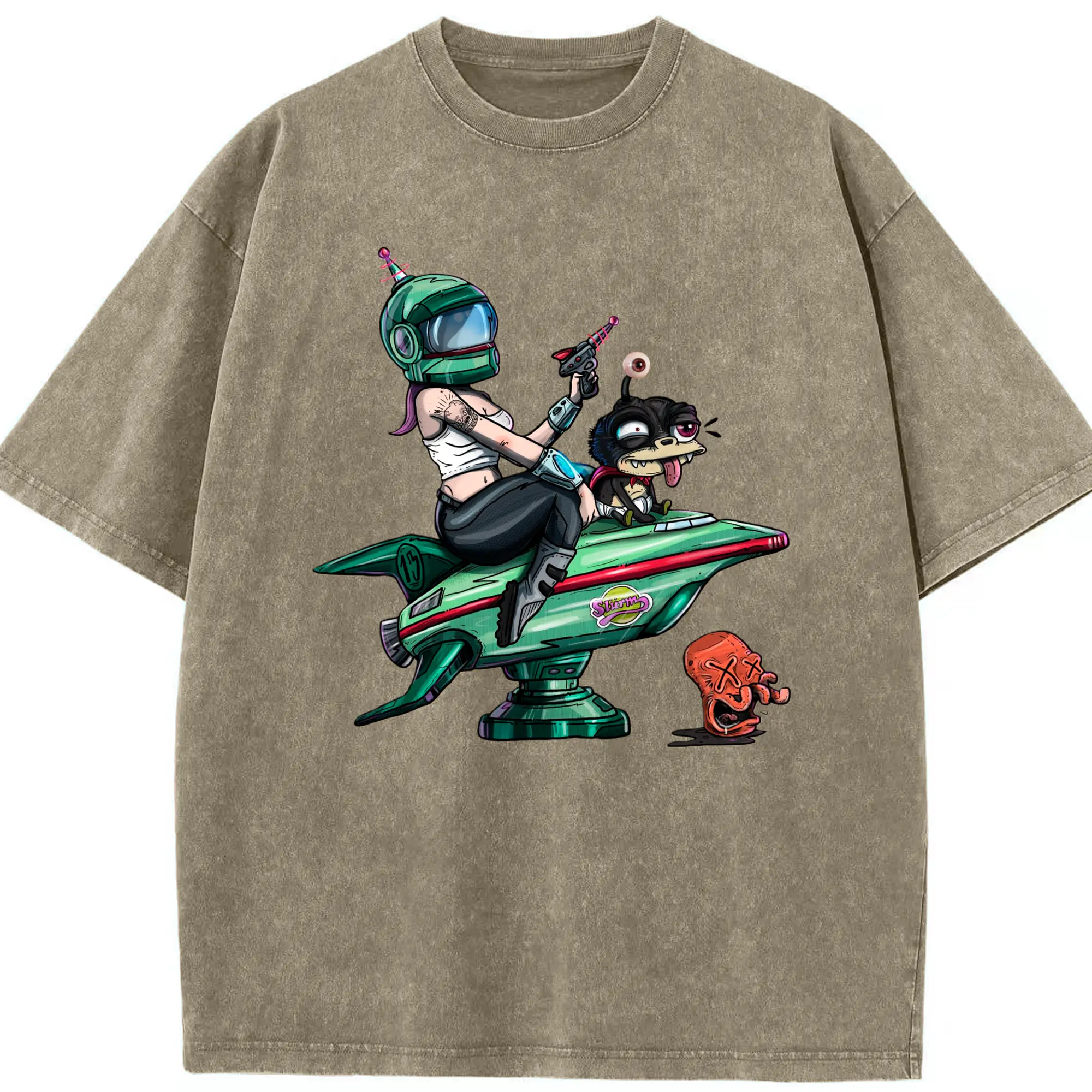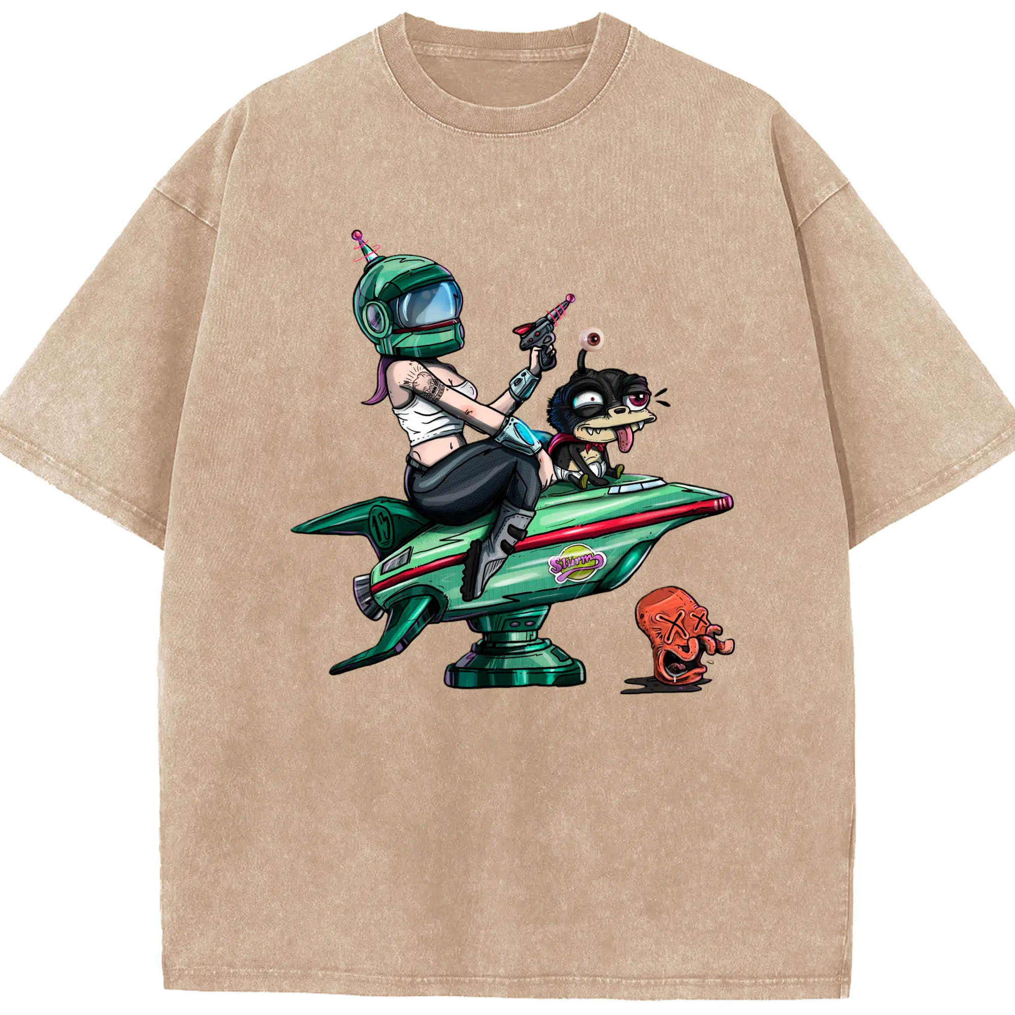 Turanga leela graphic tee - Washed Vintage Look 230g Cotton Oversized T-Shirt With Front Heat Transfer Print – Soft, Lightweight, Stylish Fit – Comfortable Casual Wear For Sports & Everyday Use
